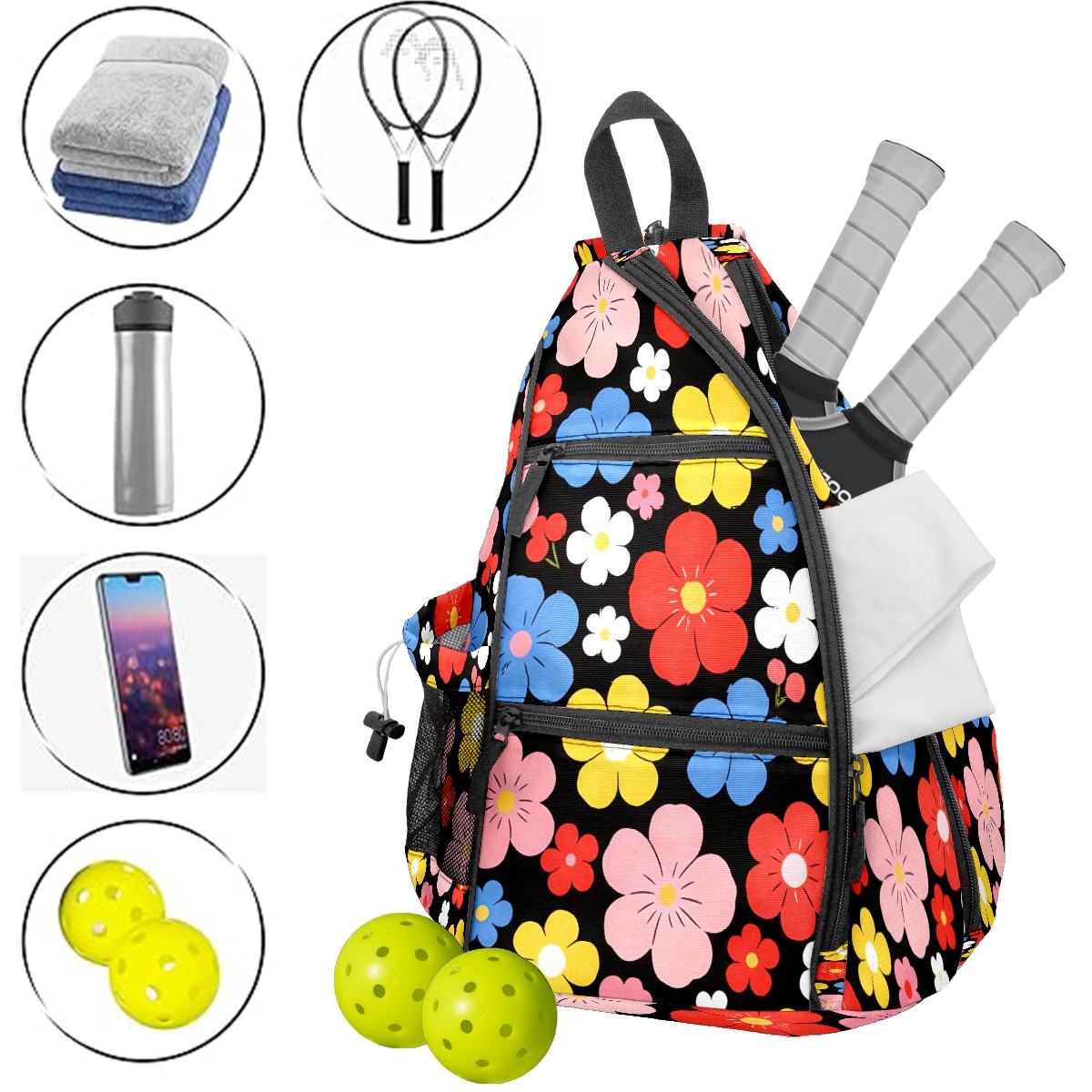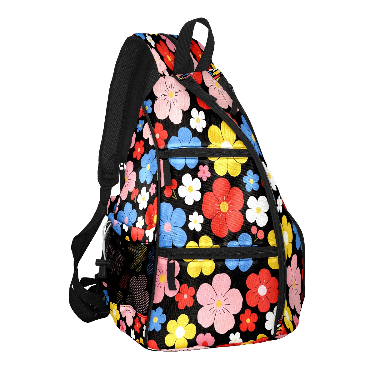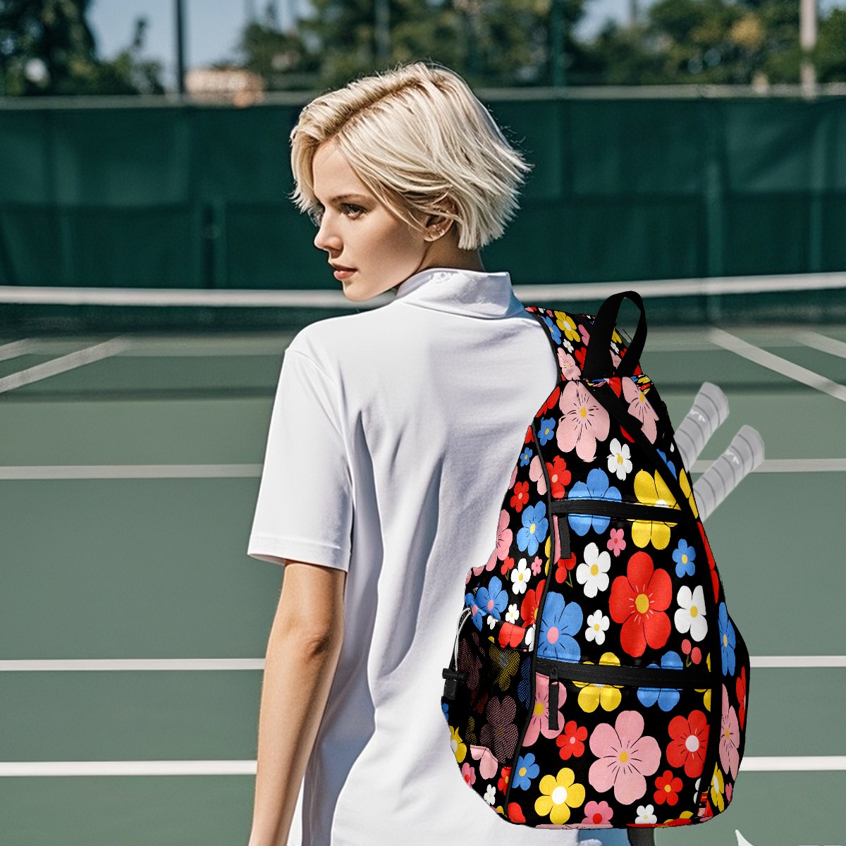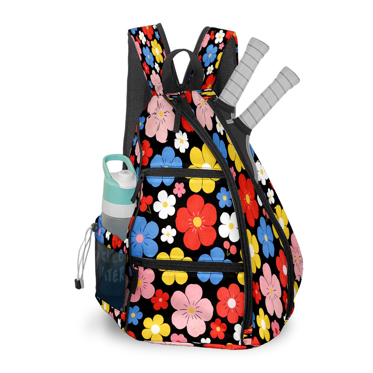 Counullo Colorful Small Flower Convertible Pickleball Paddle Backpack - Detachable Strap, Multi-Compartment Lightweight Bag for Training, Commute | Sports Gear for Men & Women