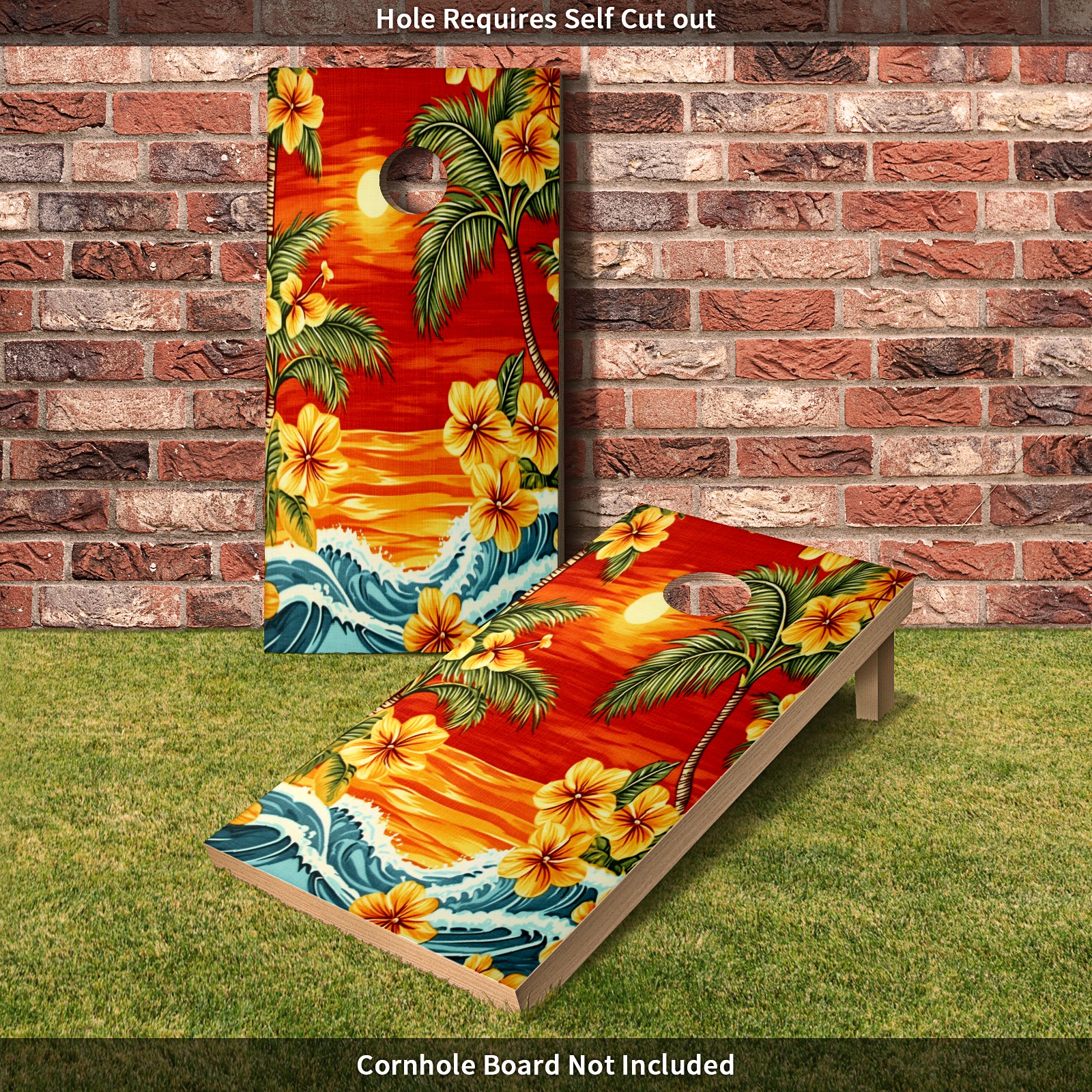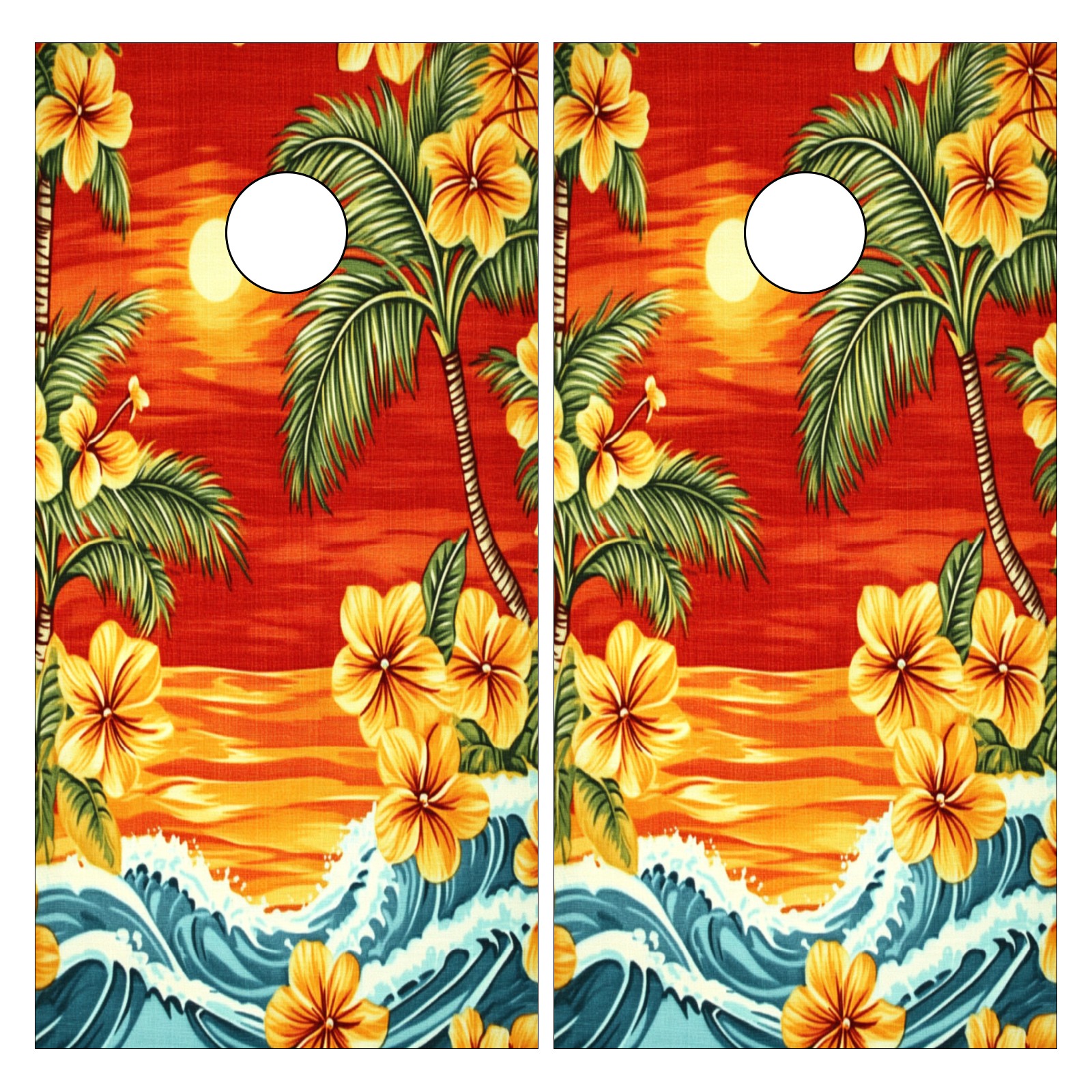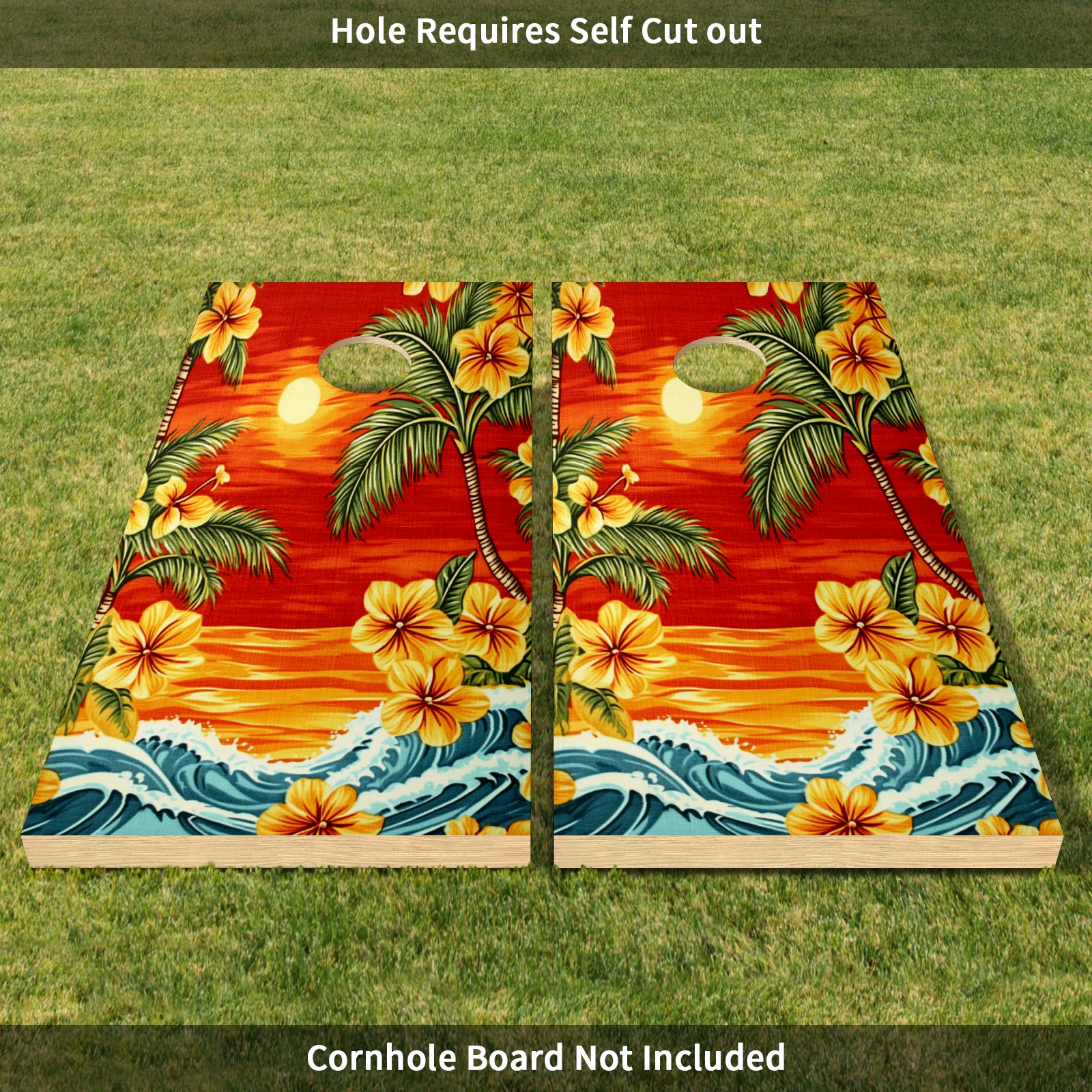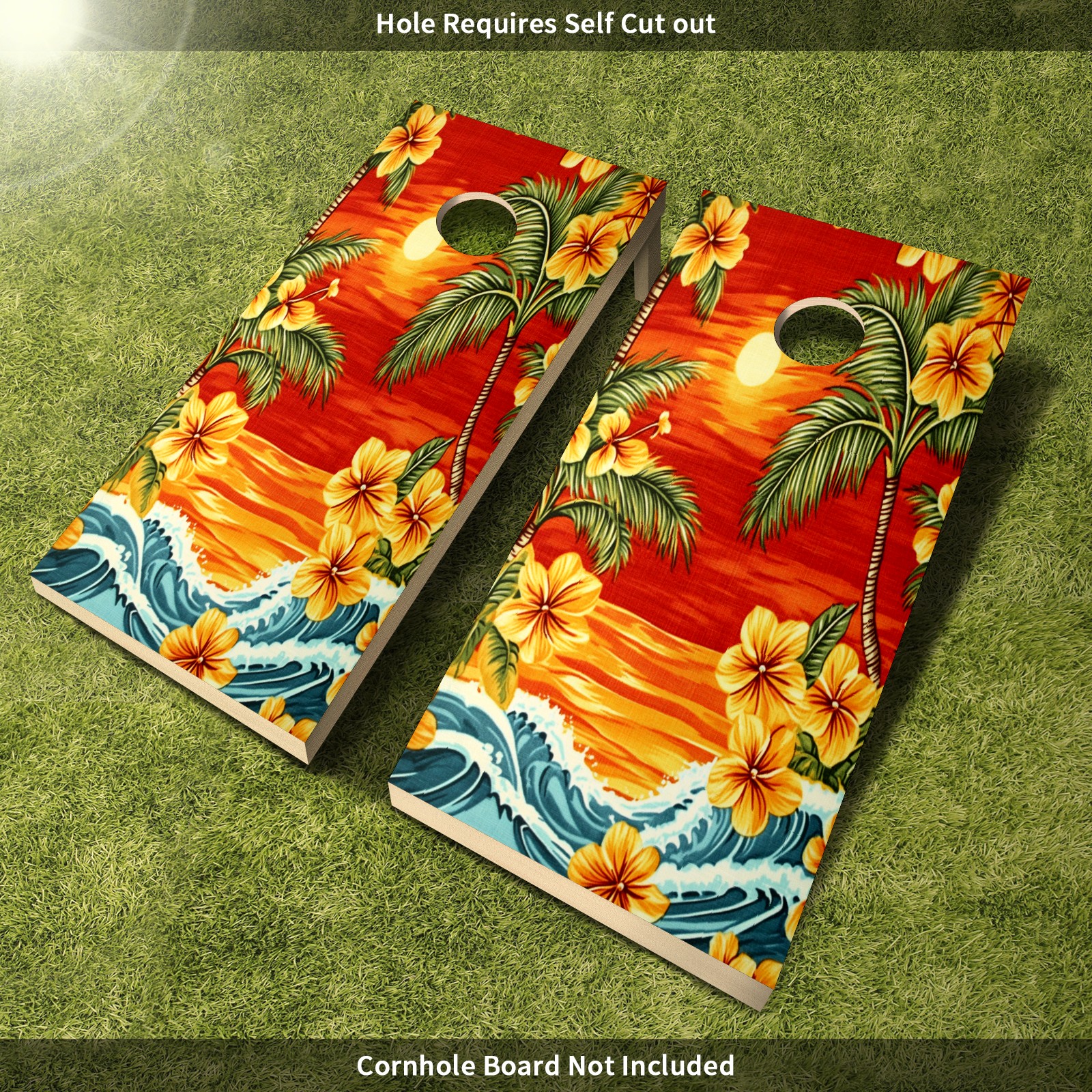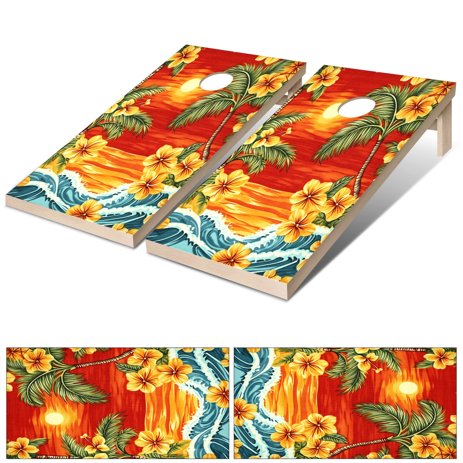 Portable 4x2 Ft Cornhole Boards Set with Two-piece Game Sticker(Decals ONLY), Easy to Apply - Corn Hole Games for Adults Outdoor Bean Bag Toss Game Sunset Palm Tree Pattern