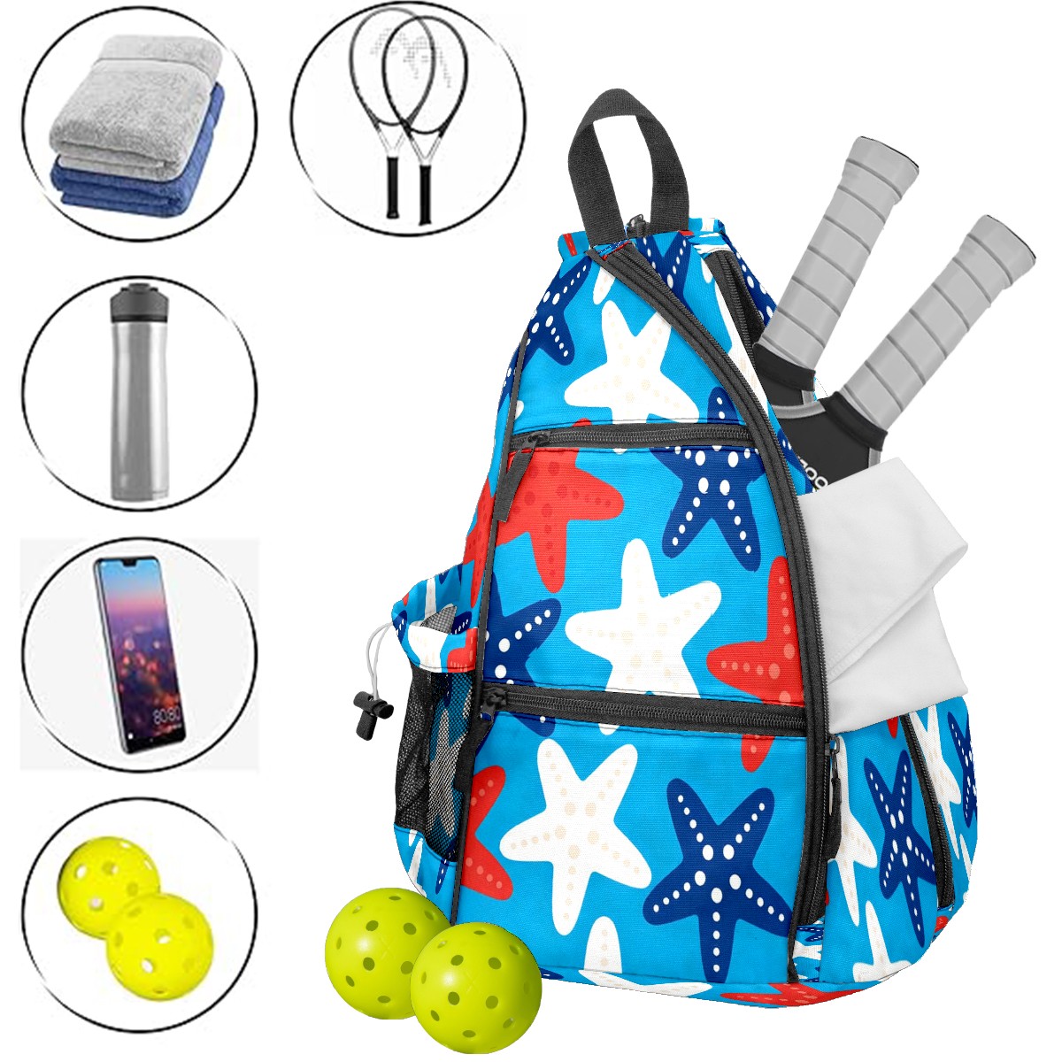 Counullo Vibrant Starfish Blue Convertible Pickleball Paddle Backpack - Detachable Strap, Multi-Compartment Lightweight Bag for Training, Commute | Sports Gear for Men & Women