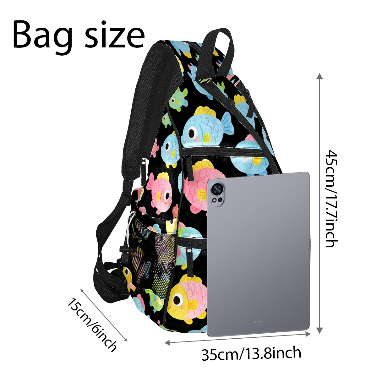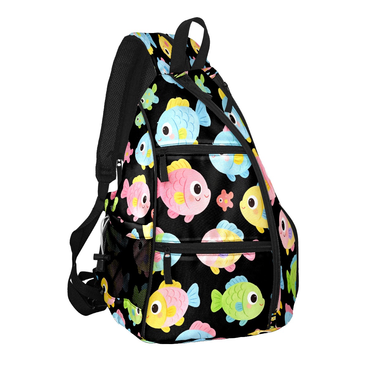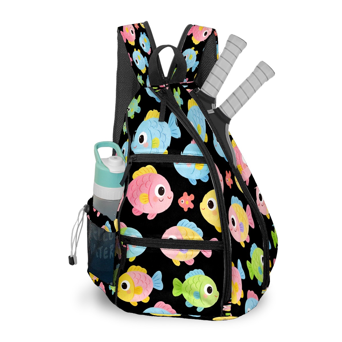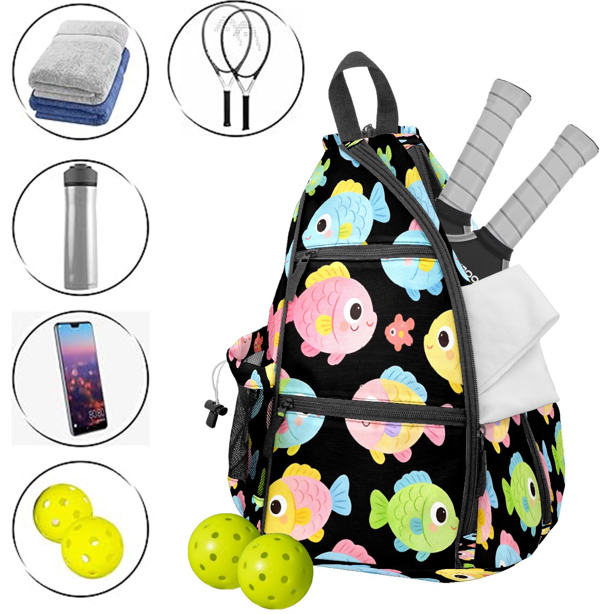 Counullo Playful Fish Black Convertible Pickleball Paddle Backpack - Detachable Strap, Multi-Compartment Lightweight Bag for Training, Commute | Sports Gear for Men & Women