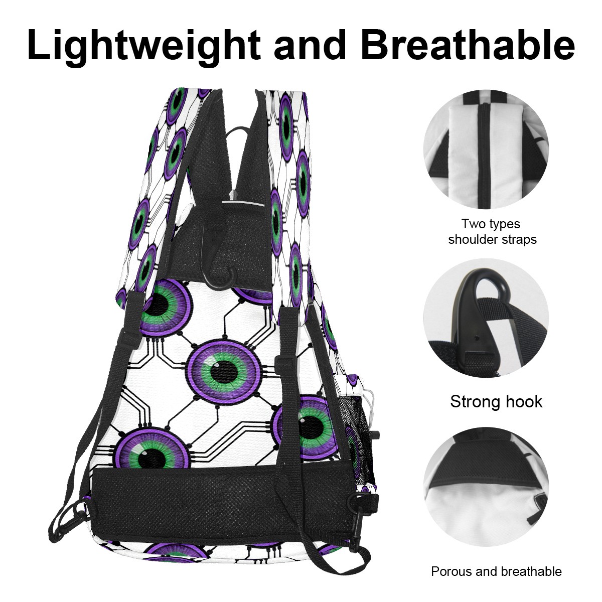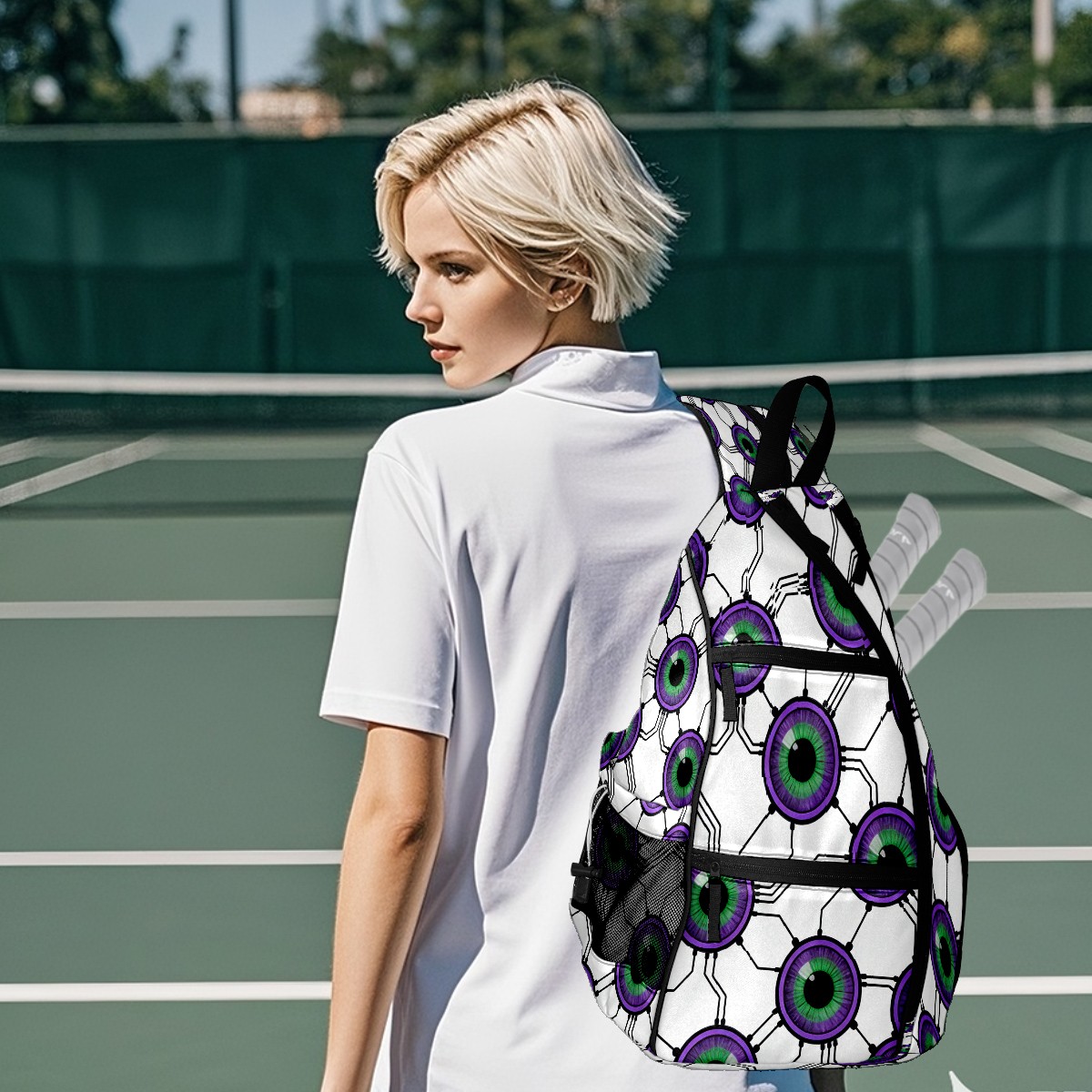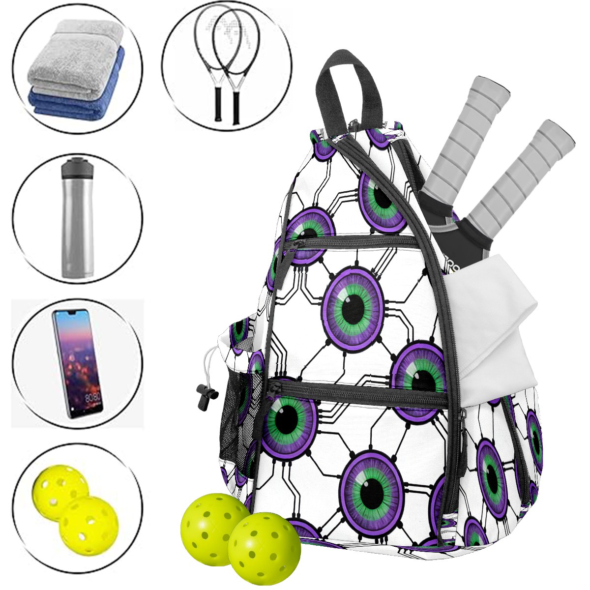 Counullo Fantasy Cell Purple Convertible Pickleball Paddle Backpack - Detachable Strap, Multi-Compartment Lightweight Bag for Training, Commute | Sports Gear for Men & Women