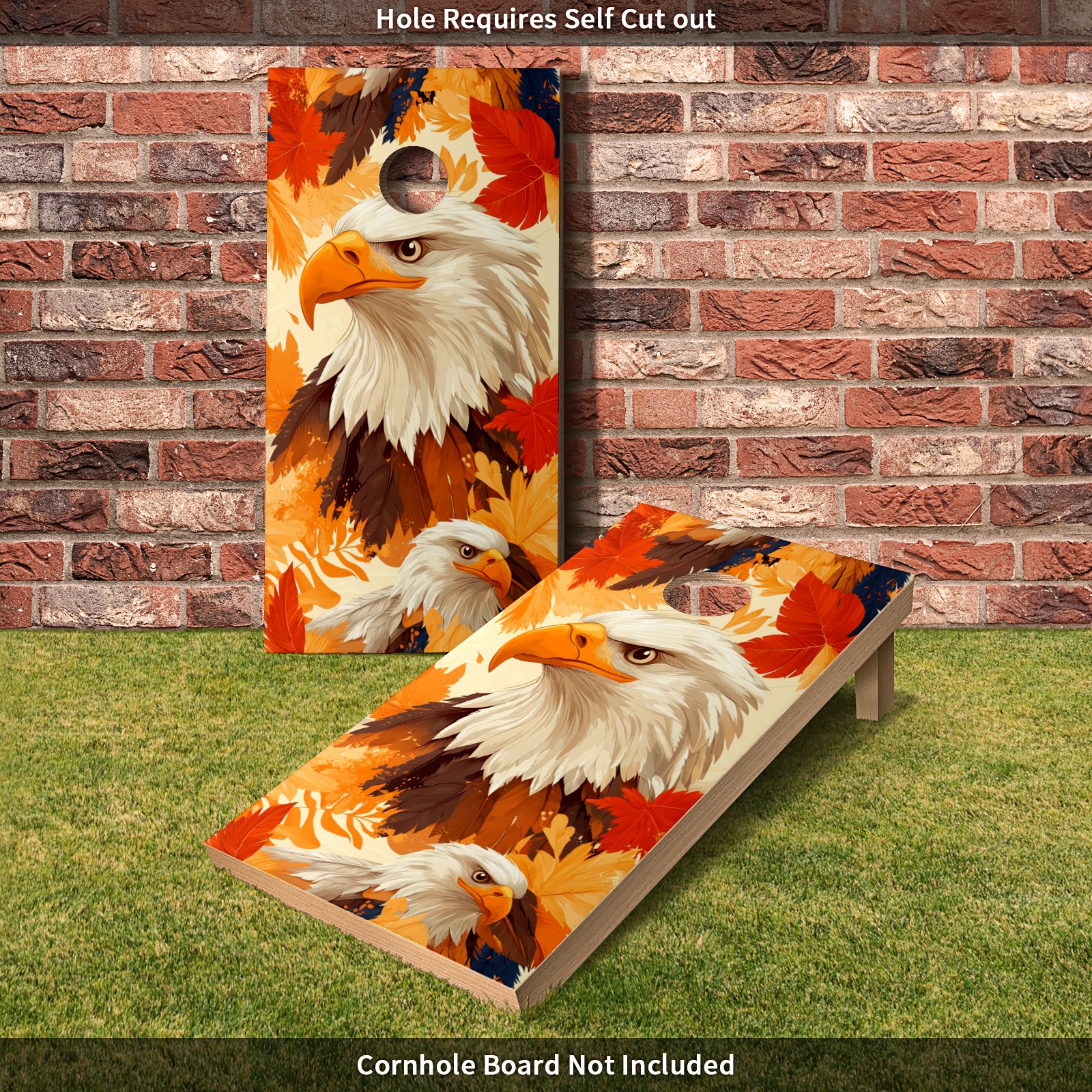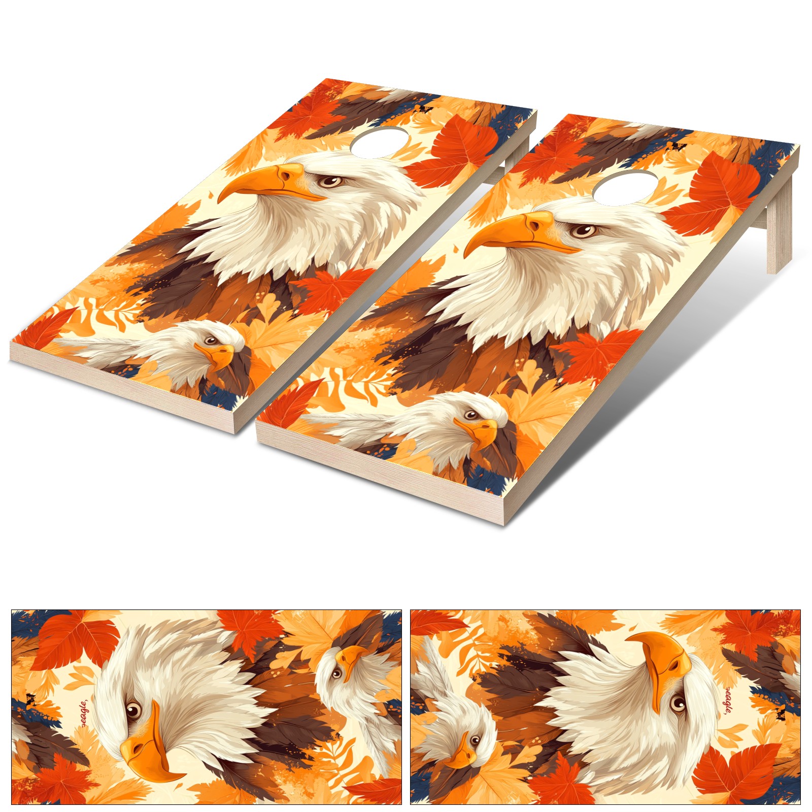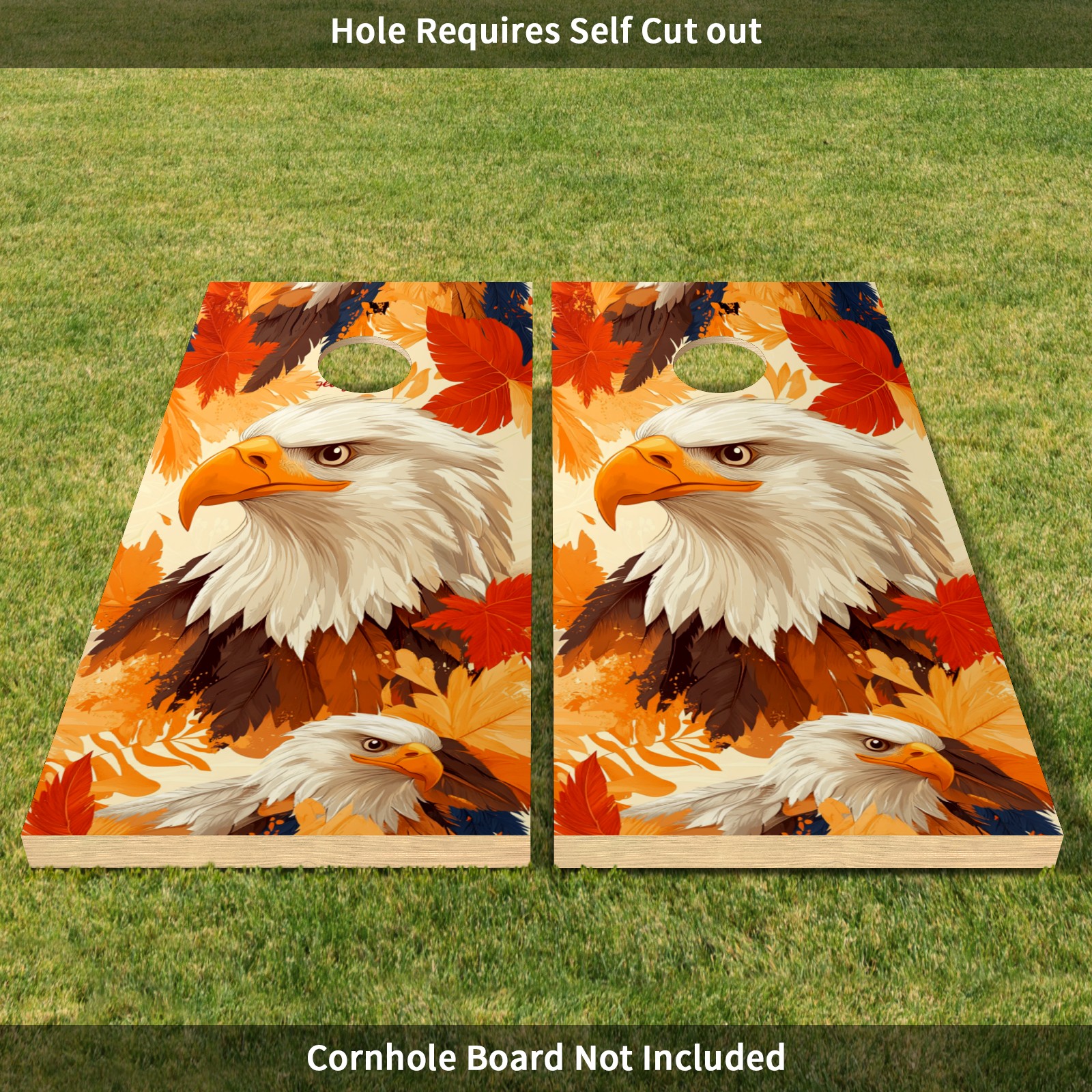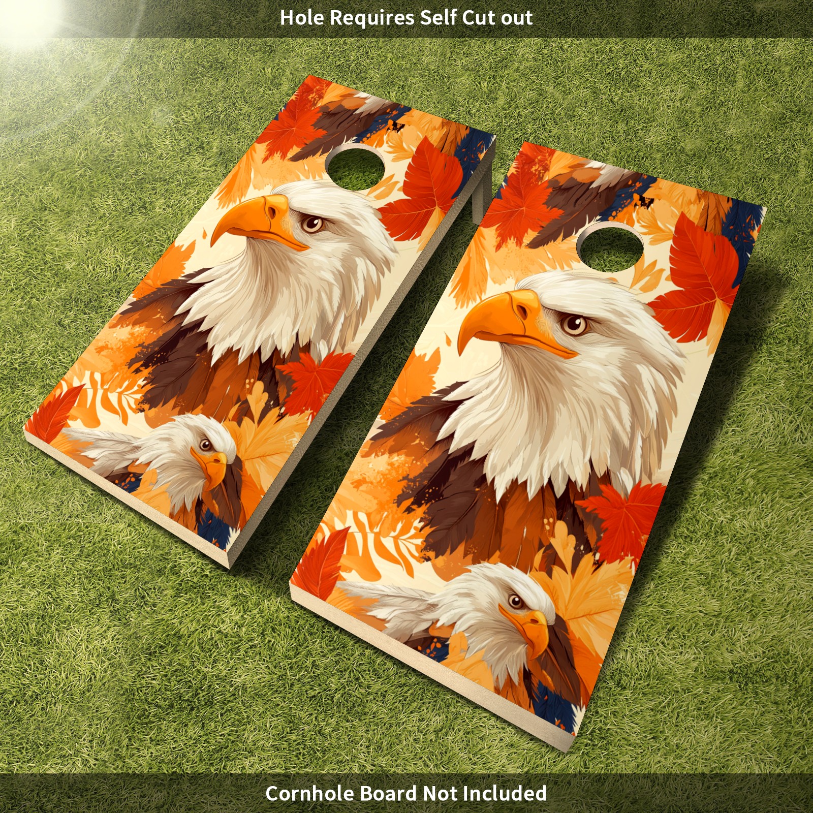 Portable 4x2 Ft Cornhole Boards Set with Two-piece Game Sticker(Decals ONLY), Easy to Apply - Corn Hole Games for Adults Outdoor Bean Bag Toss Game Orange Eagle Pattern