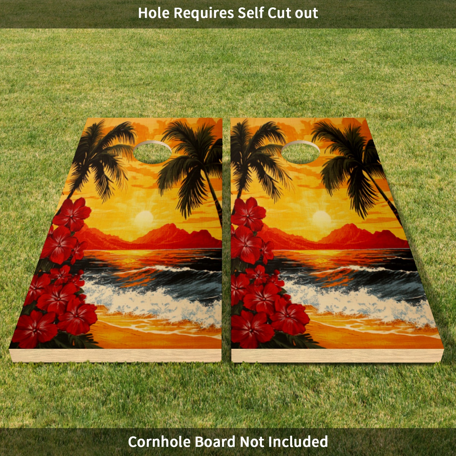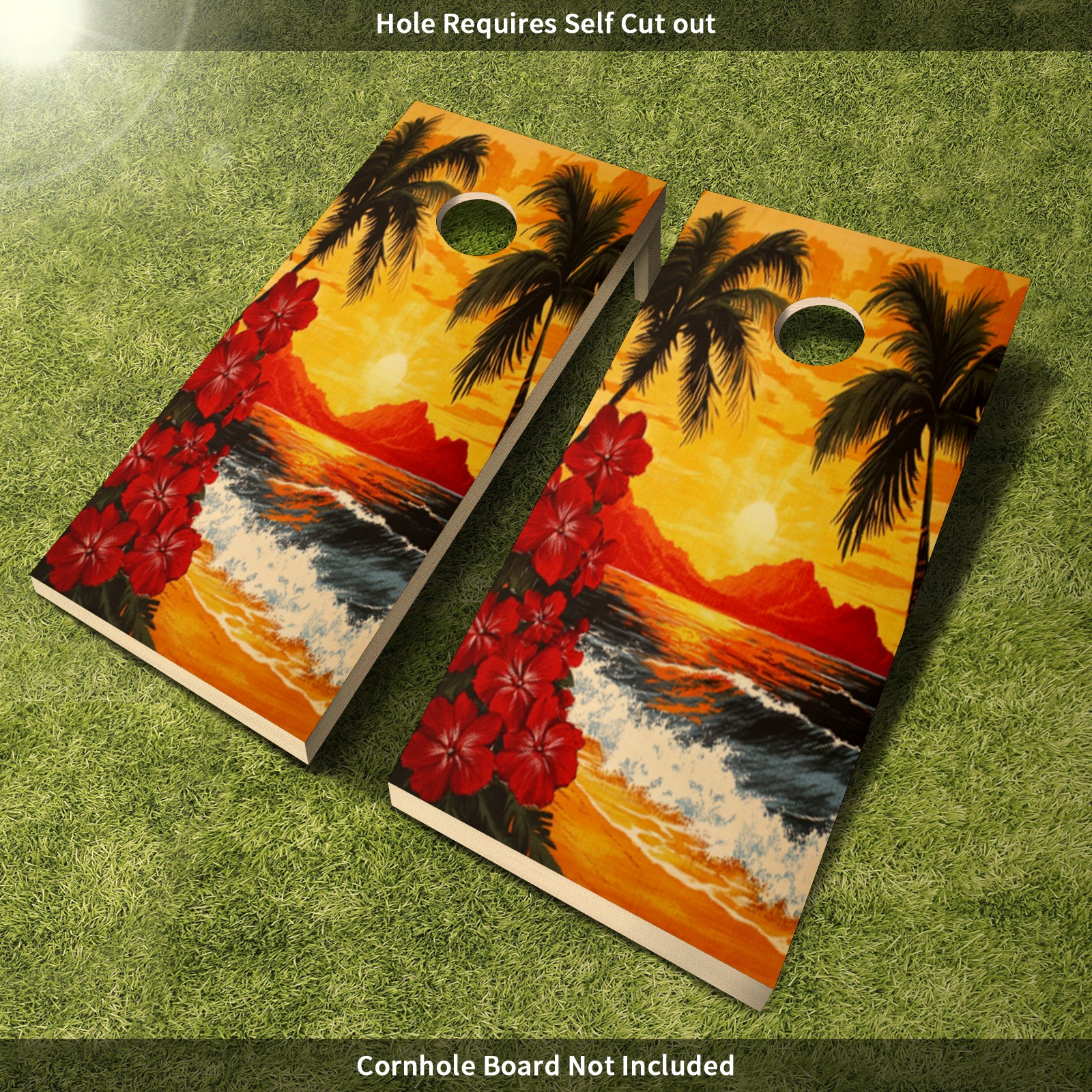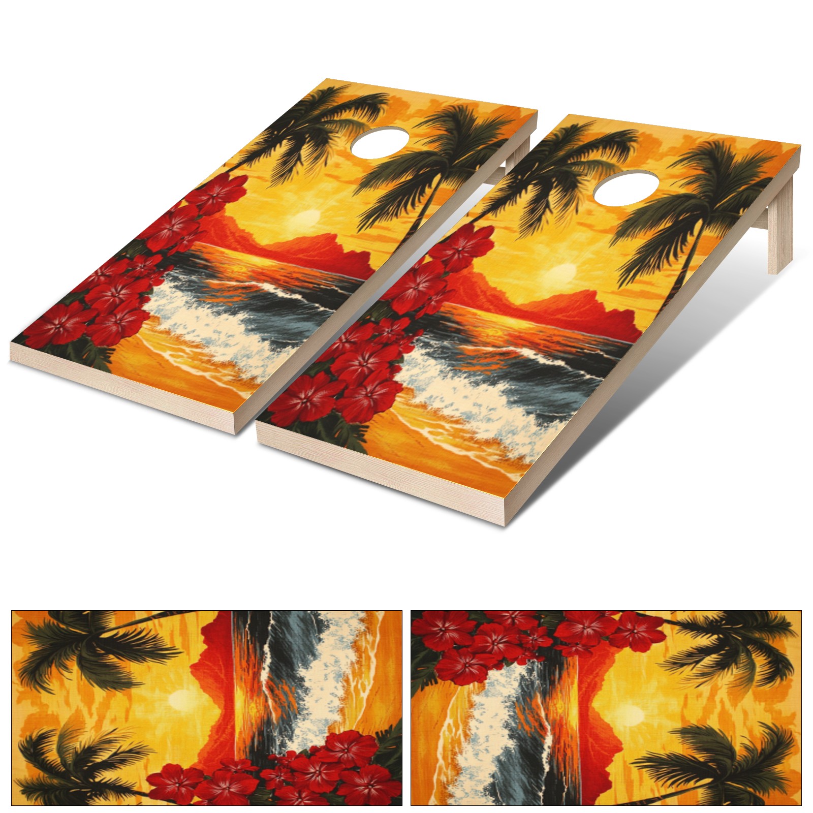 Portable 4x2 Ft Cornhole Boards Set with Two-piece Game Sticker(Decals ONLY), Easy to Apply - Corn Hole Games for Adults Outdoor Bean Bag Toss Game Sunset Palm Tree Pattern