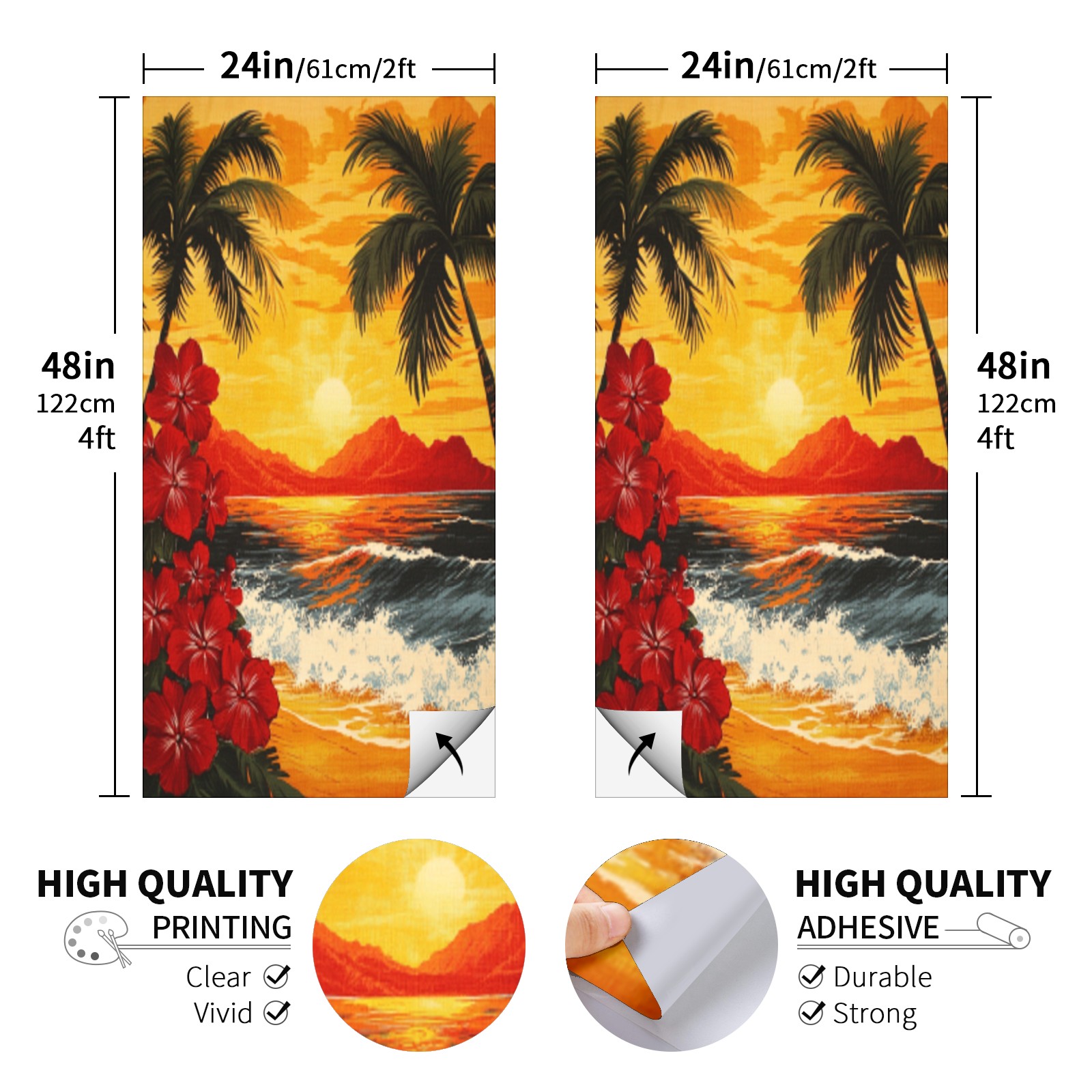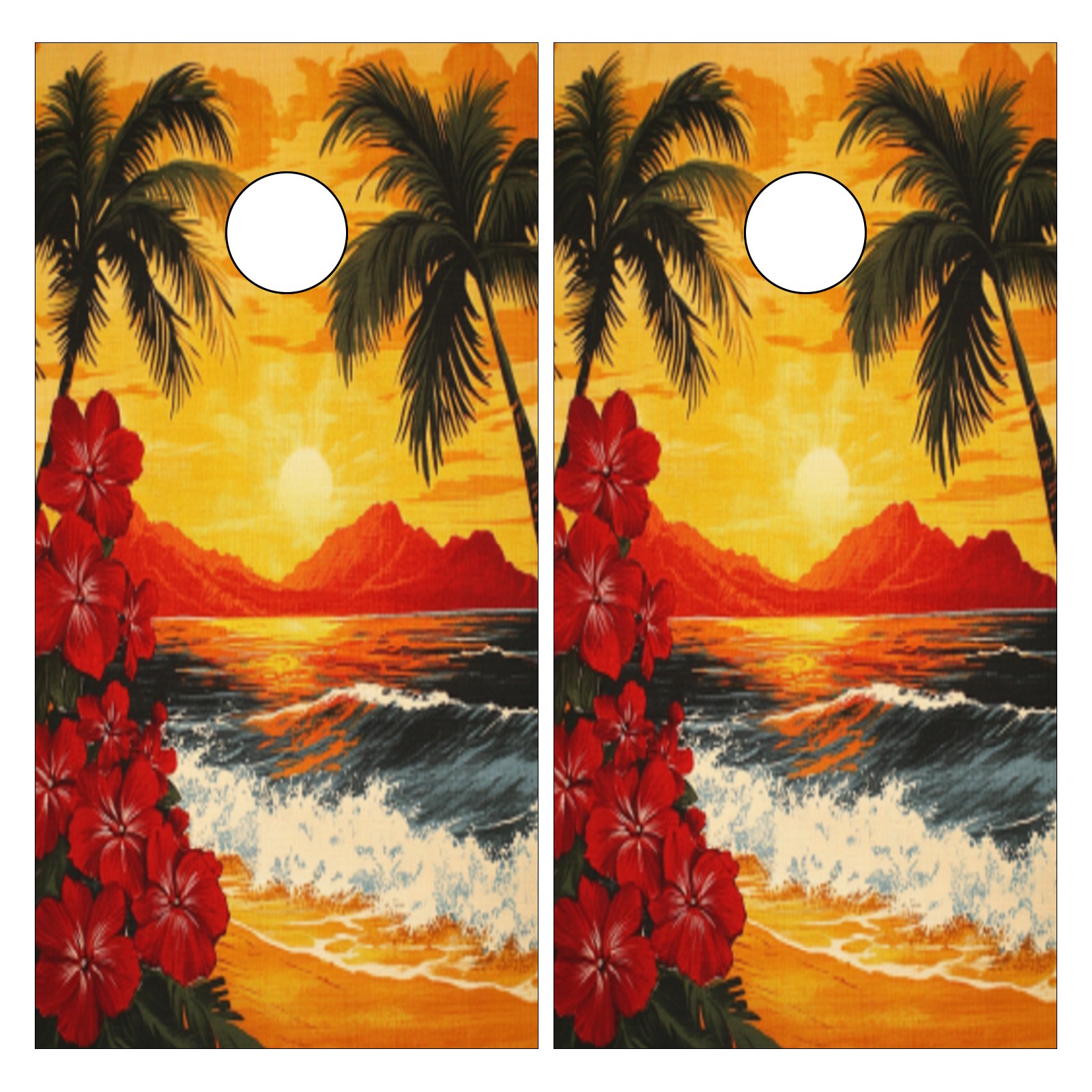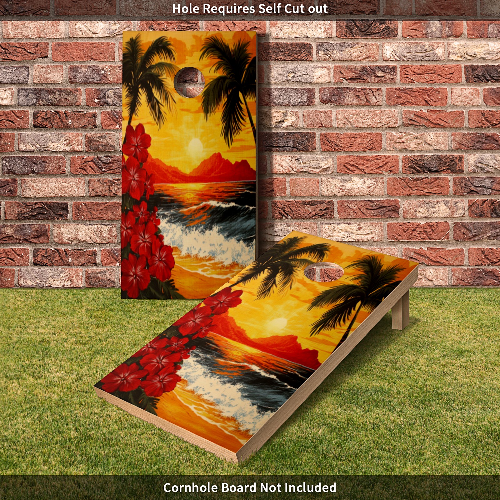 Portable 4x2 Ft Cornhole Boards Set with Two-piece Game Sticker(Decals ONLY), Easy to Apply - Corn Hole Games for Adults Outdoor Bean Bag Toss Game Sunset Palm Tree Pattern