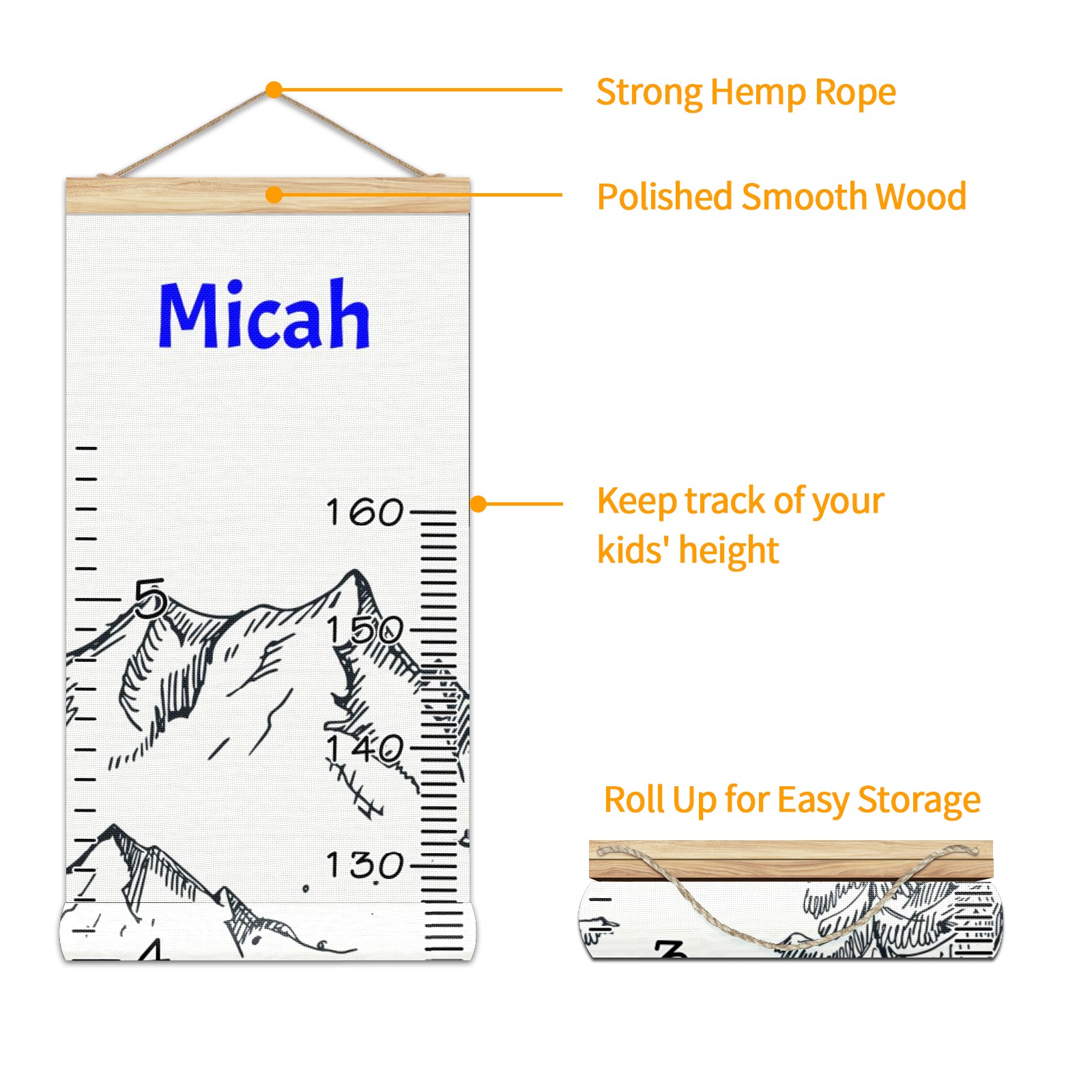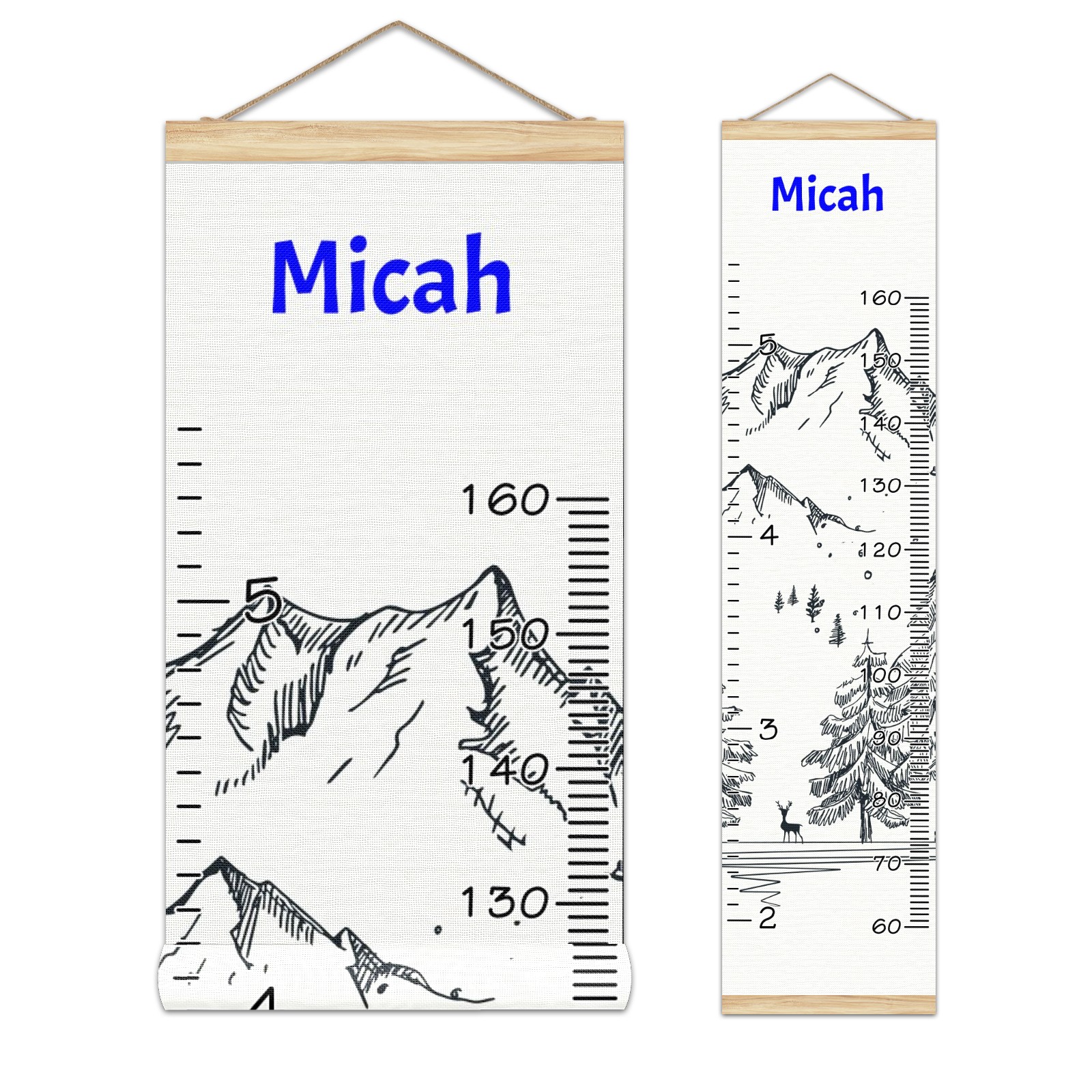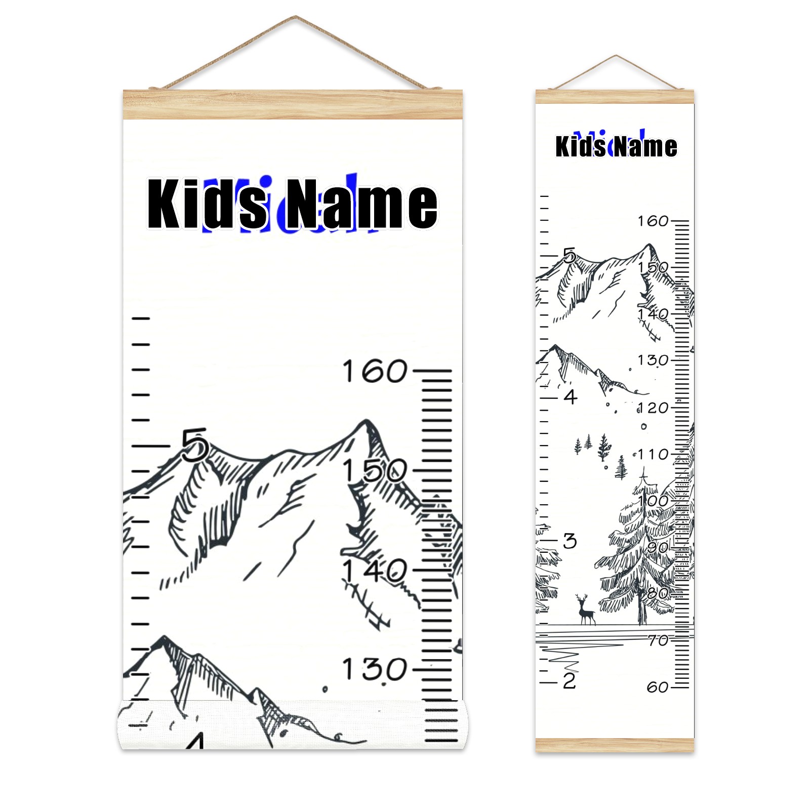 Personalized Kids Name Growth Chart Ruler for Wall Wood Frame Canvas Height Measure Chart 13.4x56 in Hanging Growth Chart Winter Mountain1.21 Boys Girls Room Decor