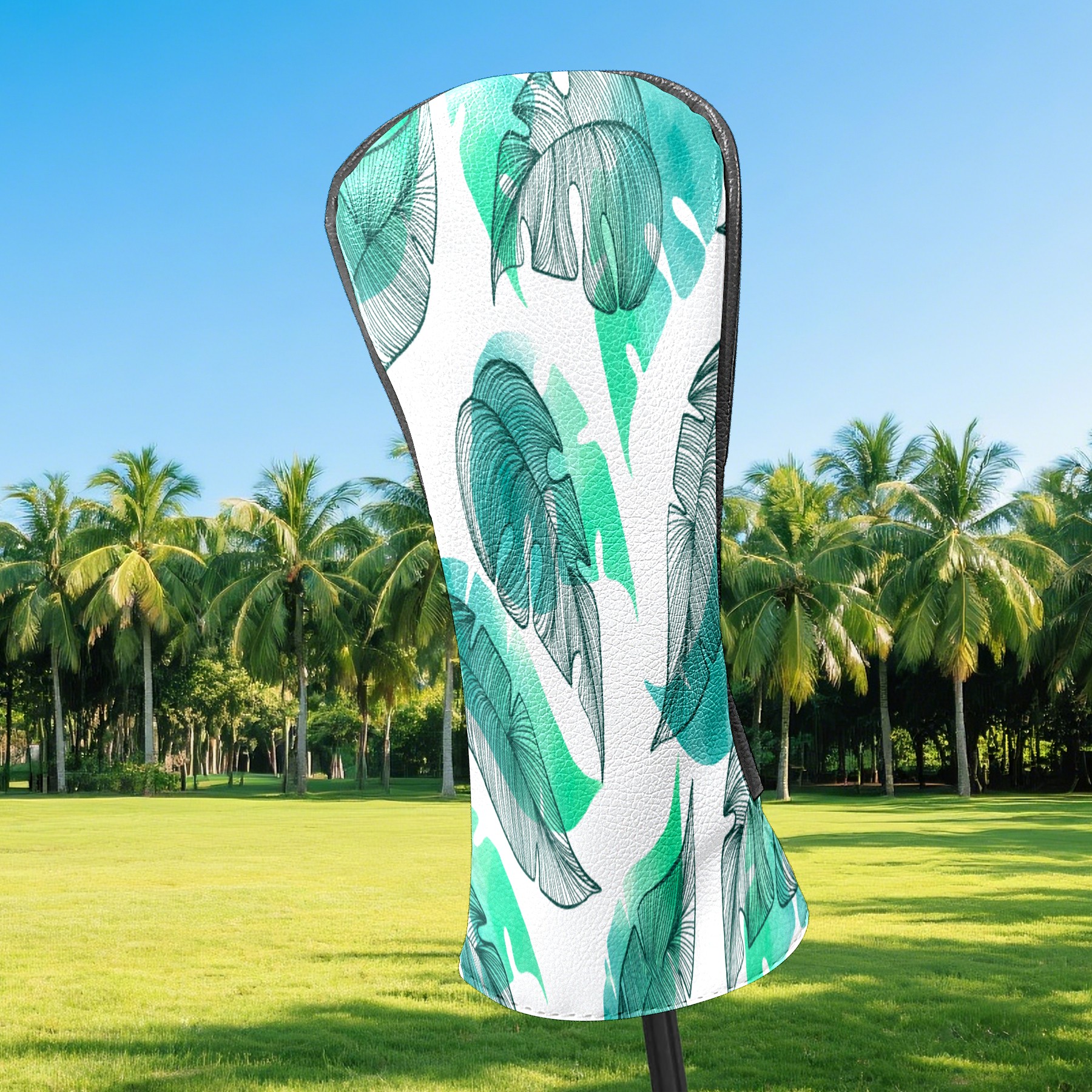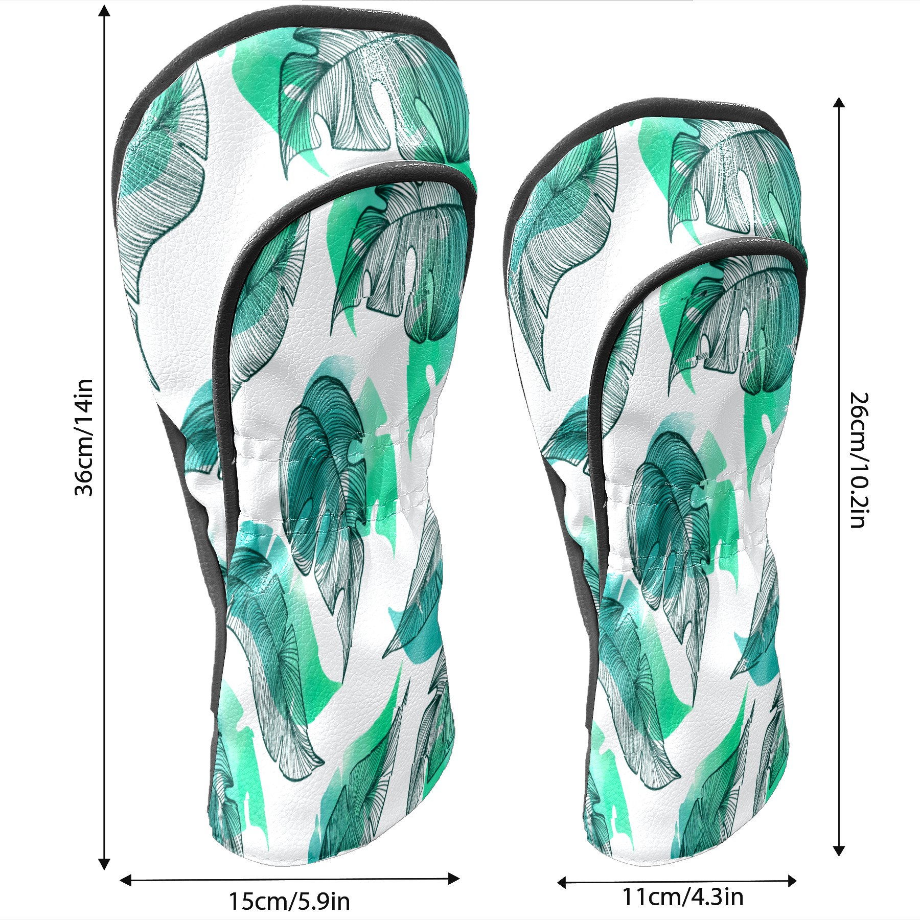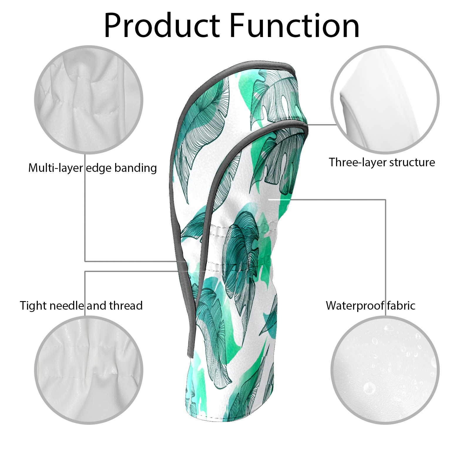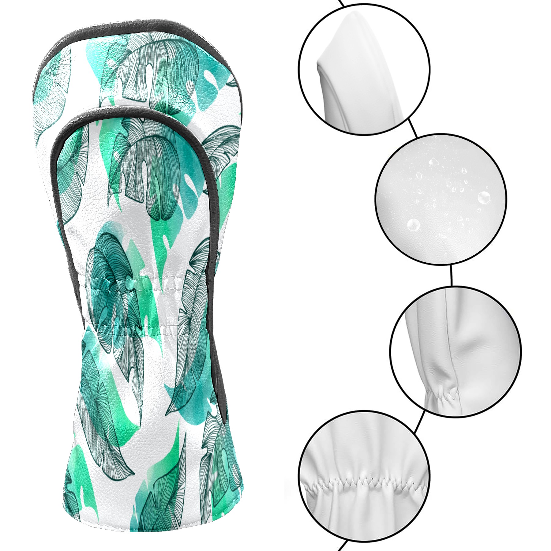 Golf Club Head Cover Waterproof Leather for Driver & Fairway Wood, Driver Headcovers, Golf Accessories for Men Women, Anti-Scratch, Golf Gift for Golfers, 1/3/5 Wood Cover White Leaves Overlay