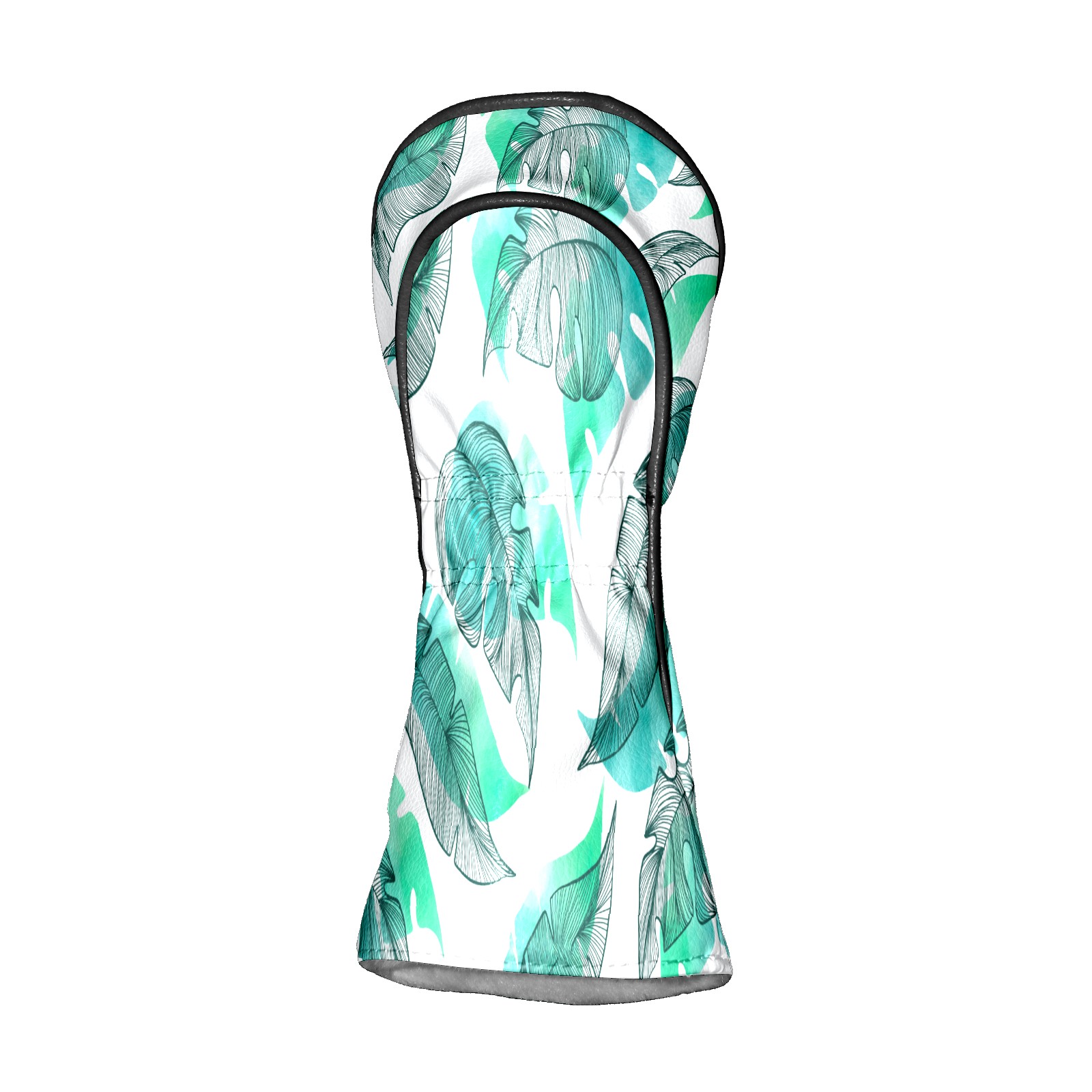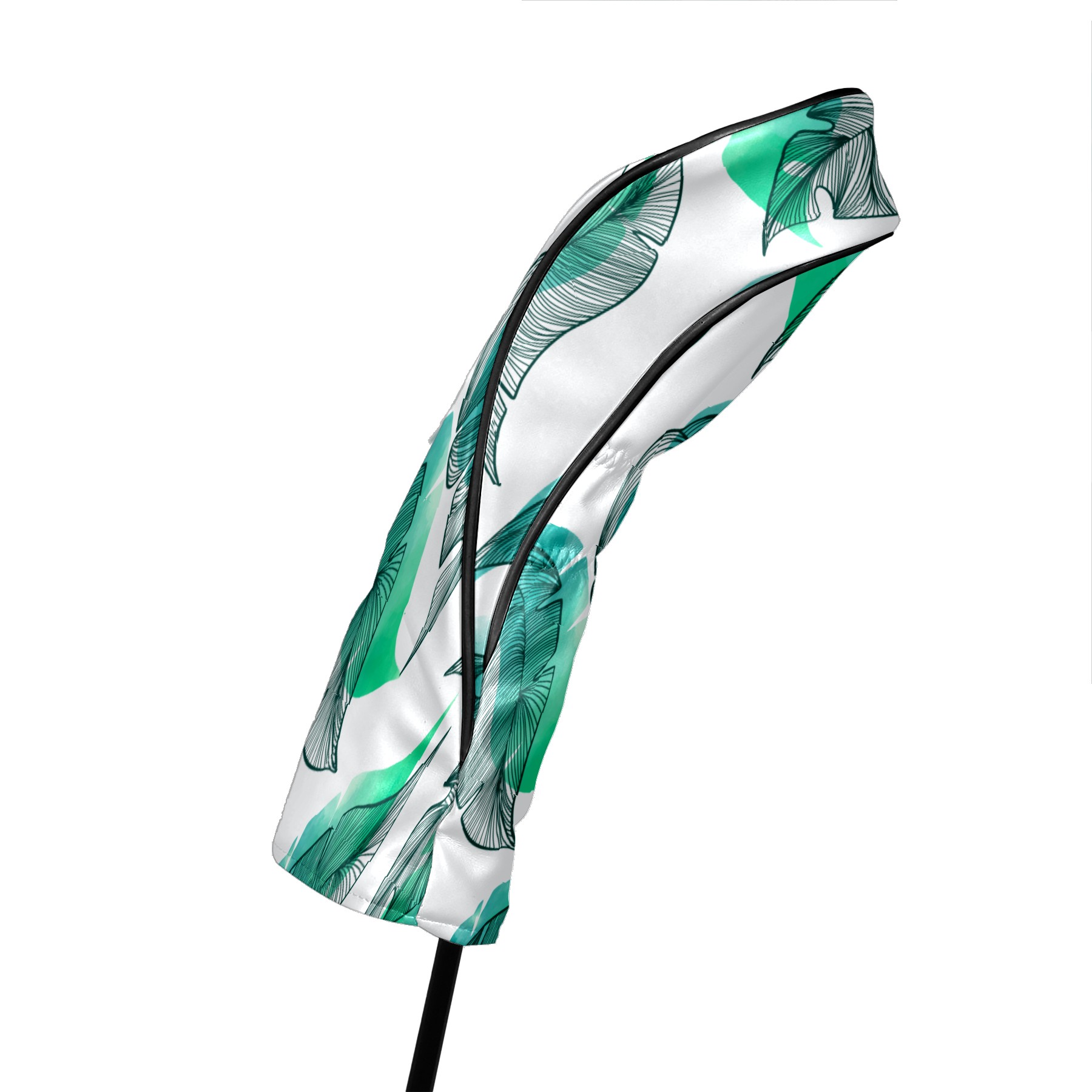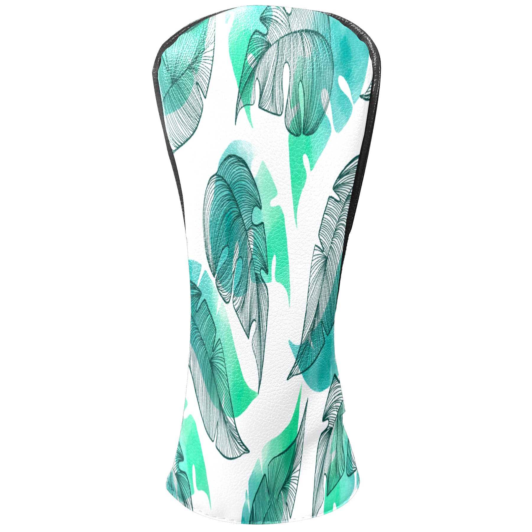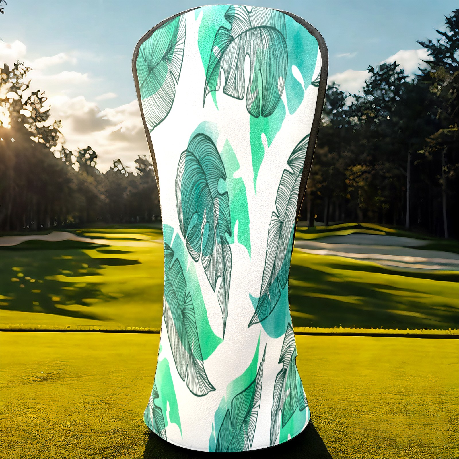 Golf Club Head Cover Waterproof Leather for Driver & Fairway Wood, Driver Headcovers, Golf Accessories for Men Women, Anti-Scratch, Golf Gift for Golfers, 1/3/5 Wood Cover White Leaves Overlay