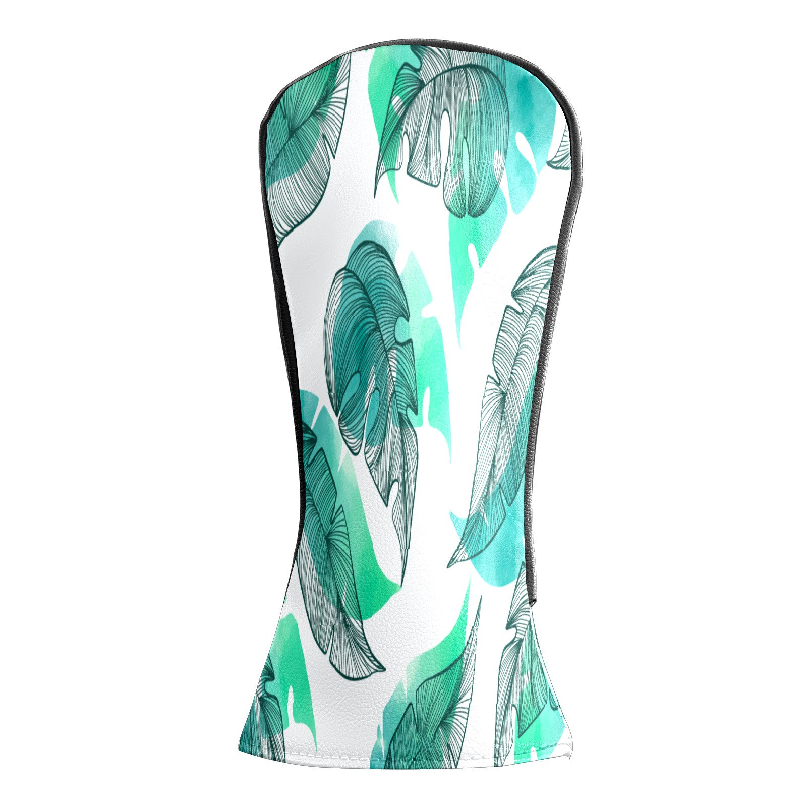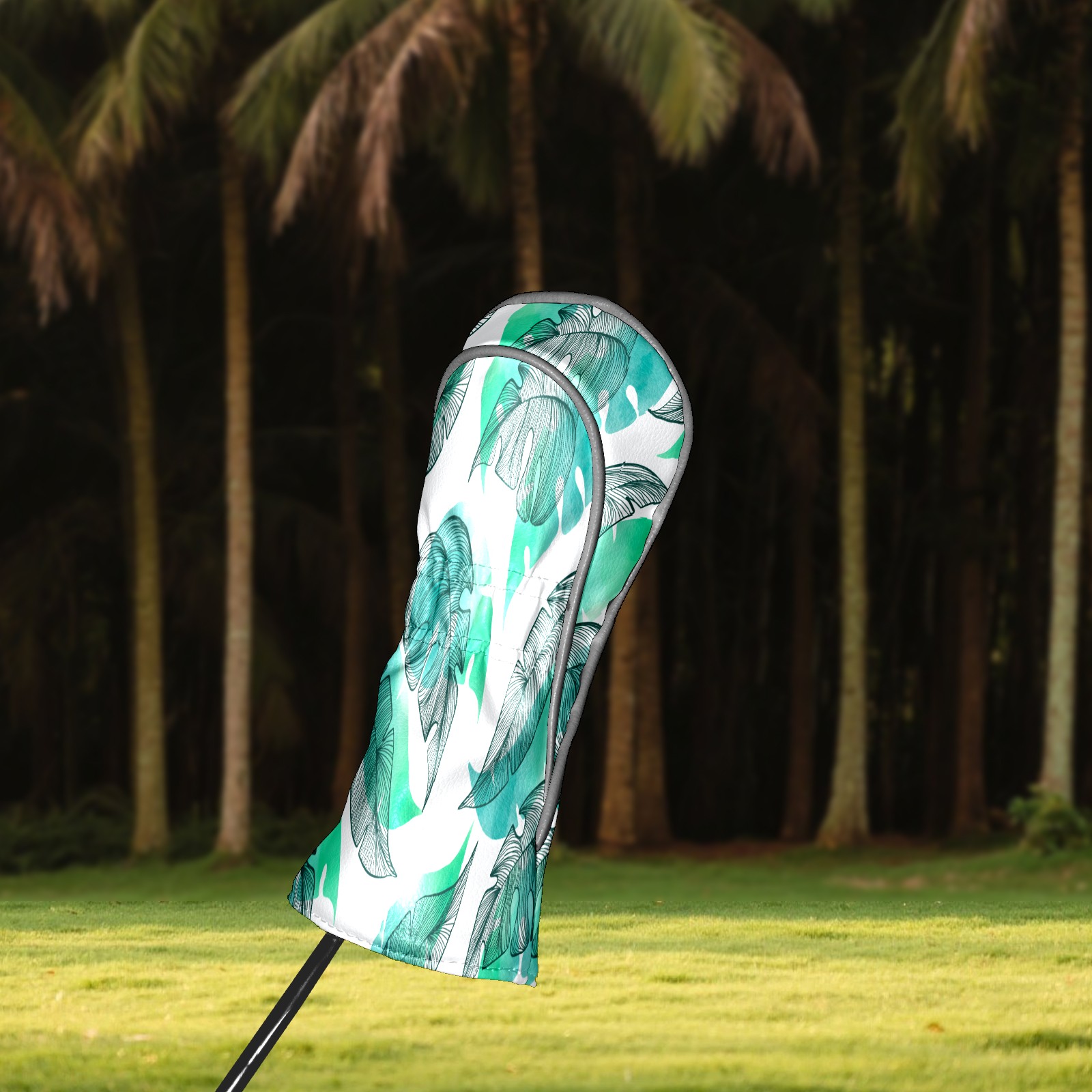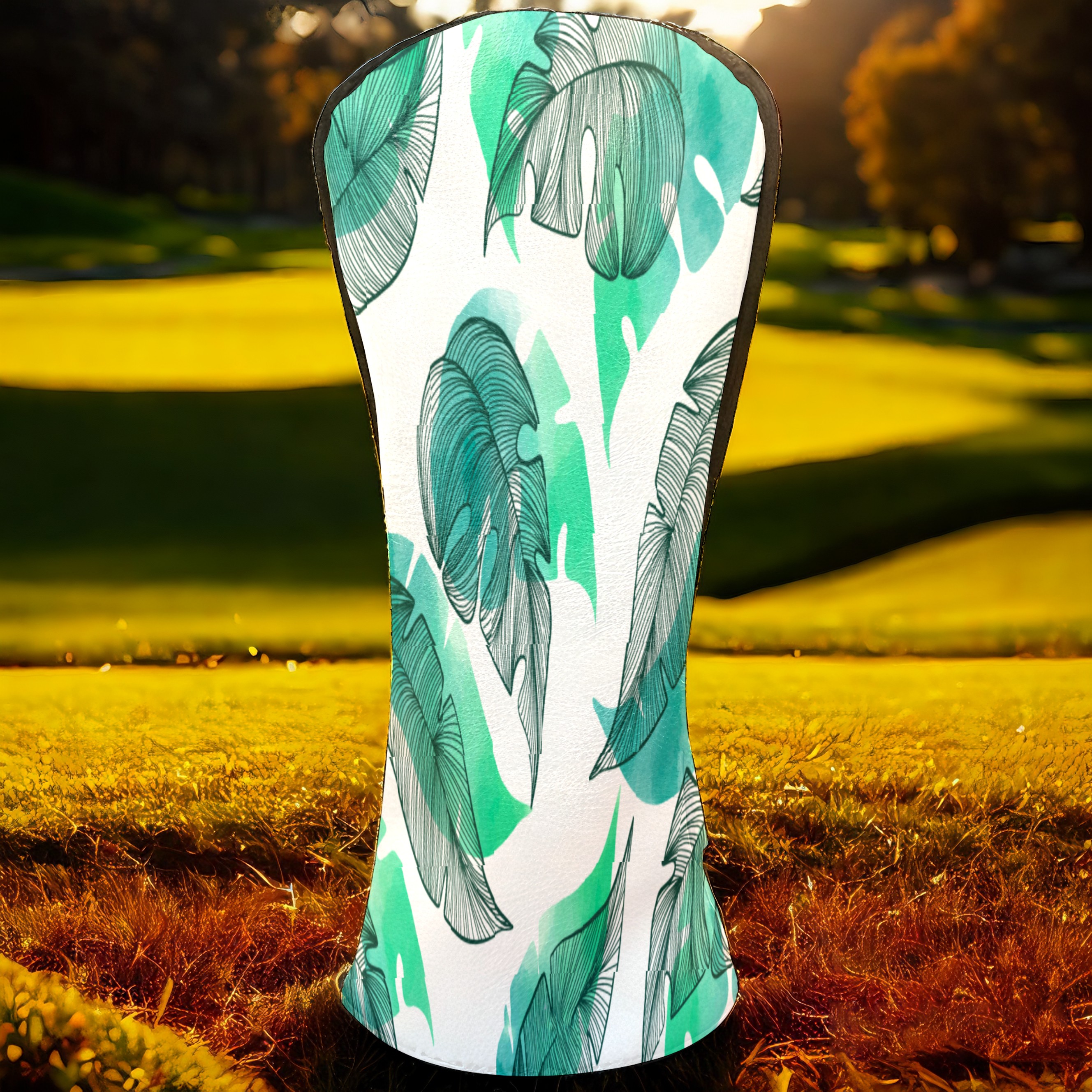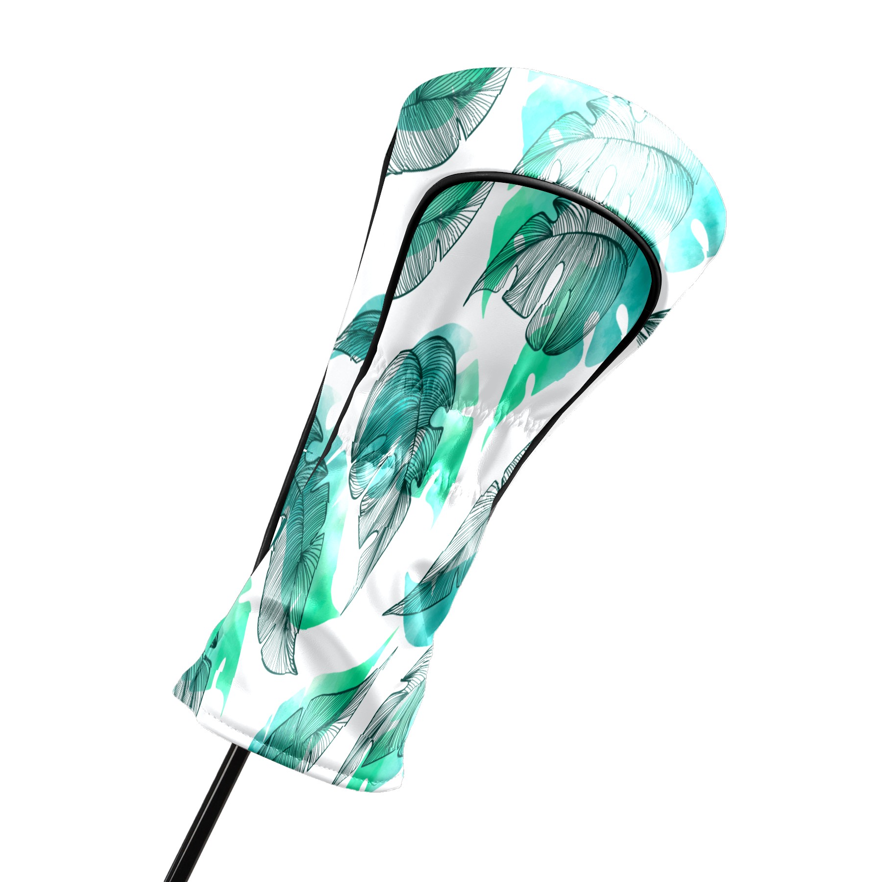 Golf Club Head Cover Waterproof Leather for Driver & Fairway Wood, Driver Headcovers, Golf Accessories for Men Women, Anti-Scratch, Golf Gift for Golfers, 1/3/5 Wood Cover White Leaves Overlay