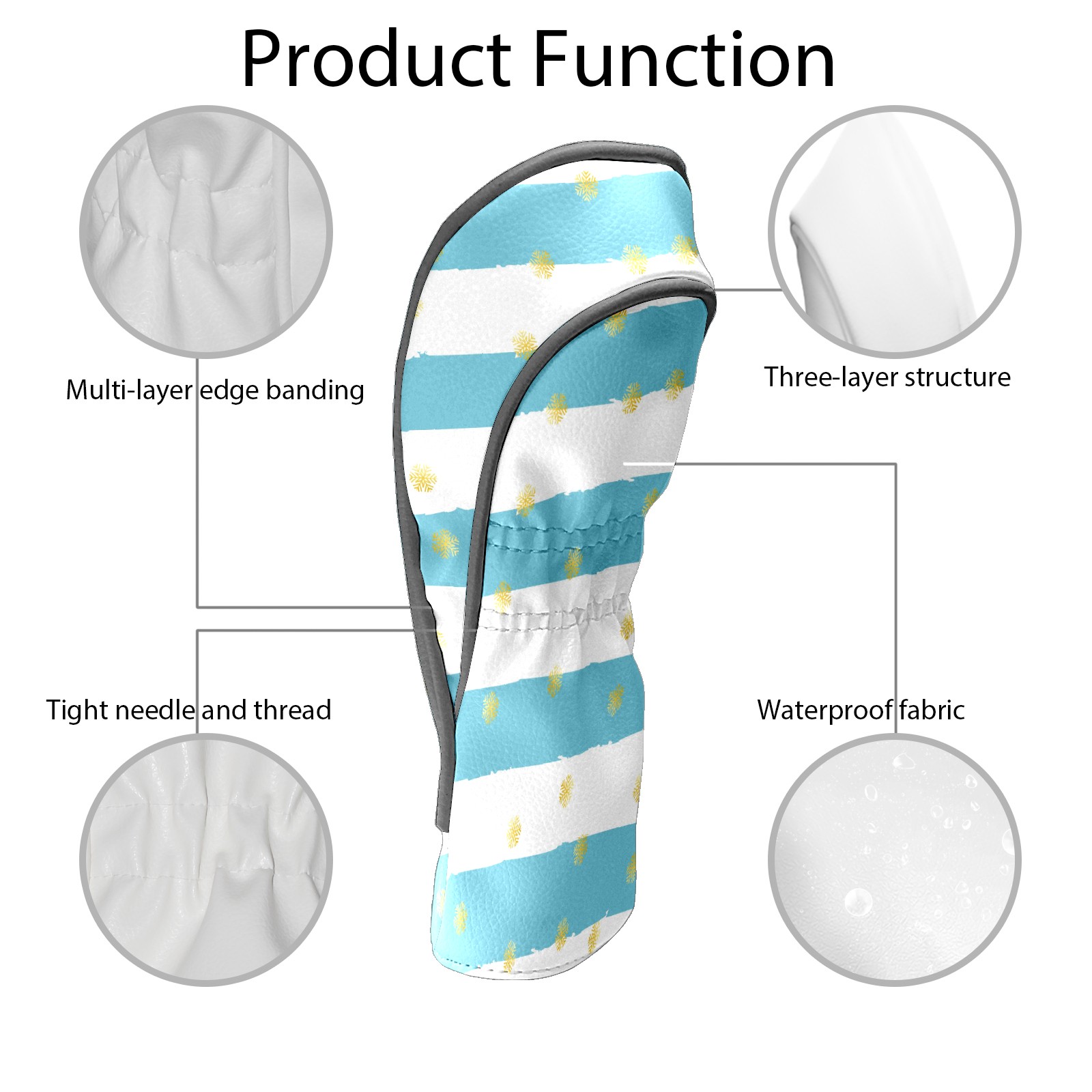 Golf Club Head Cover Waterproof Leather for Driver & Fairway Wood, Driver Headcovers, Golf Accessories for Men Women, Anti-Scratch, Golf Gift for Golfers, 1/3/5 Wood Cover Pinstripe