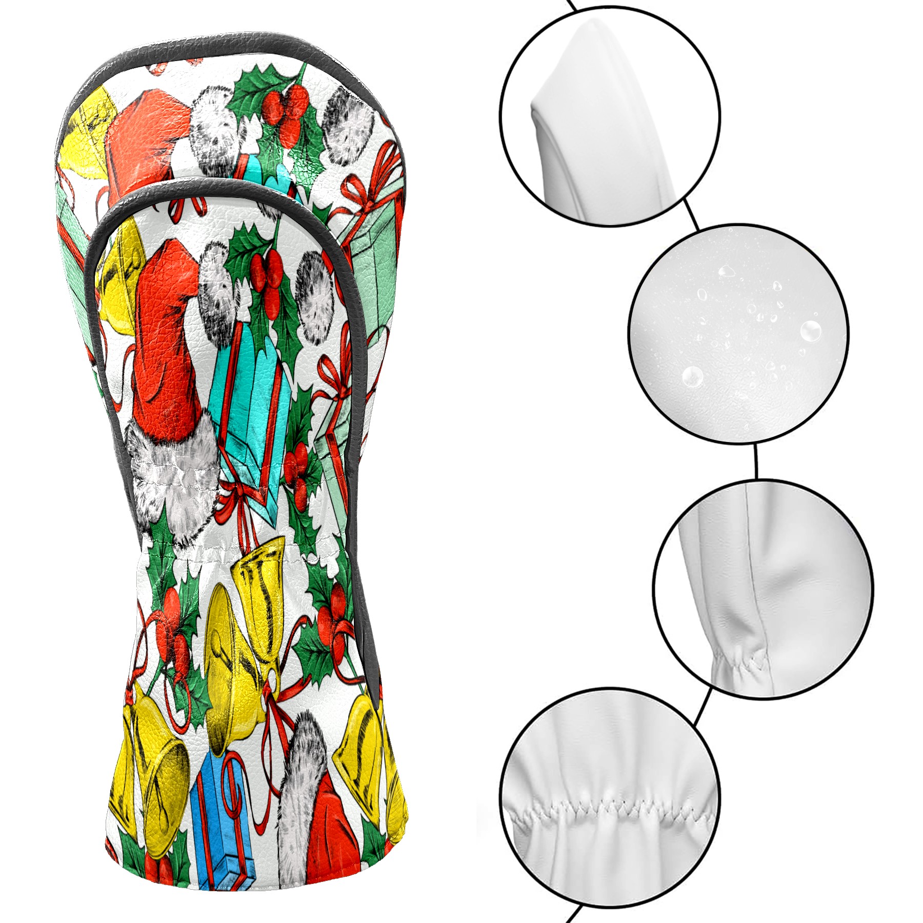 Golf Club Head Cover Waterproof Leather for Driver & Fairway Wood, Driver Headcovers, Golf Accessories for Men Women, Anti-Scratch, Golf Gift for Golfers, 1/3/5 Wood Cover Audrey Brown twin homed Christmas hat Christmas bell Bedding Set