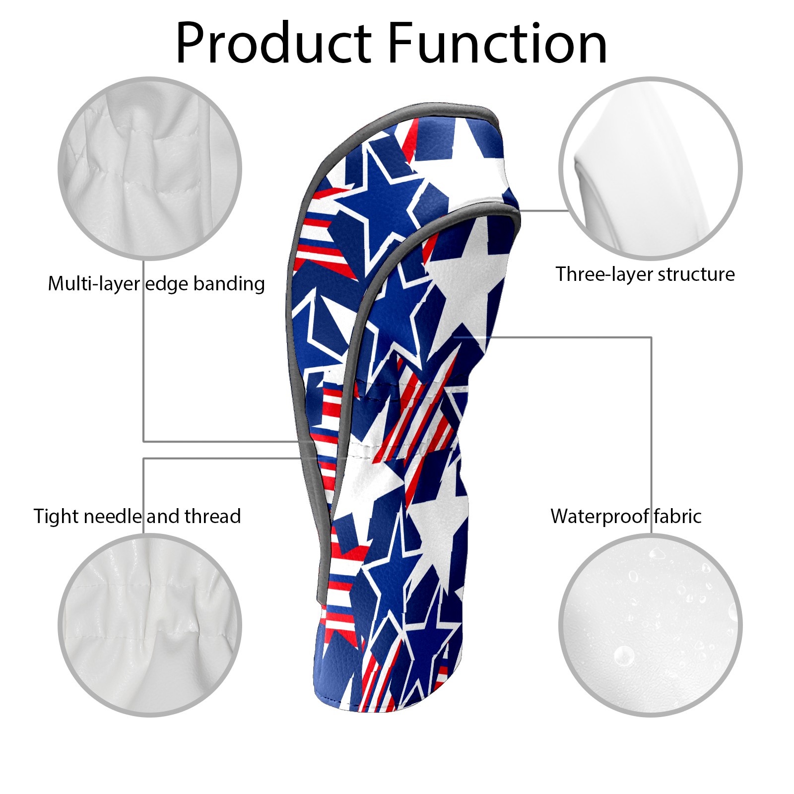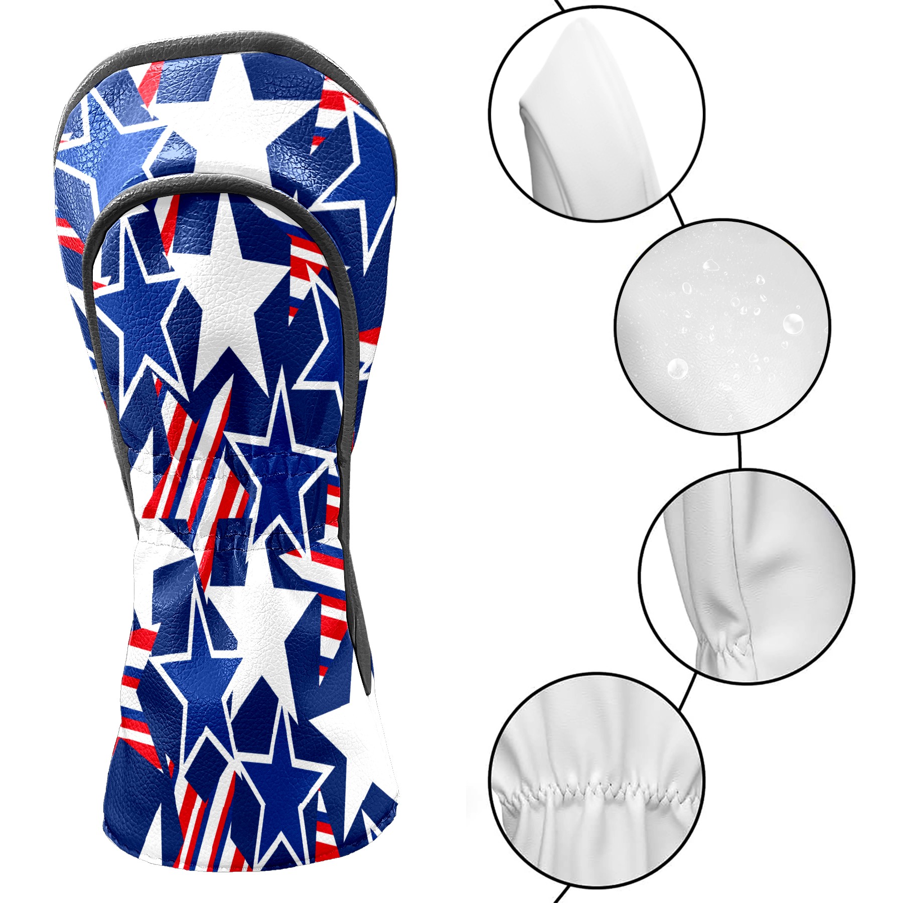 Golf Club Head Cover Waterproof Leather for Driver & Fairway Wood, Driver Headcovers, Golf Accessories for Men Women, Anti-Scratch, Golf Gift for Golfers, 1/3/5 Wood Cover American Stars Pattern