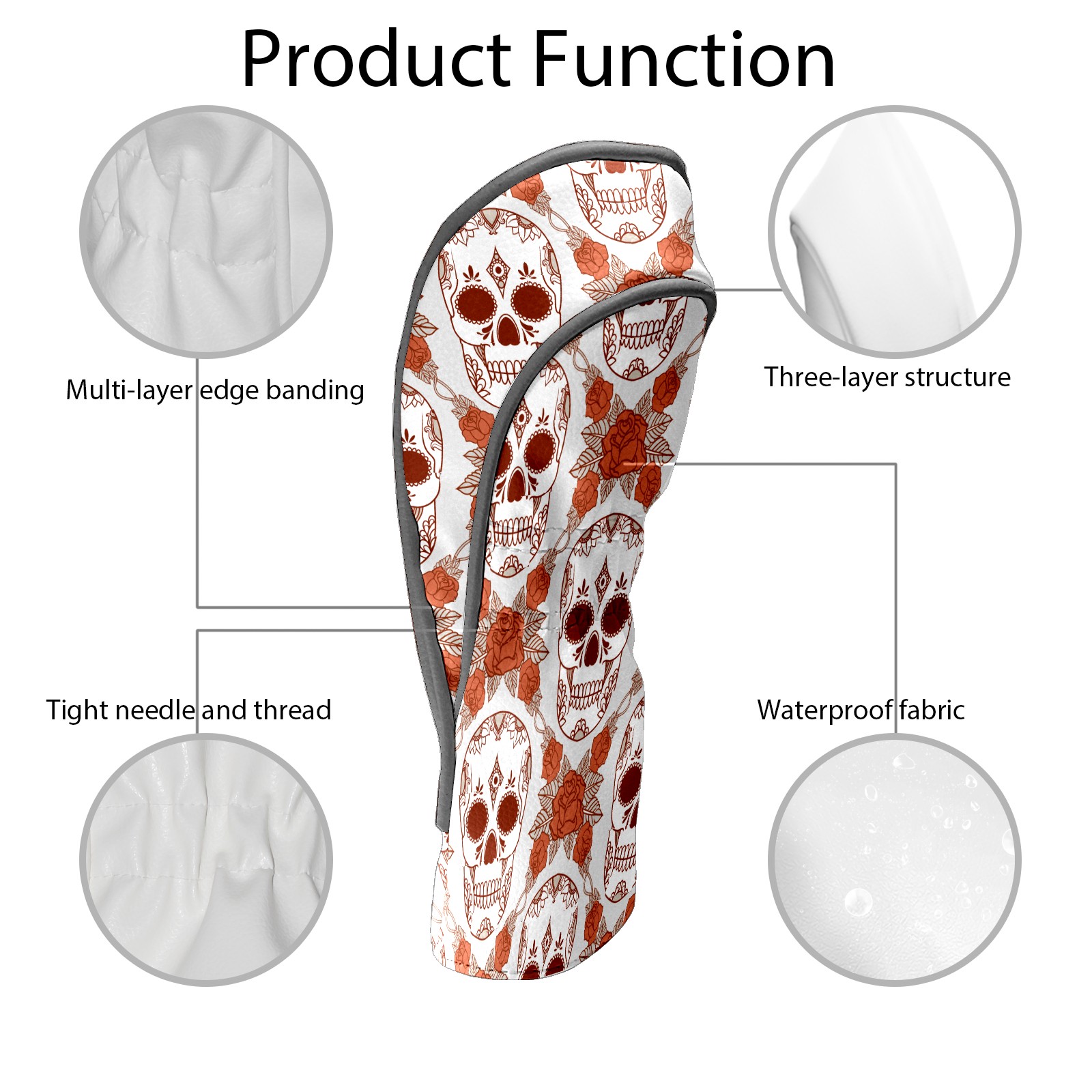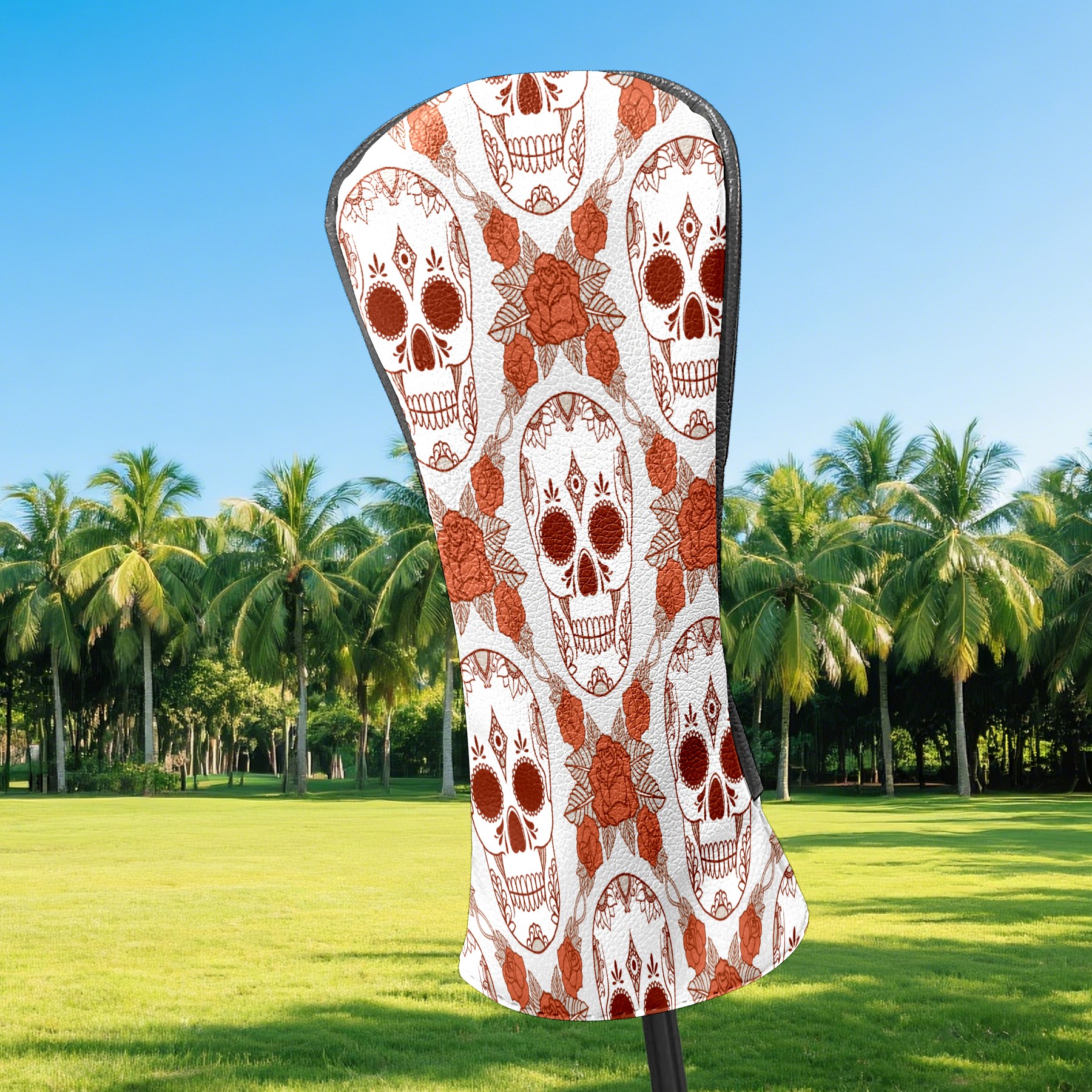 Golf Club Head Cover Waterproof Leather for Driver & Fairway Wood, Driver Headcovers, Golf Accessories for Men Women, Anti-Scratch, Golf Gift for Golfers, 1/3/5 Wood Cover Retro Skull Florals Pattern