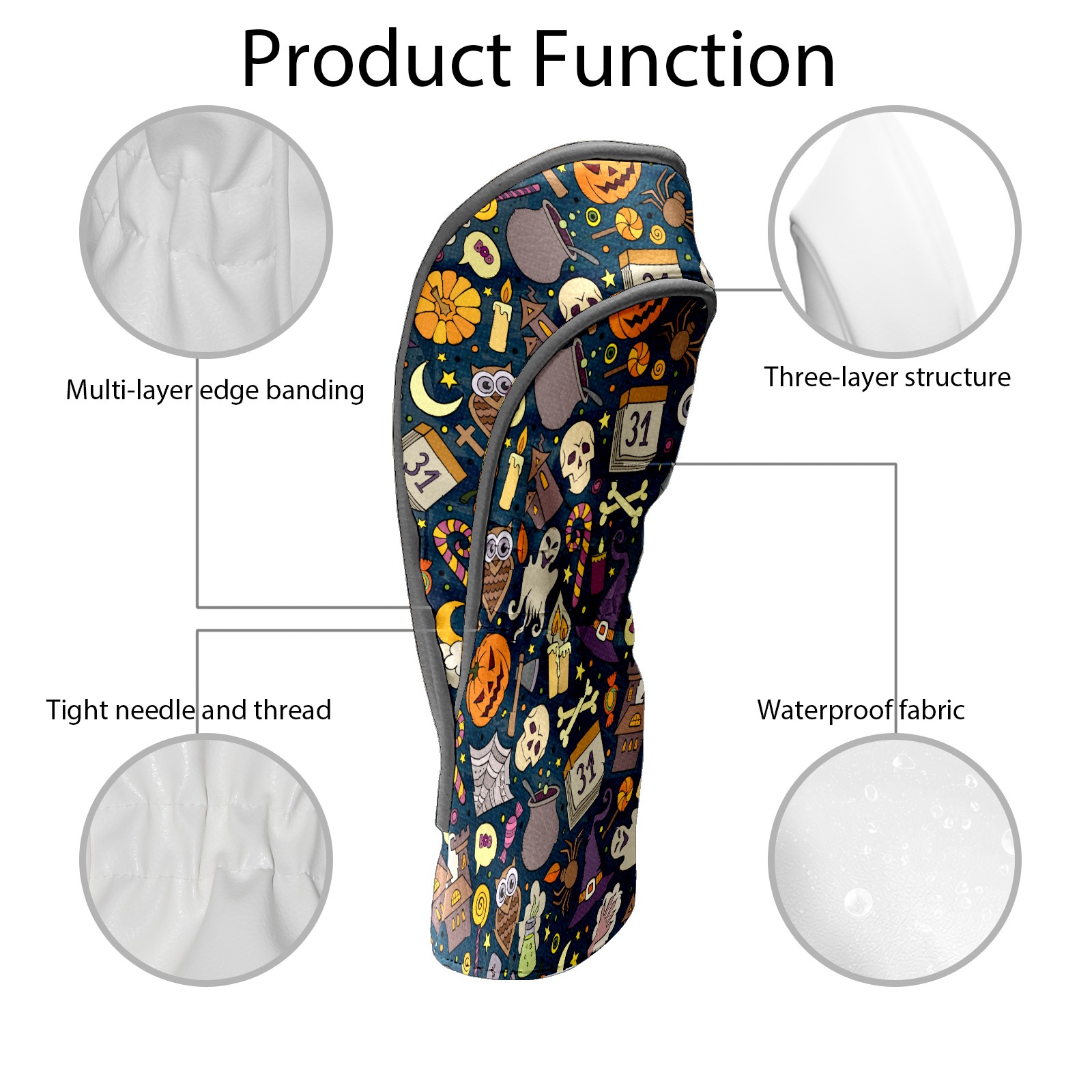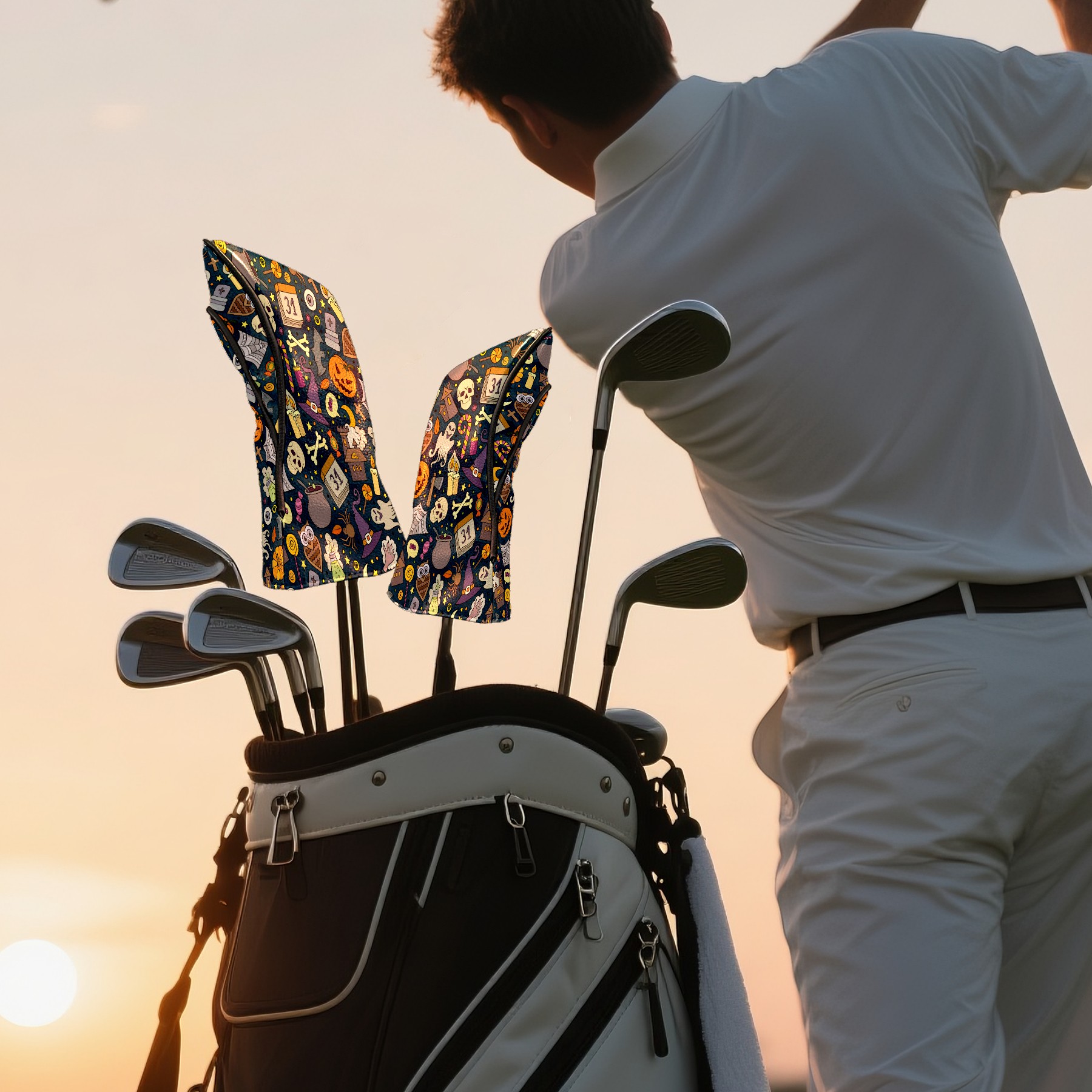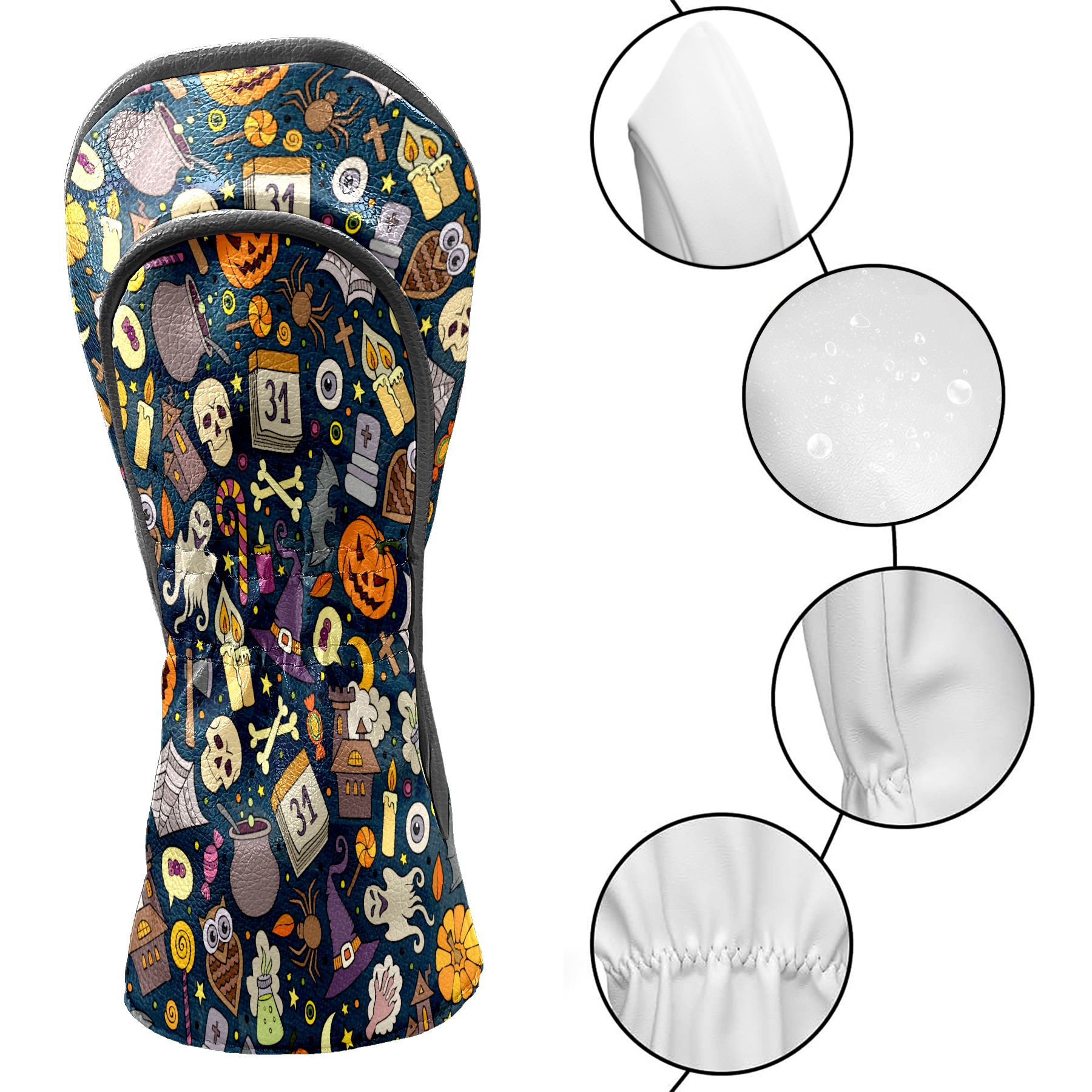 Golf Club Head Cover Waterproof Leather for Driver & Fairway Wood, Driver Headcovers, Golf Accessories for Men Women, Anti-Scratch, Golf Gift for Golfers, 1/3/5 Wood Cover Halloween