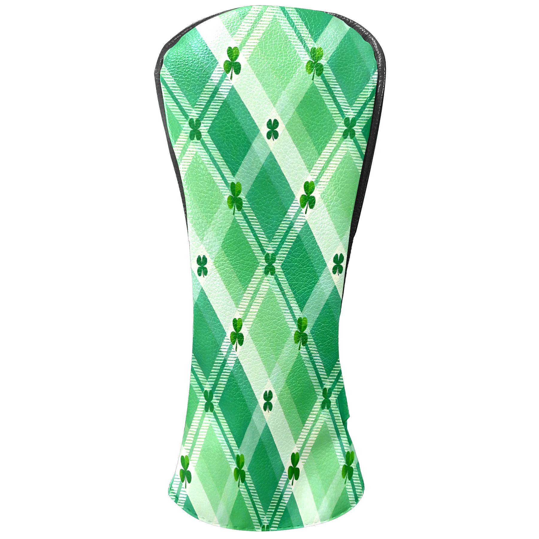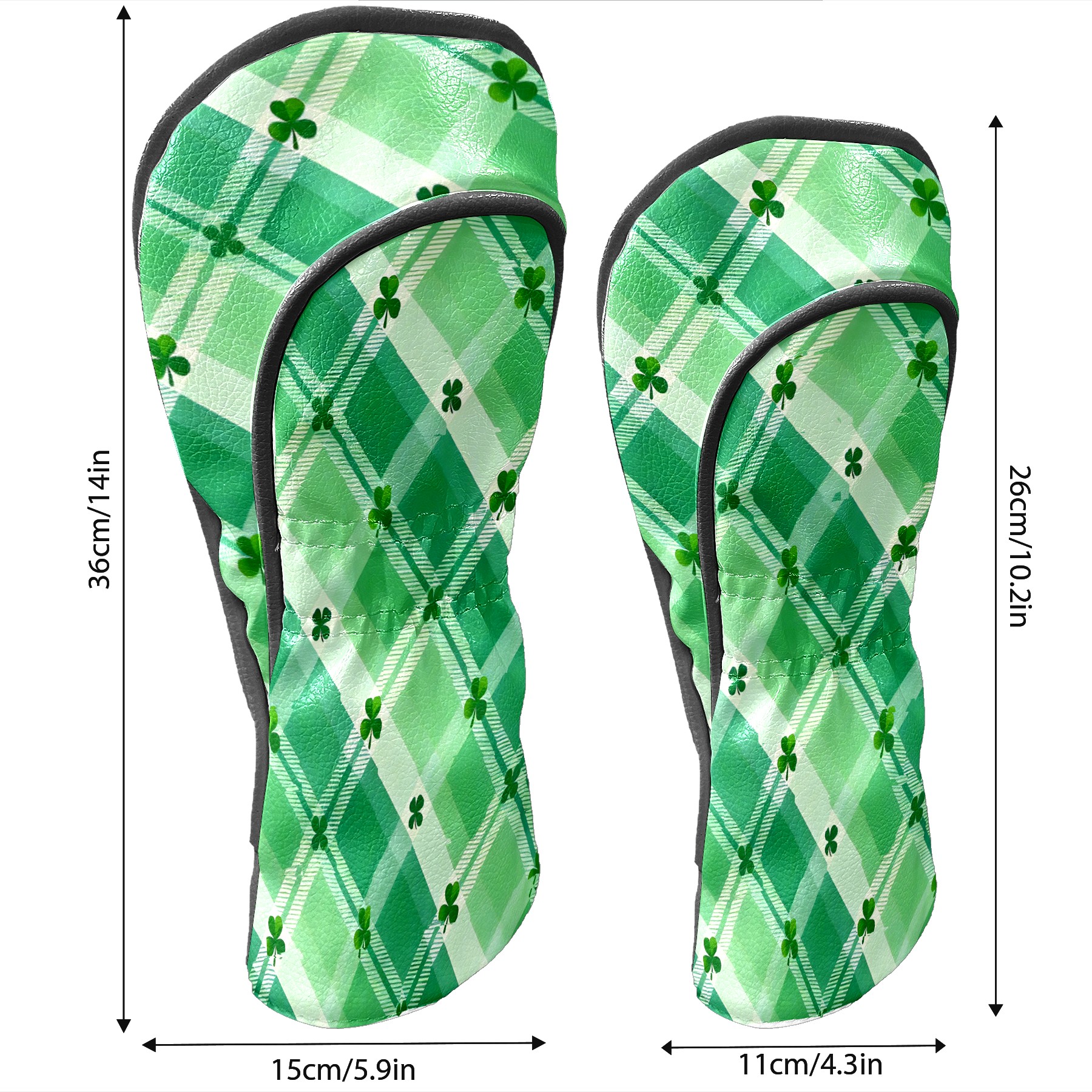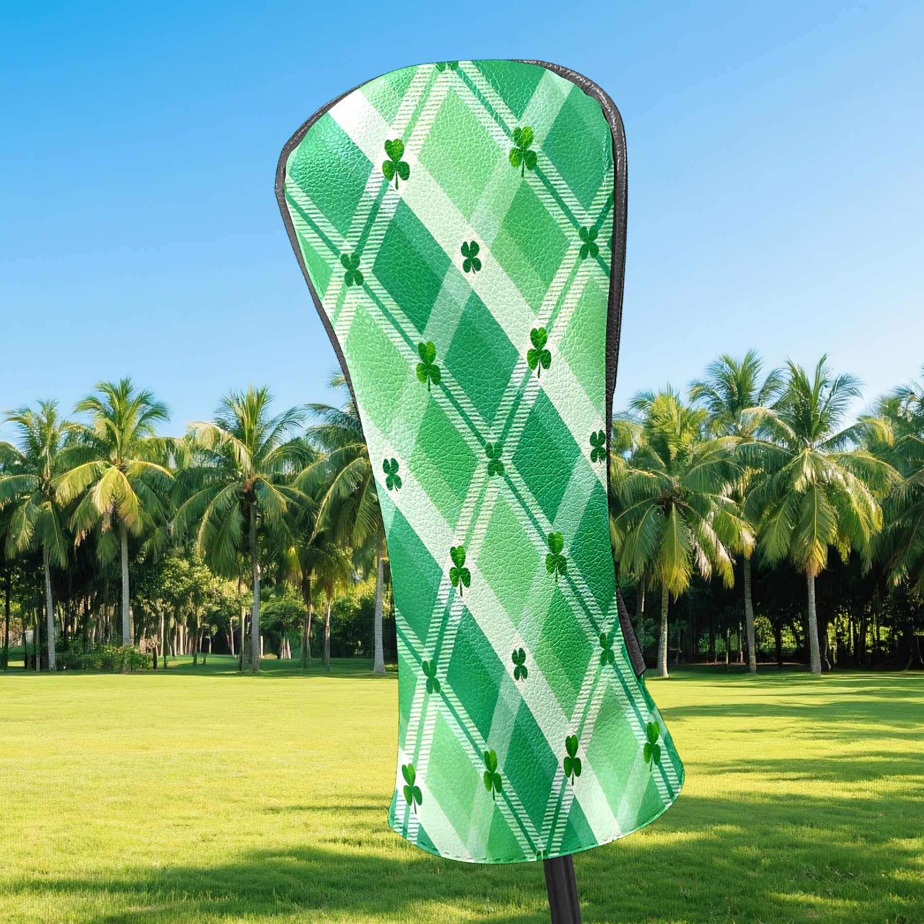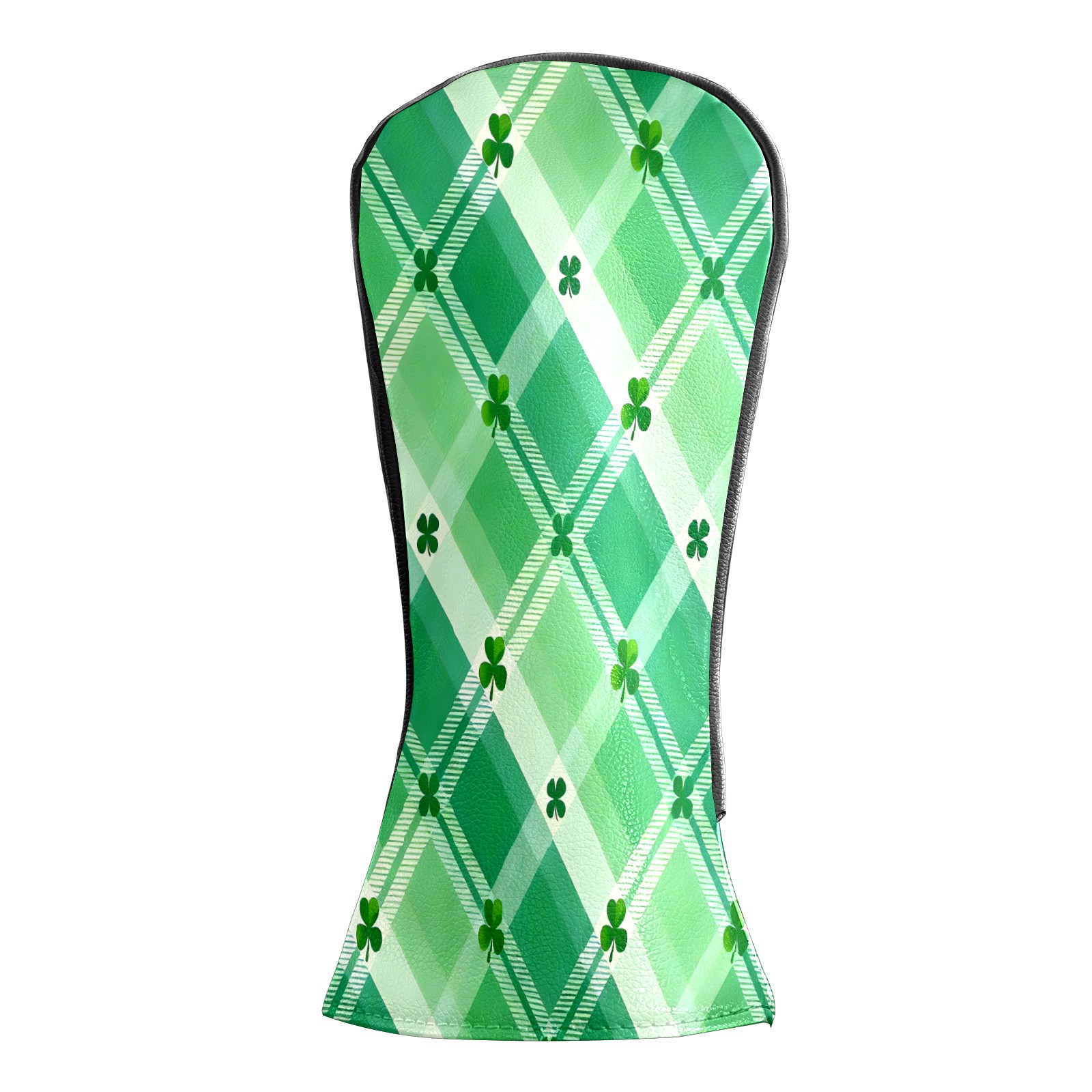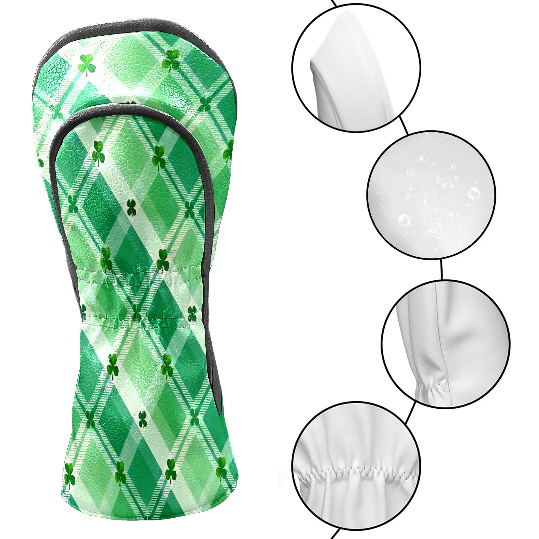 Golf Club Covers Premium Leather Driver Headcover, Golf Head Covers for Woods and Driver Waterproof Golf Headcovers with Anti-Scratch Lining for Women Men (Clover Checkered Green)
