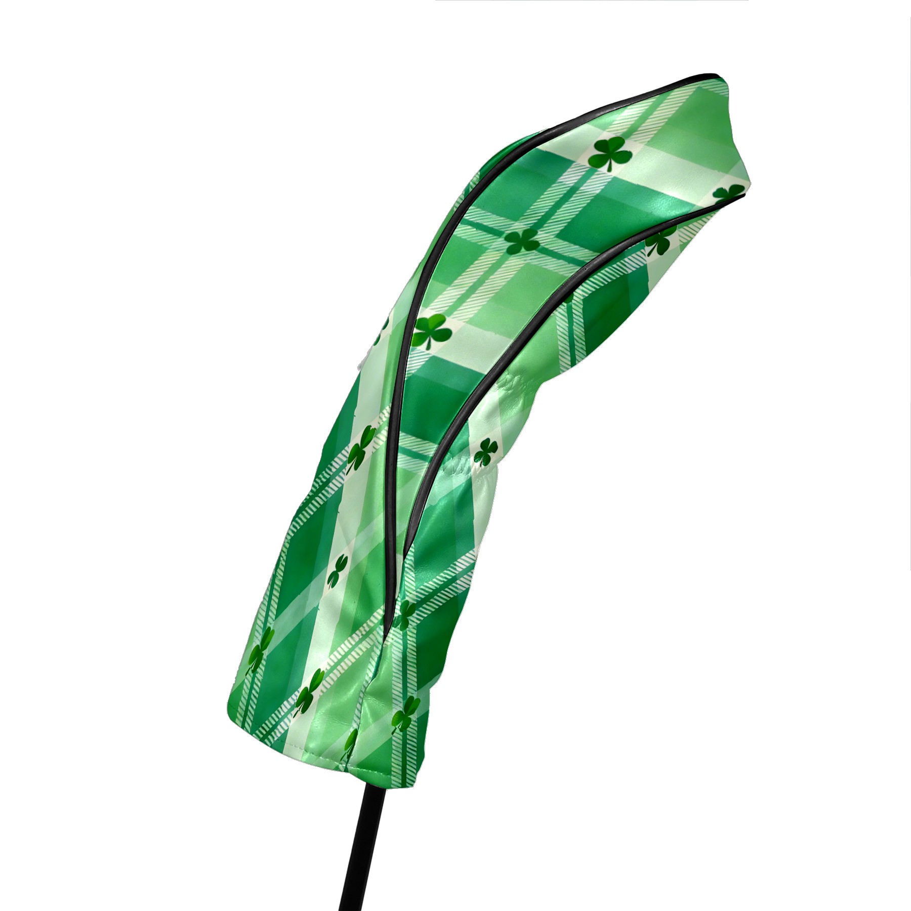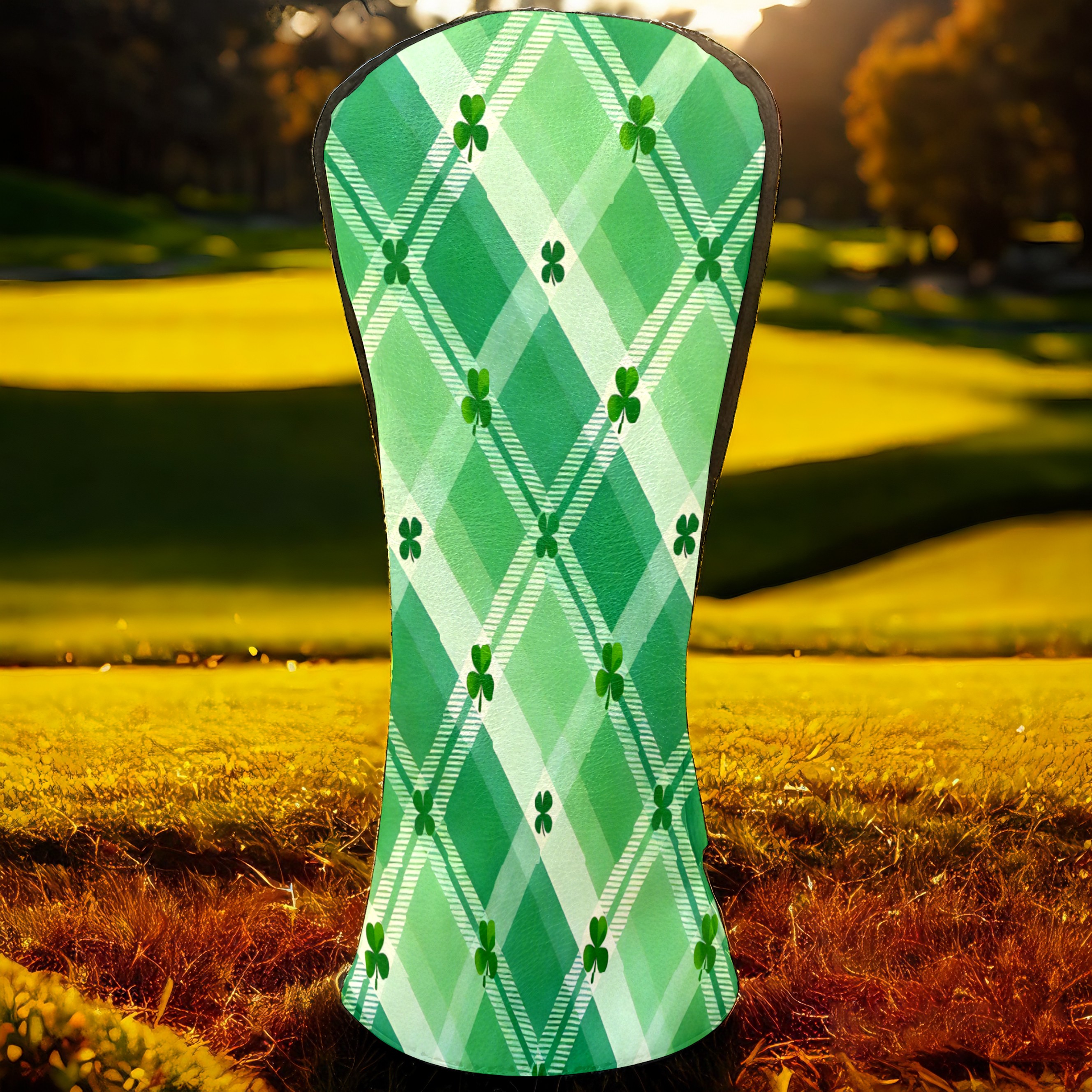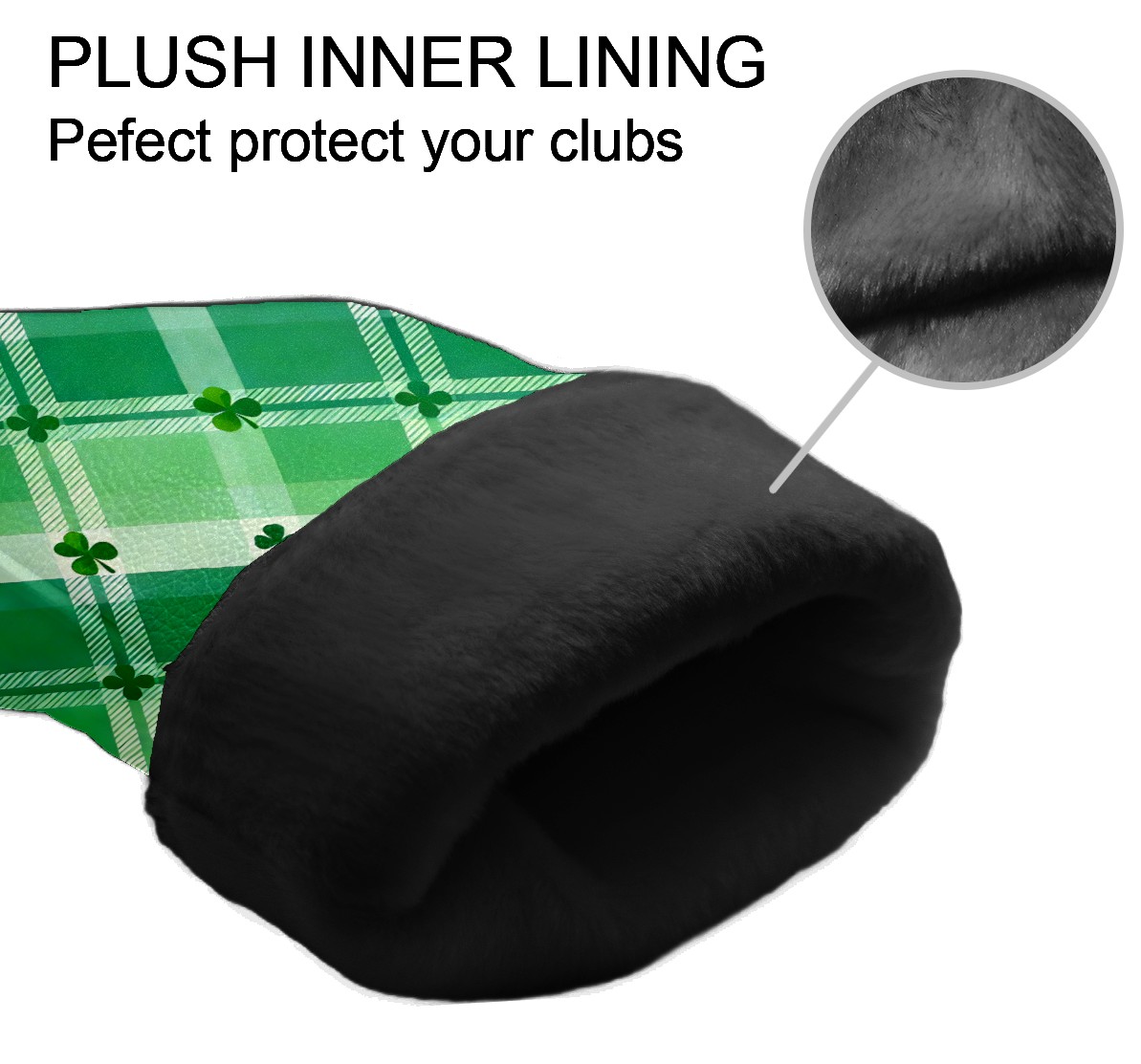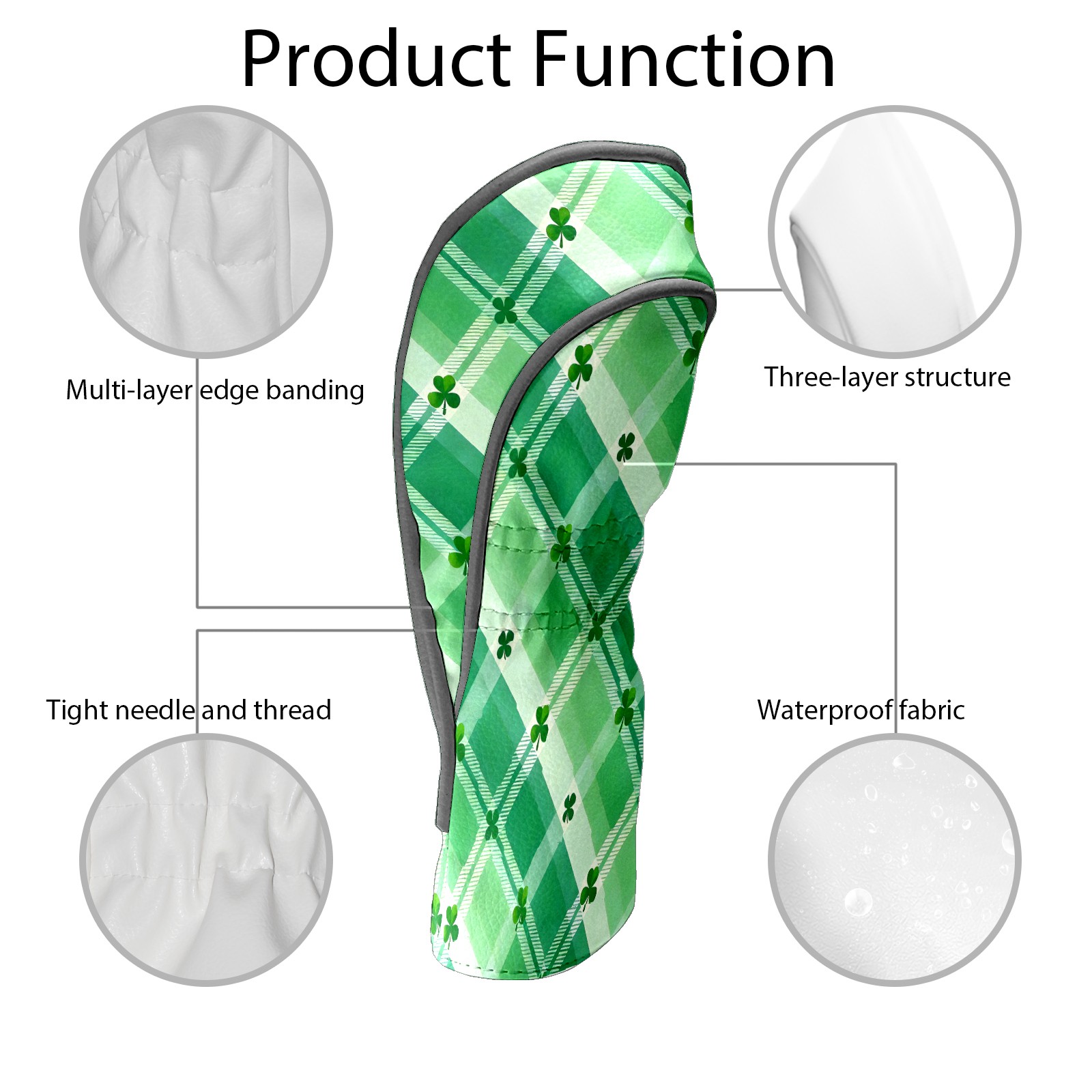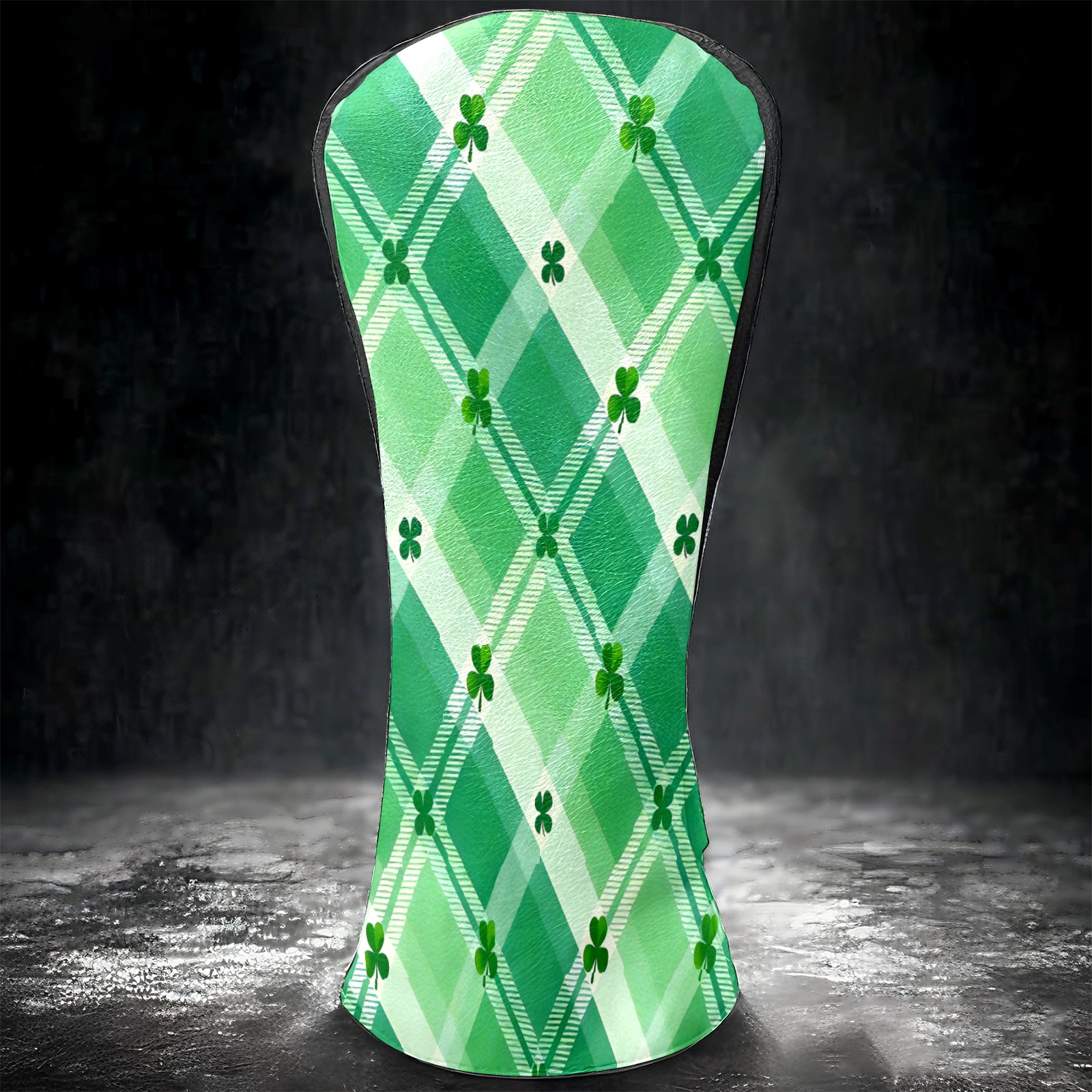 Golf Club Covers Premium Leather Driver Headcover, Golf Head Covers for Woods and Driver Waterproof Golf Headcovers with Anti-Scratch Lining for Women Men (Clover Checkered Green)
