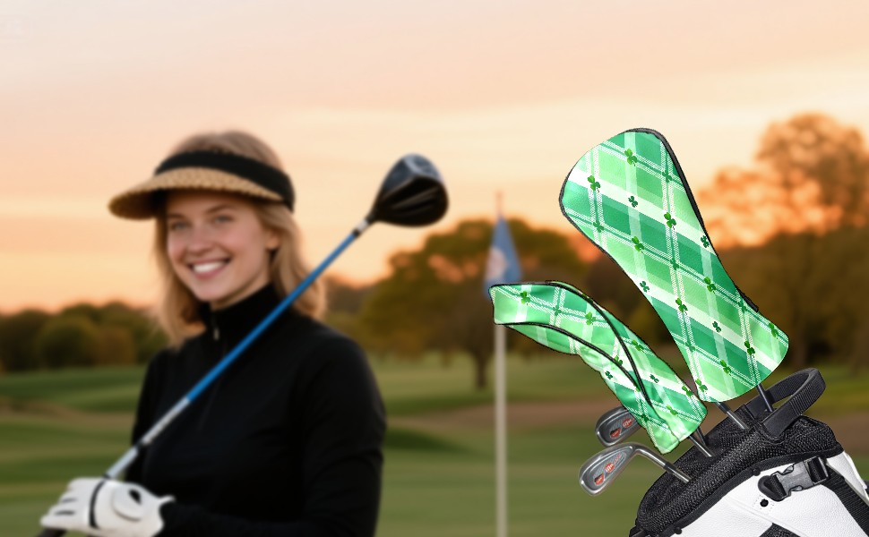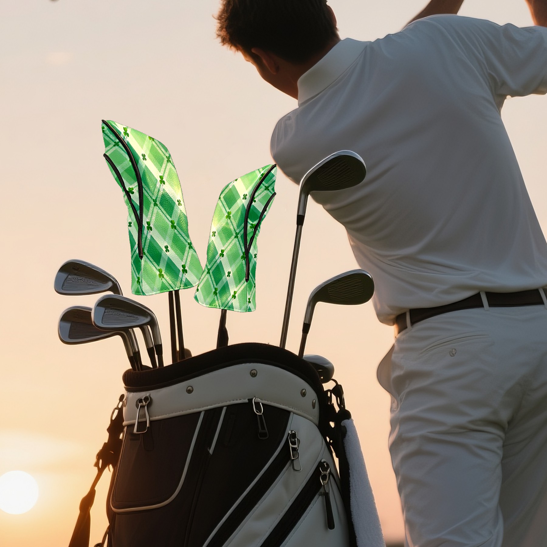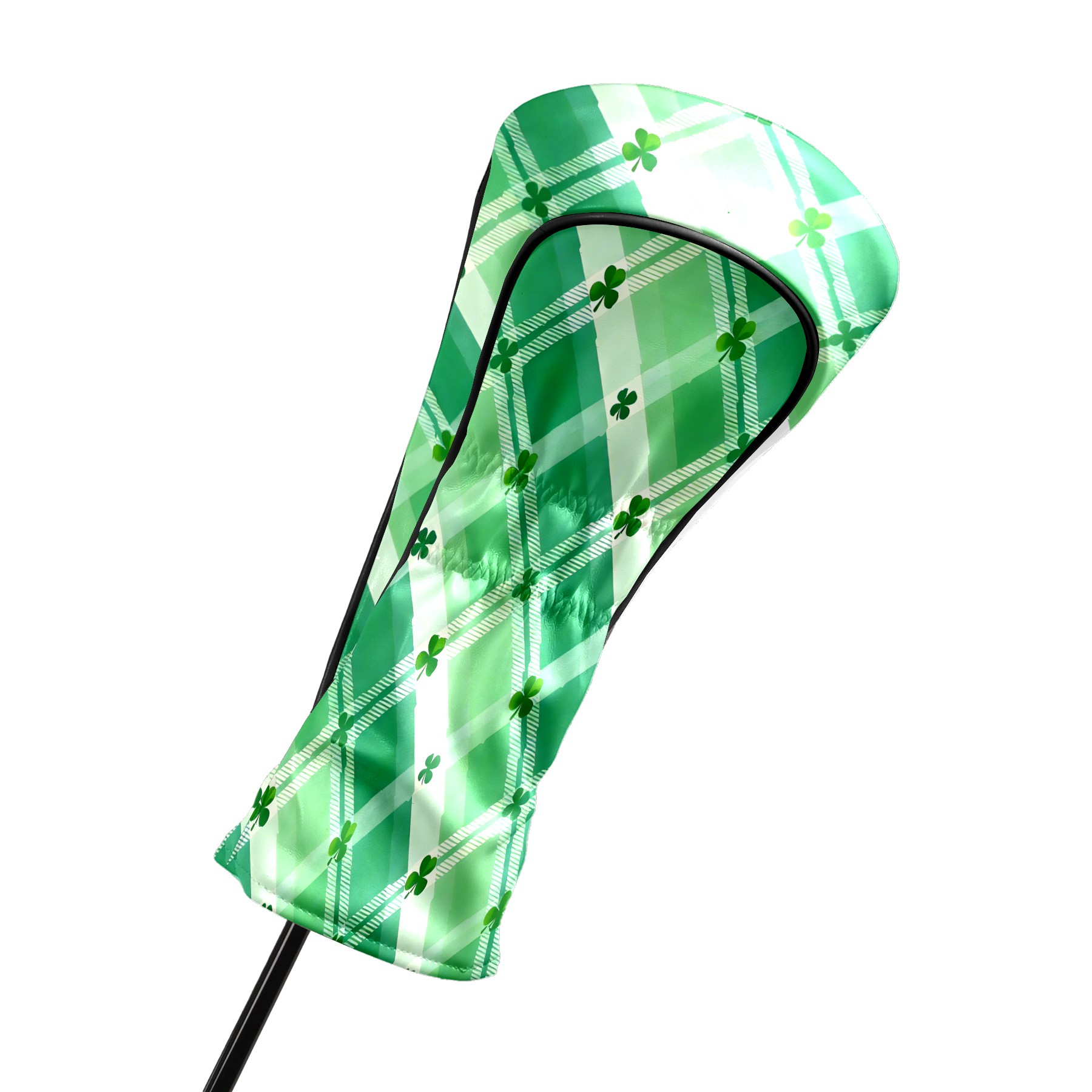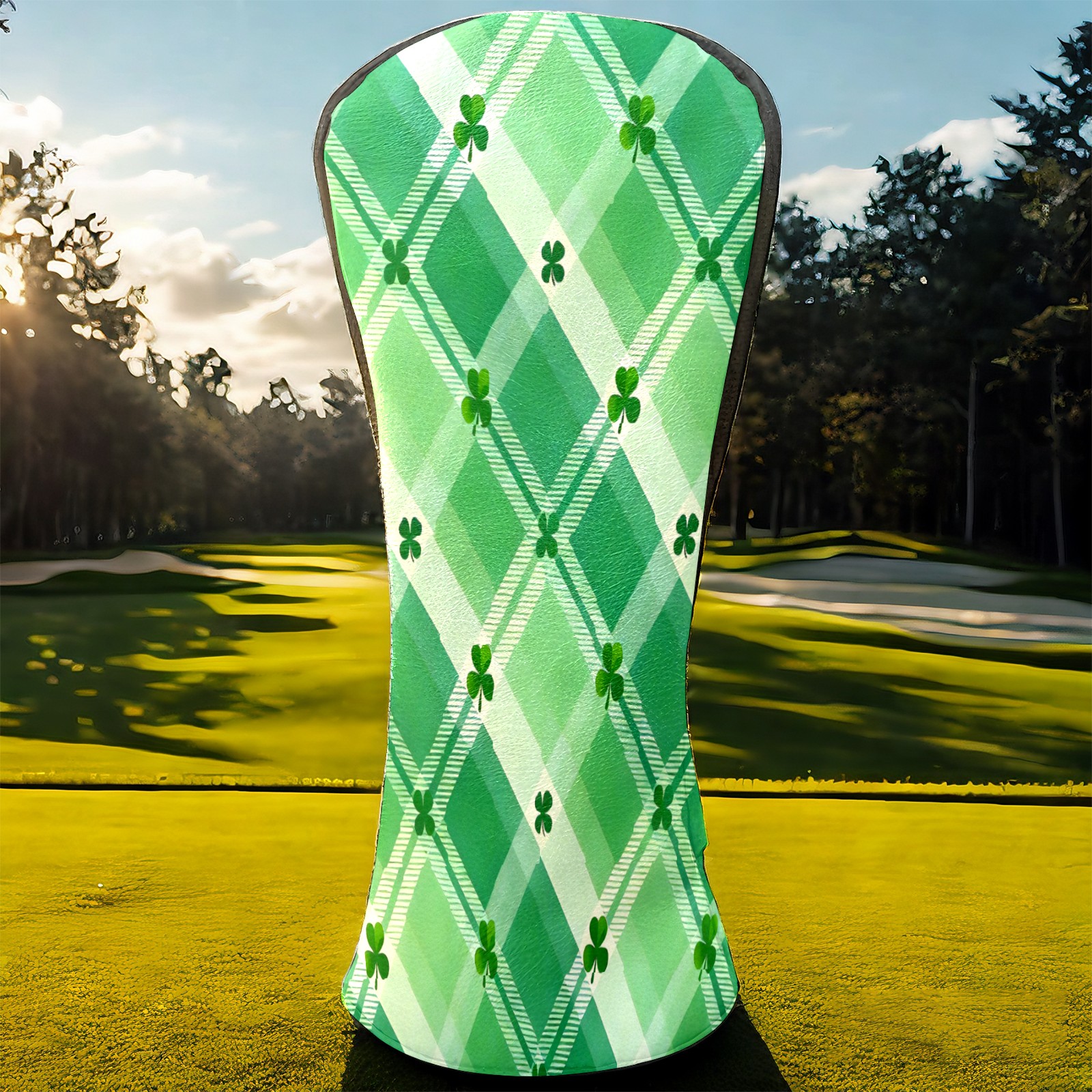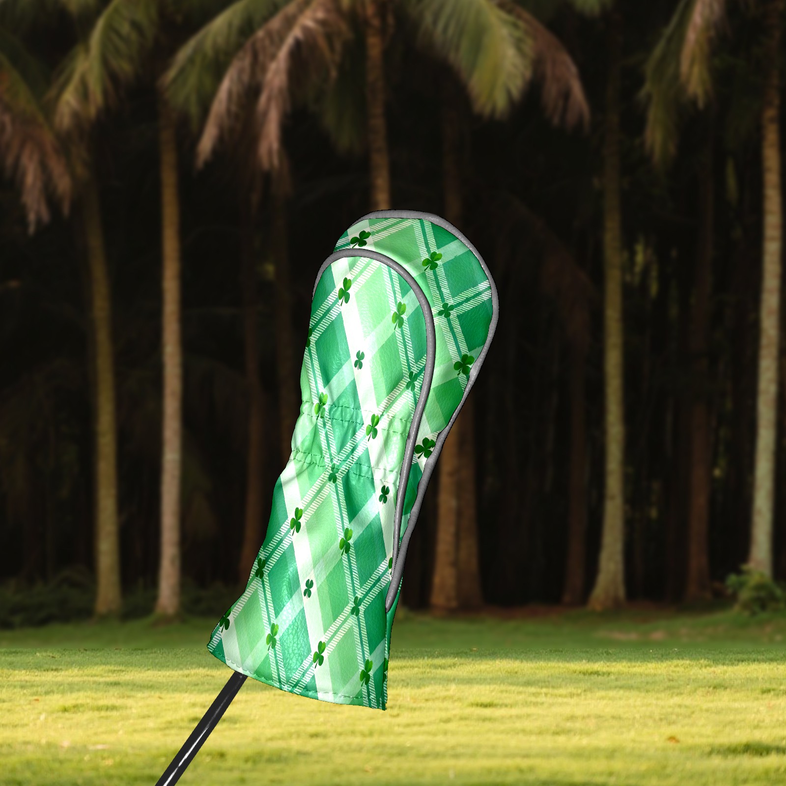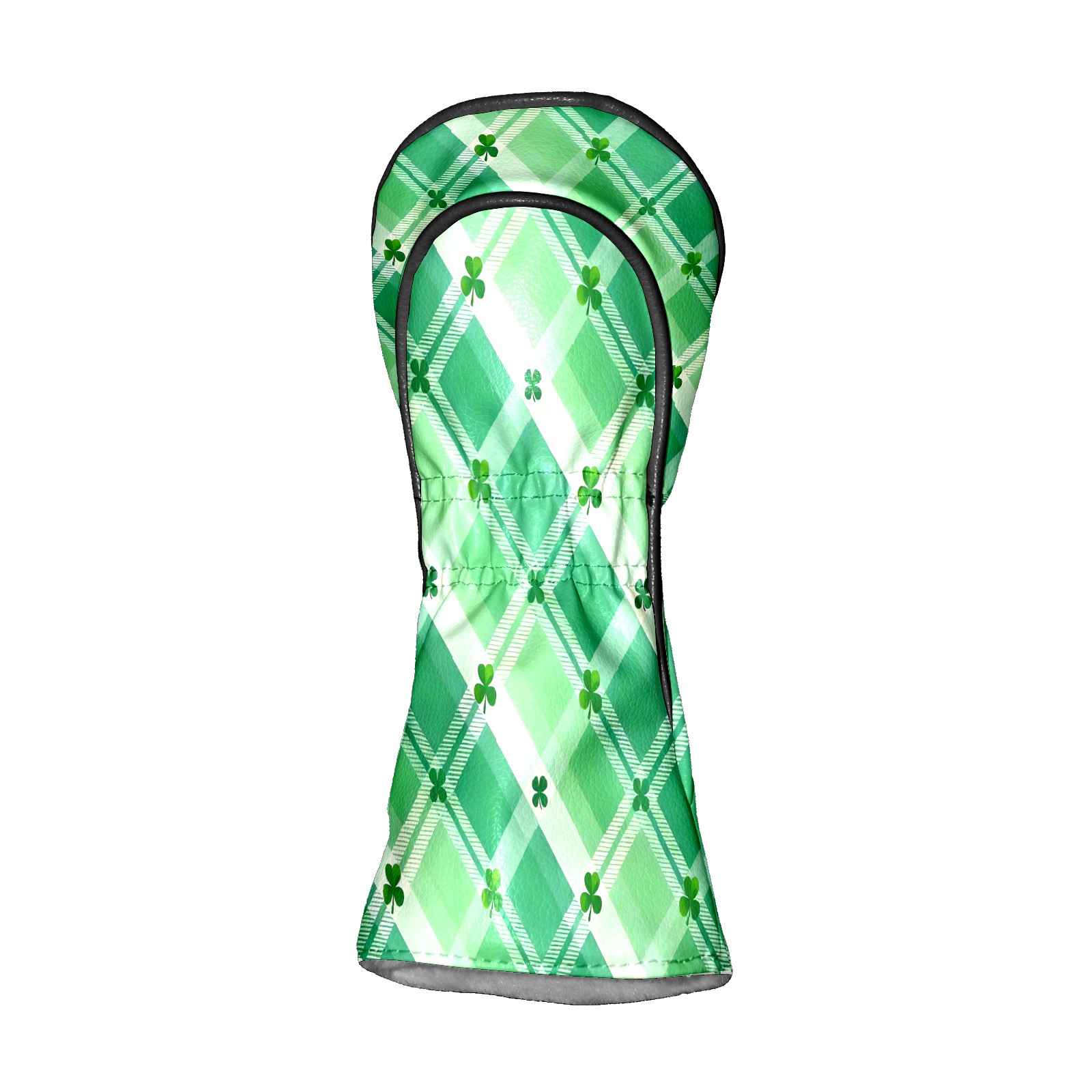 Golf Club Covers Premium Leather Driver Headcover, Golf Head Covers for Woods and Driver Waterproof Golf Headcovers with Anti-Scratch Lining for Women Men (Clover Checkered Green)