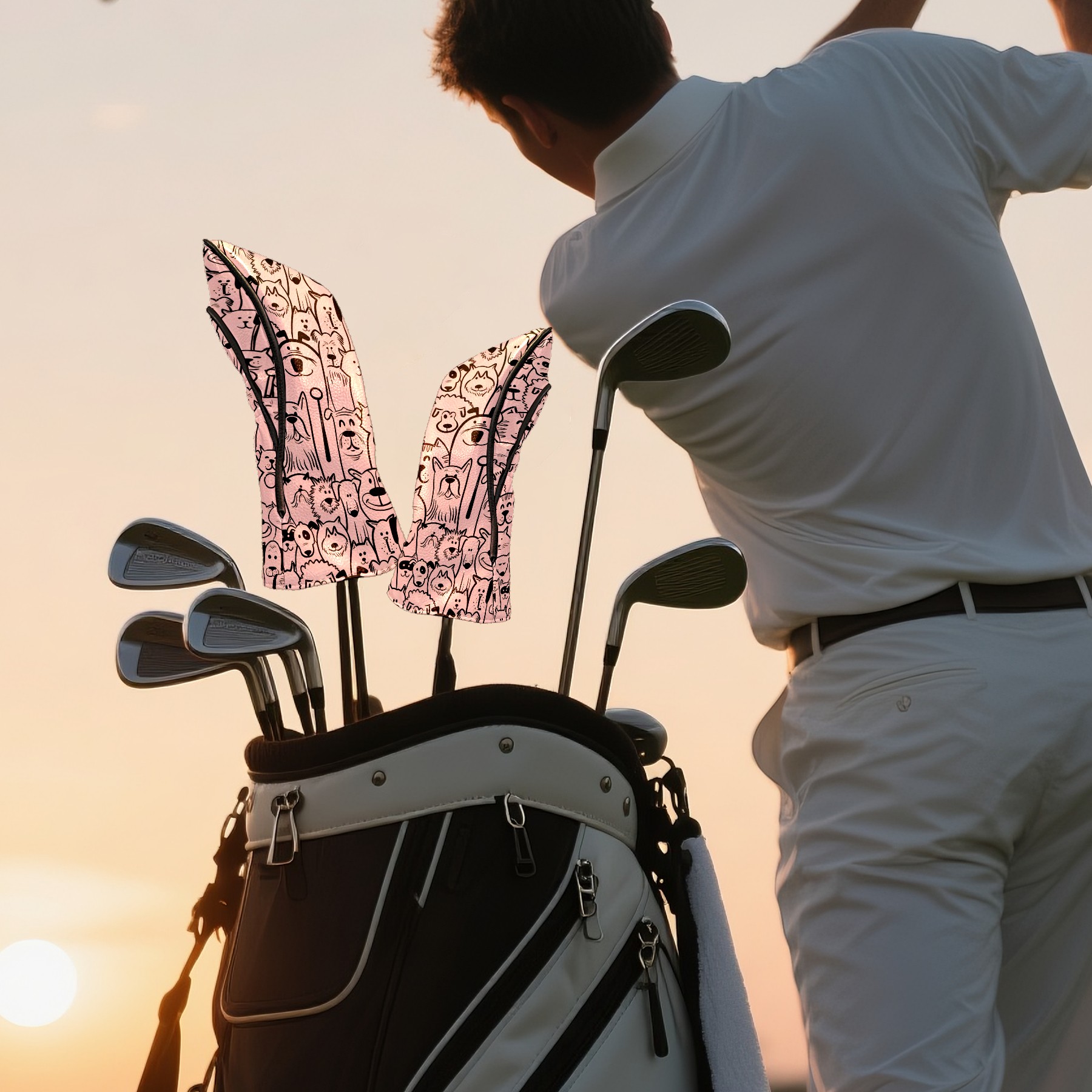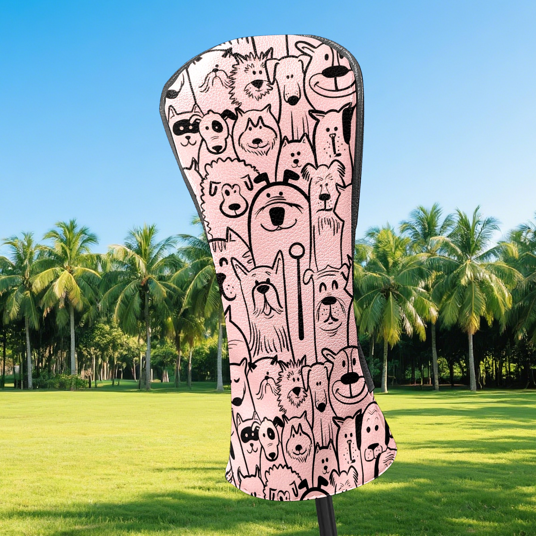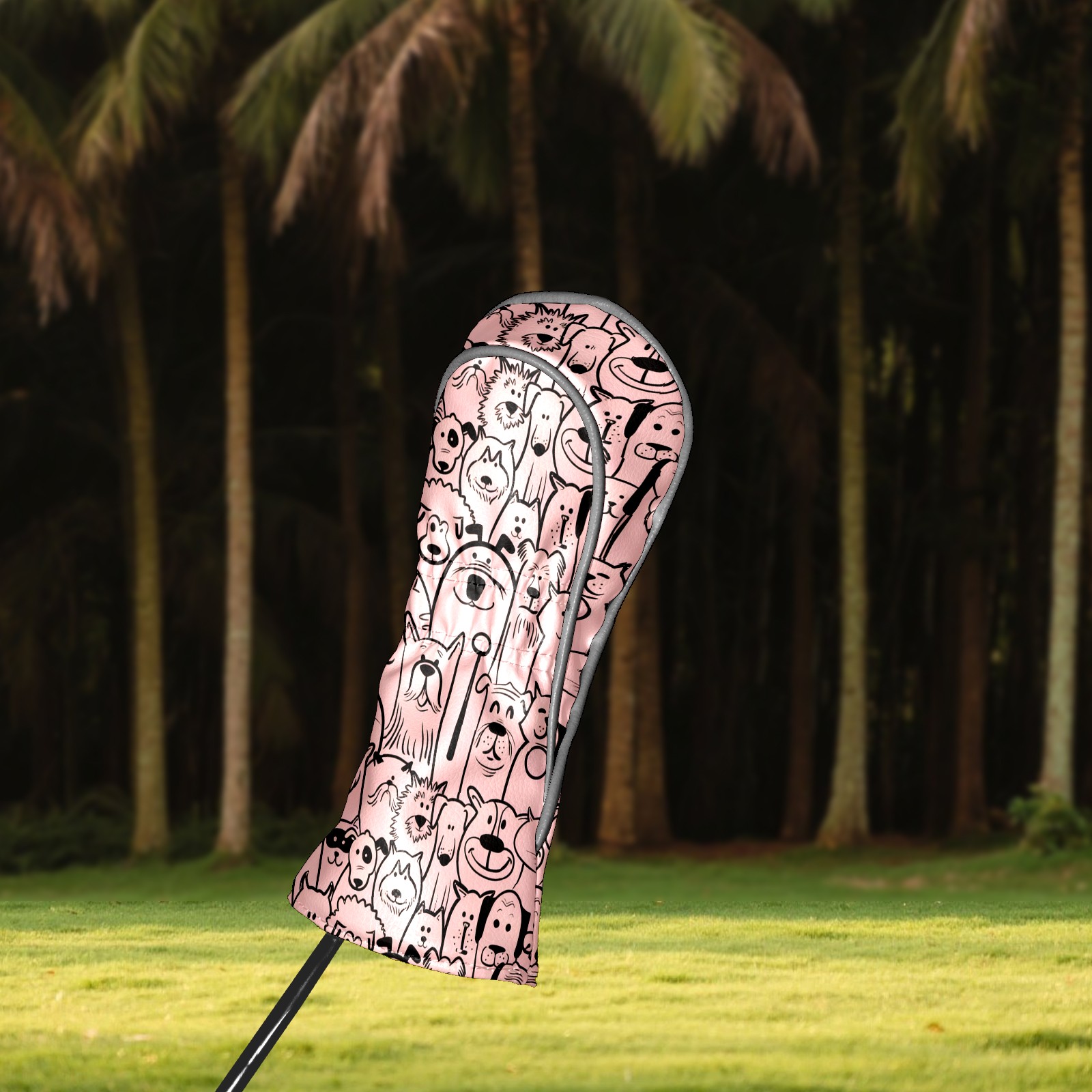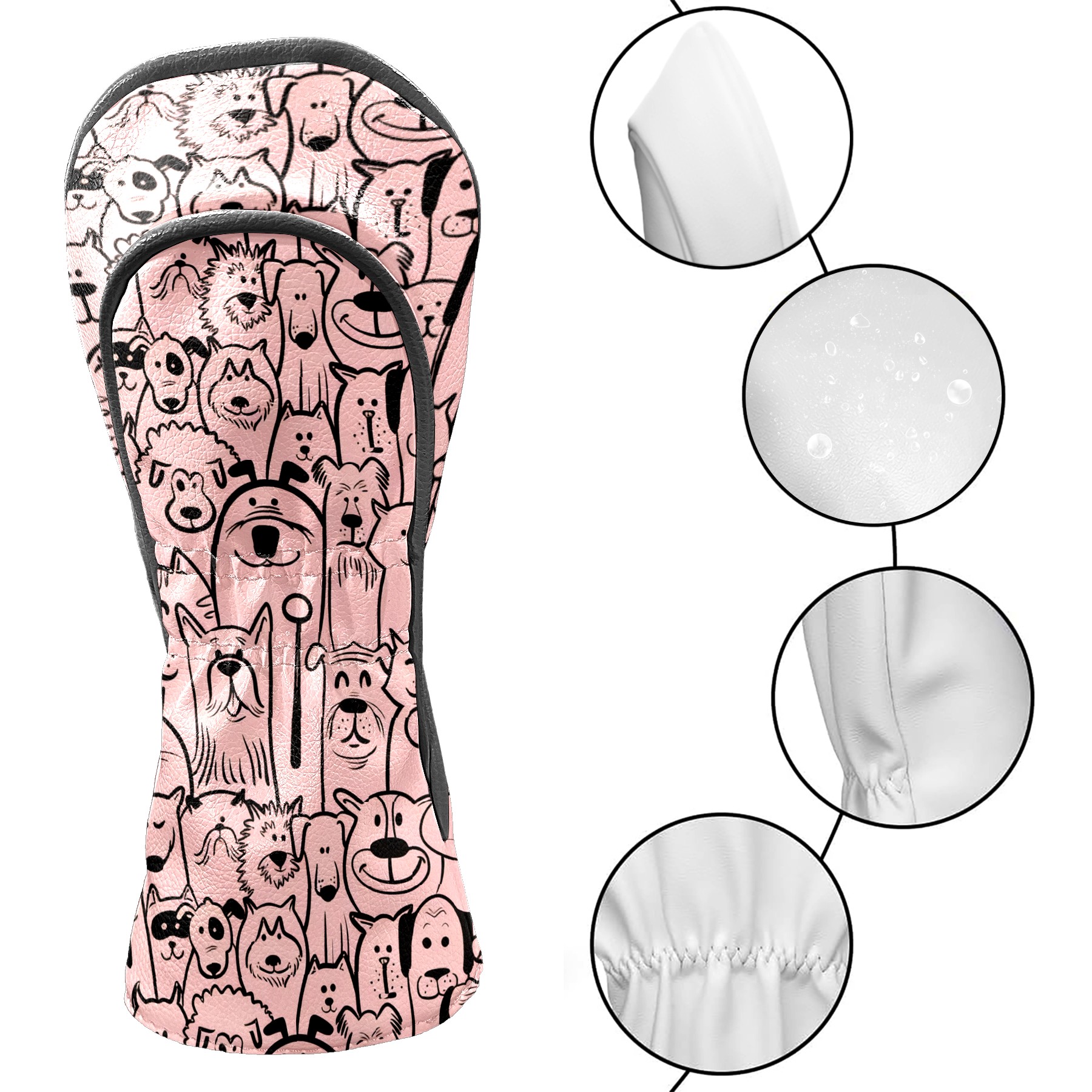 Counullo Golf Head Covers - Funny Fun Doodle Pink Driver Headcover, Durable PU Leather & Soft Velvet Lining, Secure Elastic Band, Perfect Golf Gift for Men