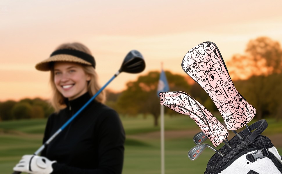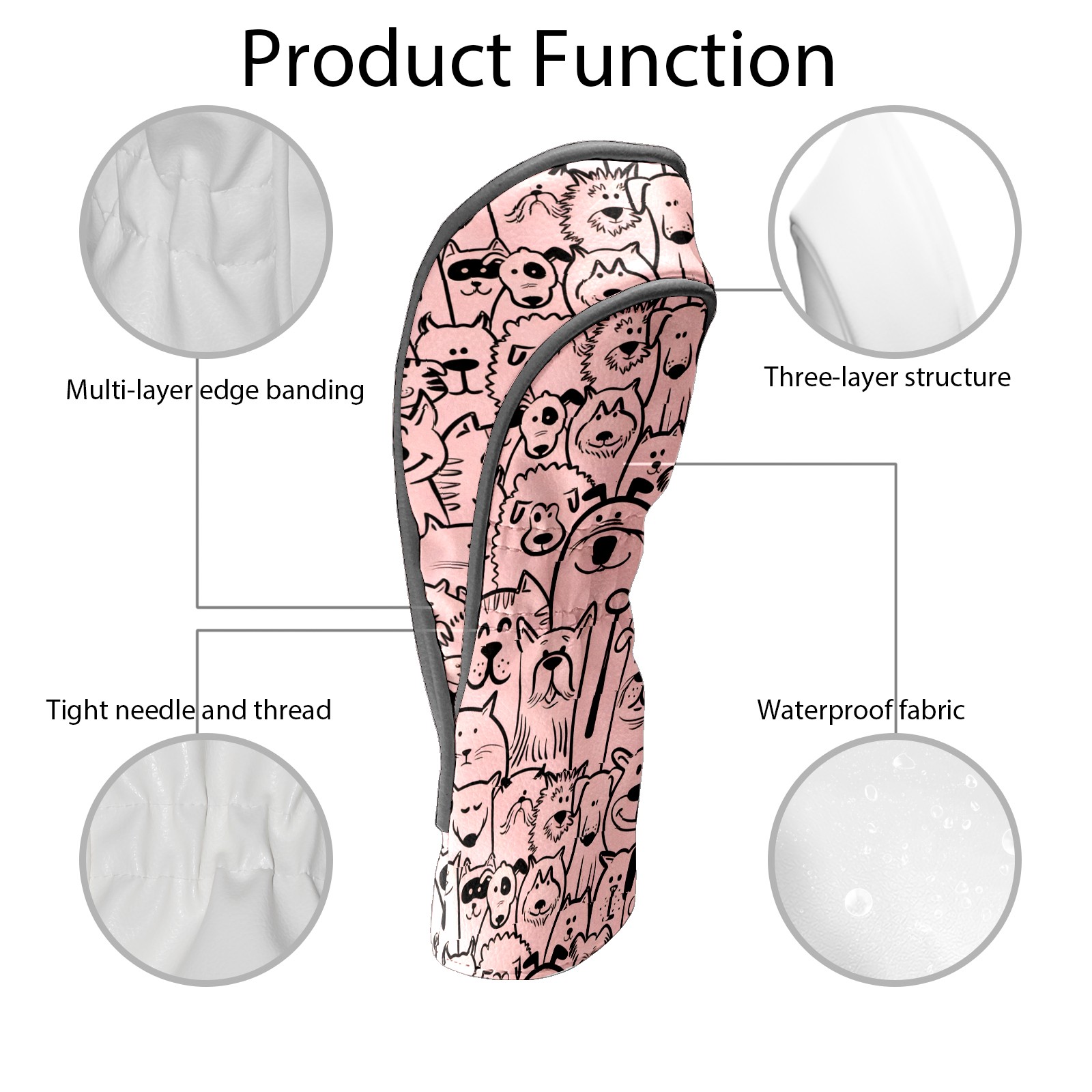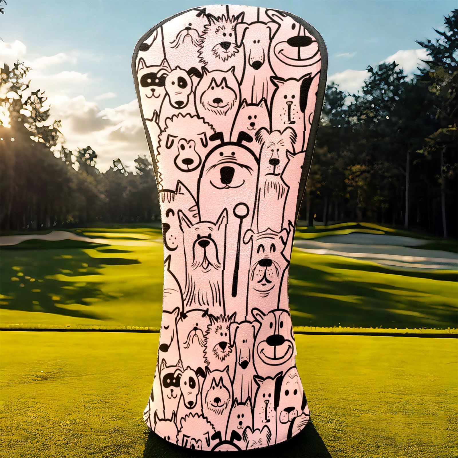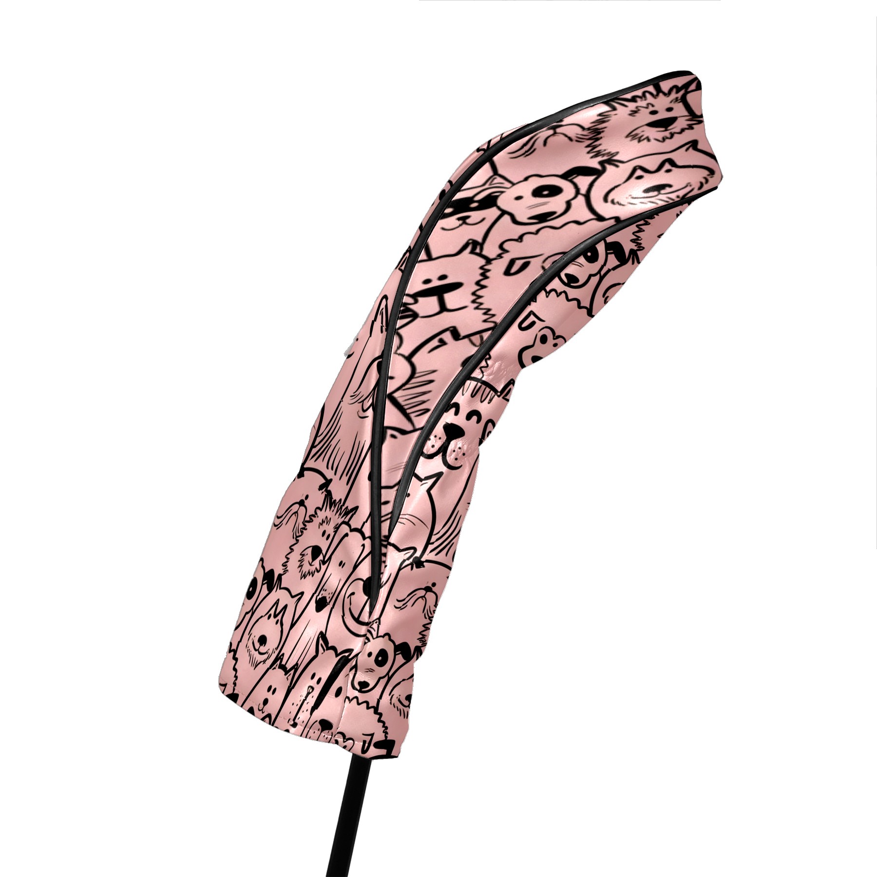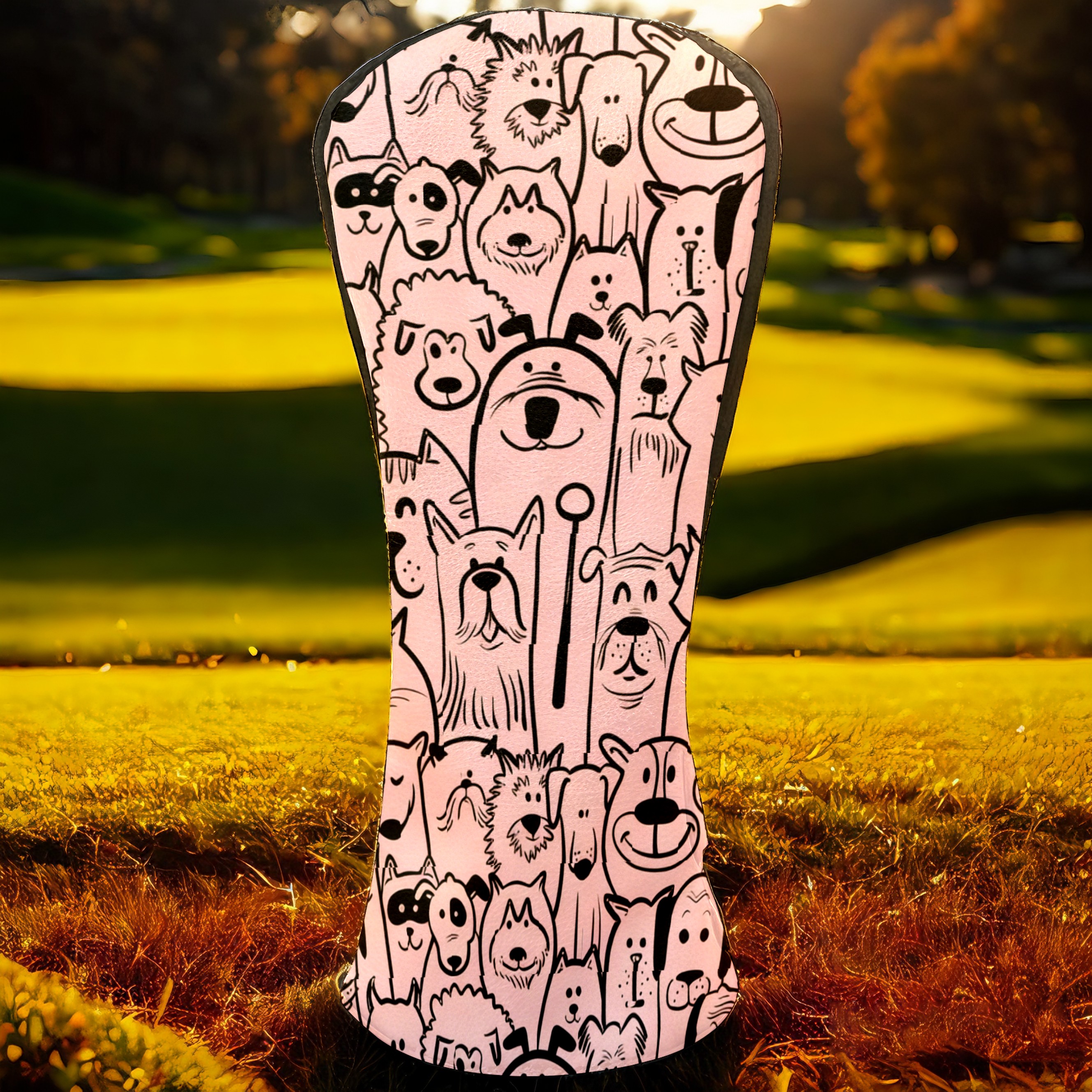 Counullo Golf Head Covers - Funny Fun Doodle Pink Driver Headcover, Durable PU Leather & Soft Velvet Lining, Secure Elastic Band, Perfect Golf Gift for Men