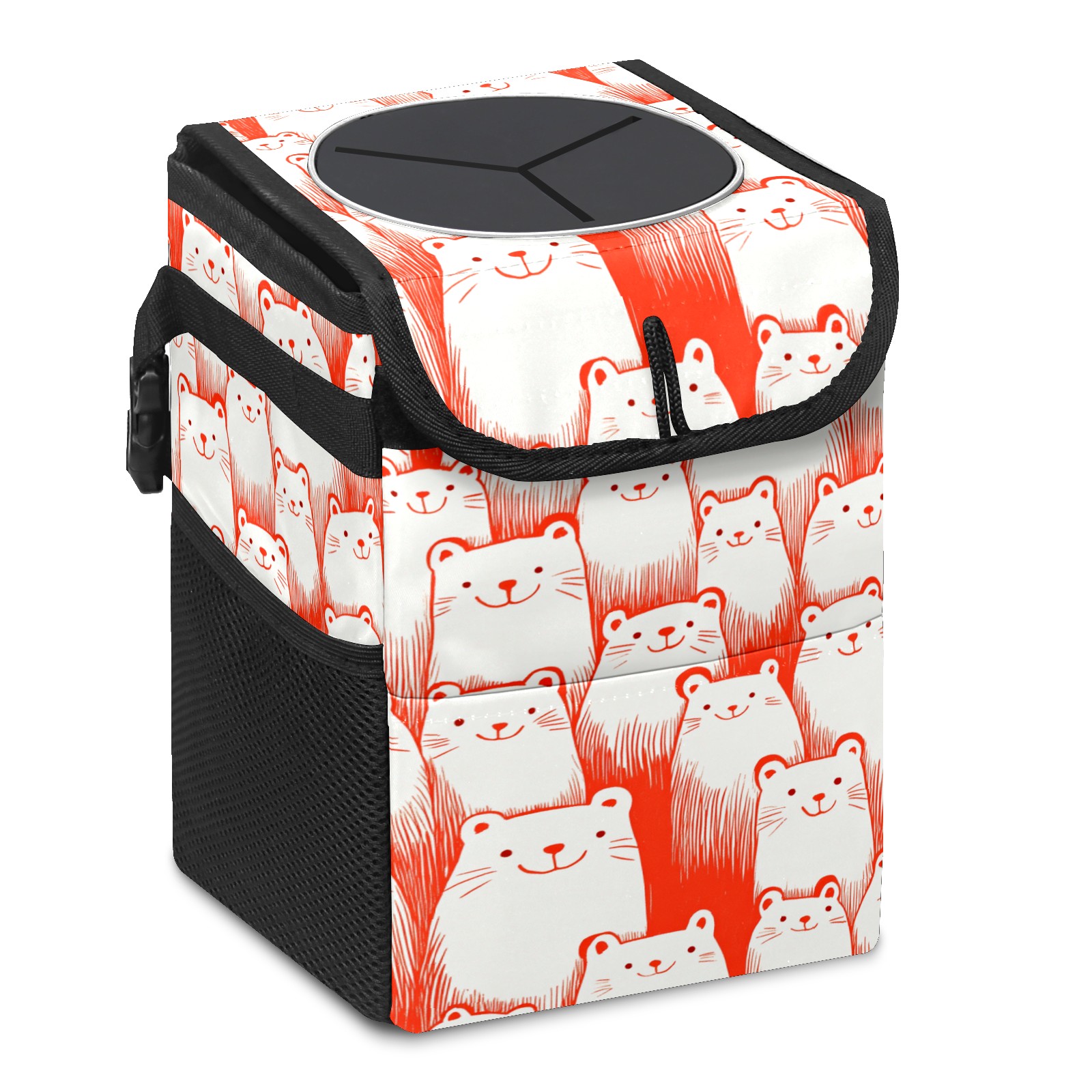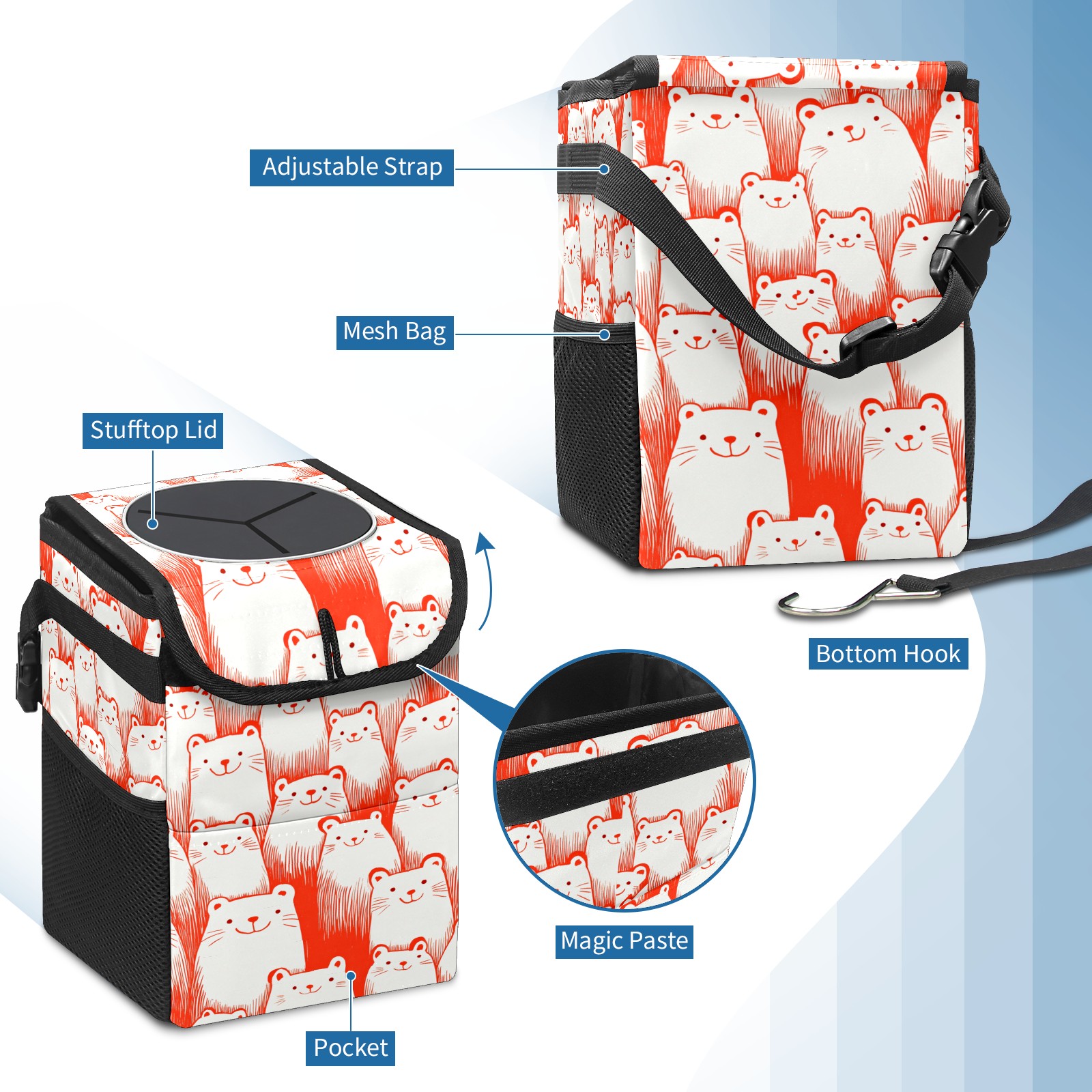Universal Hanging Car Trash Can - Leakproof Design with Secure Lid | Fits SUV, Truck, Van | Front & Back Seat Friendly | Smart Automotive Accessory Red Bear Pattern