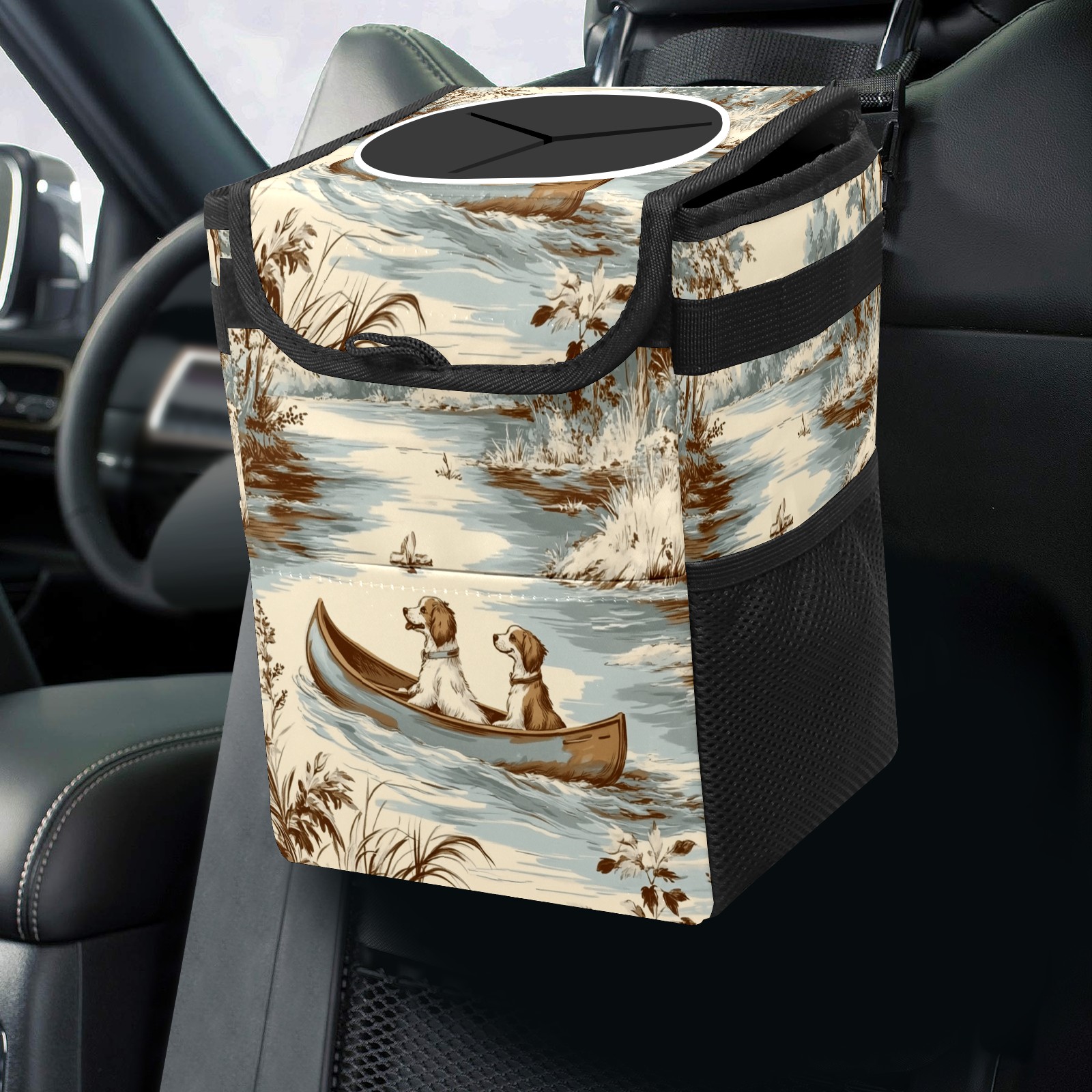 Universal Hanging Car Trash Can - Leakproof Design with Secure Lid | Fits SUV, Truck, Van | Front & Back Seat Friendly | Smart Automotive Accessory Vintage Boat Pattern