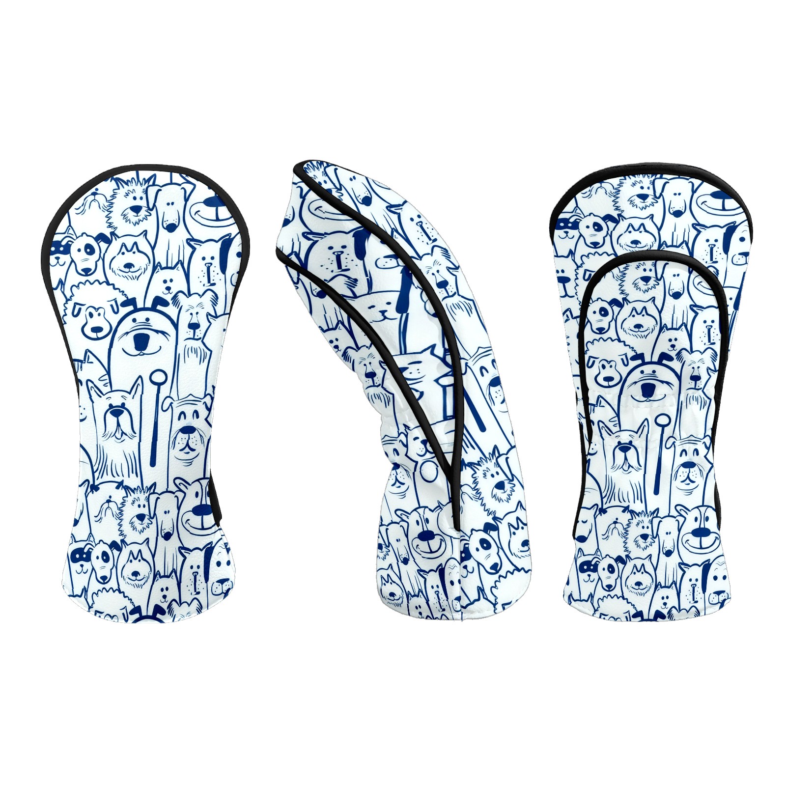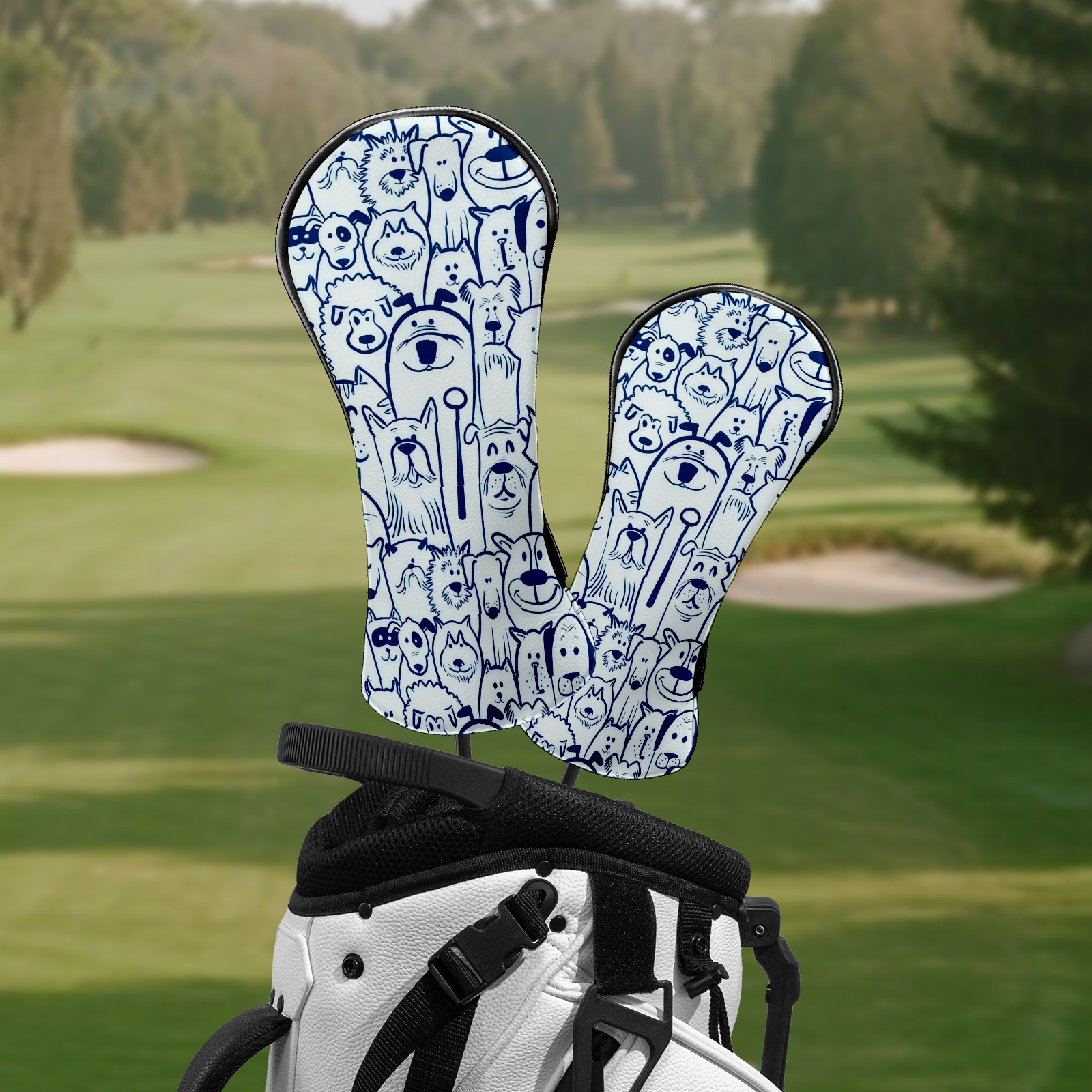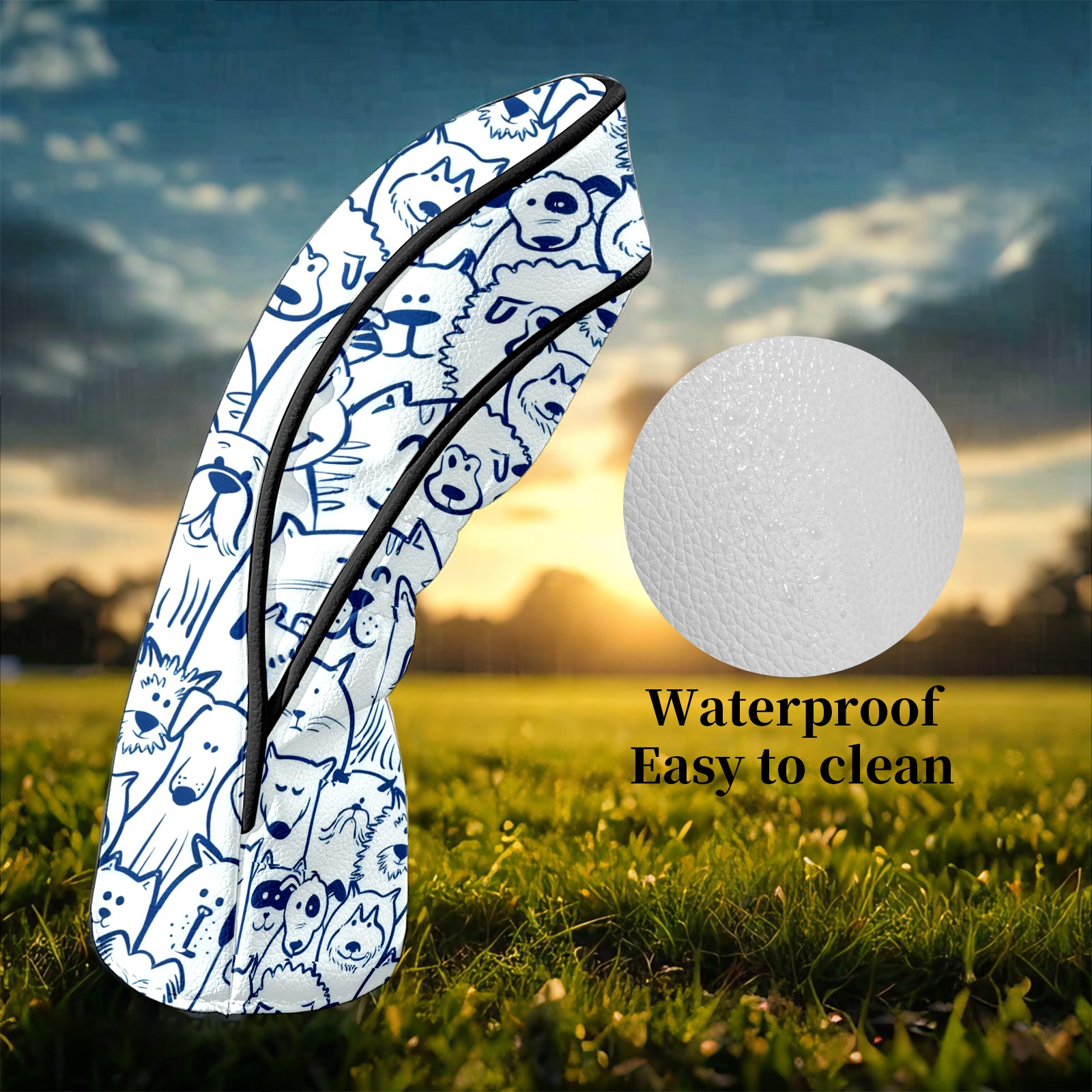 Counullo Golf Club Headcovers - Simple Cat Blue Premium PU Leather with Plush Lining for Driver & Fairway Woods, No-Slip Fit for All Clubs, Novelty Gift for Men & Women