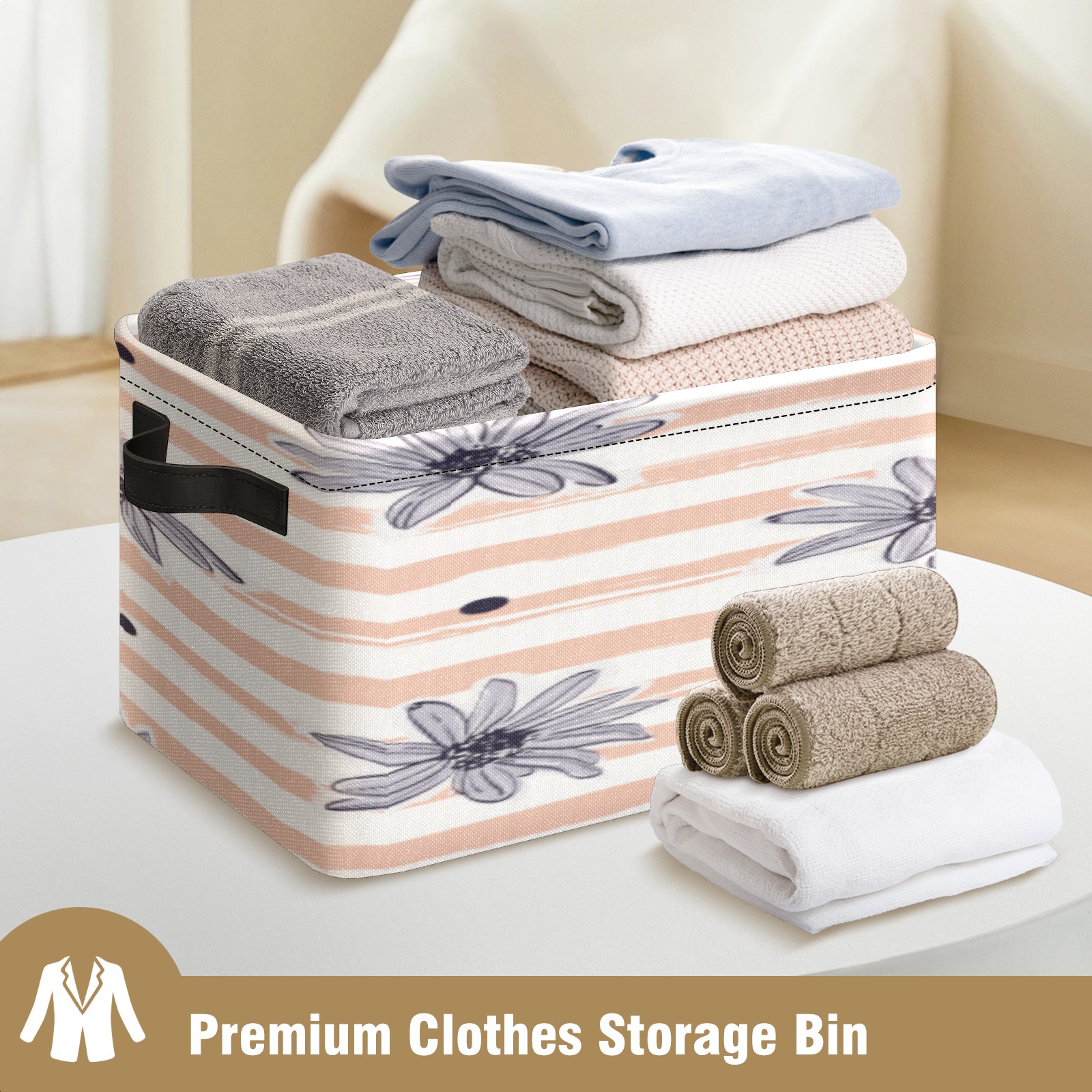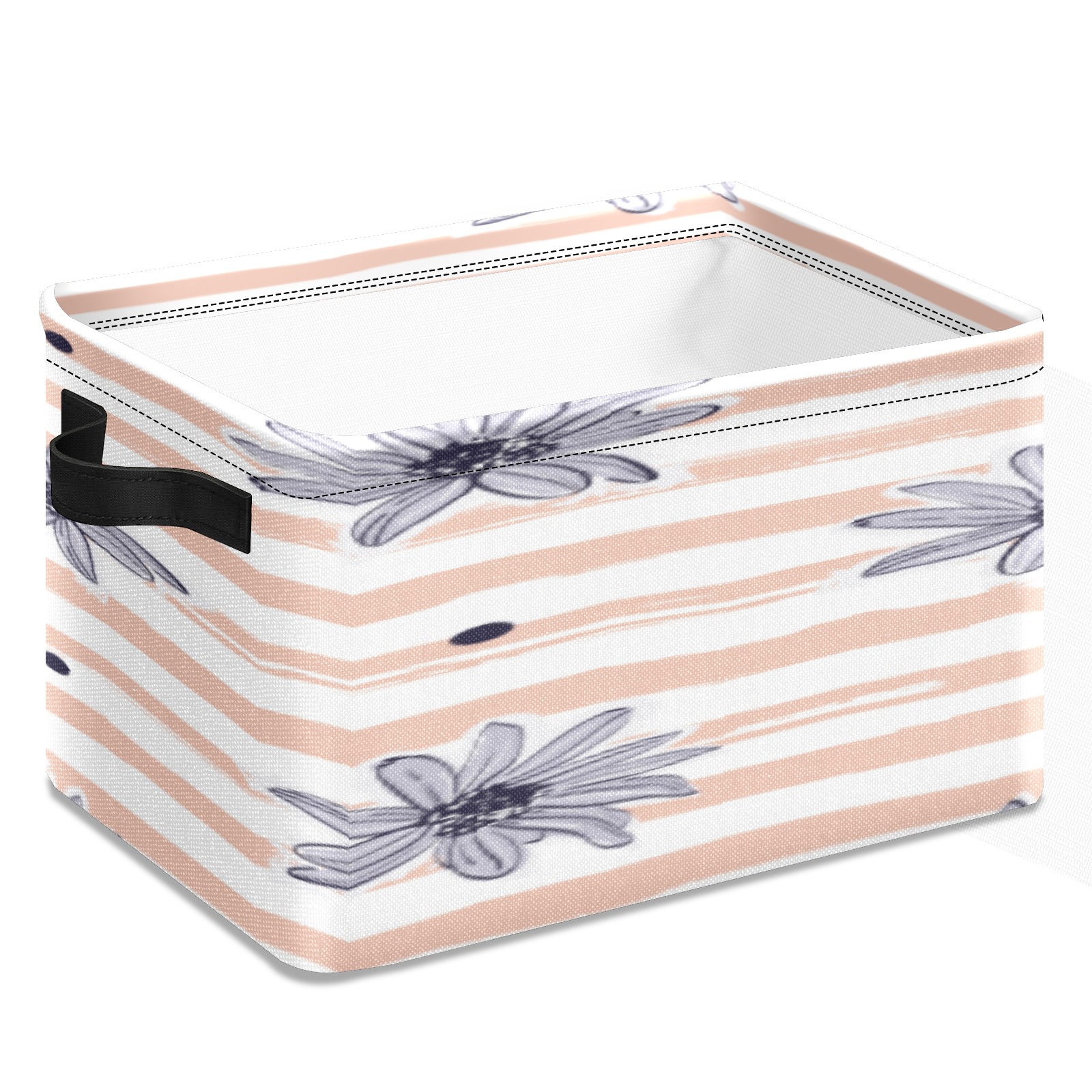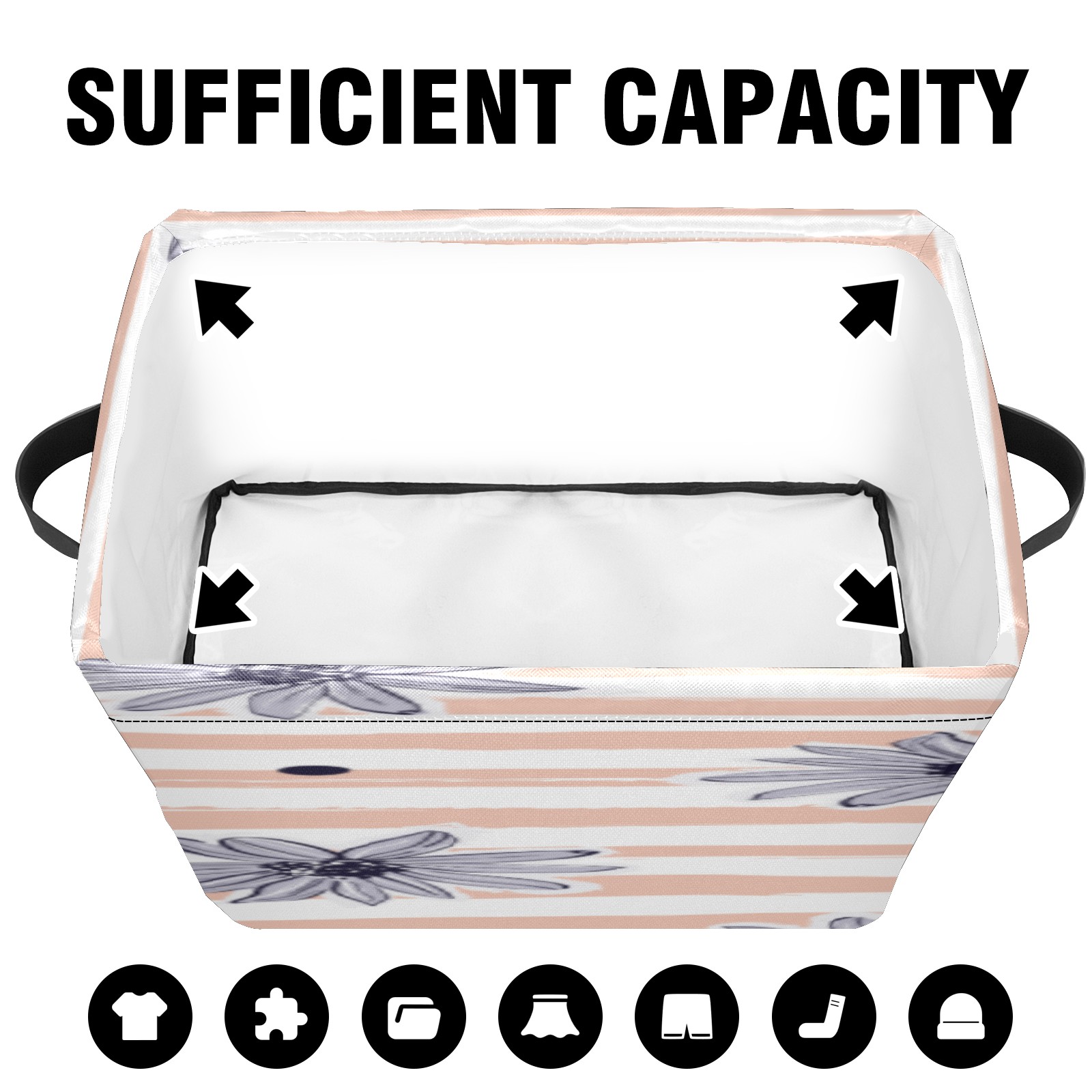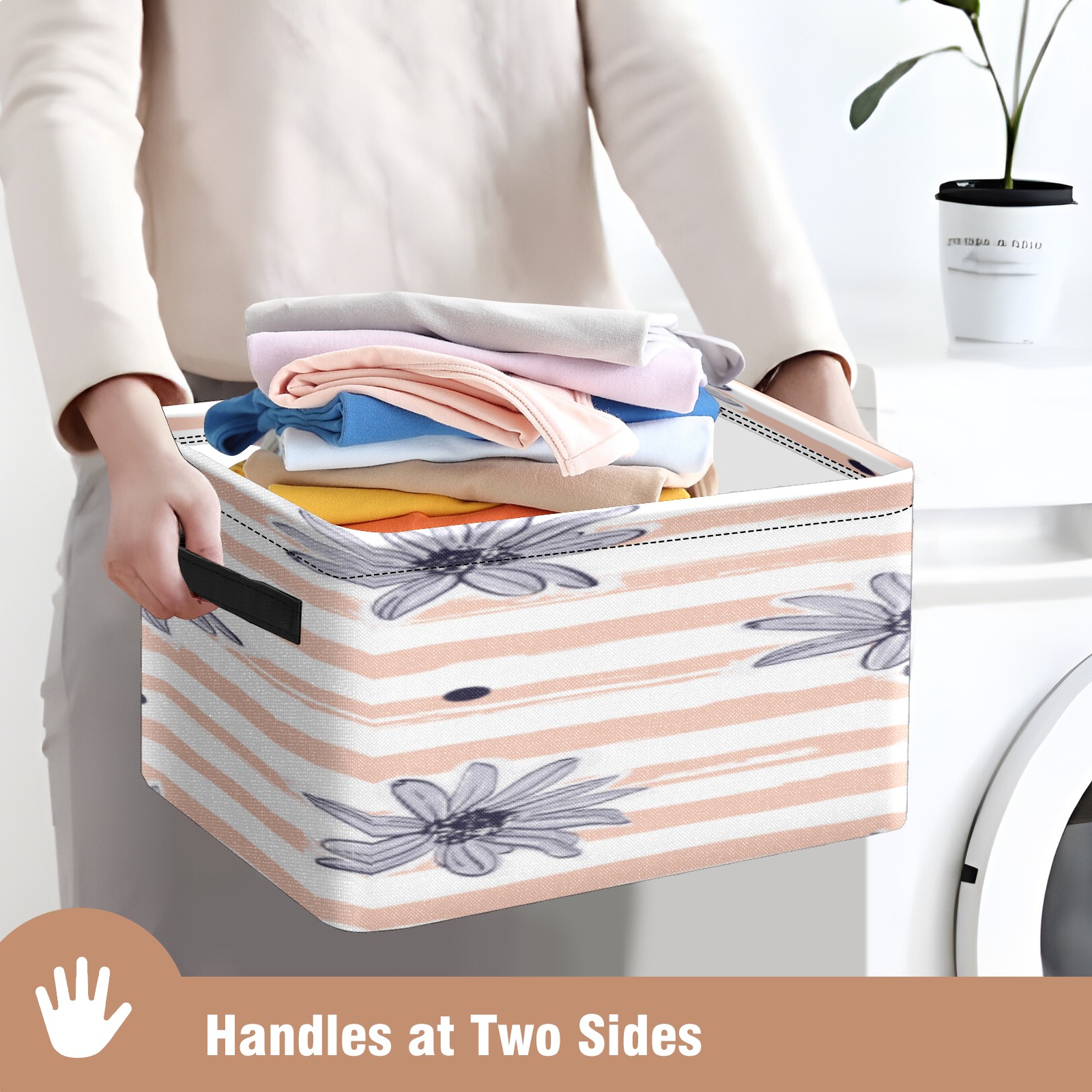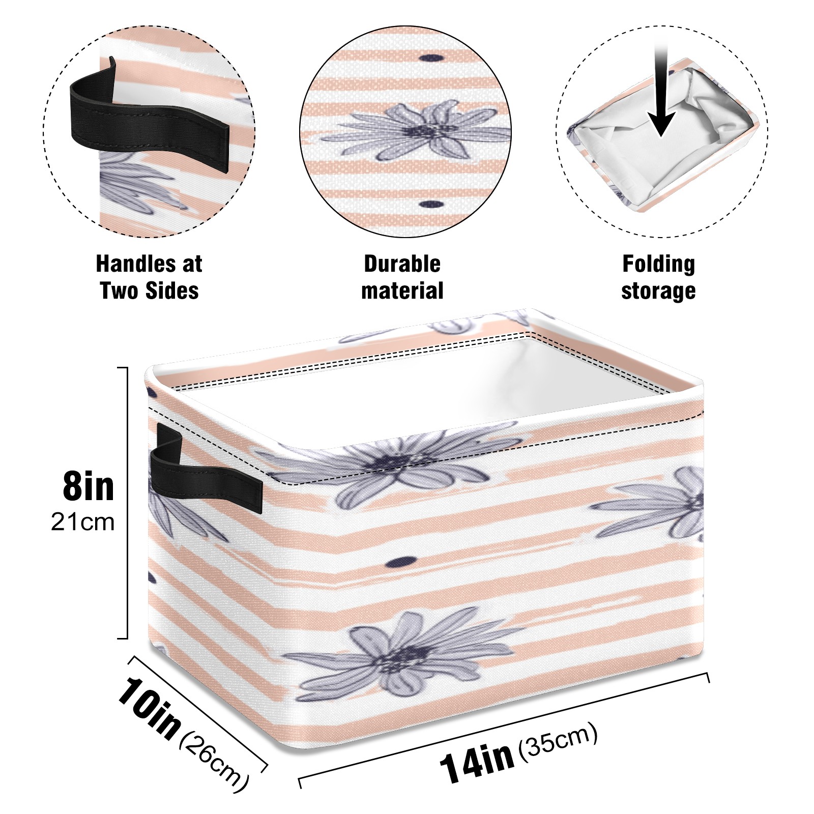 1 Pack Woven Storage Baskets - Natural Seagrass Organizer Bins with Handles, Decorative Foldable Storage stripe flower