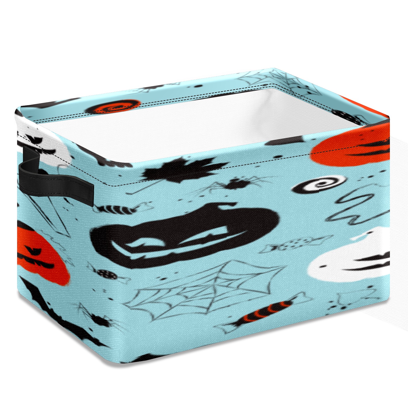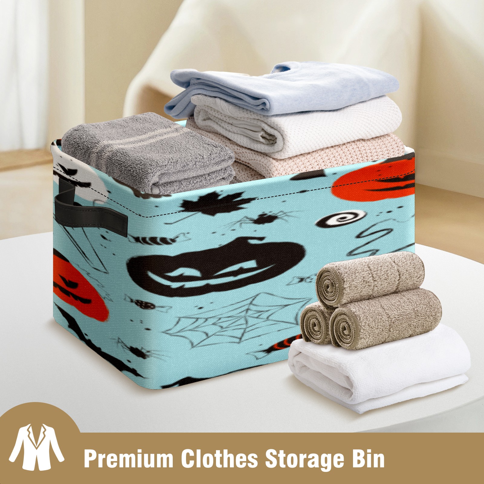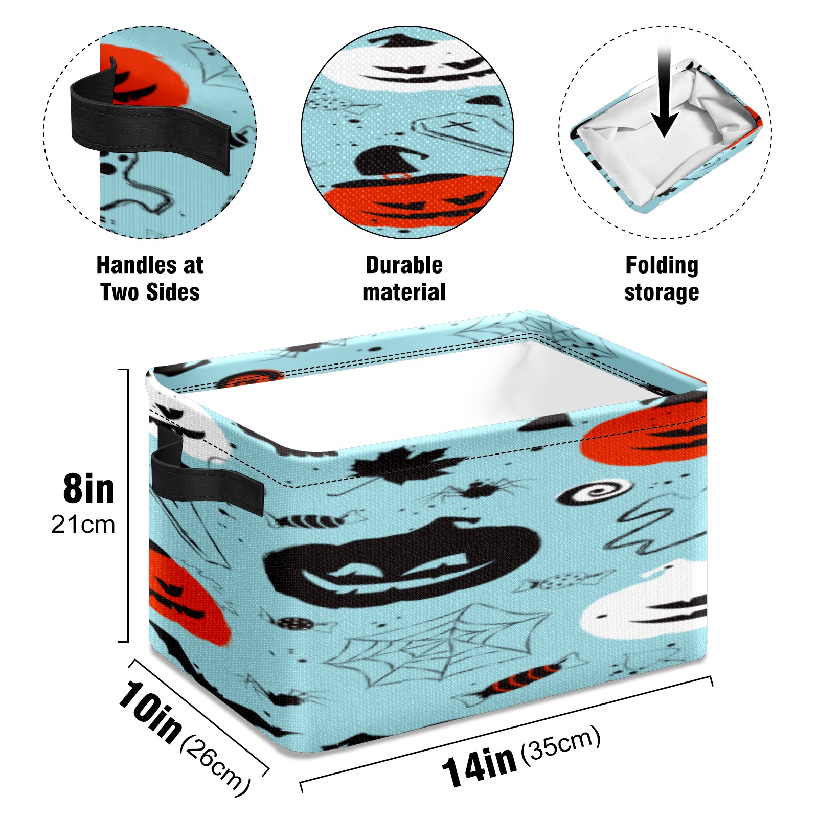 1 Pack Woven Storage Baskets - Natural Seagrass Organizer Bins with Handles, Decorative Foldable Storage Halloween blue pumpkin