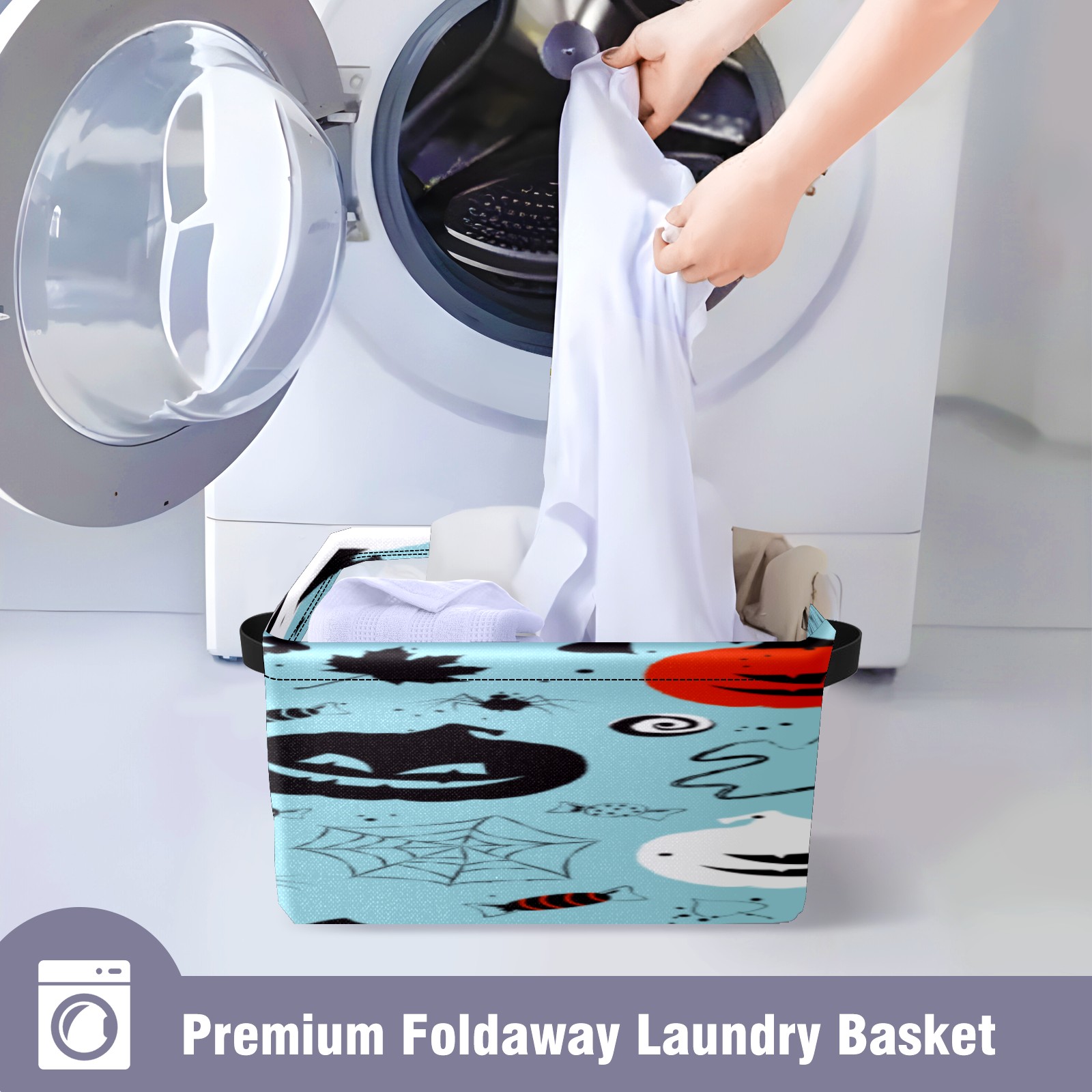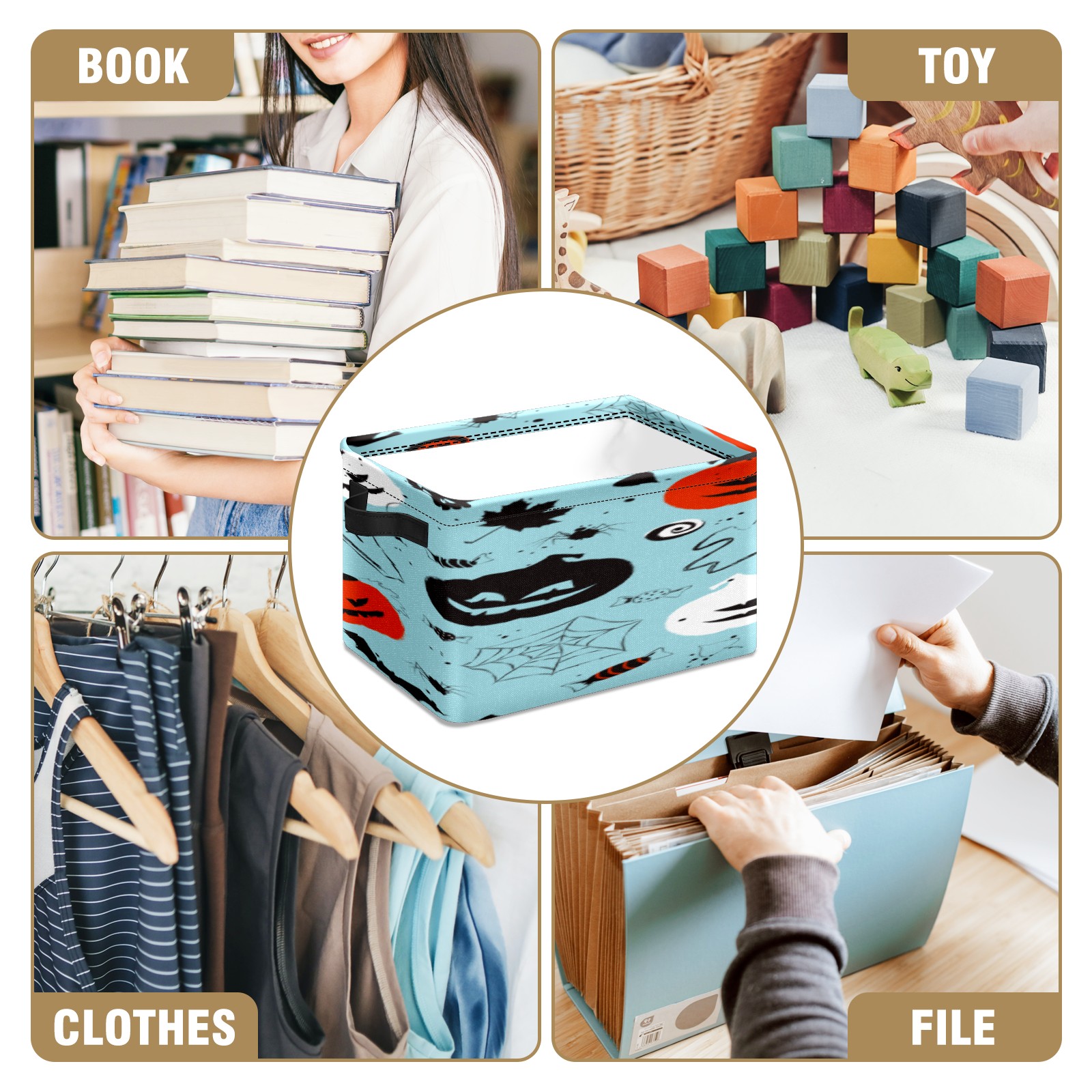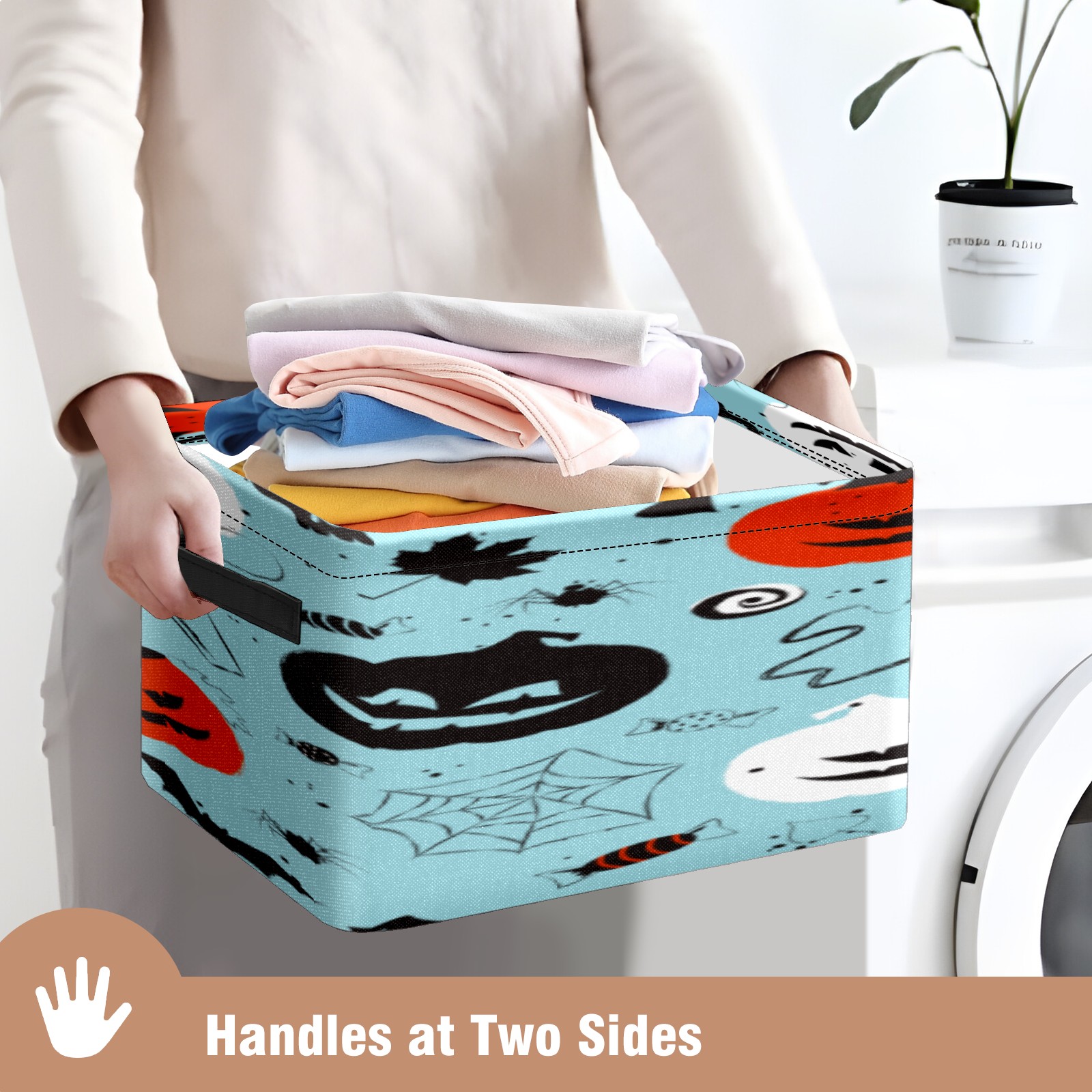 1 Pack Woven Storage Baskets - Natural Seagrass Organizer Bins with Handles, Decorative Foldable Storage Halloween blue pumpkin