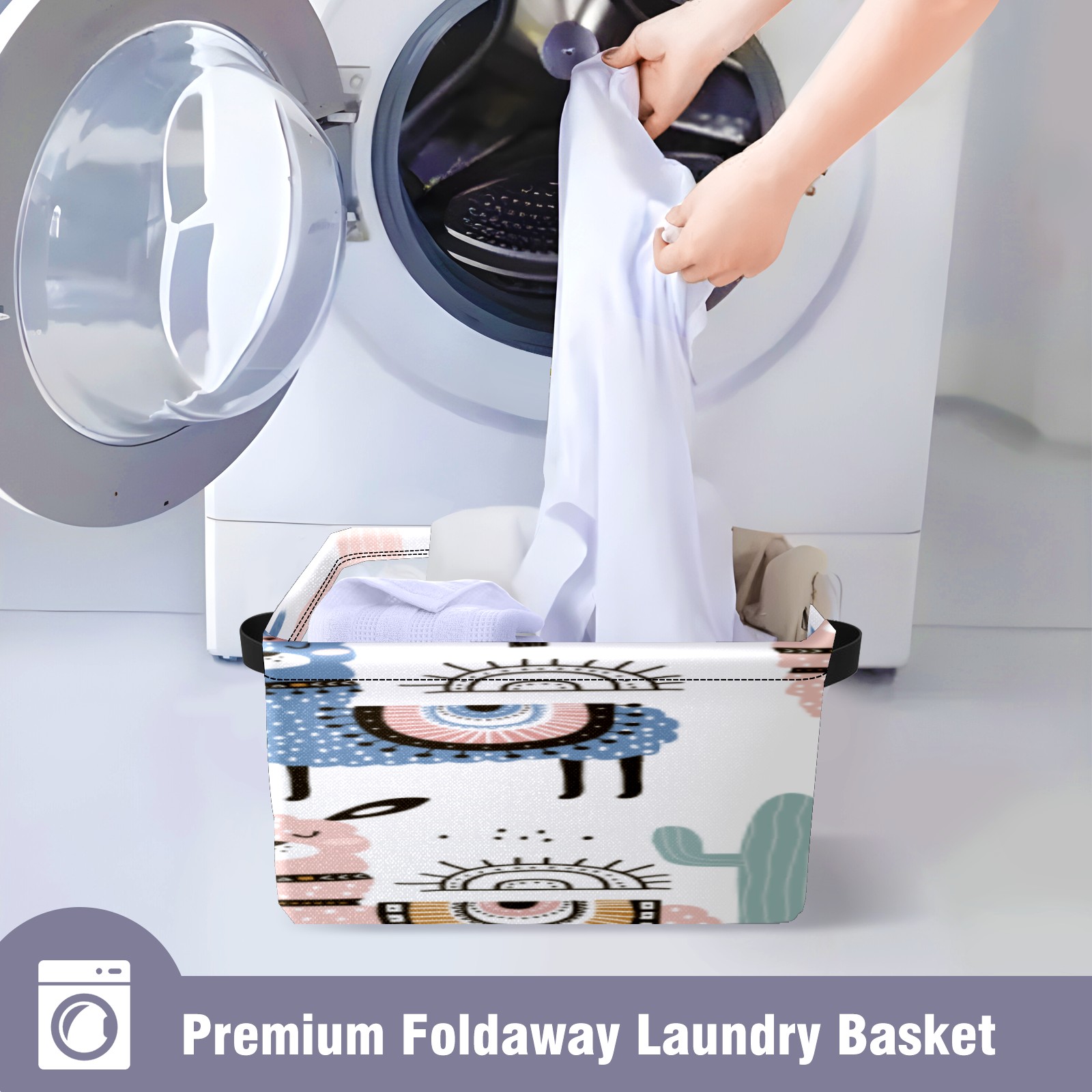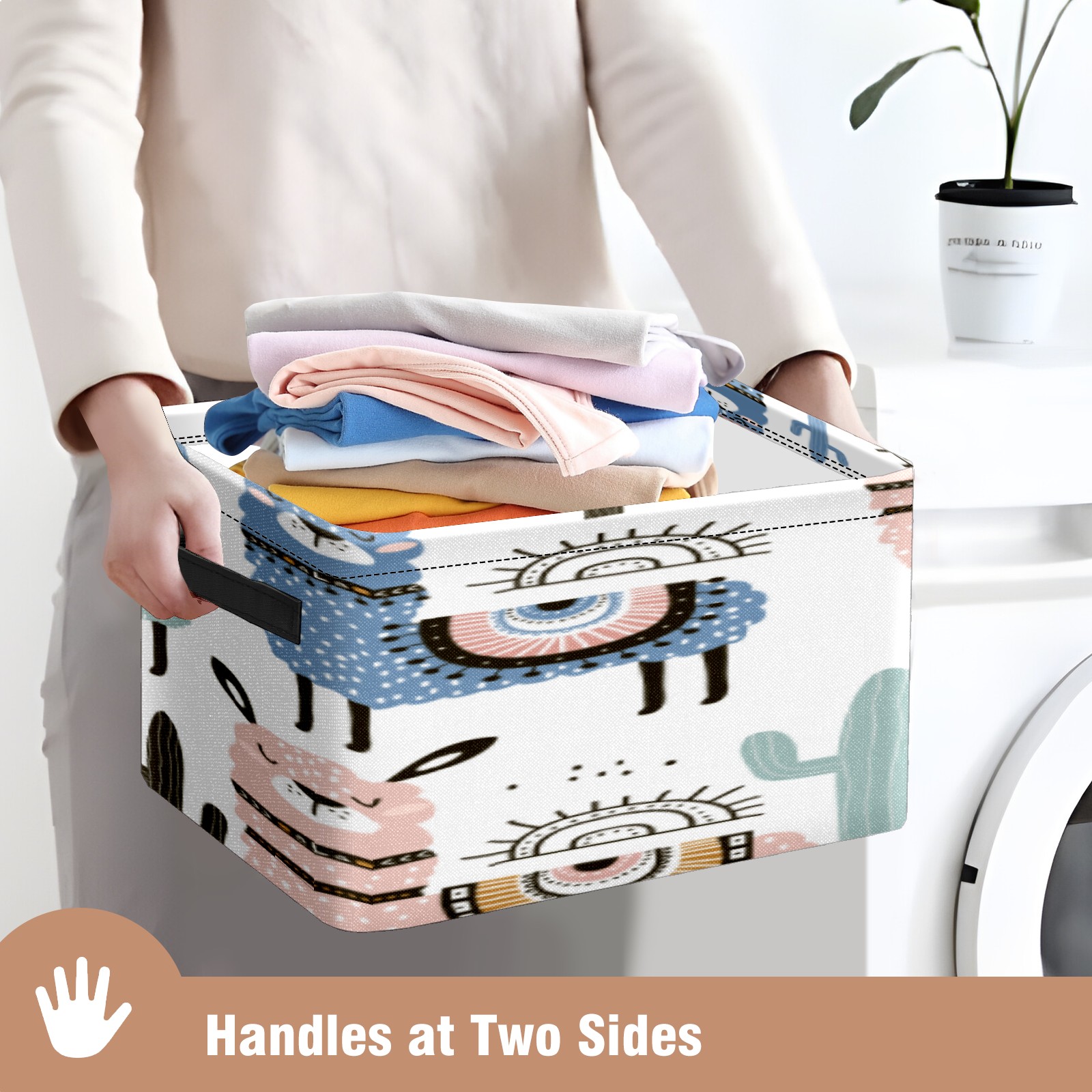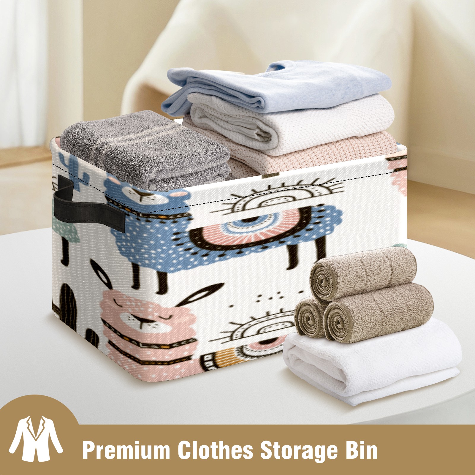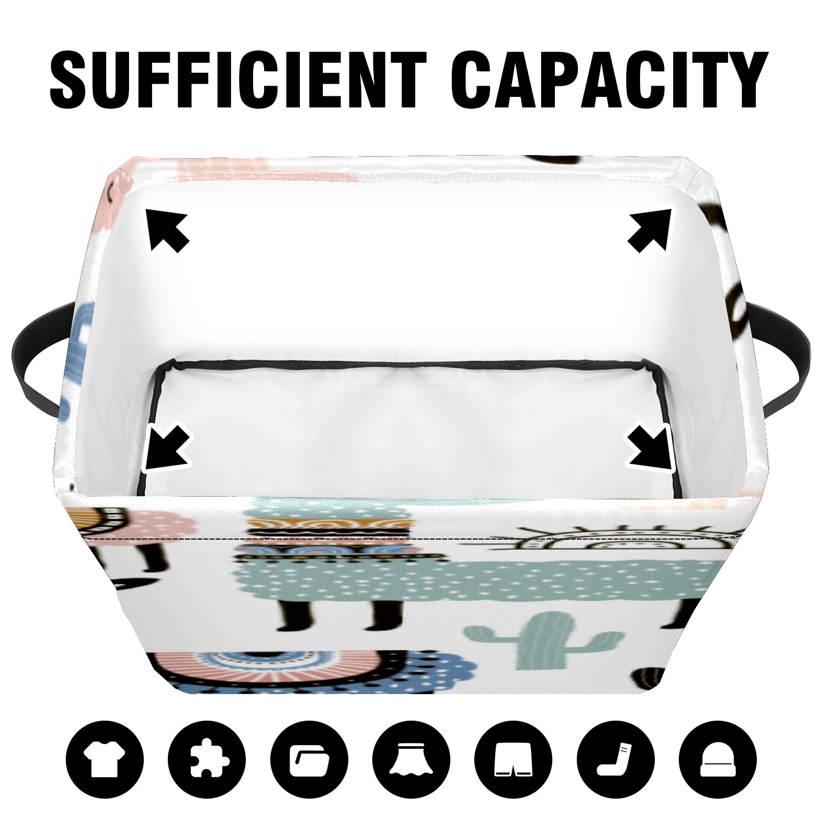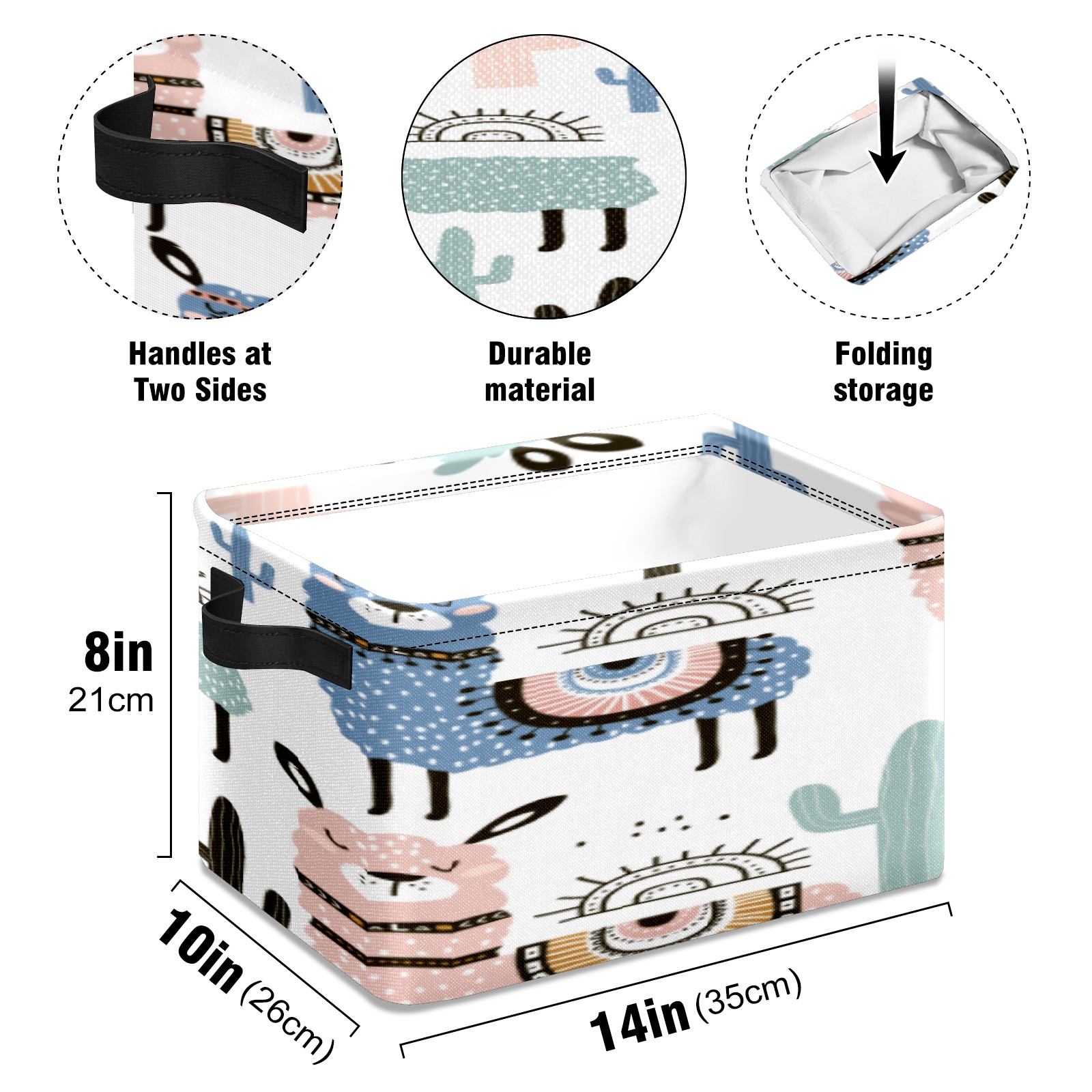 1 Pack Woven Storage Baskets - Natural Seagrass Organizer Bins with Handles, Decorative Foldable Storage alpaca cute
