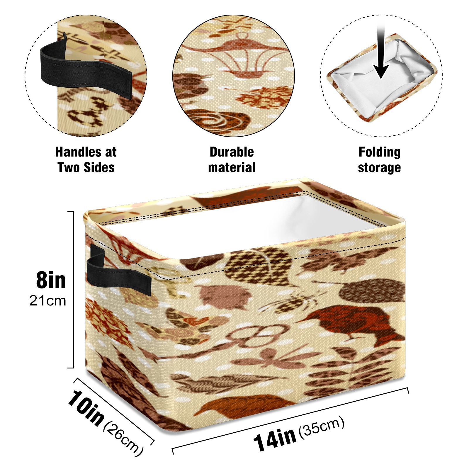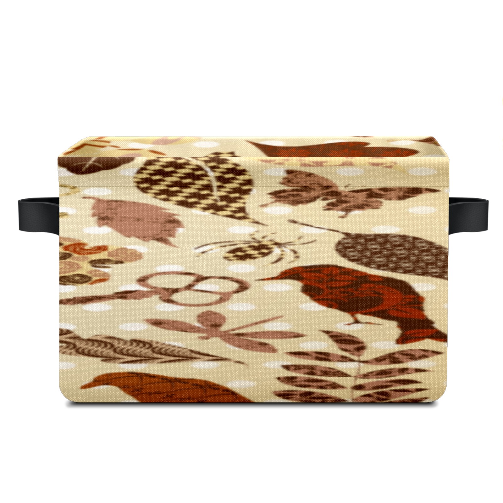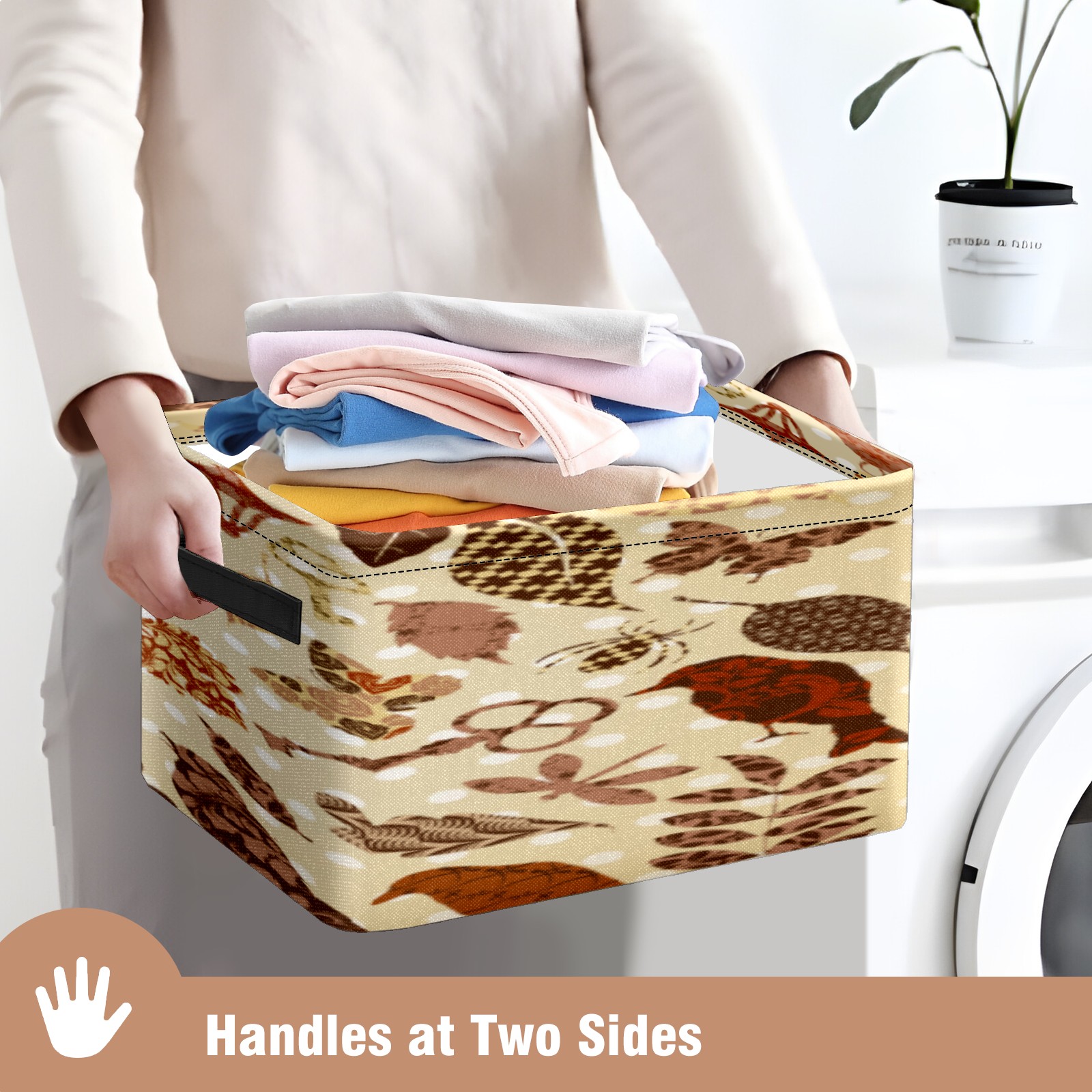 1 Pack Woven Storage Baskets - Natural Seagrass Organizer Bins with Handles, Decorative Foldable Storage Background with leaves and birds