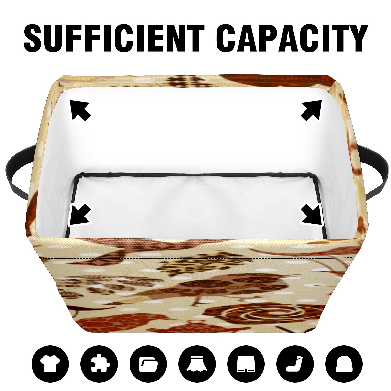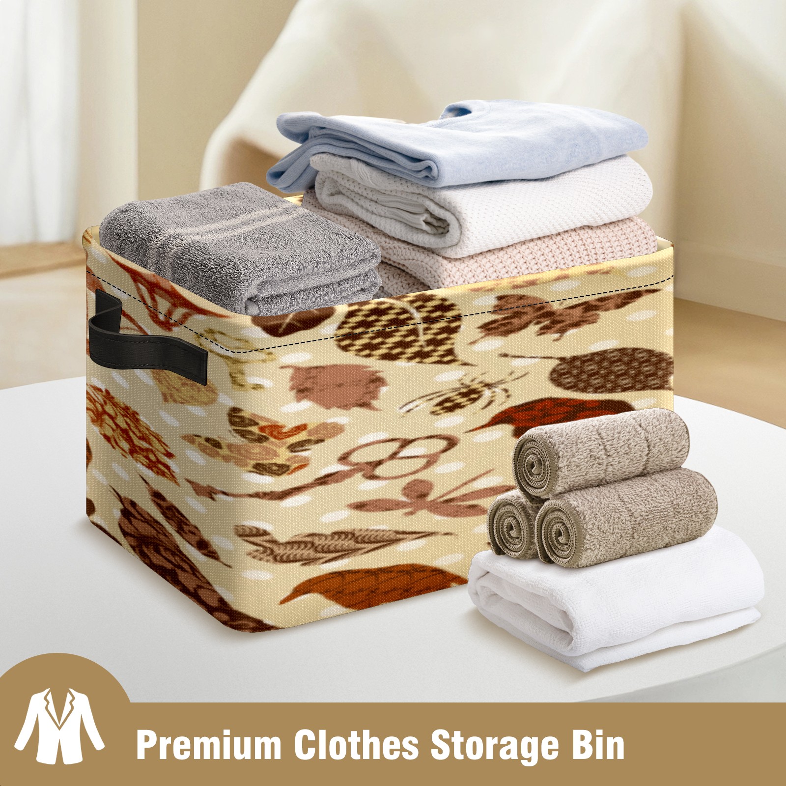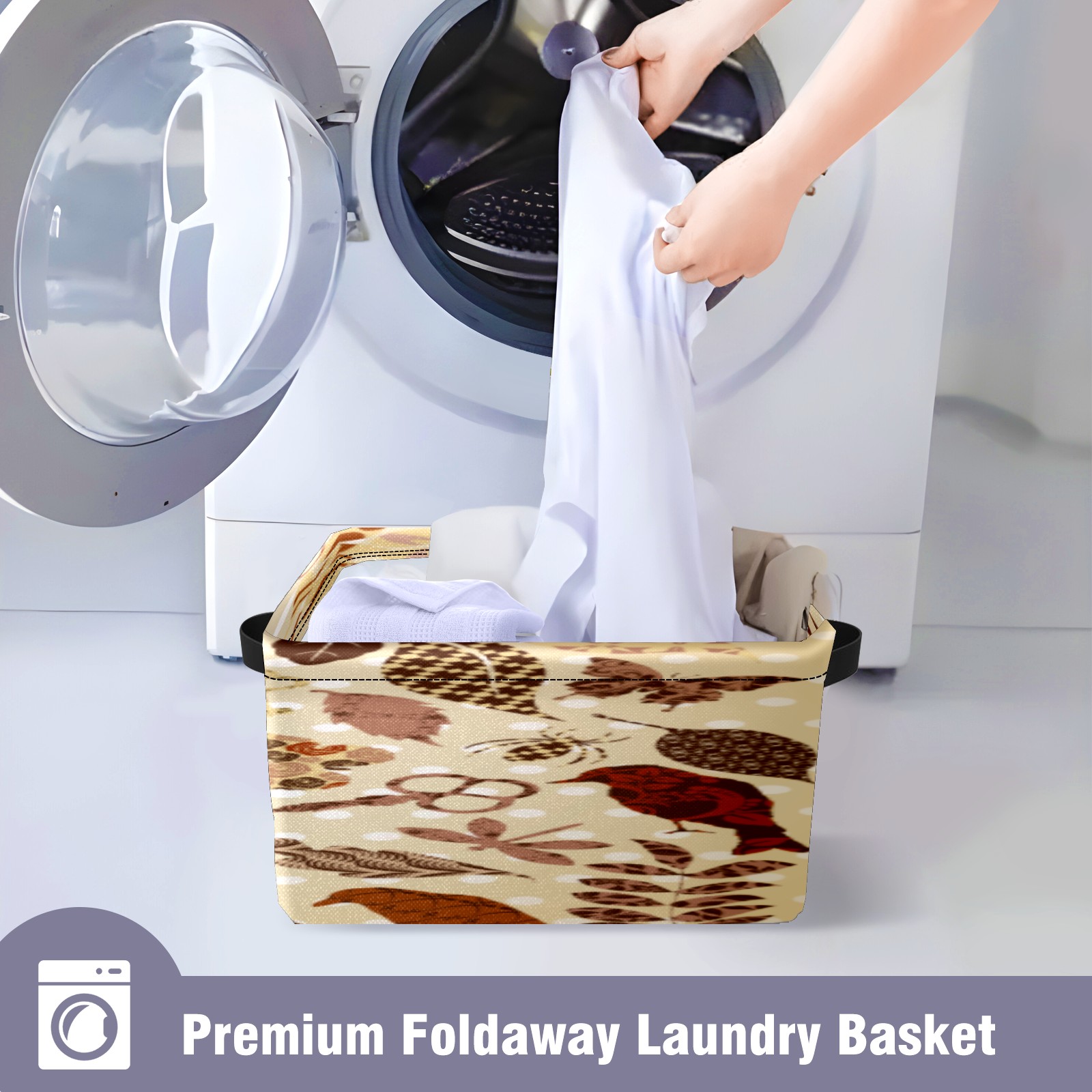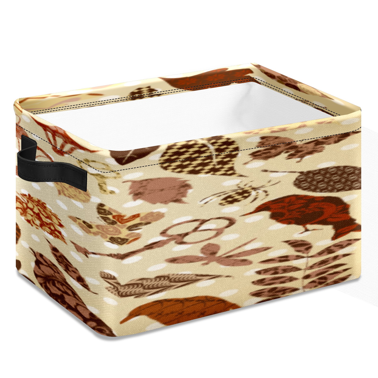 1 Pack Woven Storage Baskets - Natural Seagrass Organizer Bins with Handles, Decorative Foldable Storage Background with leaves and birds