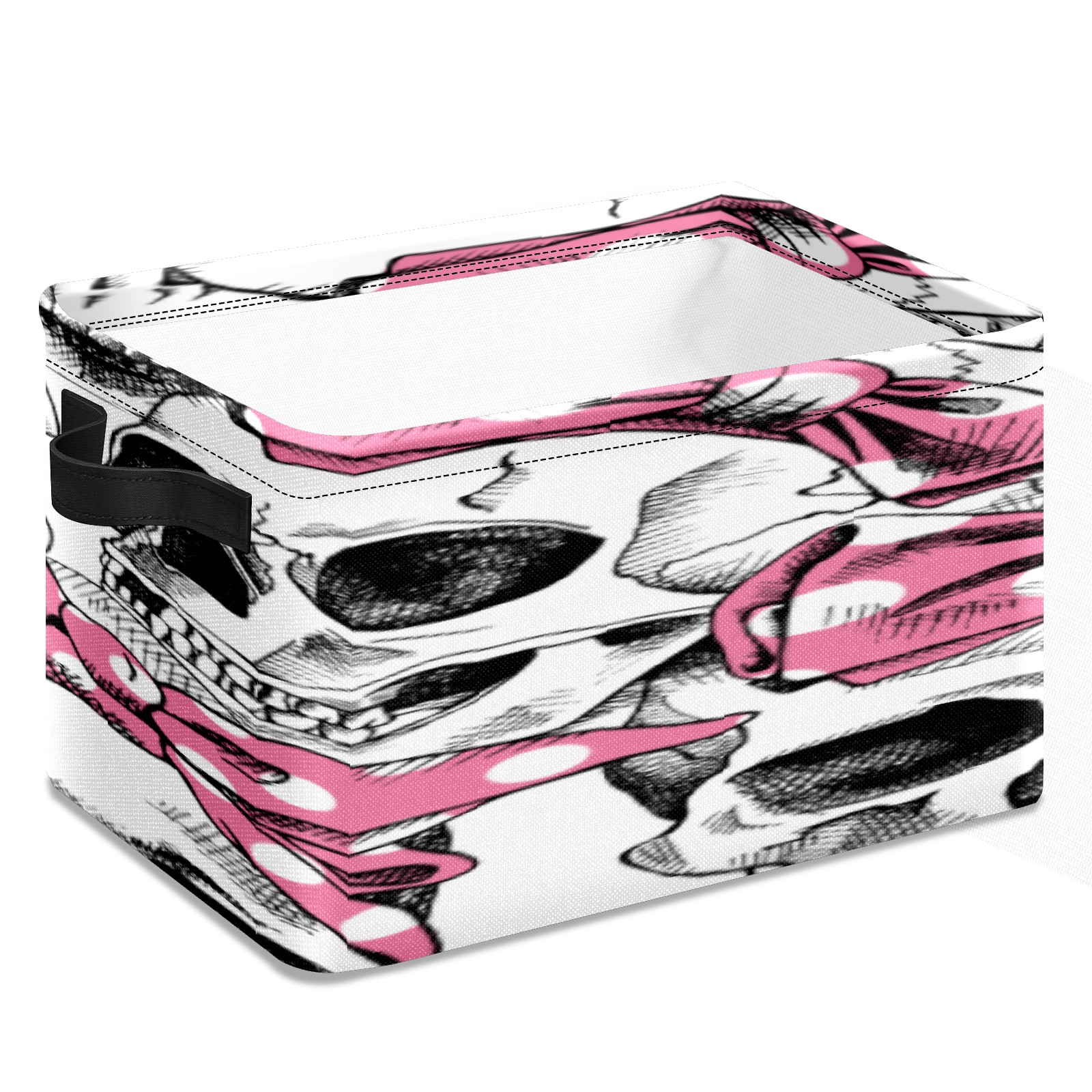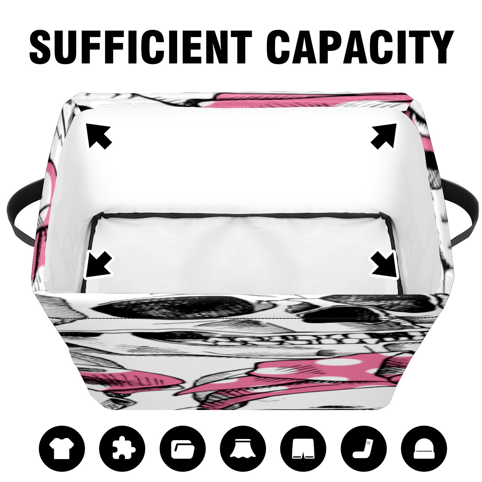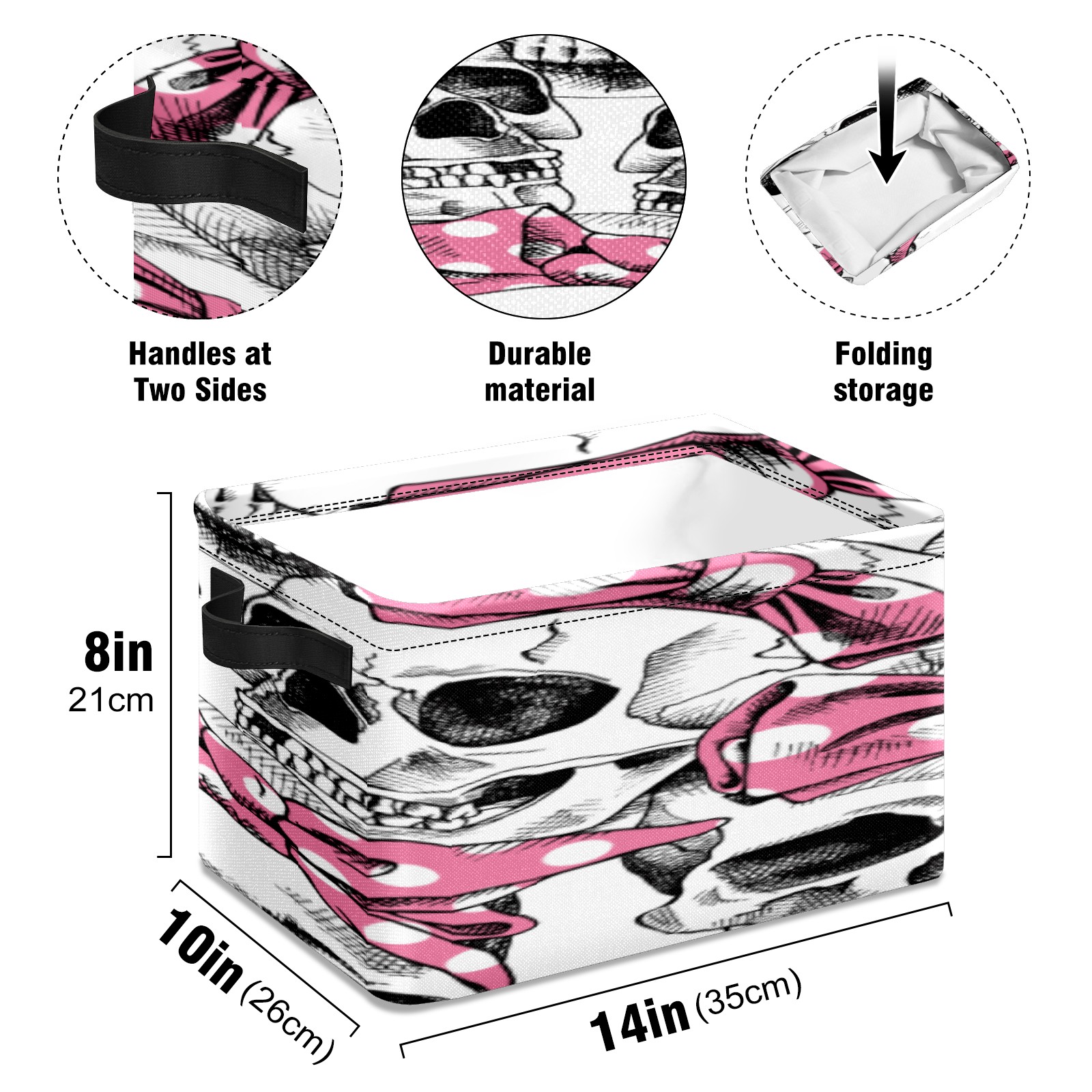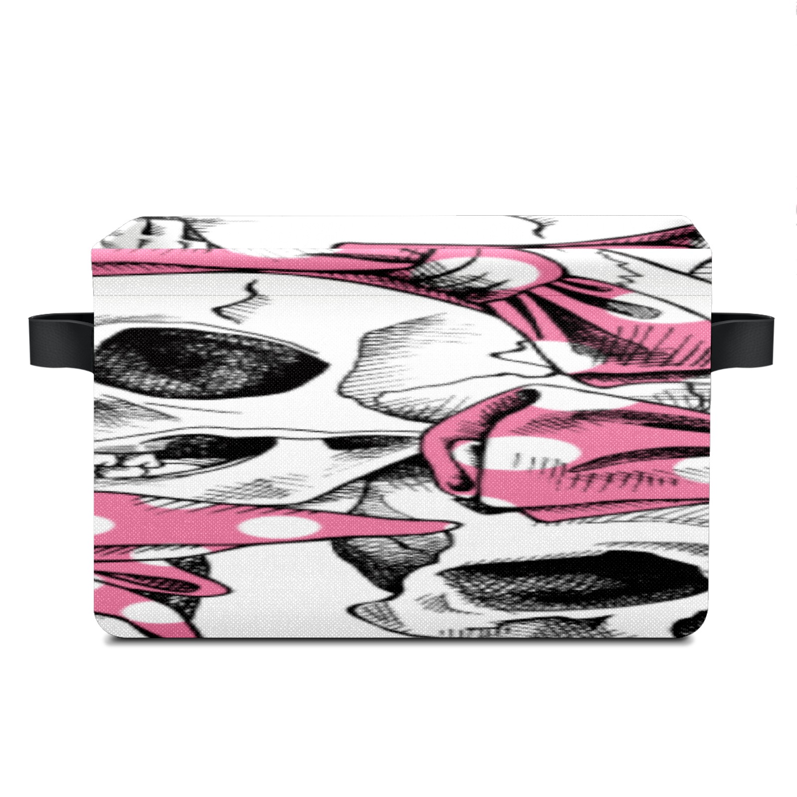 1 Pack Woven Storage Baskets - Natural Seagrass Organizer Bins with Handles, Decorative Foldable Storage skull pink
