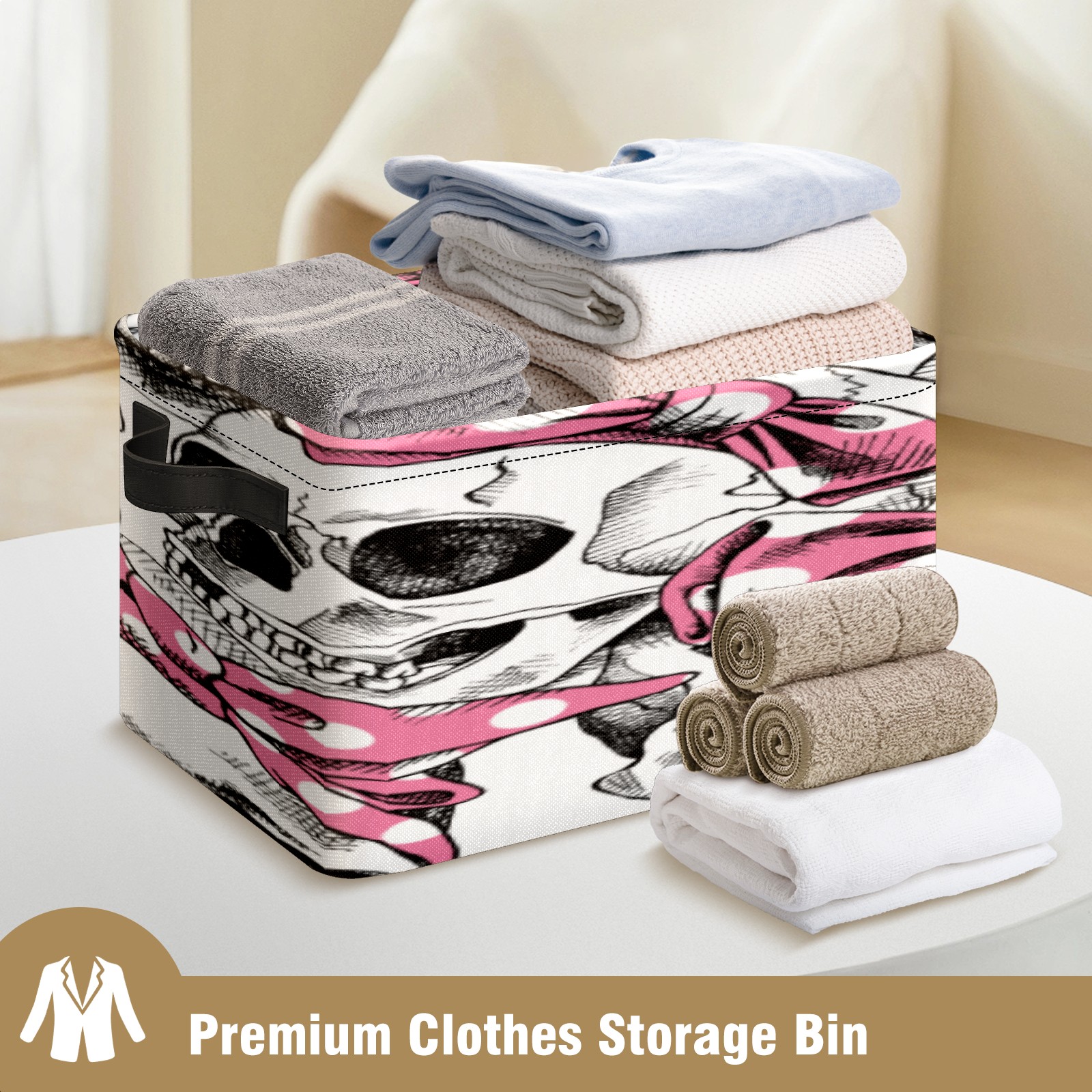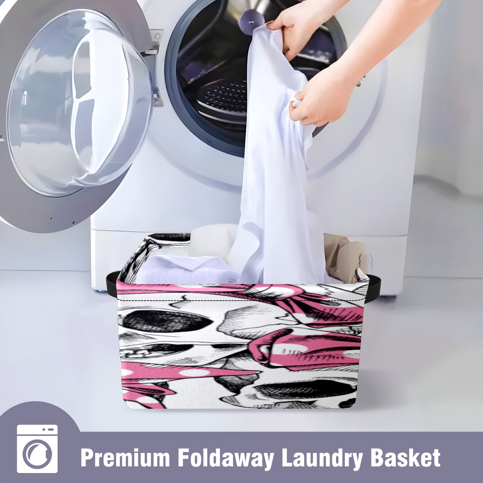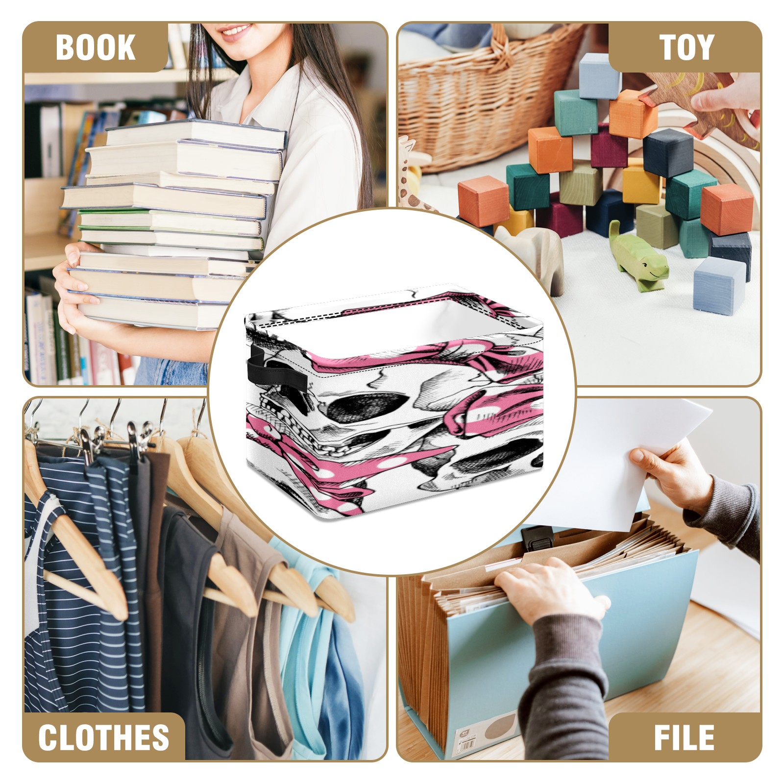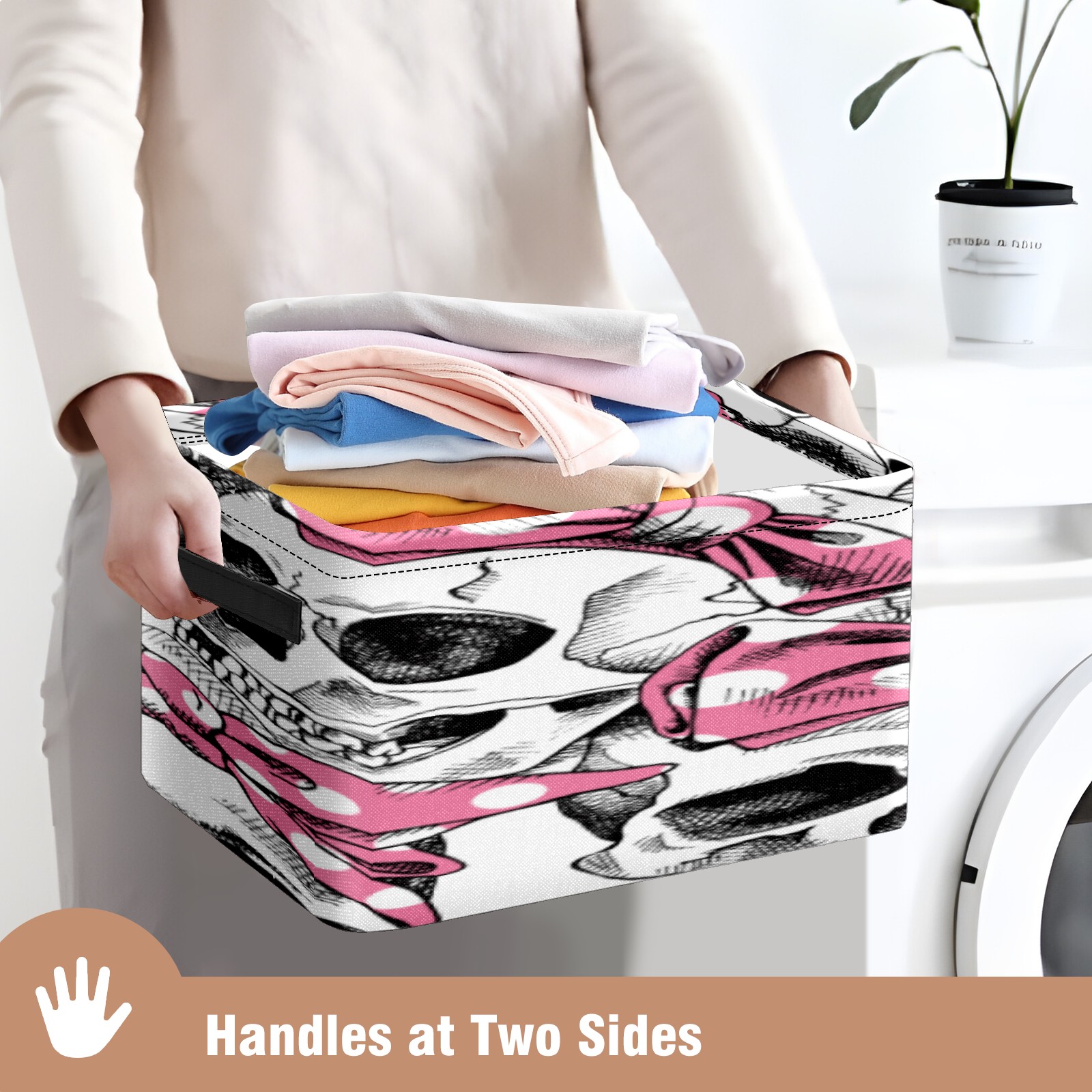 1 Pack Woven Storage Baskets - Natural Seagrass Organizer Bins with Handles, Decorative Foldable Storage skull pink