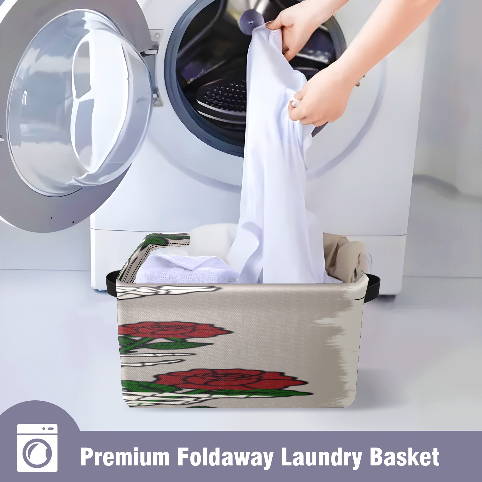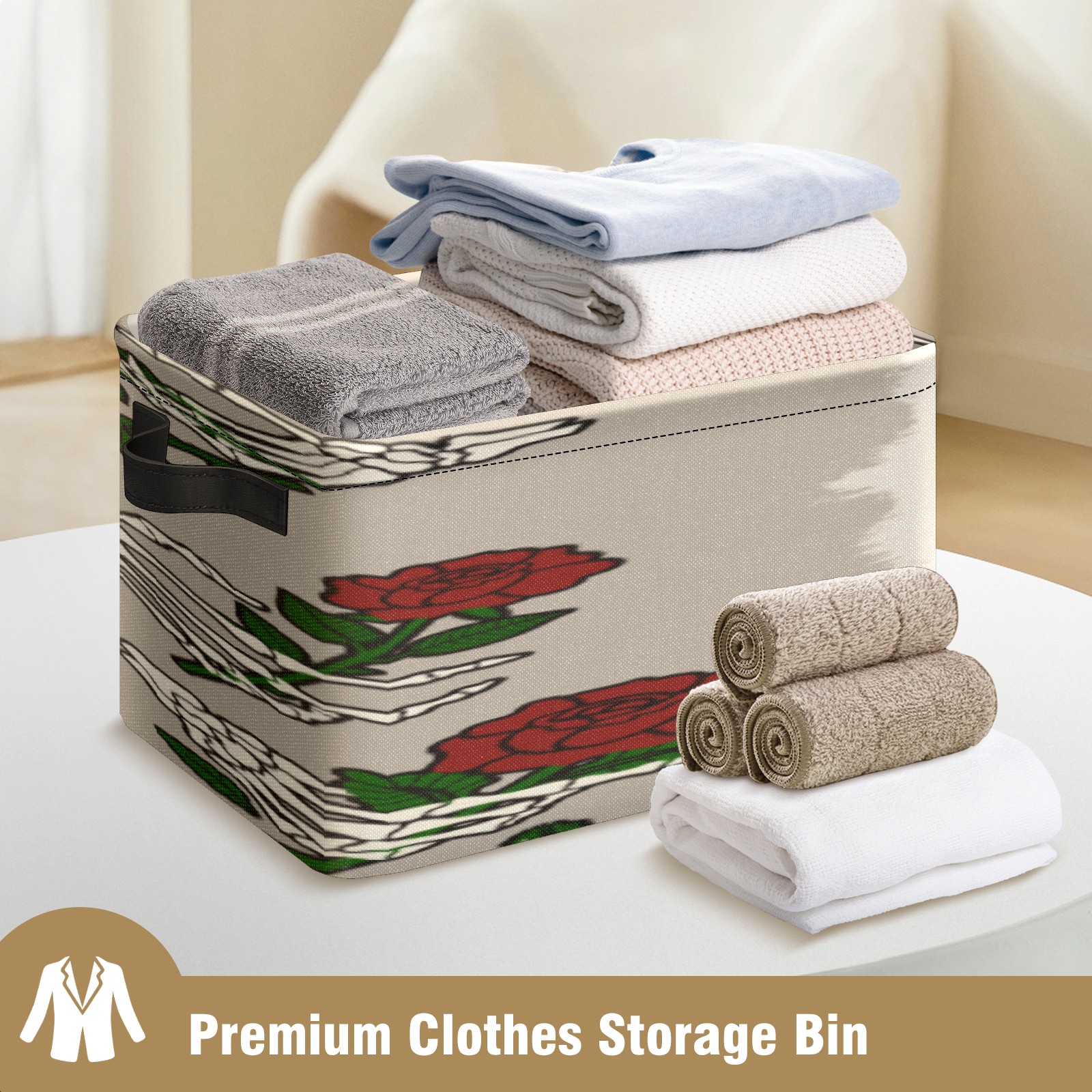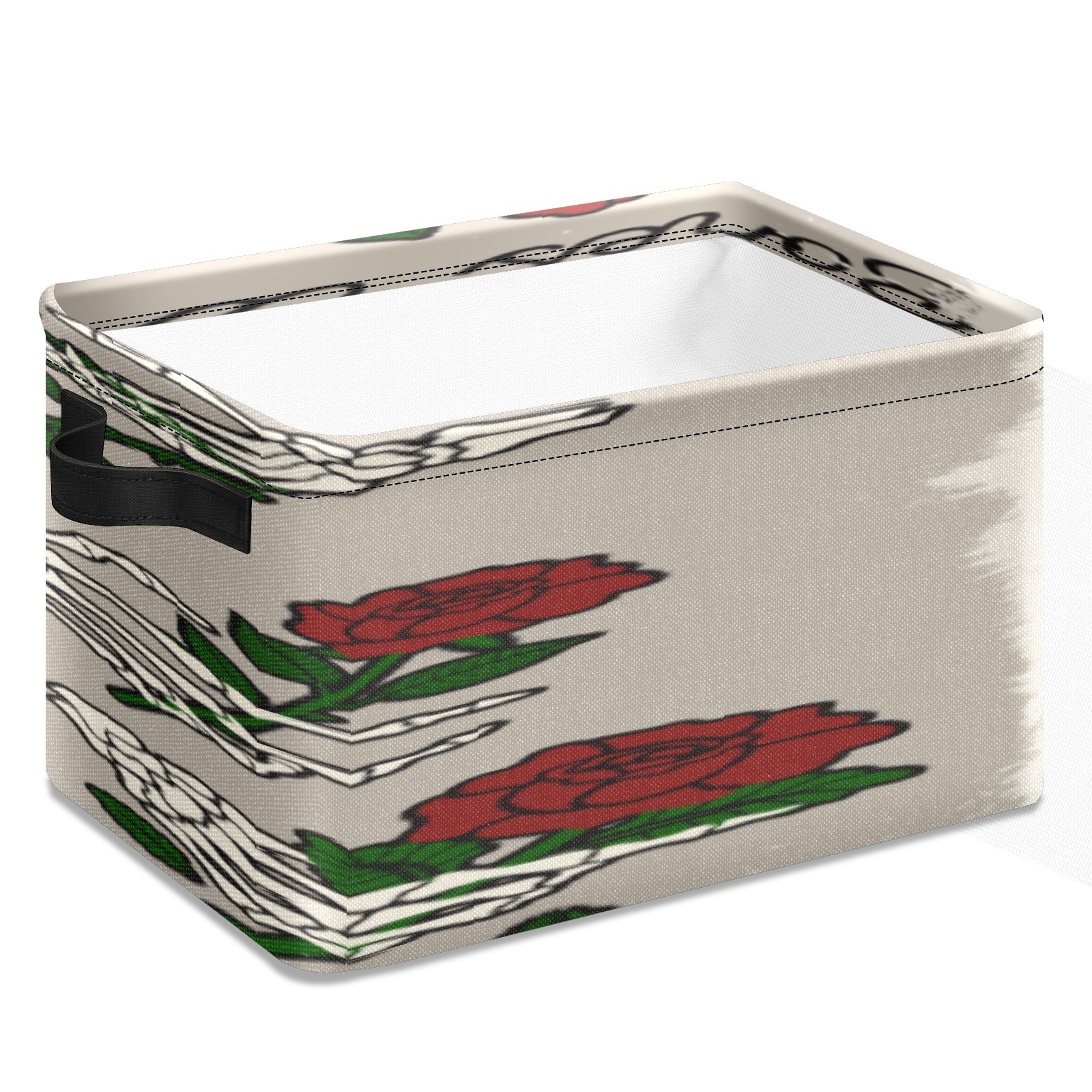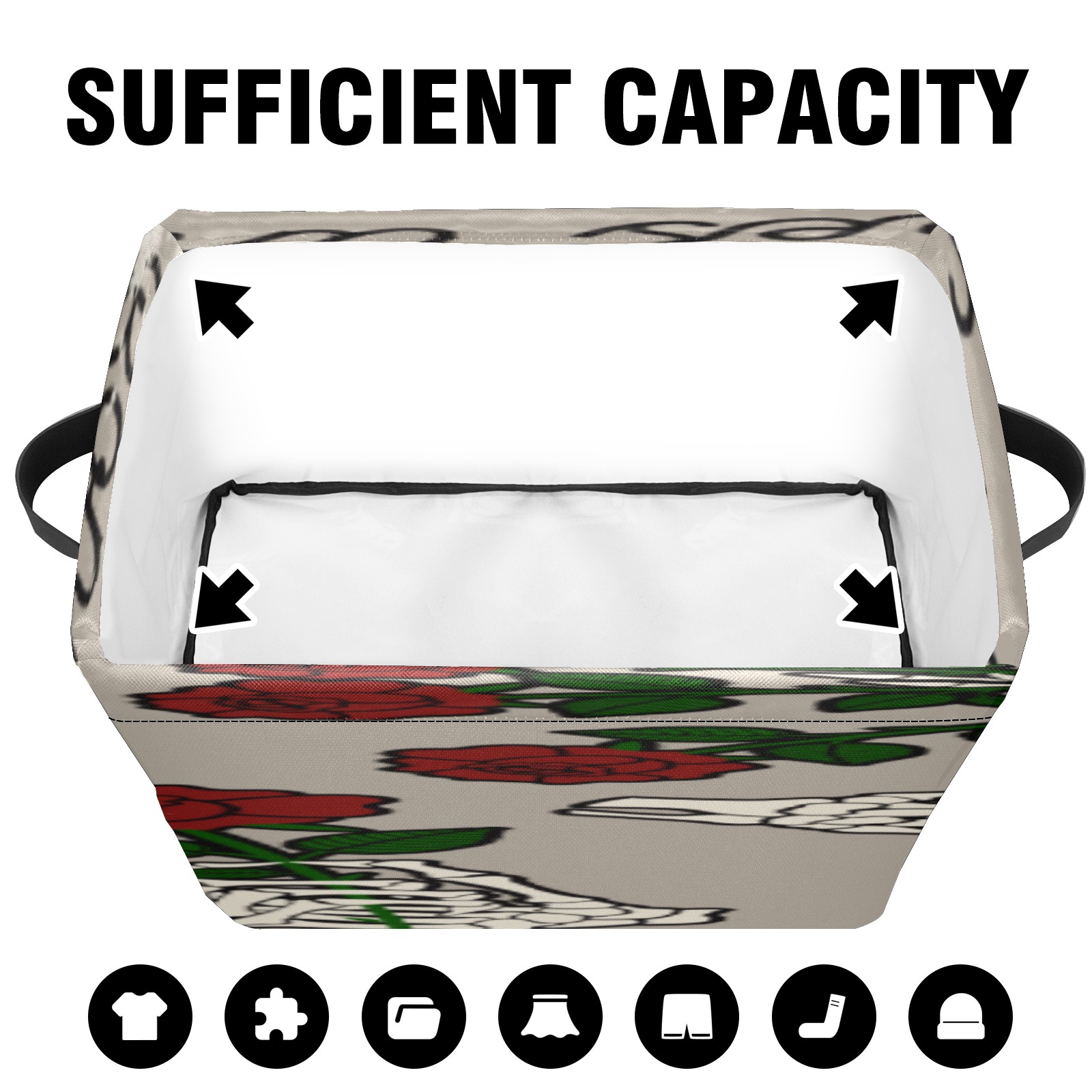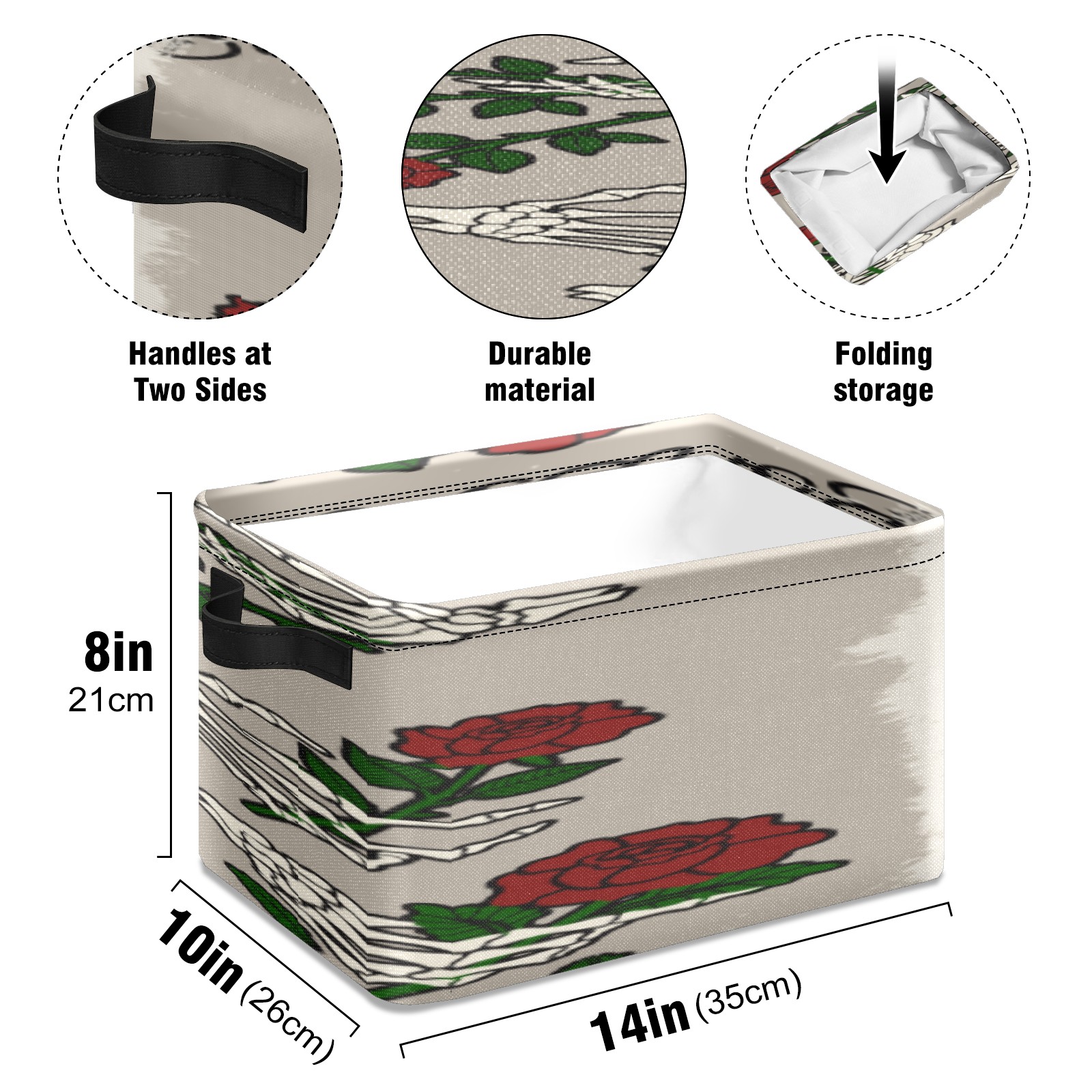 1 Pack Woven Storage Baskets - Natural Seagrass Organizer Bins with Handles, Decorative Foldable Storage skull hand rose
