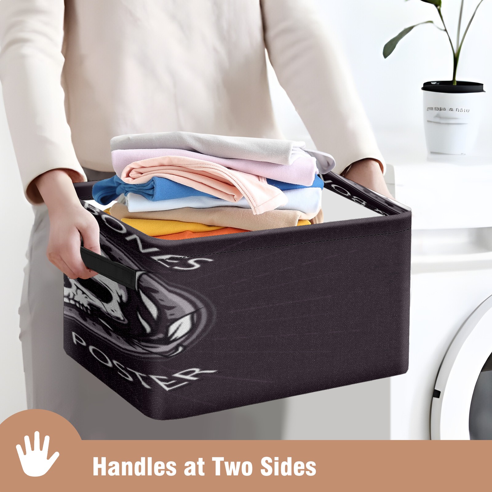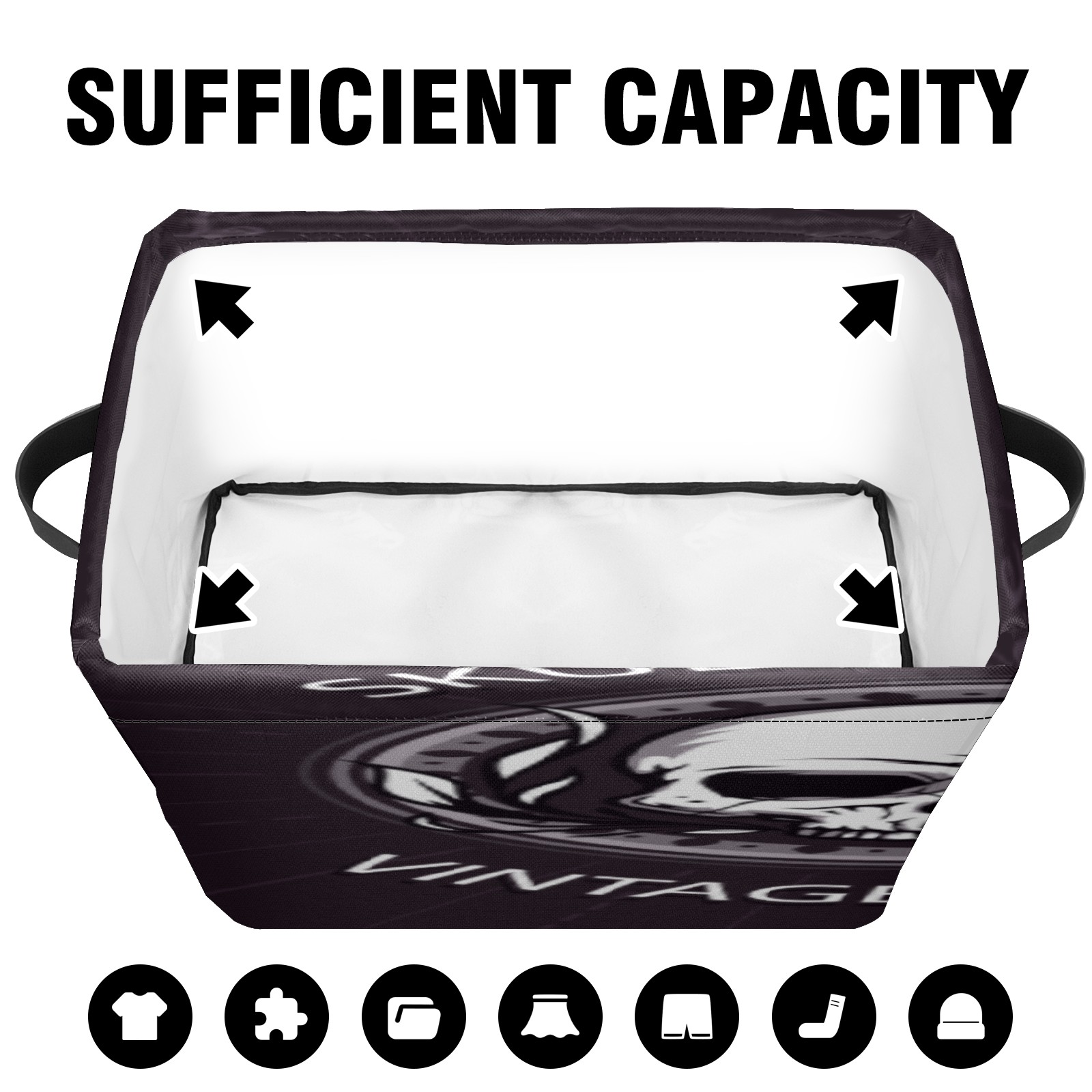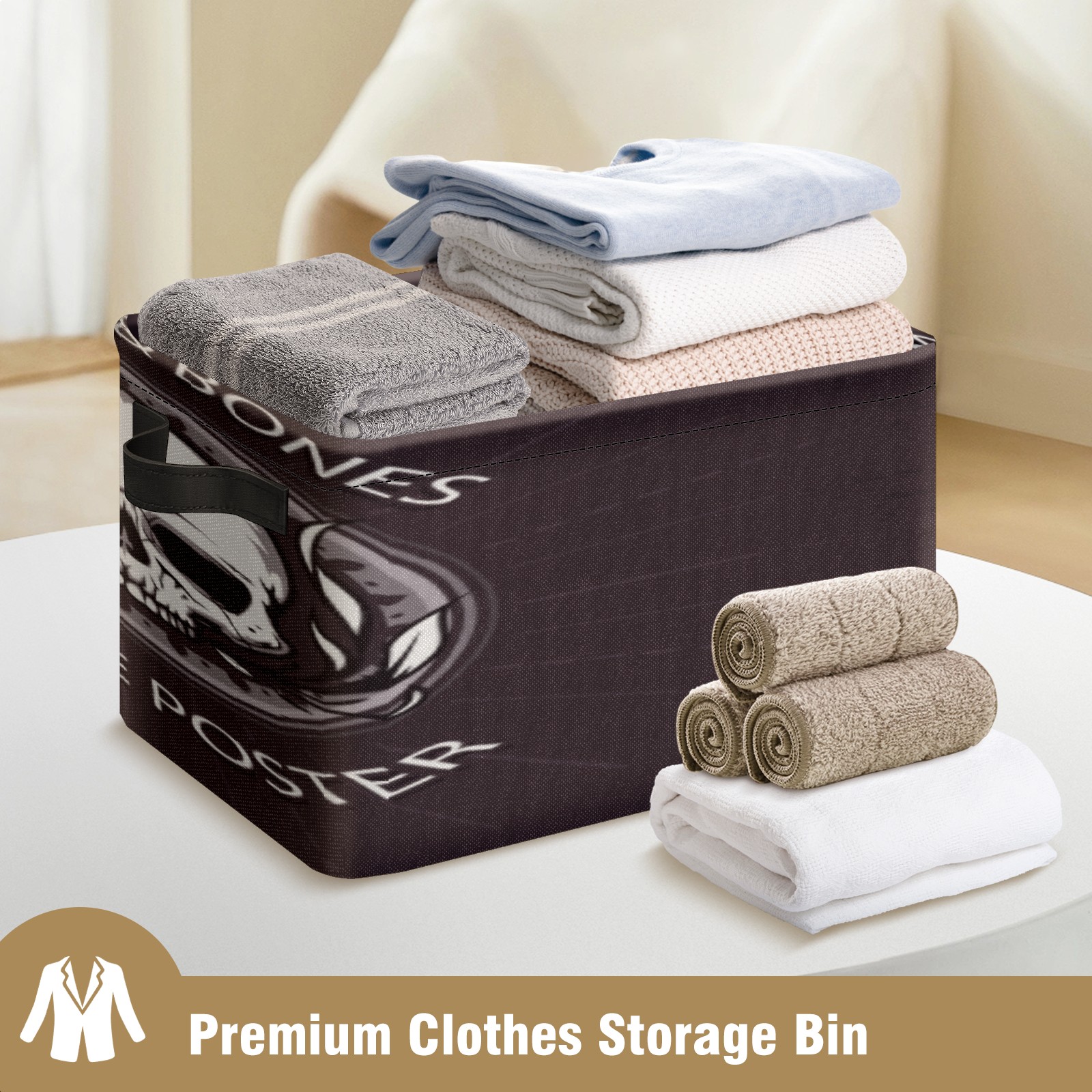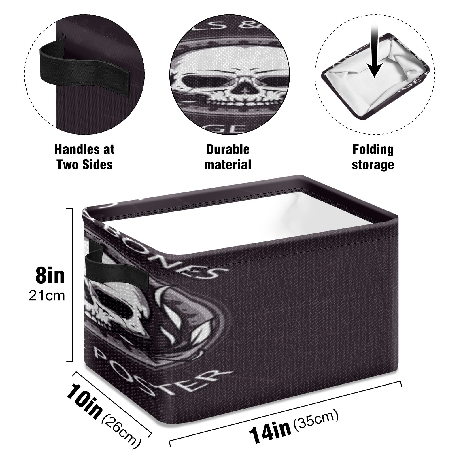 1 Pack Woven Storage Baskets - Natural Seagrass Organizer Bins with Handles, Decorative Foldable Storage skull badge