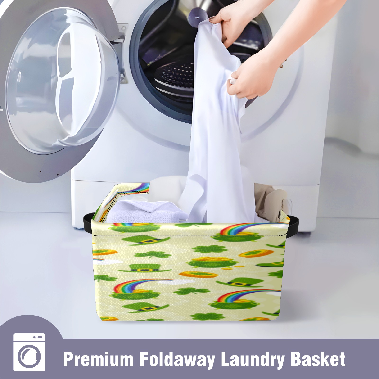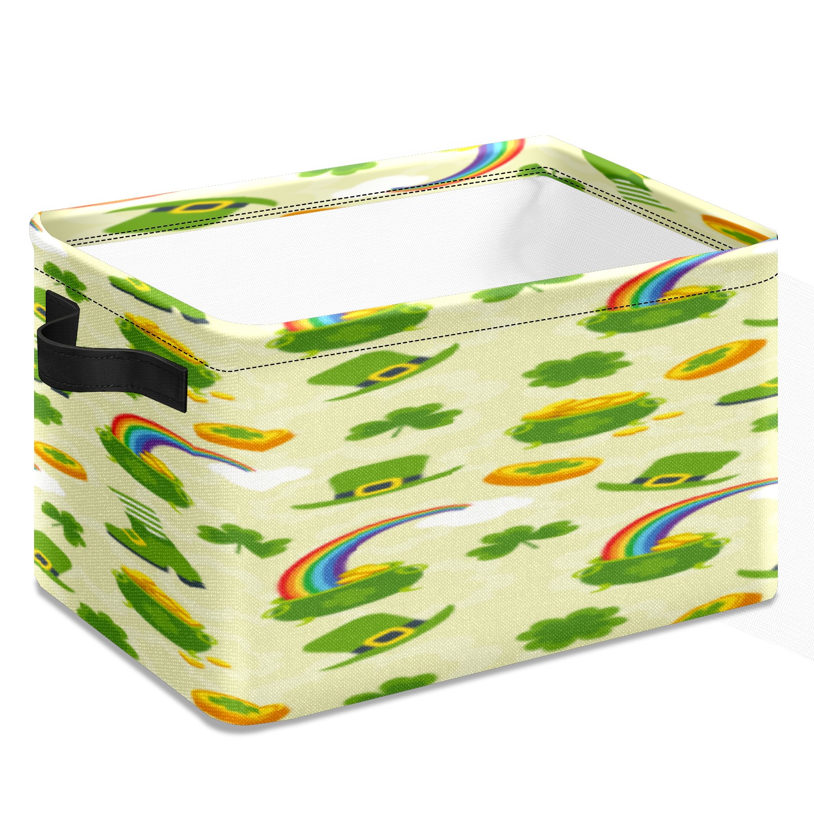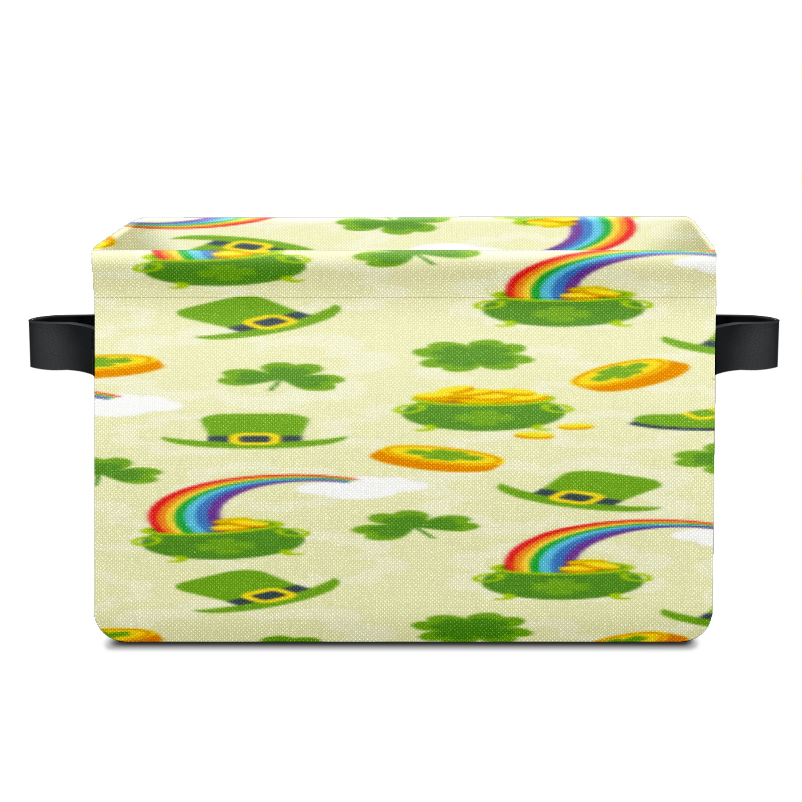 1 Pack Woven Storage Baskets - Natural Seagrass Organizer Bins with Handles, Decorative Foldable Storage Lucky 3-leaf grass rainbow
