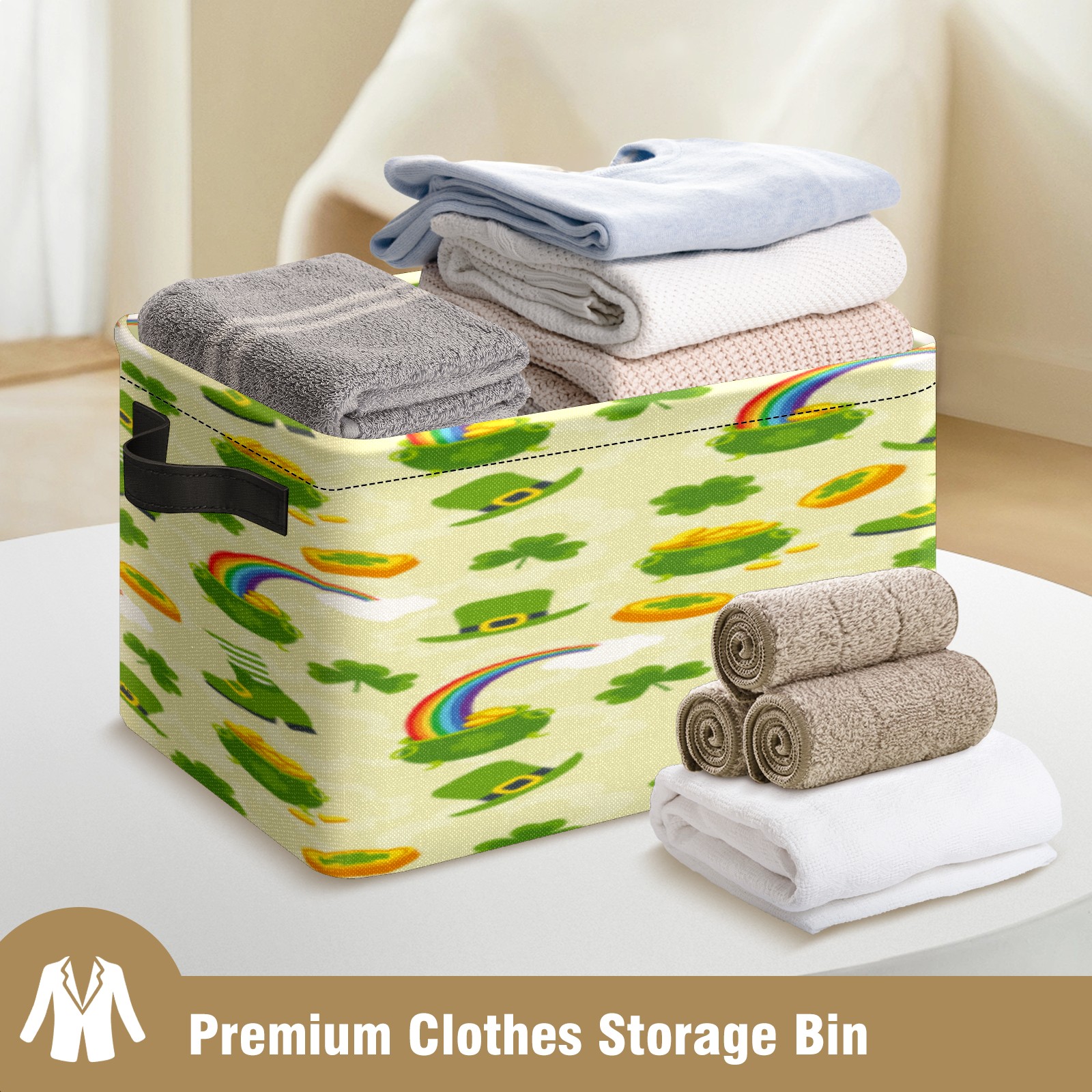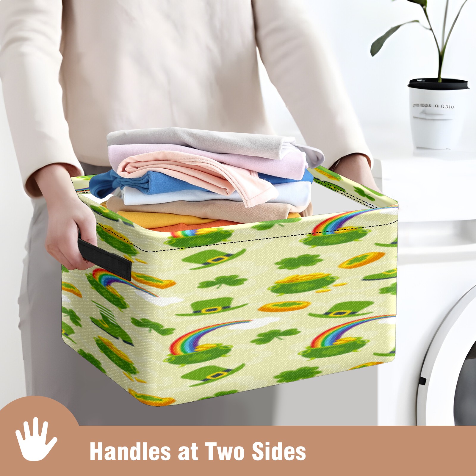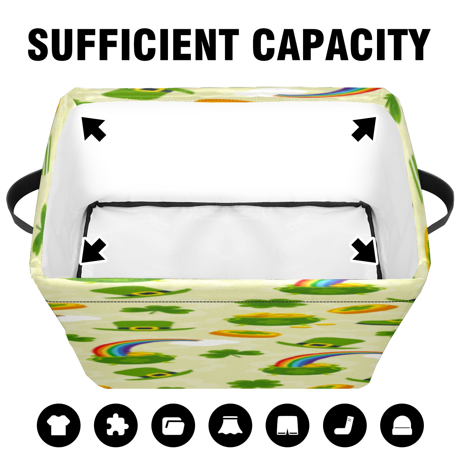 1 Pack Woven Storage Baskets - Natural Seagrass Organizer Bins with Handles, Decorative Foldable Storage Lucky 3-leaf grass rainbow