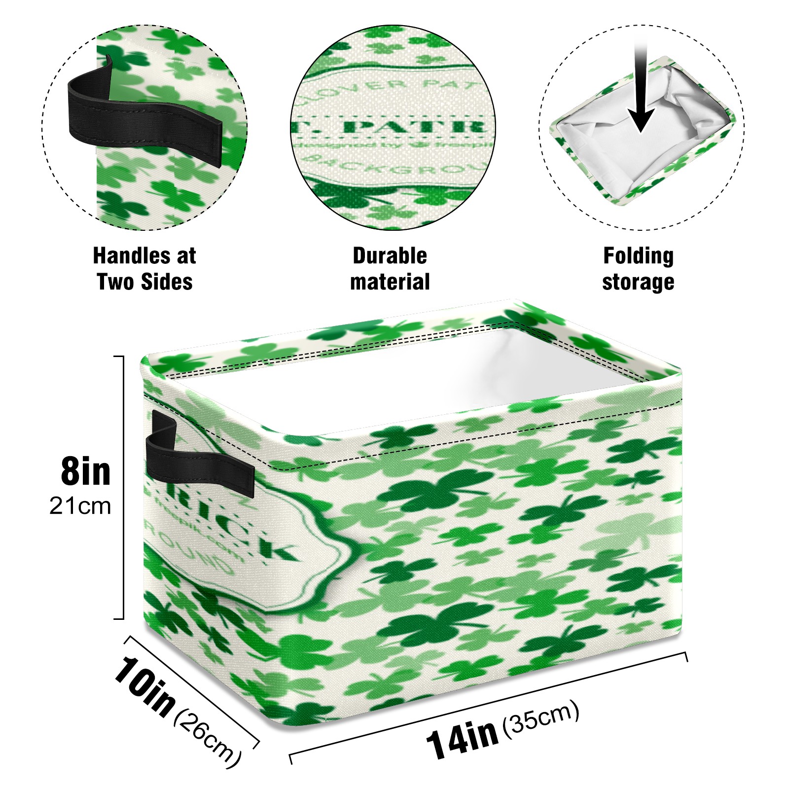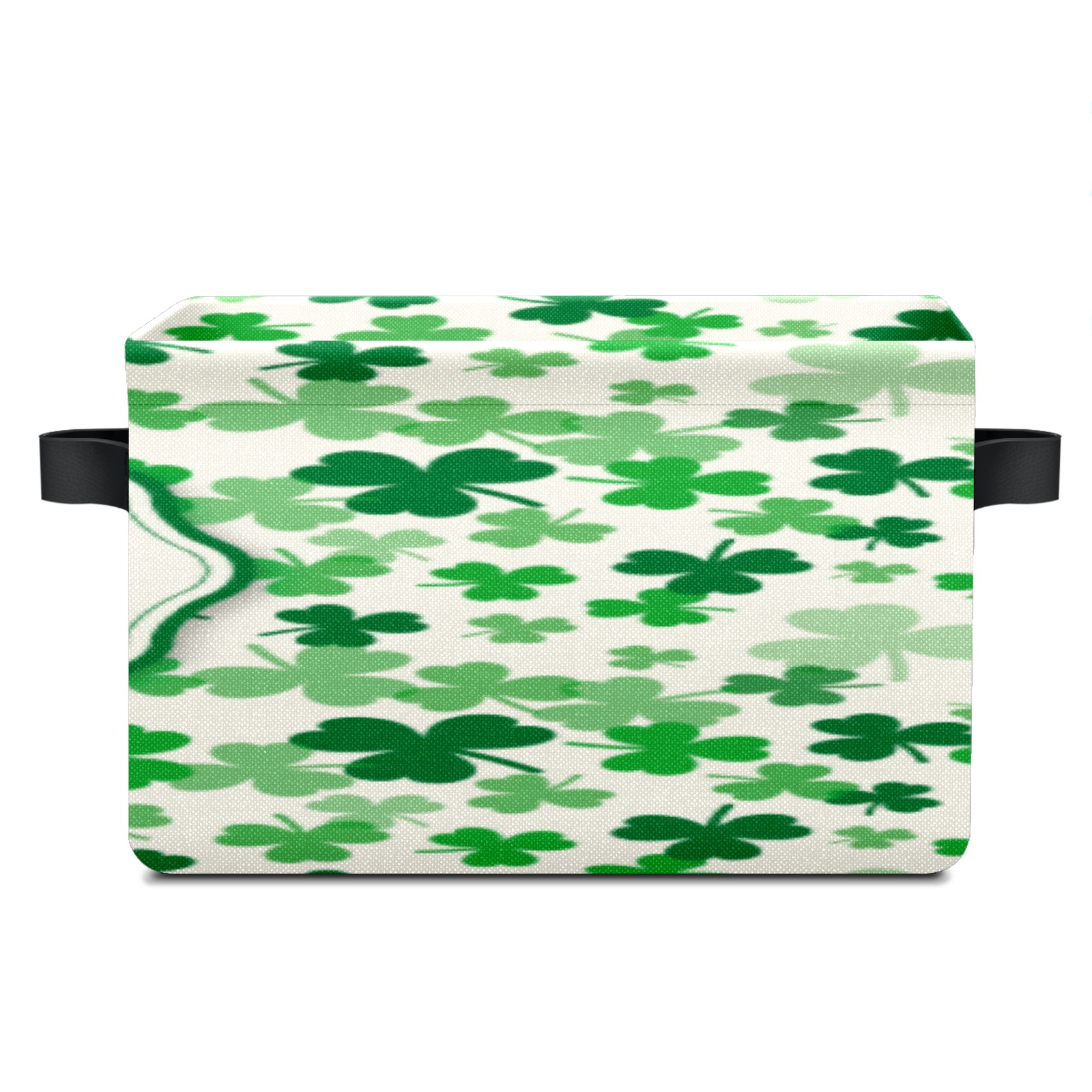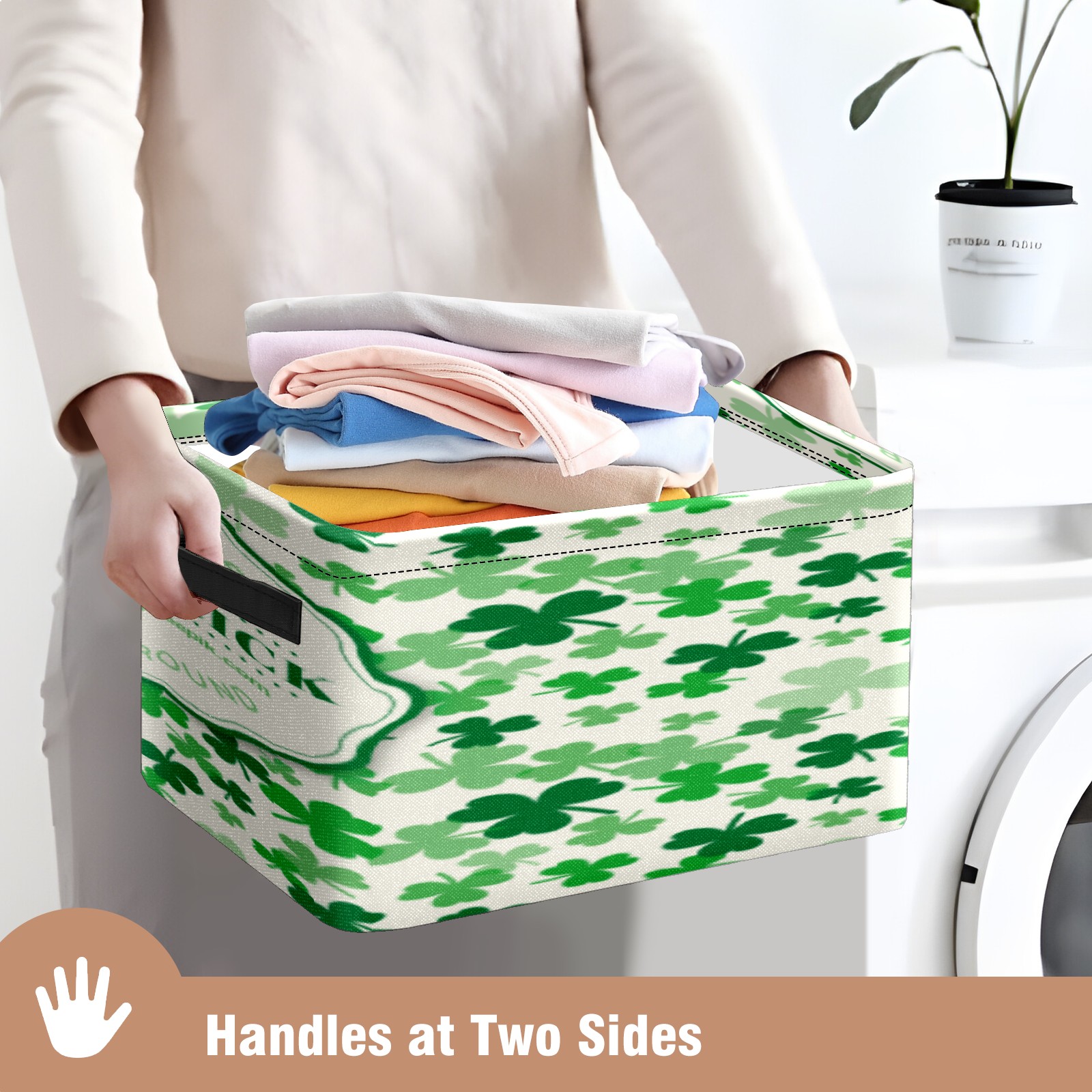 1 Pack Woven Storage Baskets - Natural Seagrass Organizer Bins with Handles, Decorative Foldable Storage Lucky 3-leaf green grass