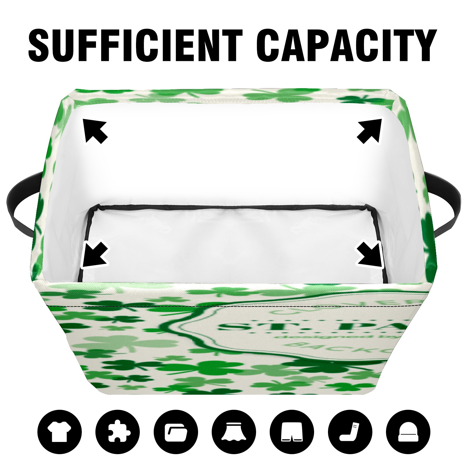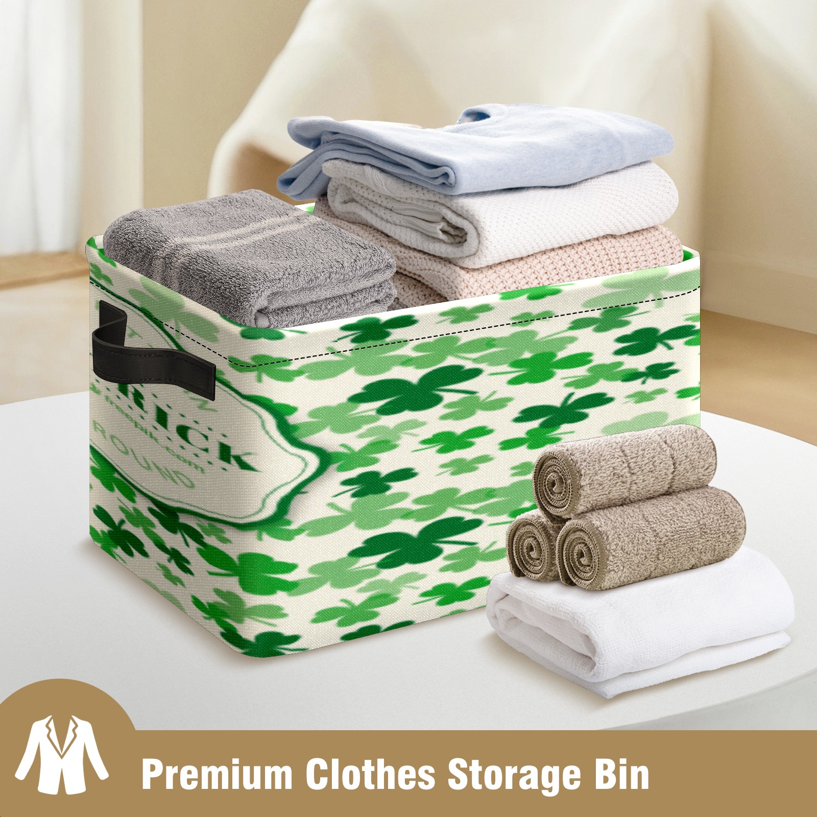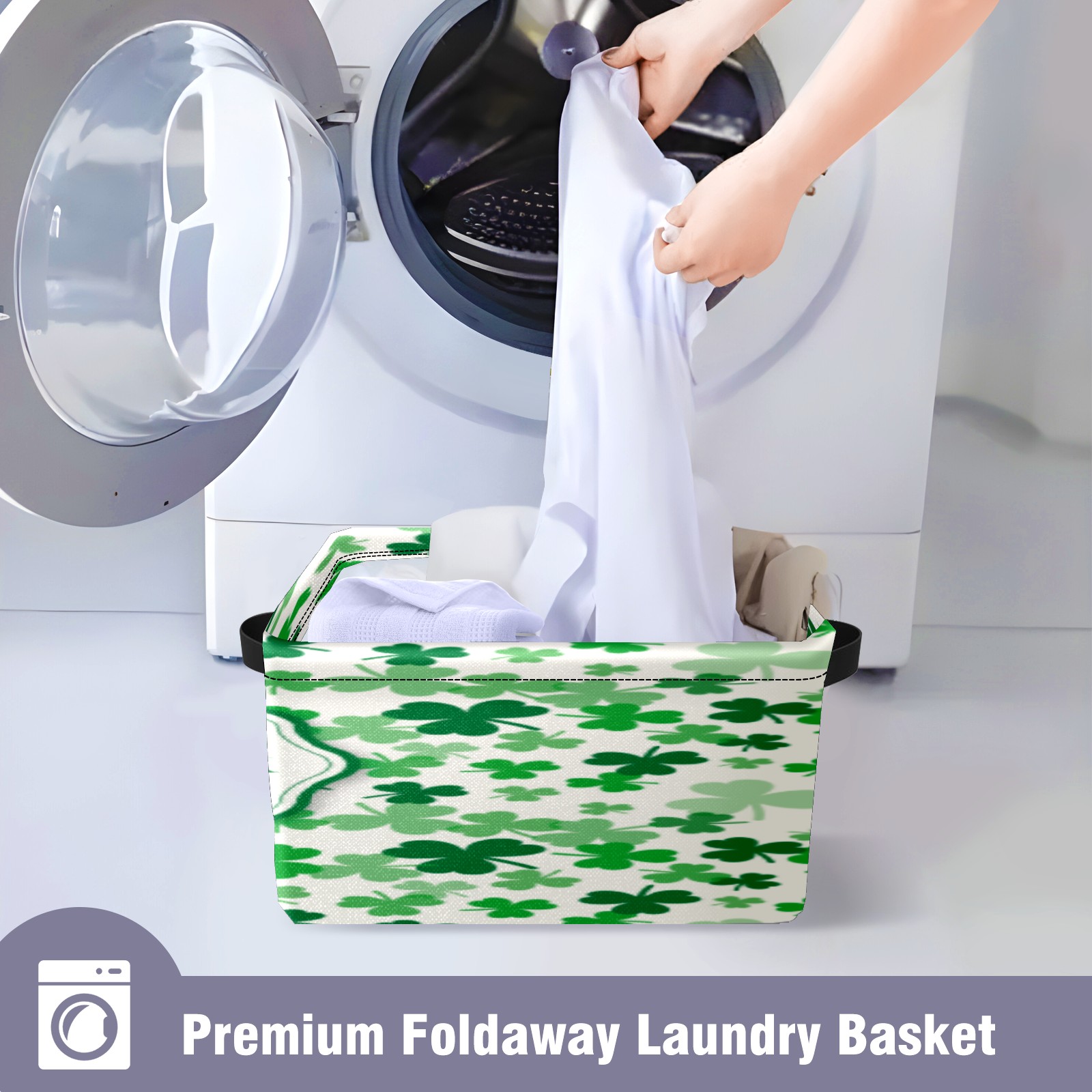 1 Pack Woven Storage Baskets - Natural Seagrass Organizer Bins with Handles, Decorative Foldable Storage Lucky 3-leaf green grass