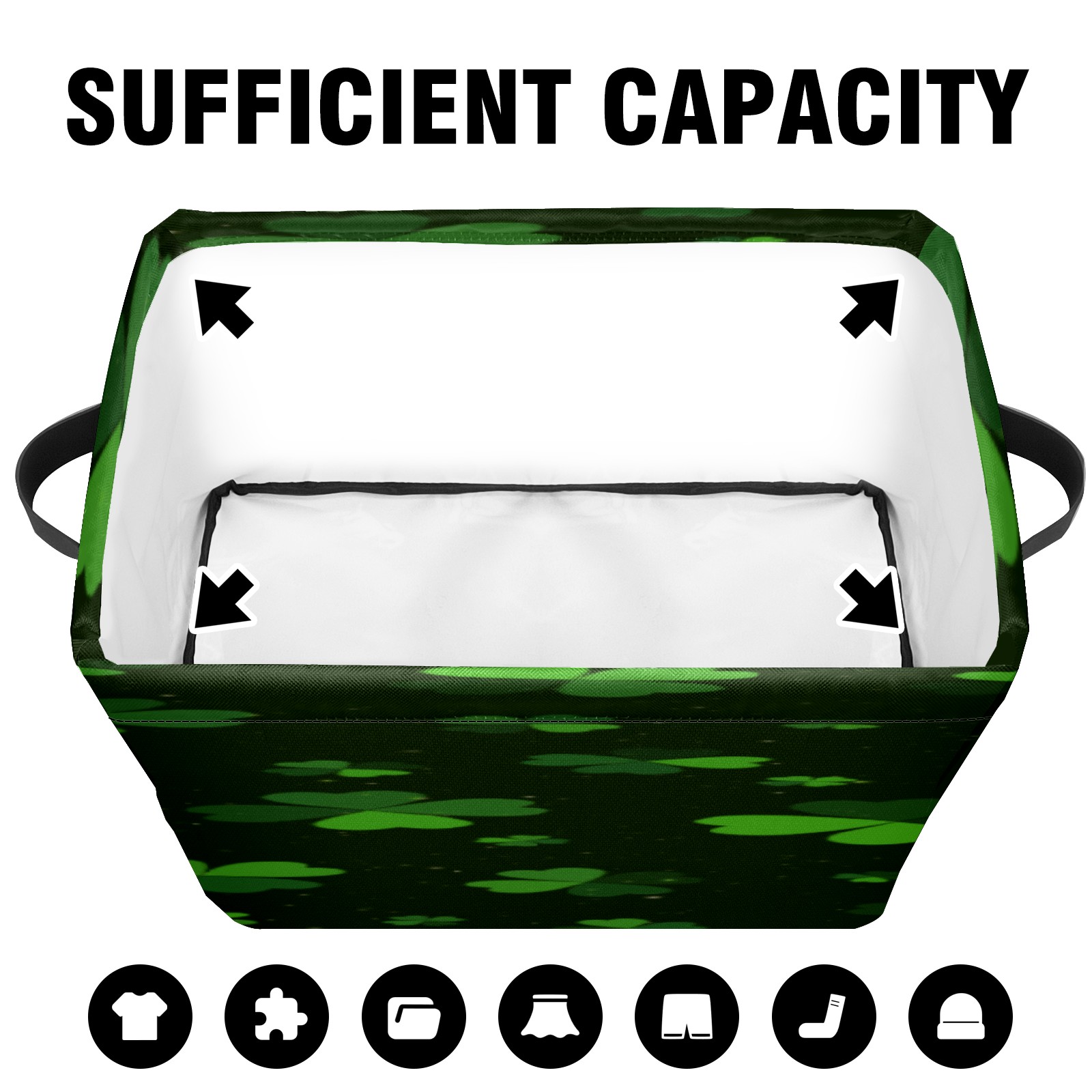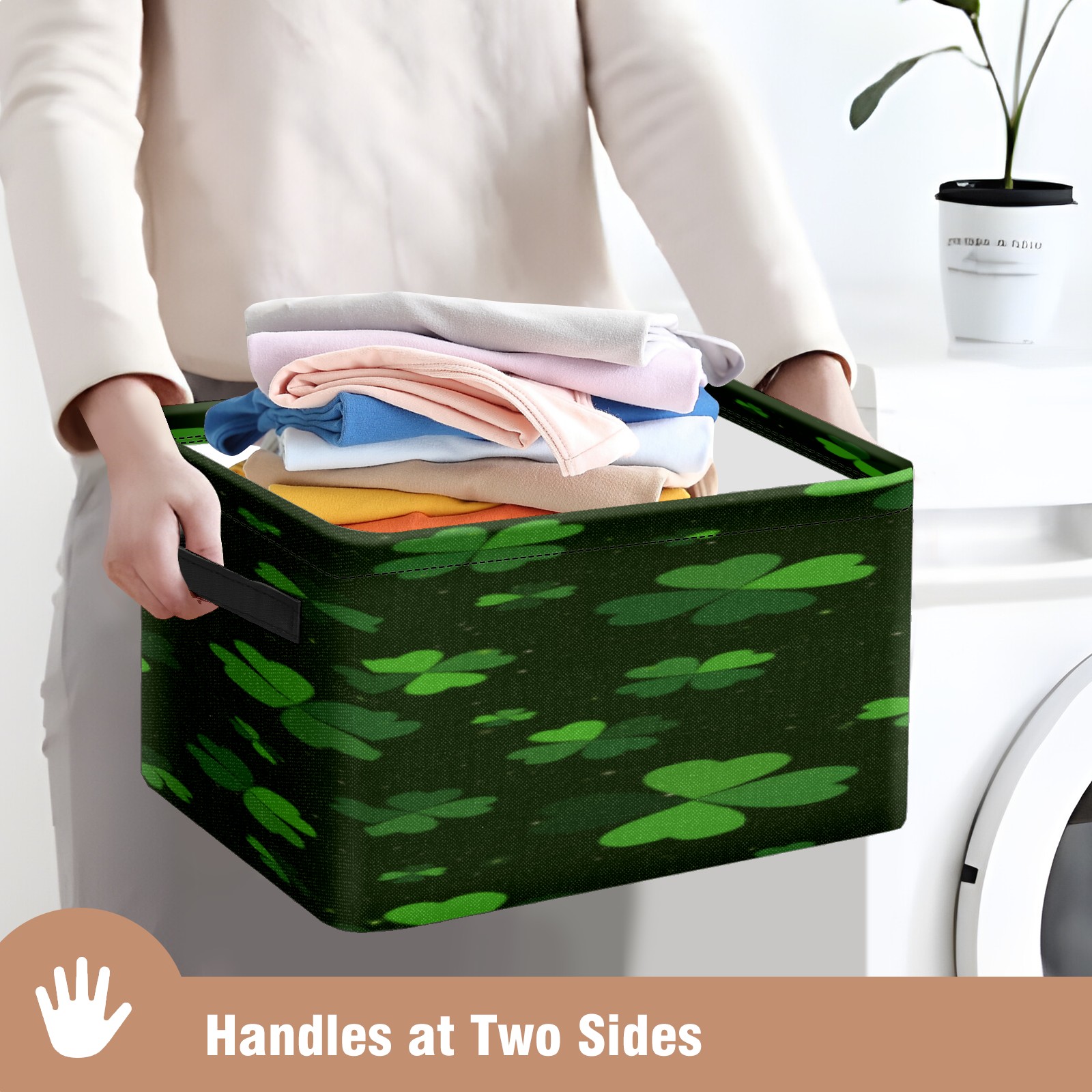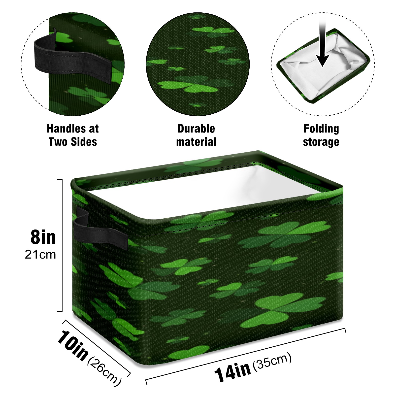 1 Pack Woven Storage Baskets - Natural Seagrass Organizer Bins with Handles, Decorative Foldable Storage Lucky 3-leaf grass durk