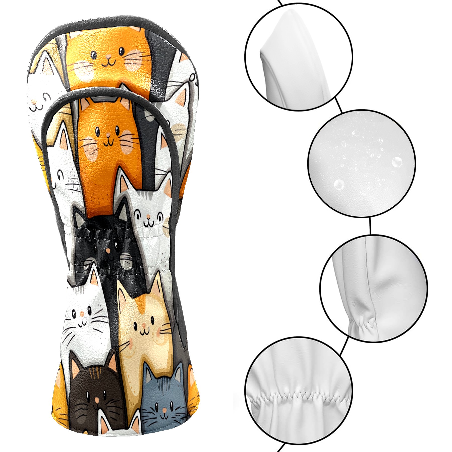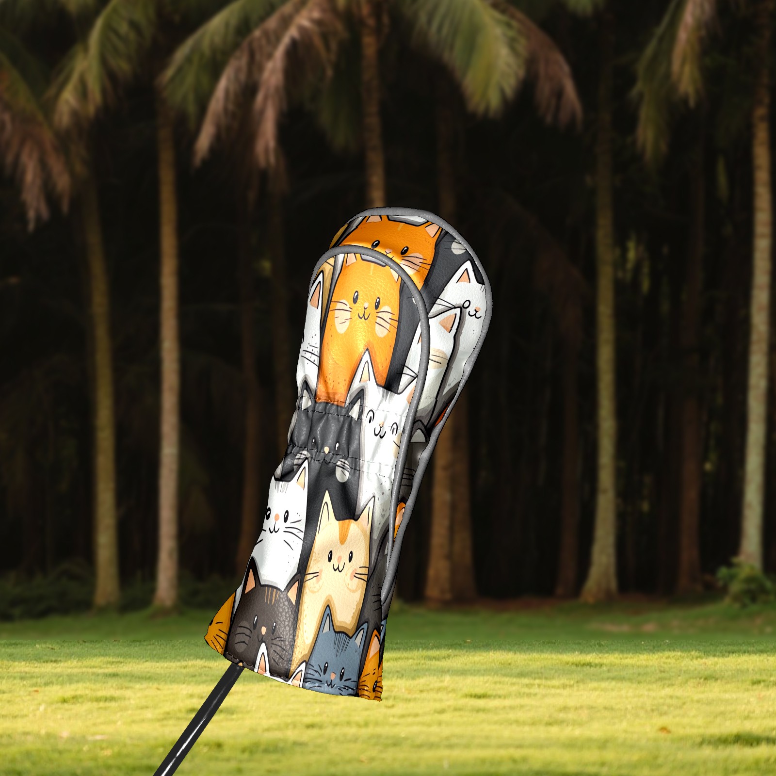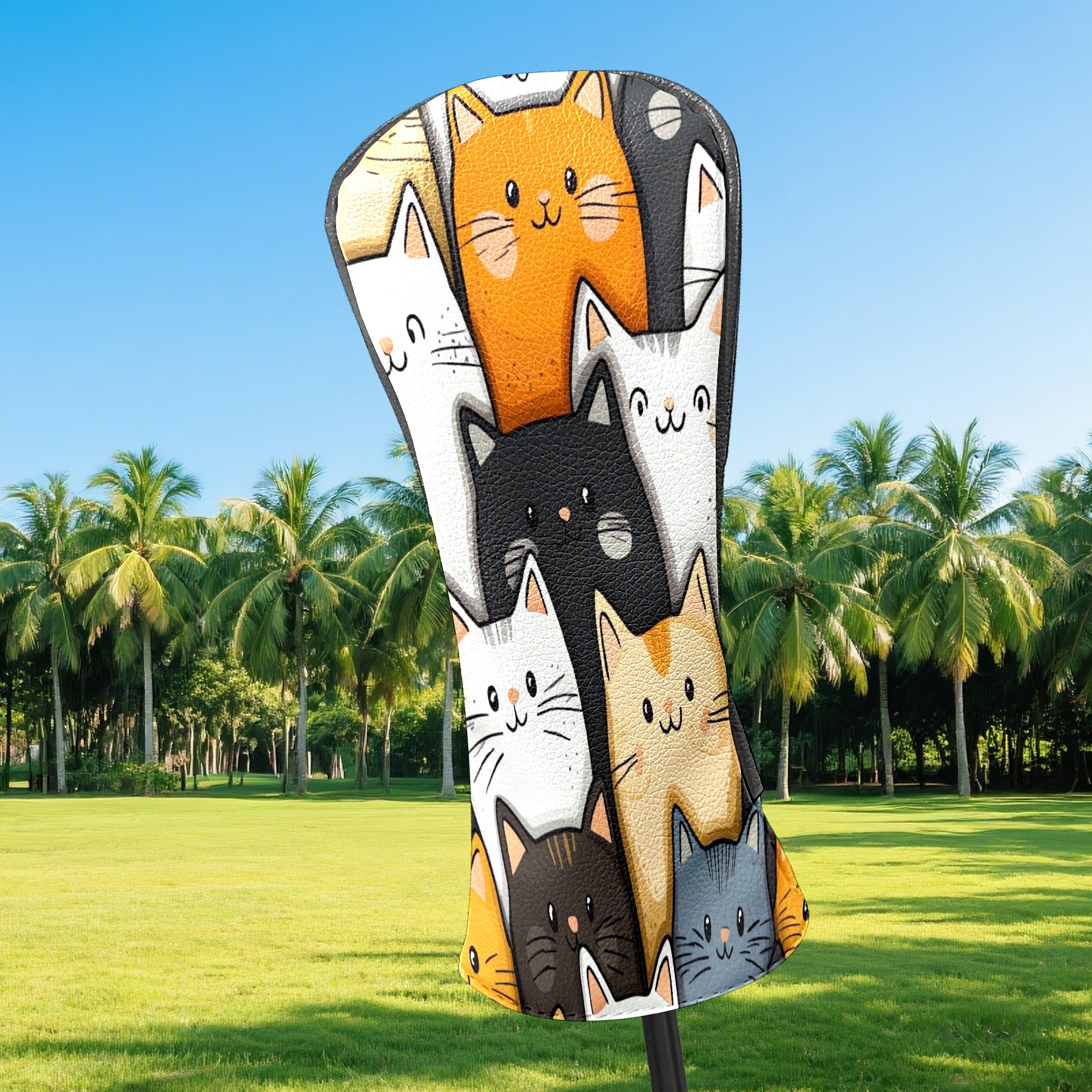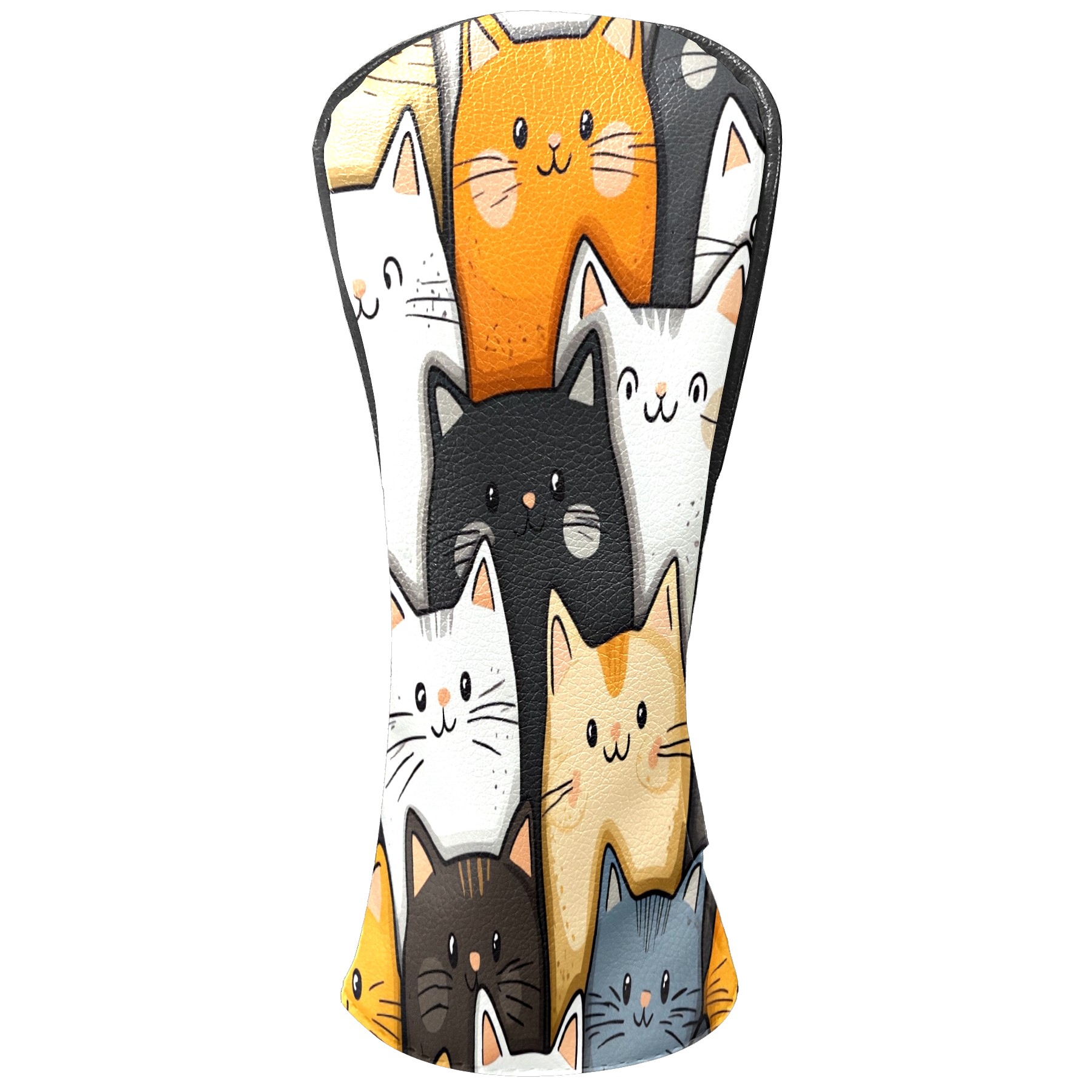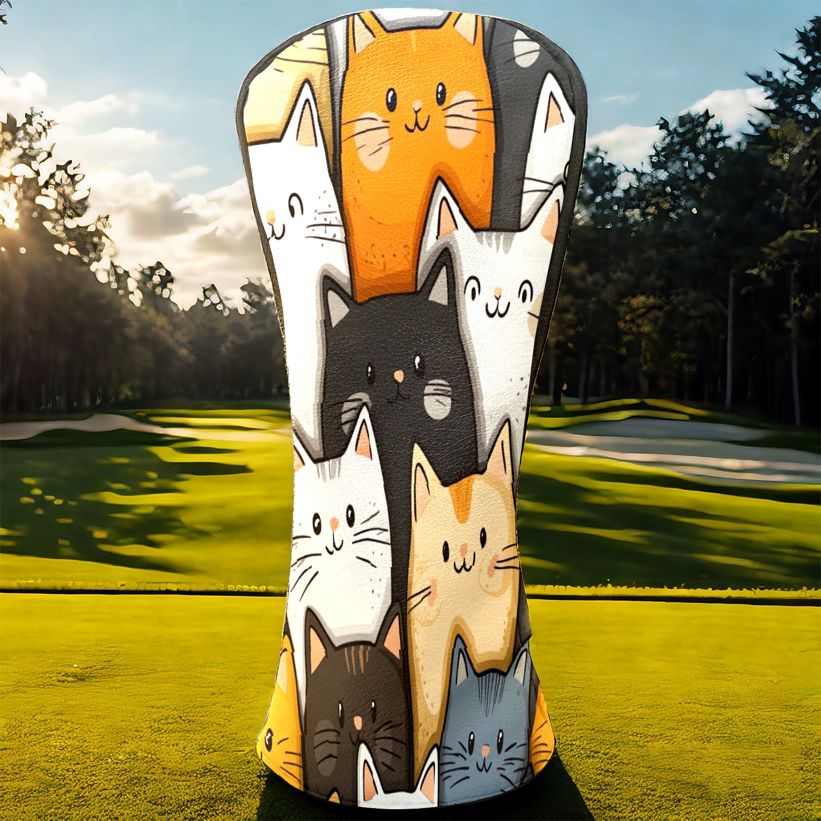 Golf Club Head Cover, High Quality PU Leather Driver and Wood Club Head Cover with Anti-Scratch Lining, Playful, Multi-colored Cat Universal Gift for Men and Women