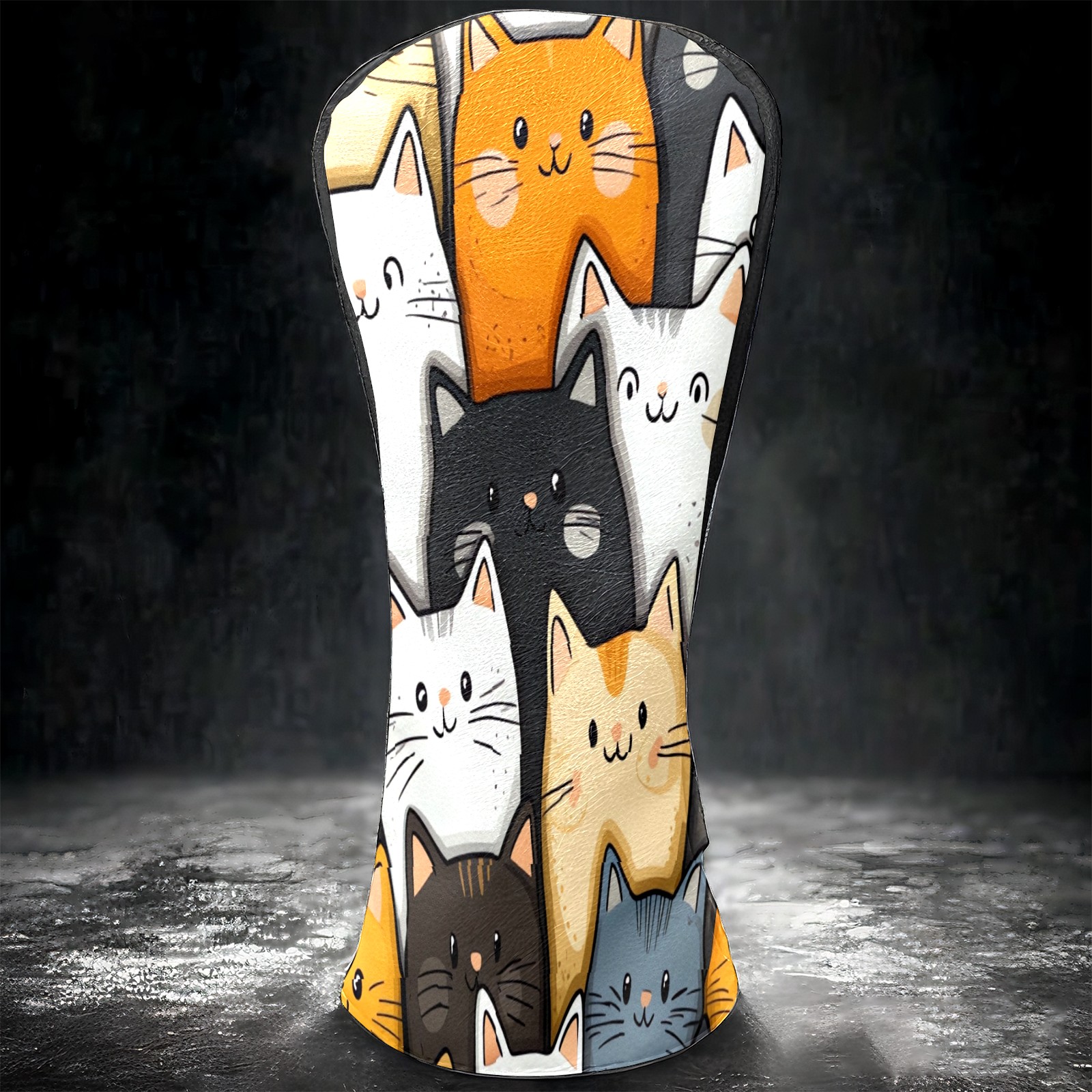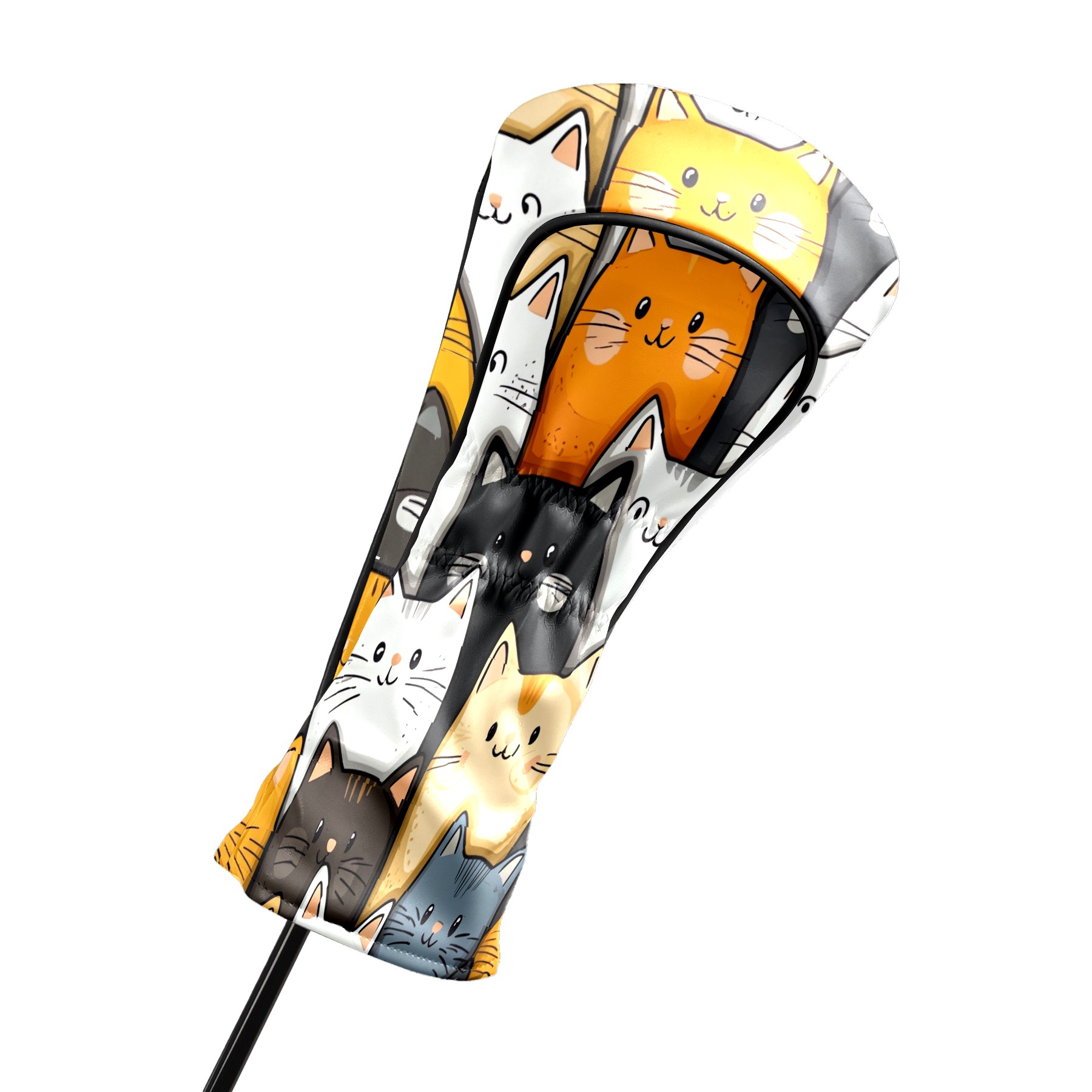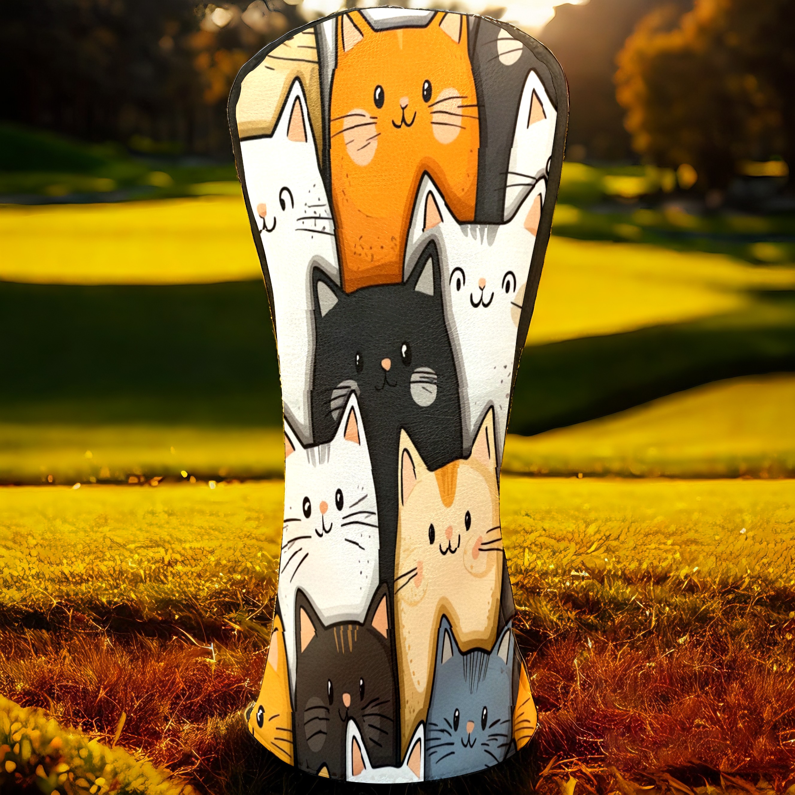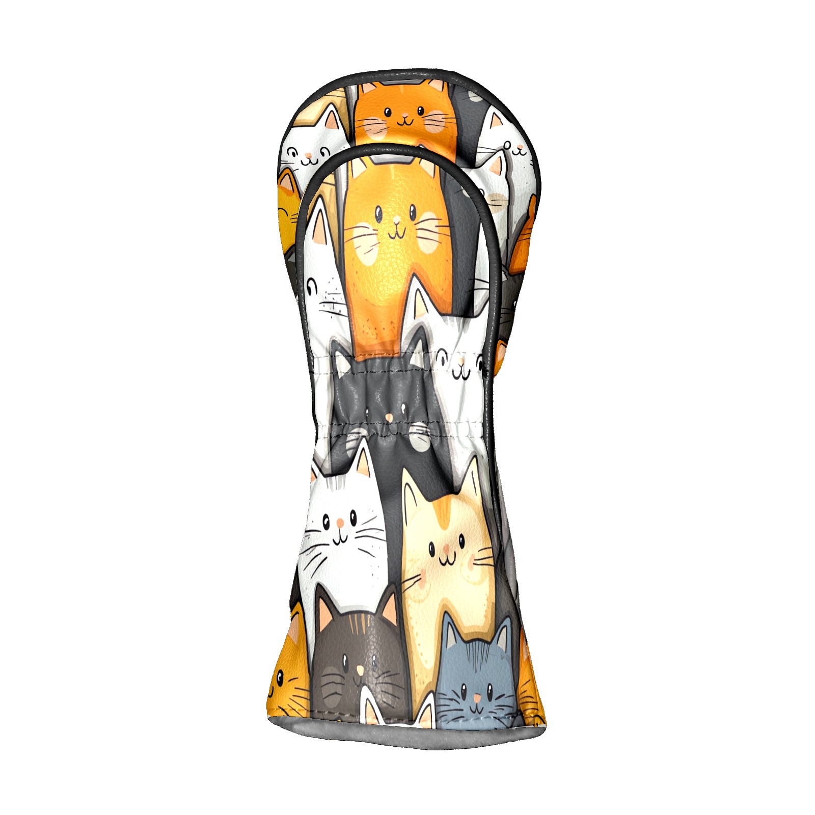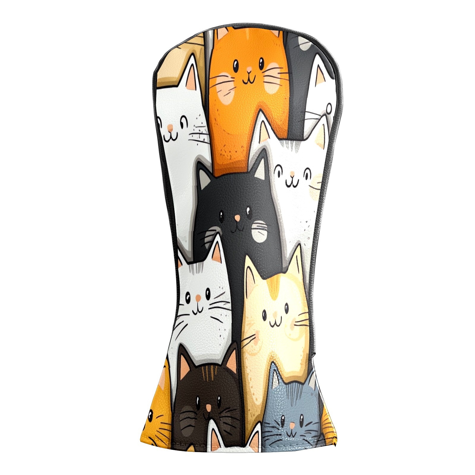 Golf Club Head Cover, High Quality PU Leather Driver and Wood Club Head Cover with Anti-Scratch Lining, Playful, Multi-colored Cat Universal Gift for Men and Women