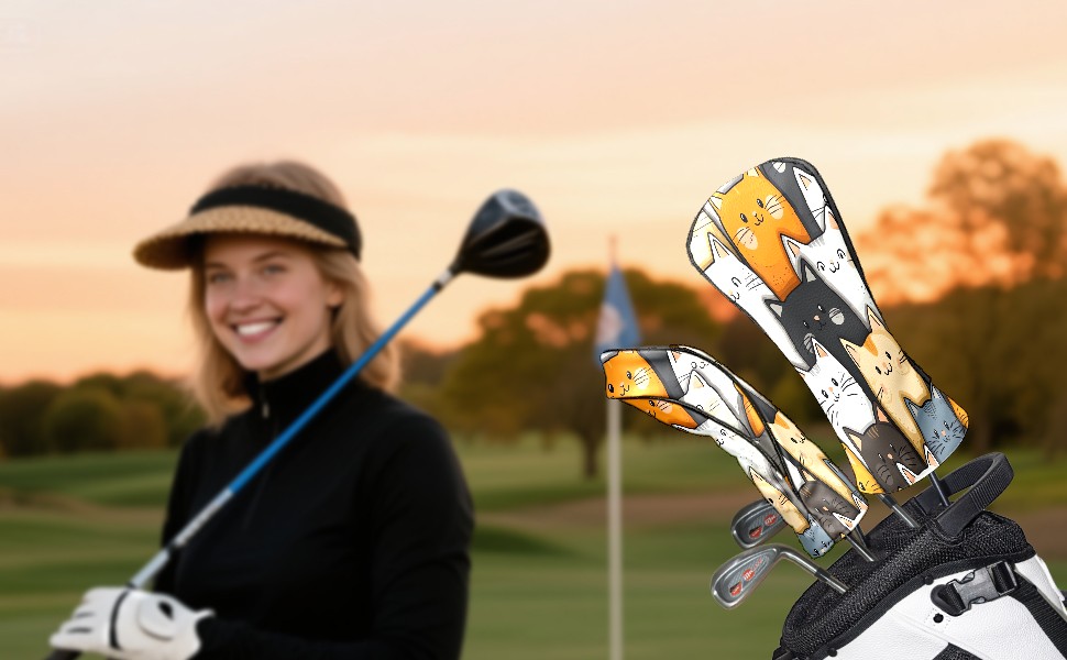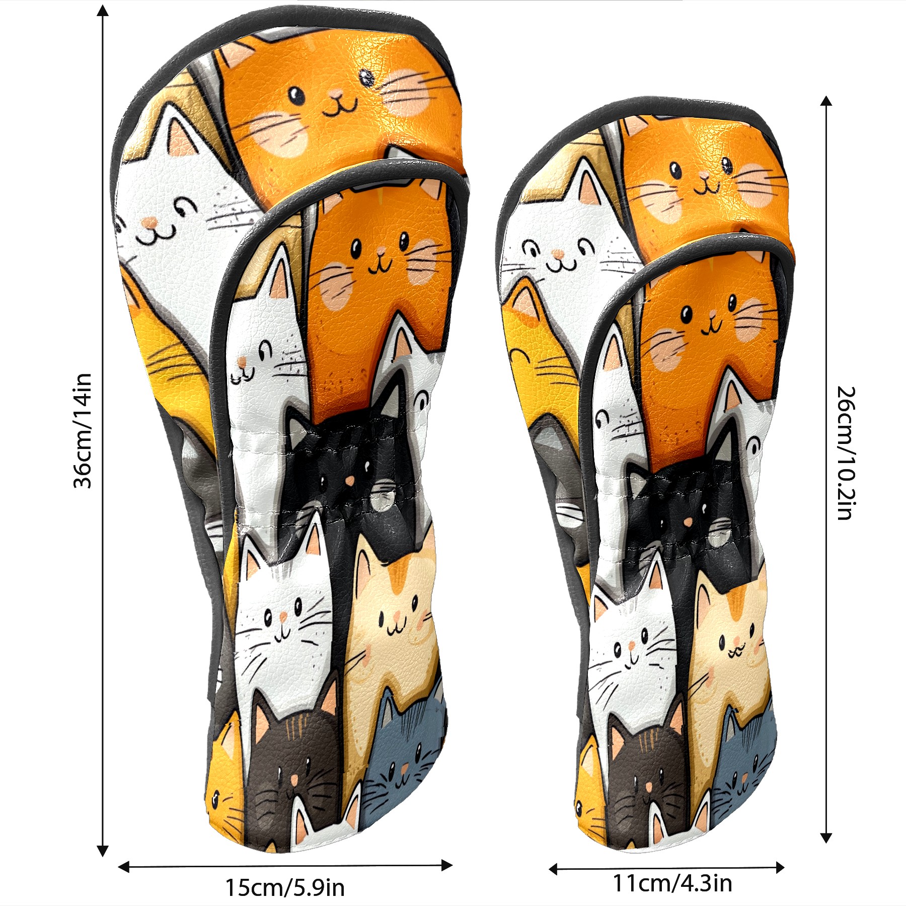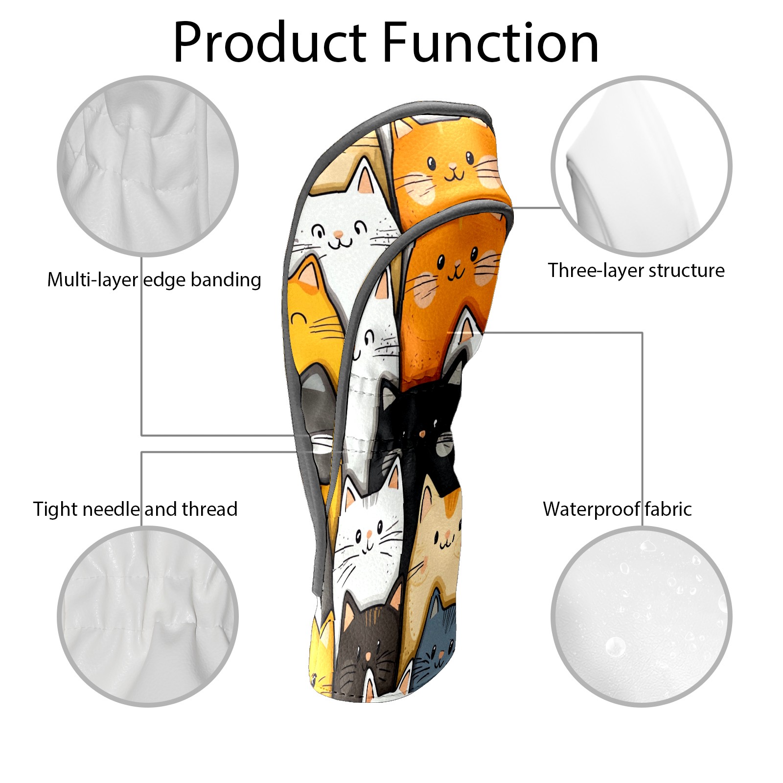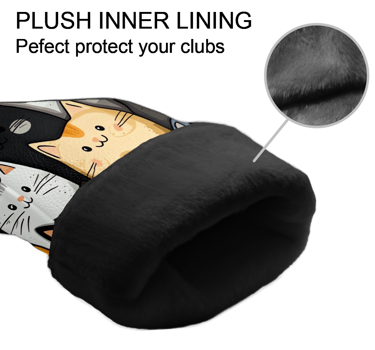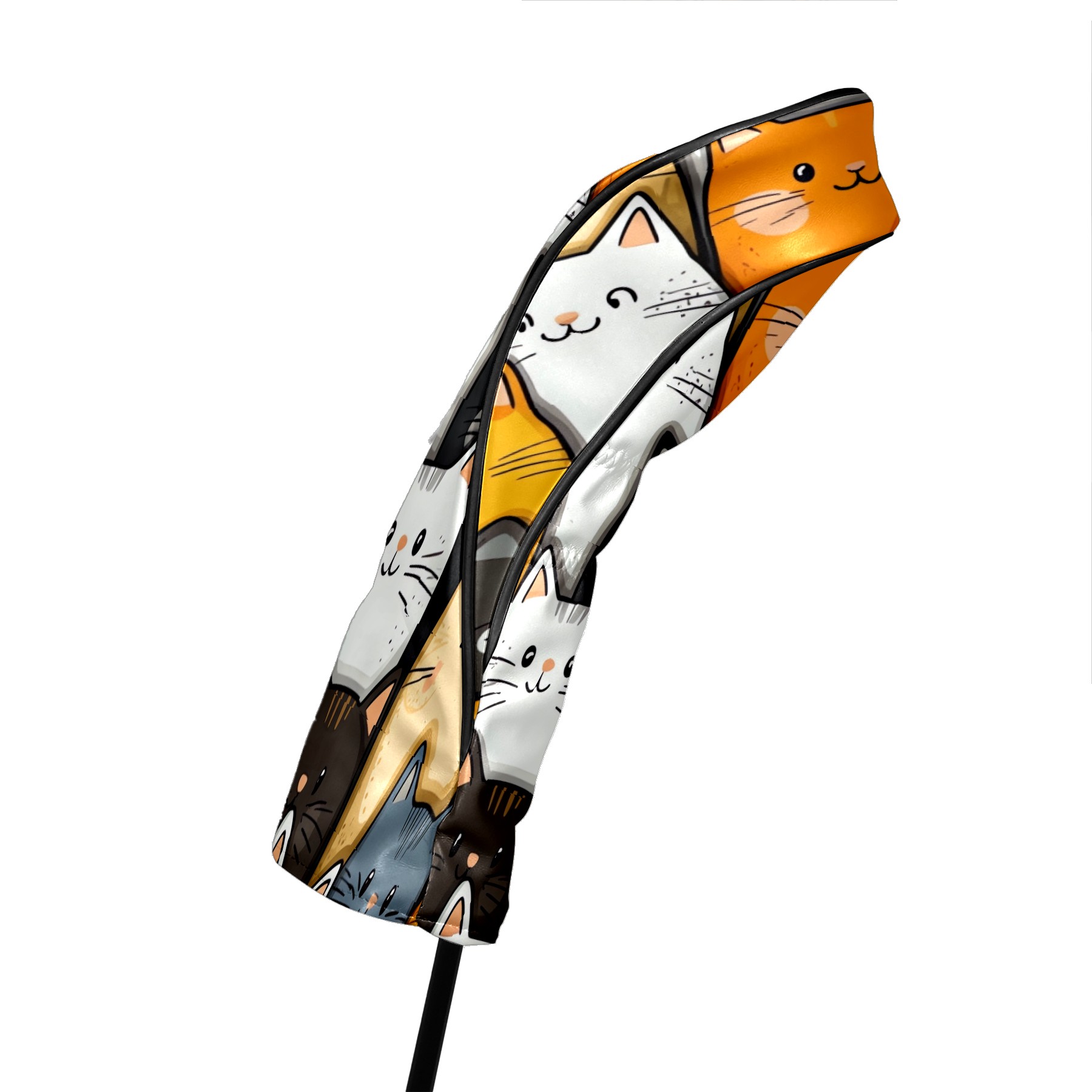 Golf Club Head Cover, High Quality PU Leather Driver and Wood Club Head Cover with Anti-Scratch Lining, Playful, Multi-colored Cat Universal Gift for Men and Women
