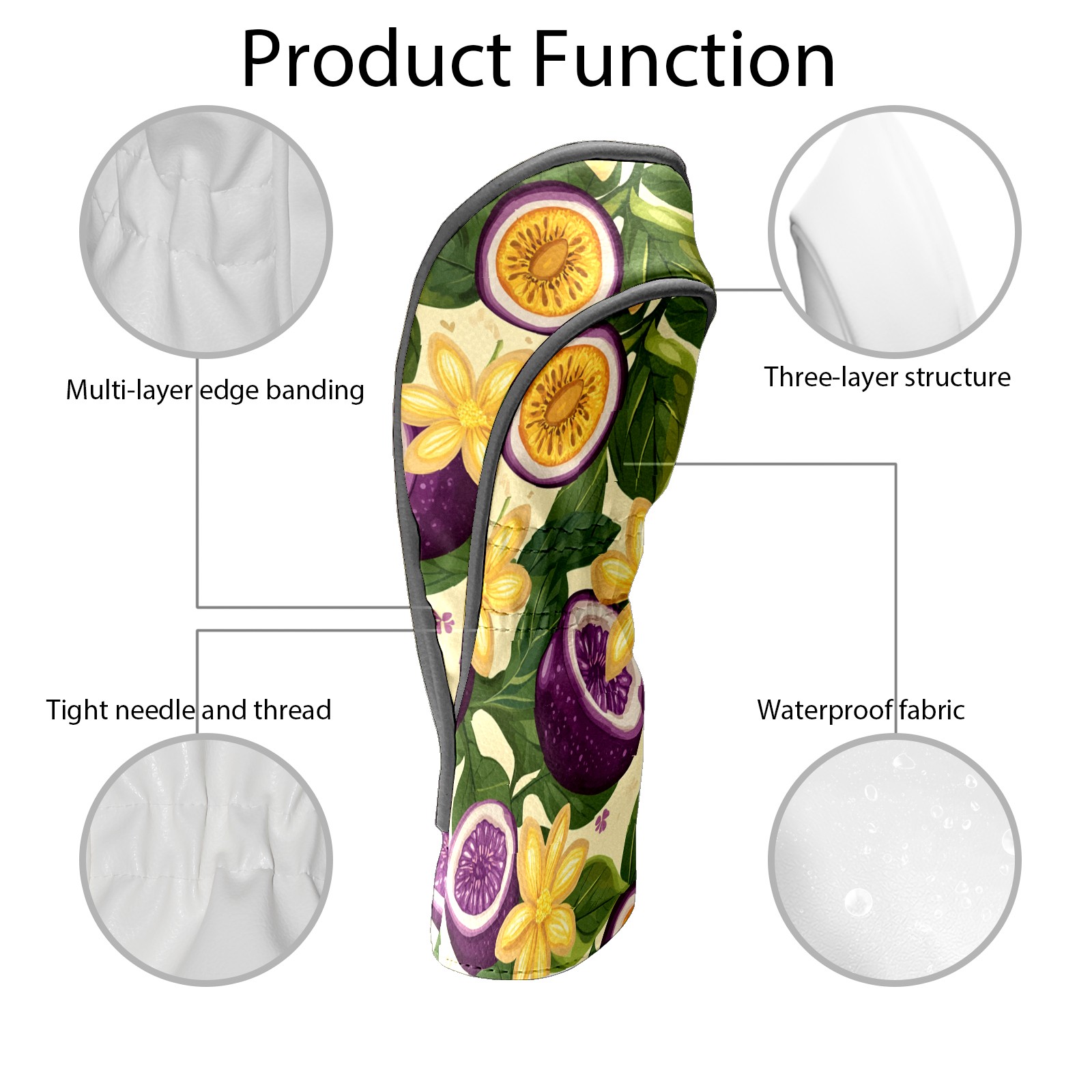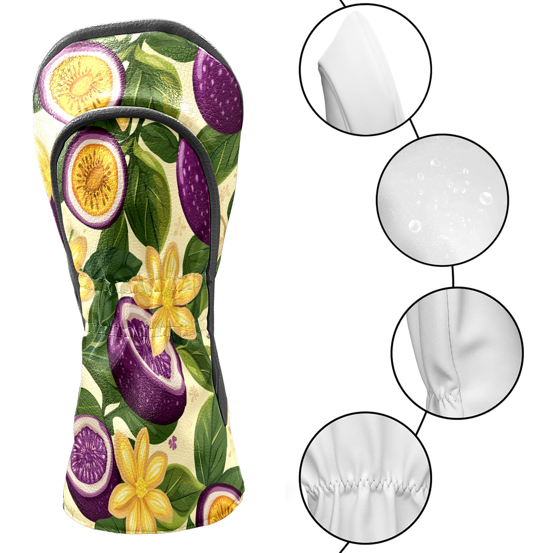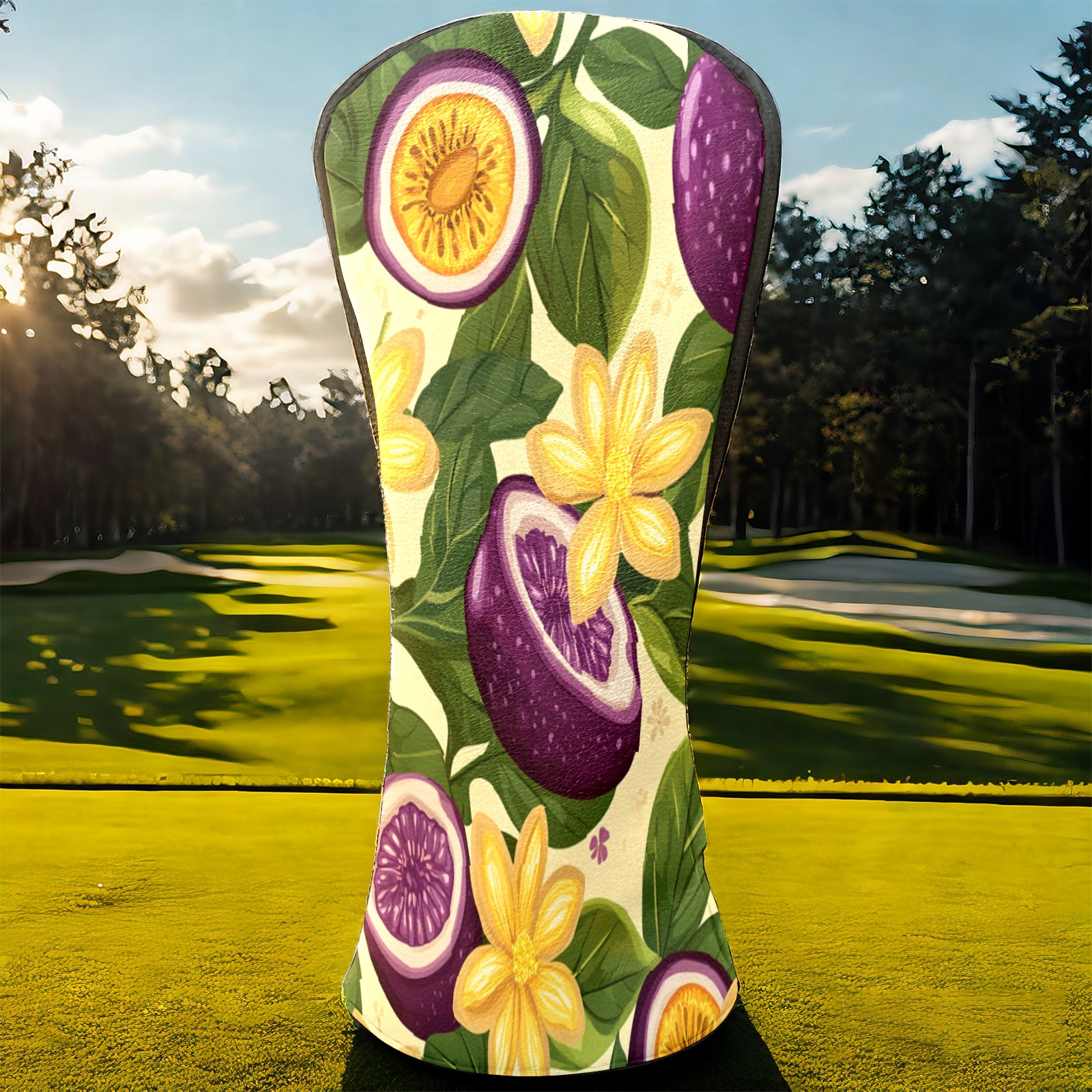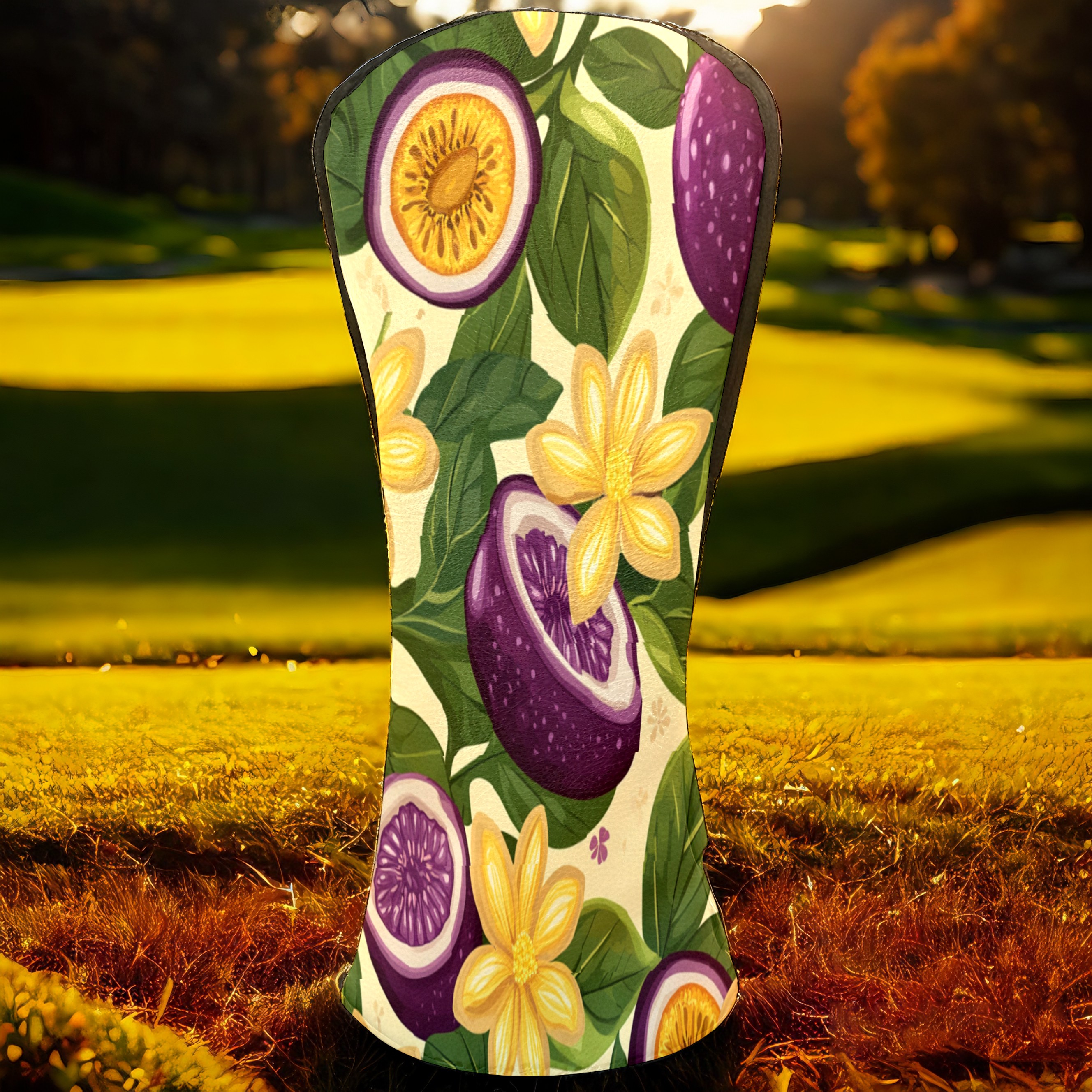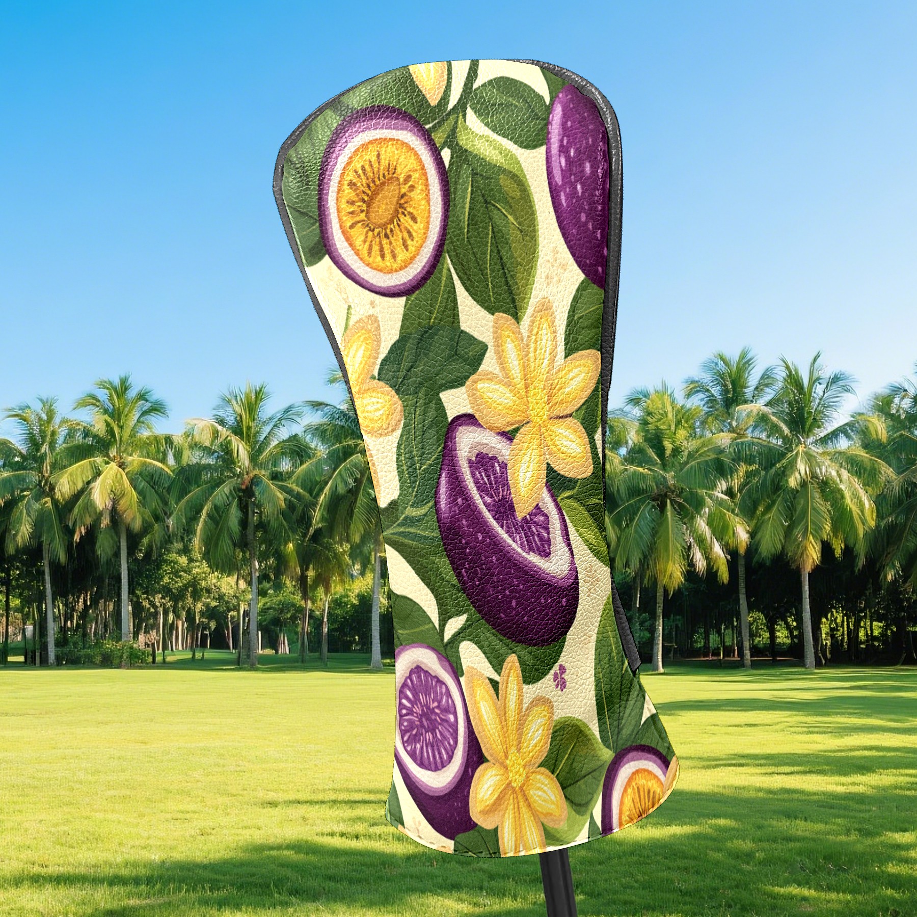 Golf Club Head Cover, High Quality PU Leather Driver and Wood Club Head Cover with Anti-Scratch Lining, Passion Fruit Flower Universal Gift for Men and Women