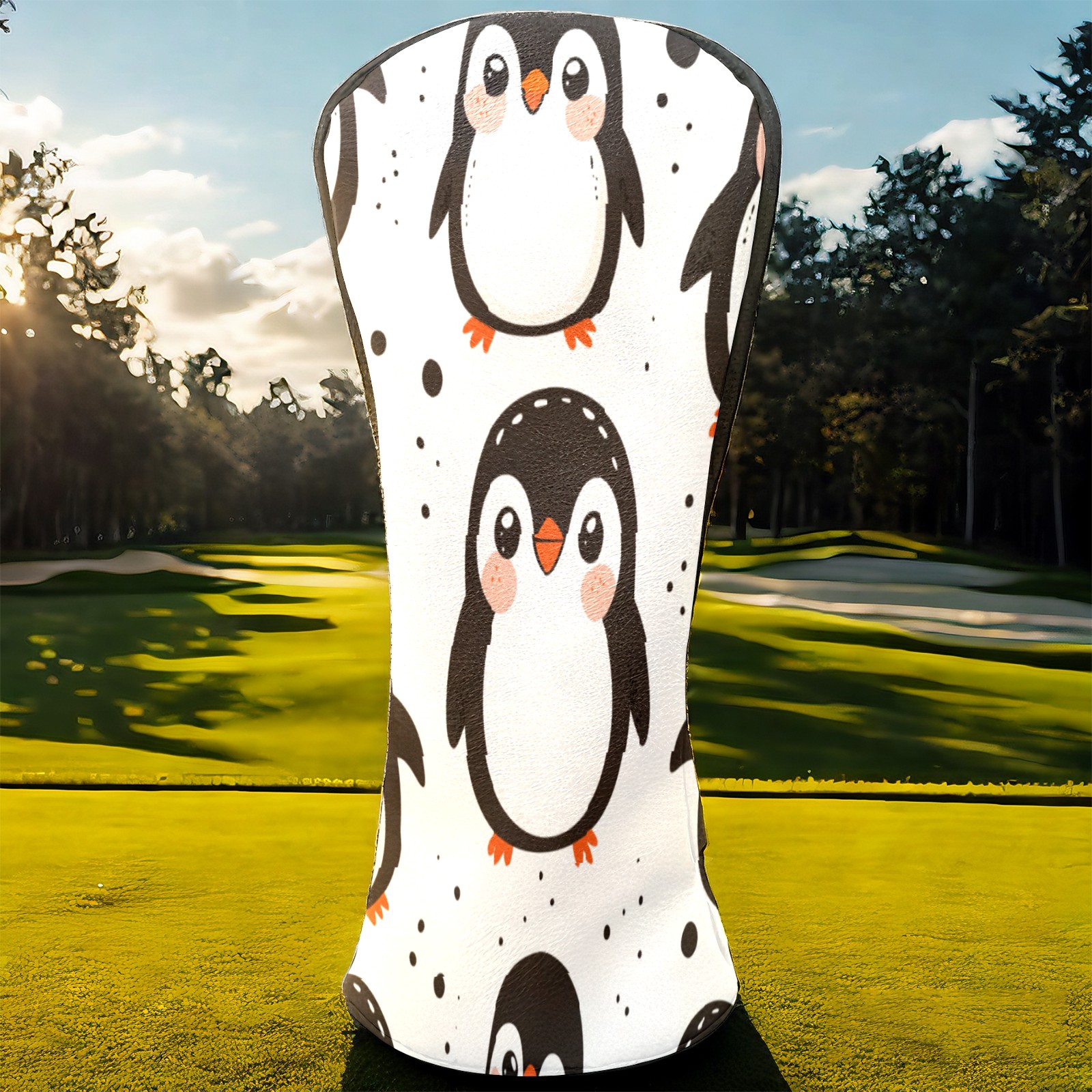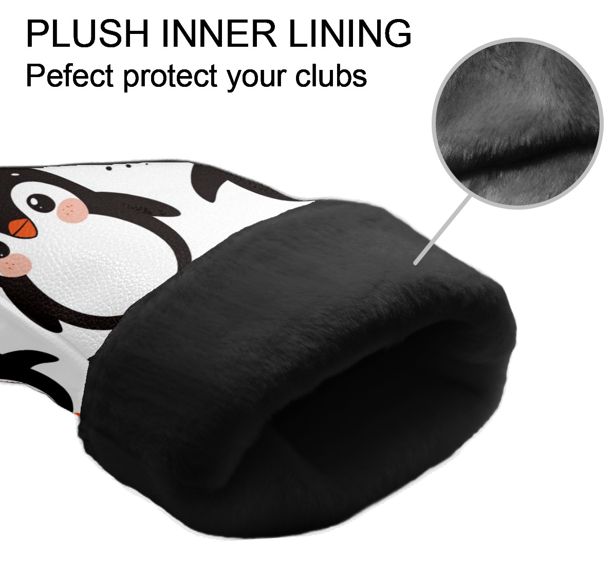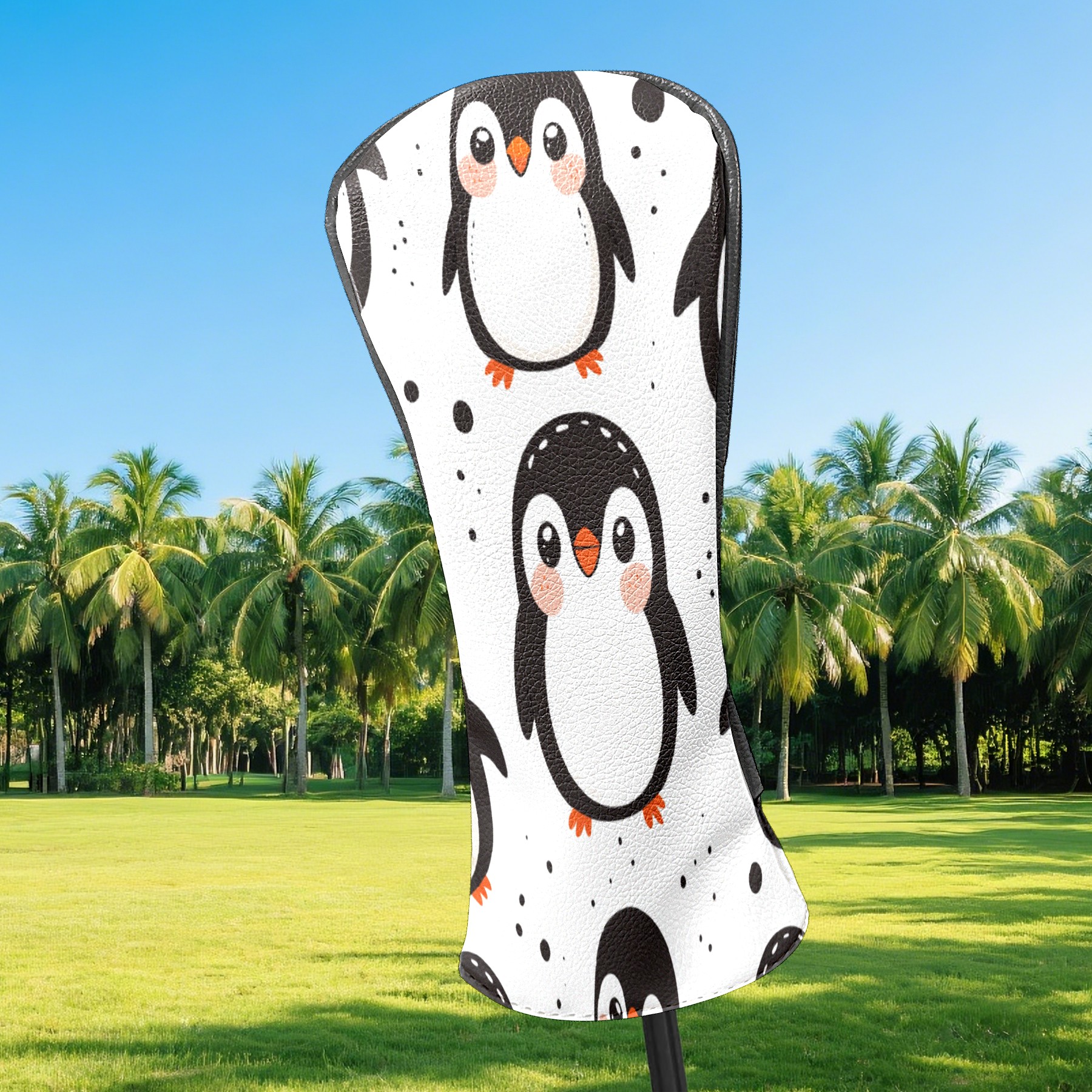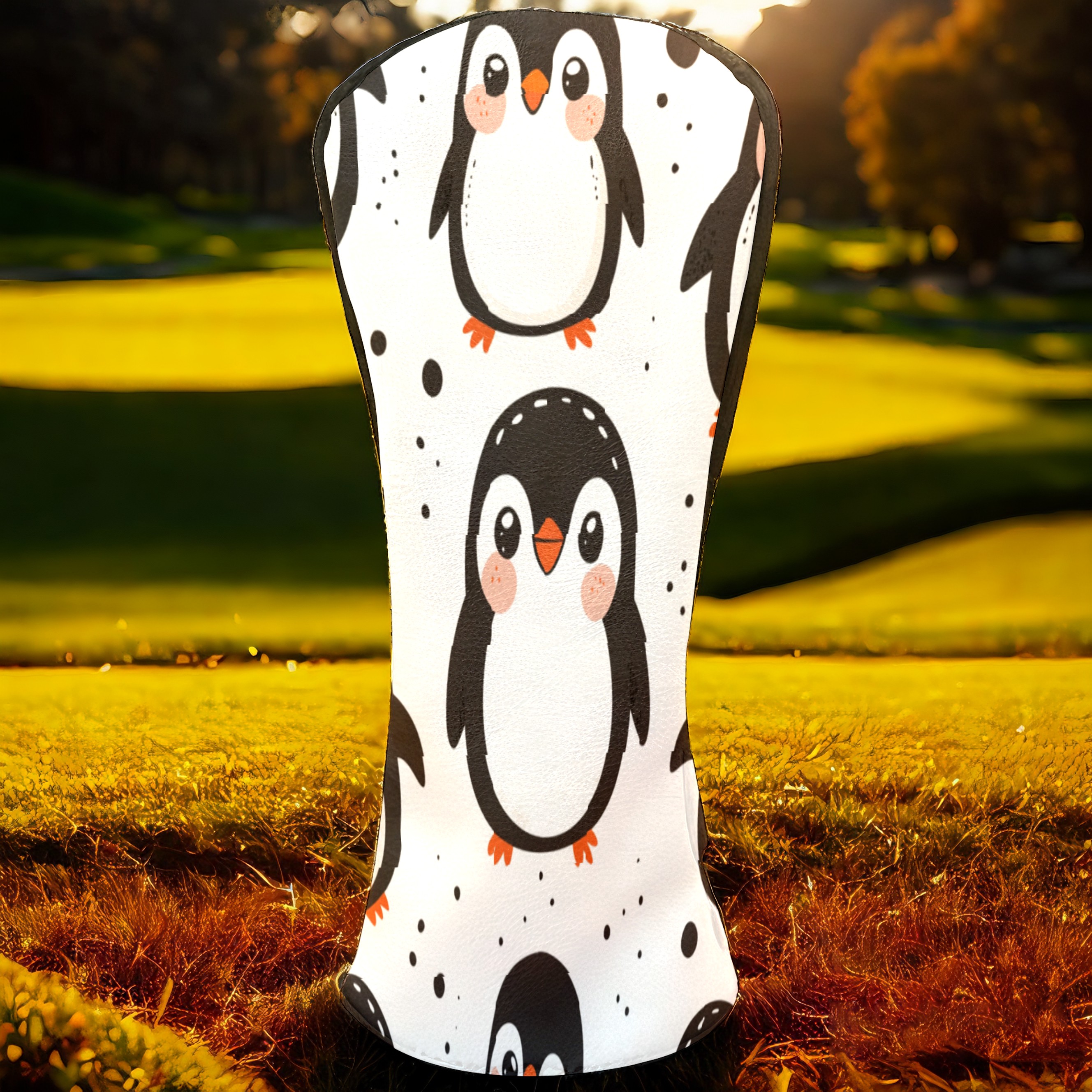 Golf Club Head Cover, High Quality PU Leather Driver and Wood Club Head Cover with Anti-Scratch Lining, Cute Clumsy Penguin Universal Gift for Men and Women