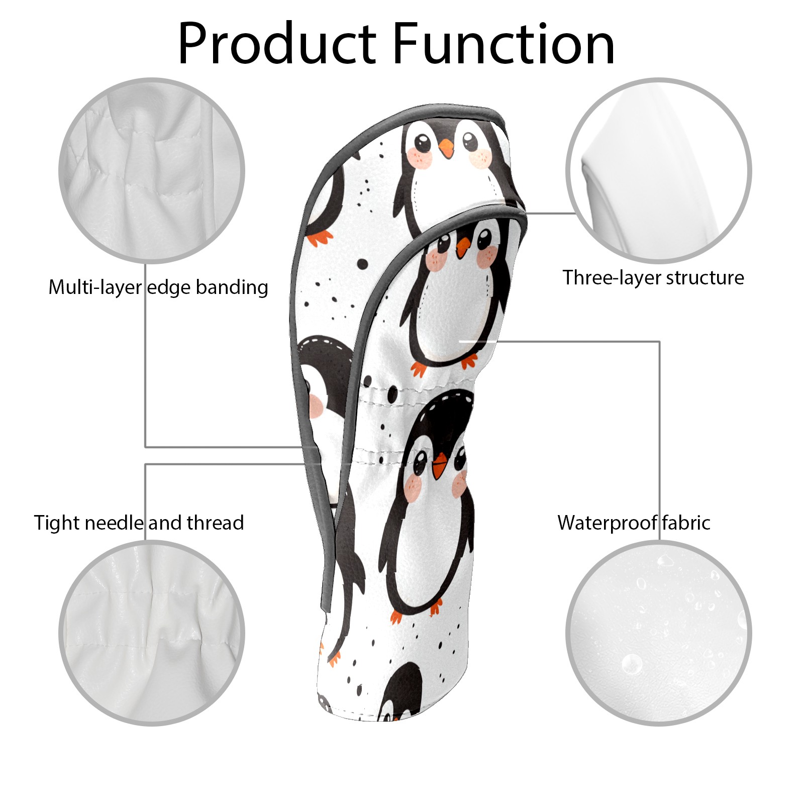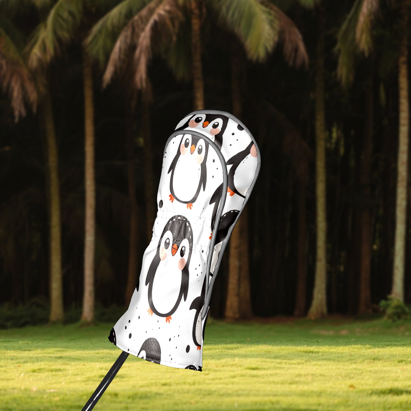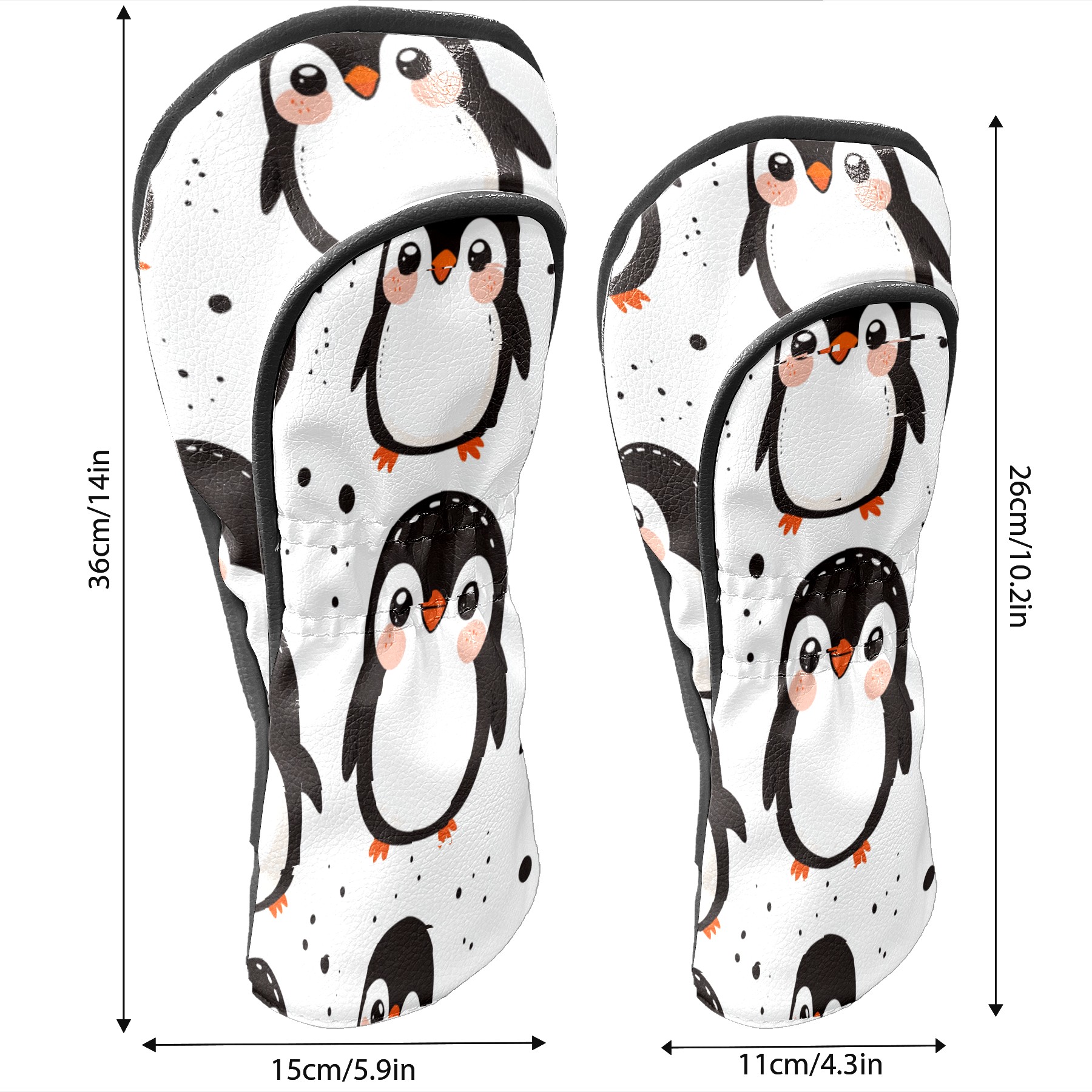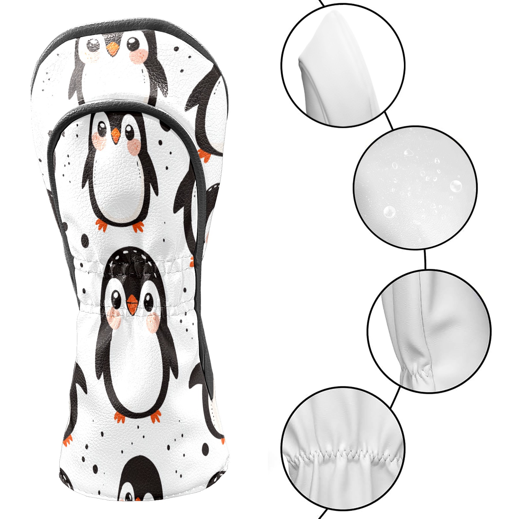 Golf Club Head Cover, High Quality PU Leather Driver and Wood Club Head Cover with Anti-Scratch Lining, Cute Clumsy Penguin Universal Gift for Men and Women