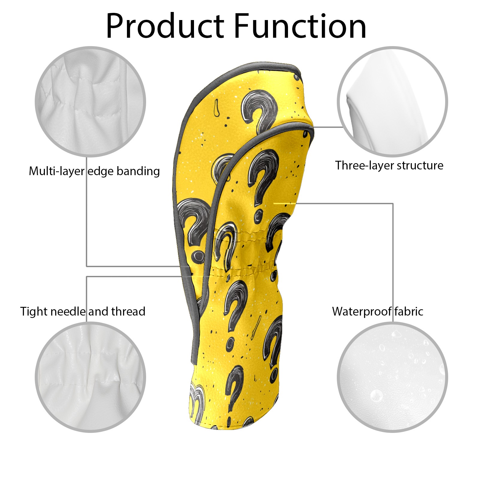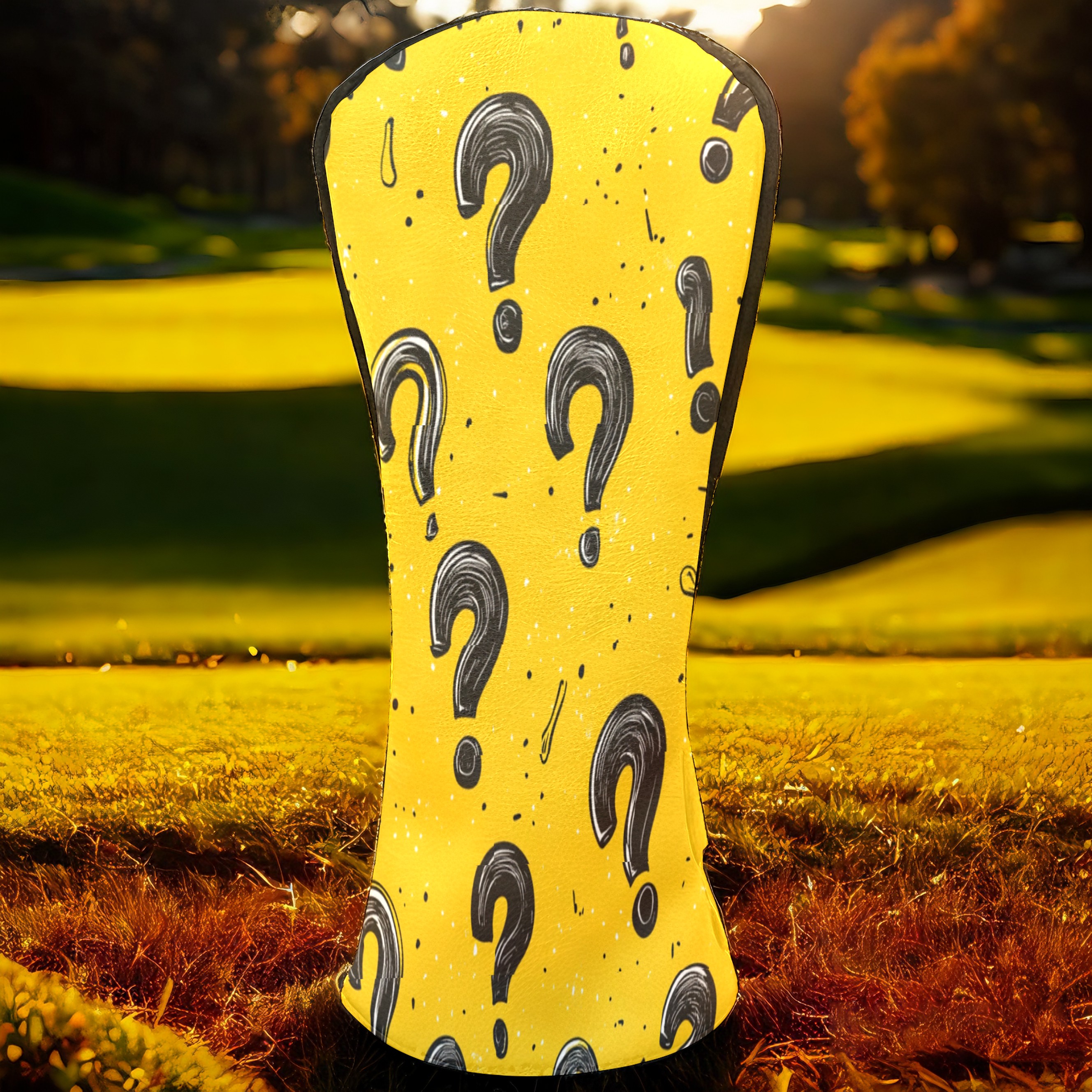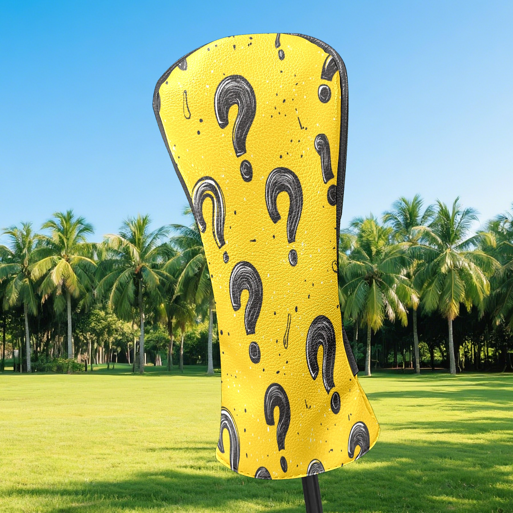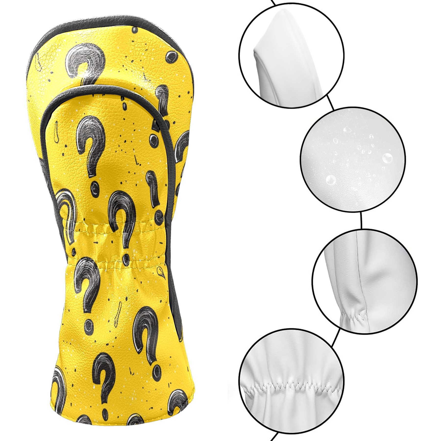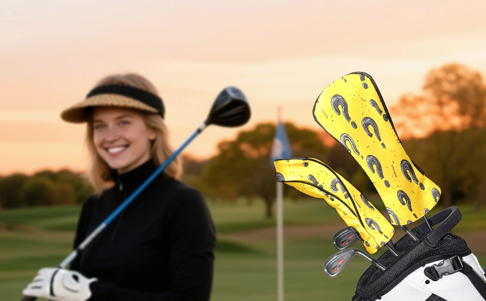 Golf Club Head Cover, High Quality PU Leather Driver and Wood Club Head Cover with Anti-Scratch Lining, Black Question Mark Universal Gift for Men and Women