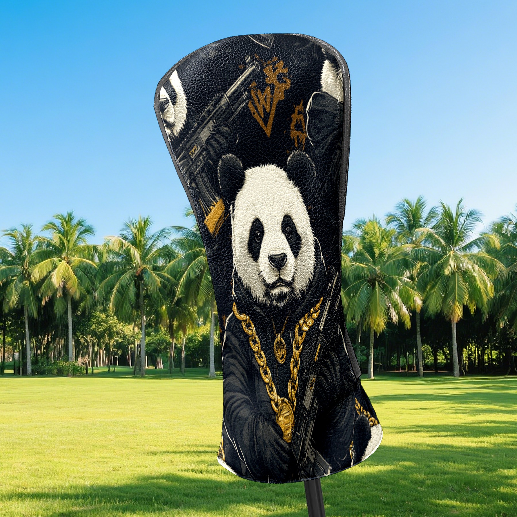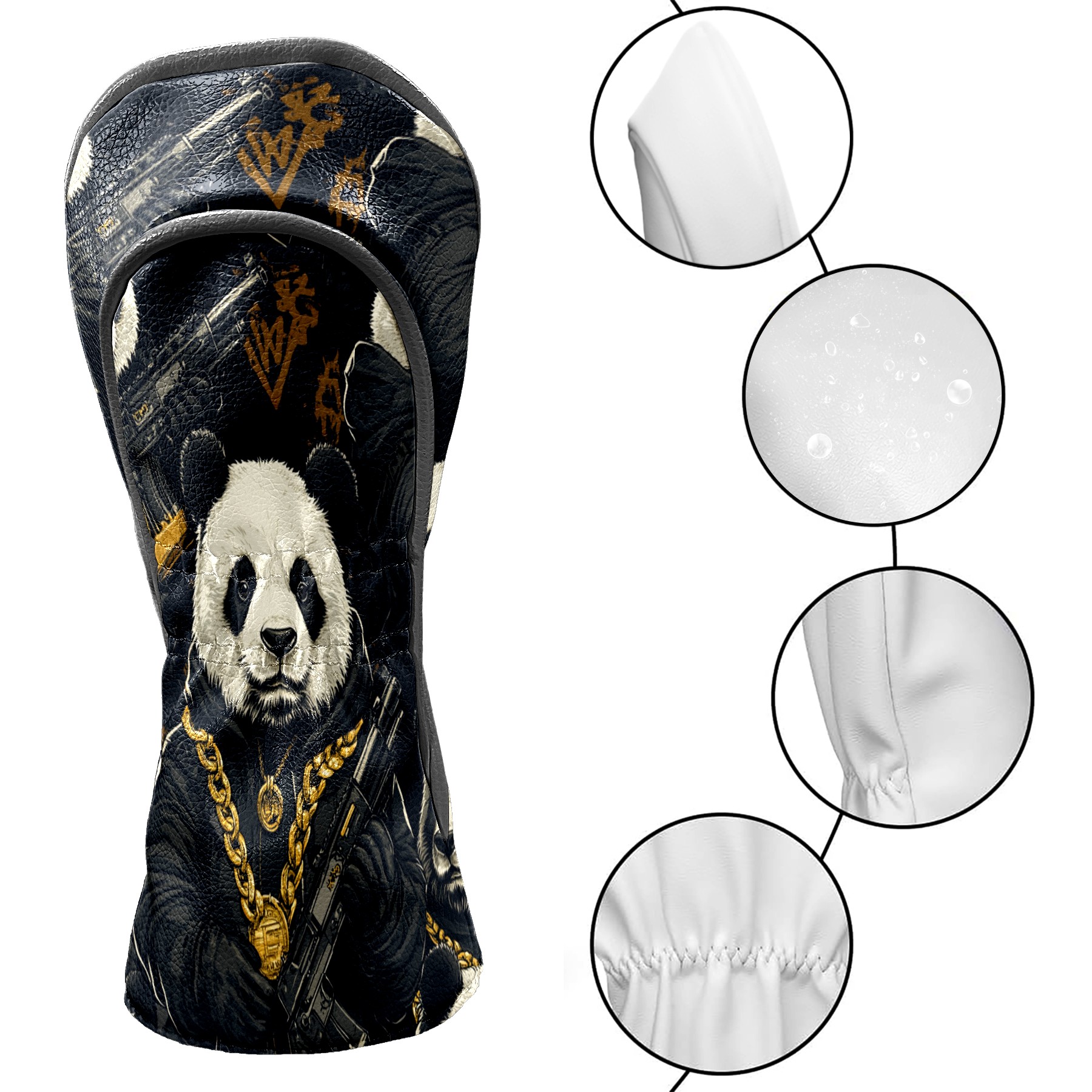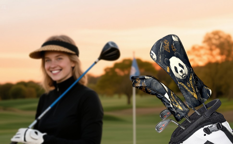 Golf Club Head Cover, High Quality PU Leather Driver and Wood Club Head Cover with Anti-Scratch Lining, Big Boss Panda Universal Gift for Men and Women