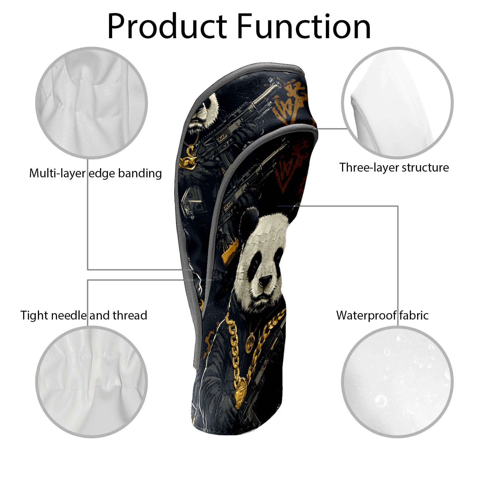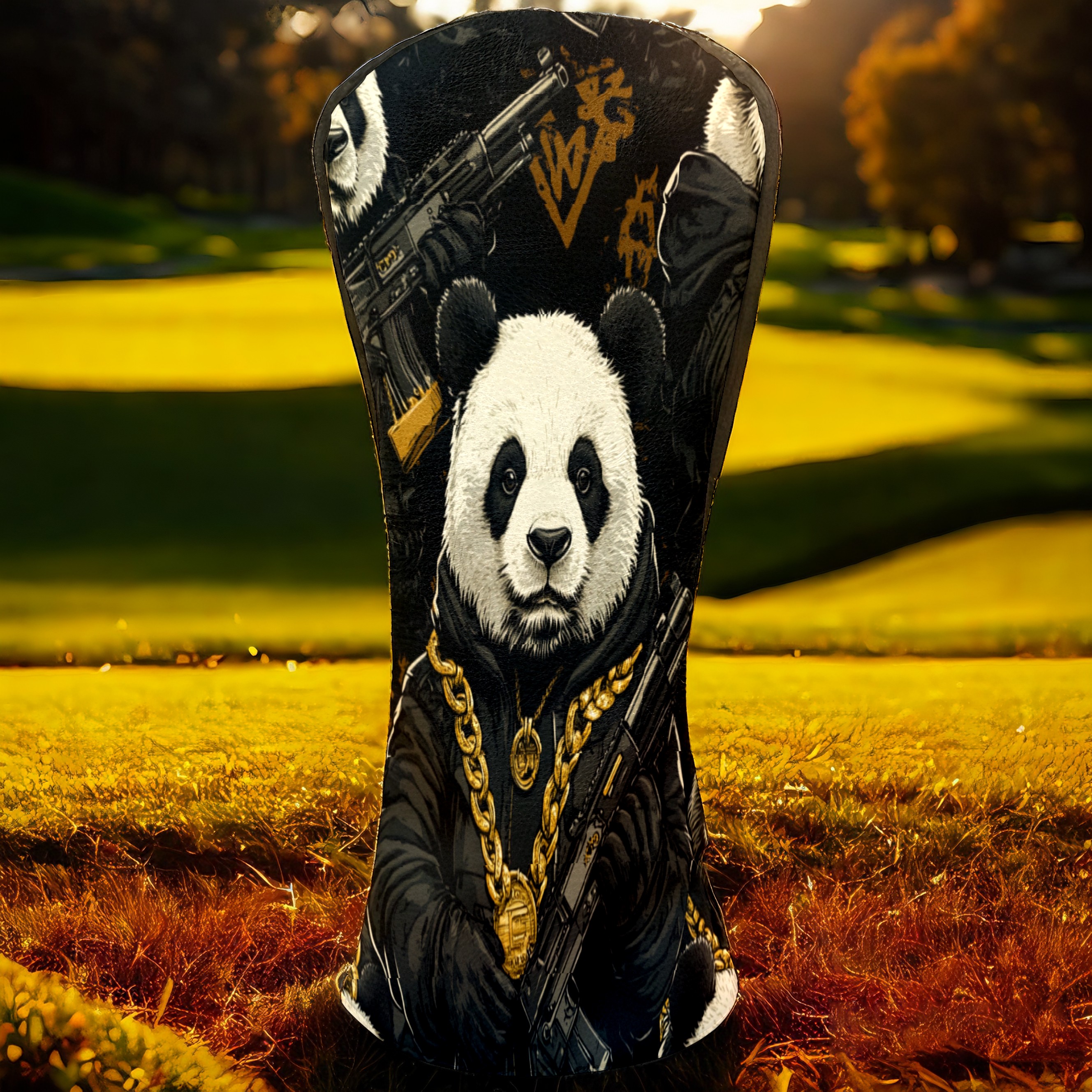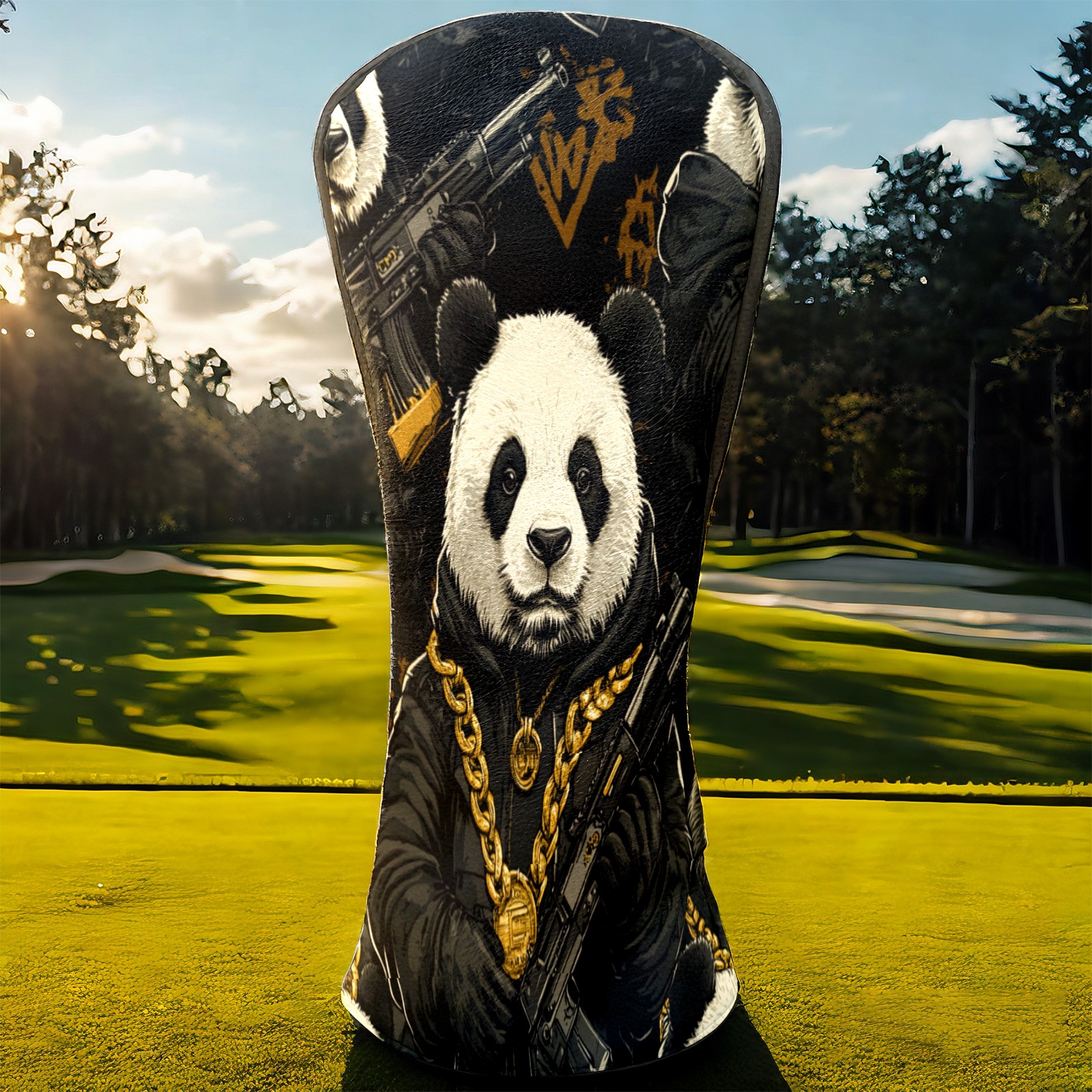 Golf Club Head Cover, High Quality PU Leather Driver and Wood Club Head Cover with Anti-Scratch Lining, Big Boss Panda Universal Gift for Men and Women