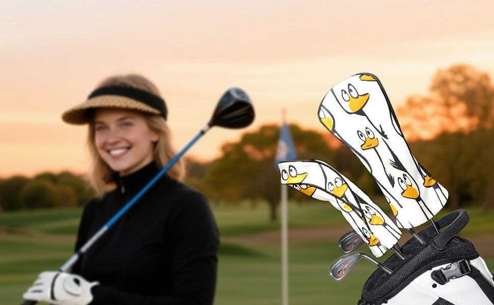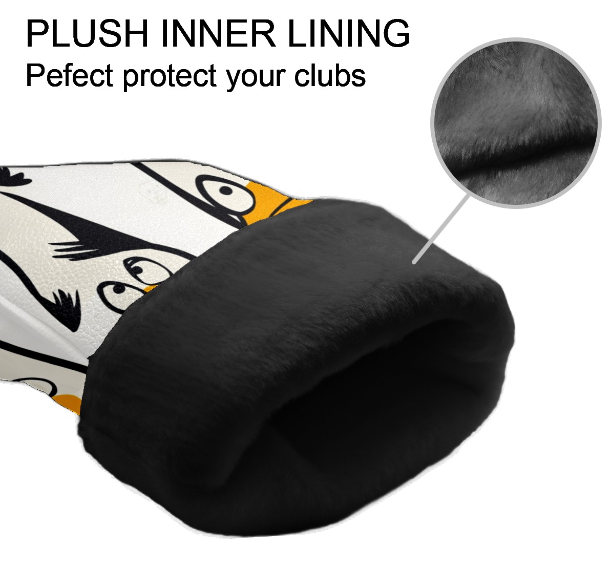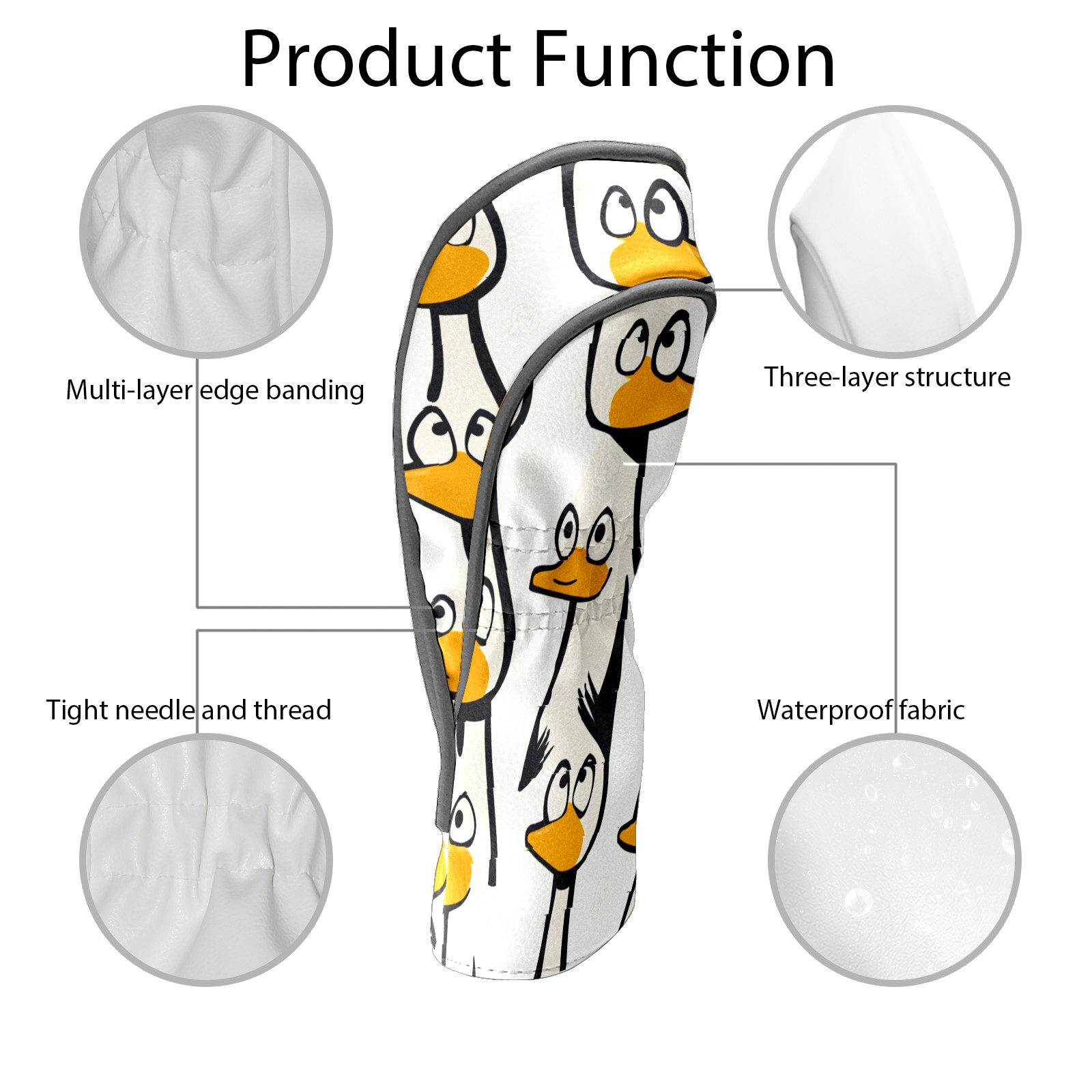 Golf Club Head Cover, High Quality PU Leather Driver and Wood Club Head Cover with Anti-Scratch Lining, Little Yellow Duck Universal Gift for Men and Women